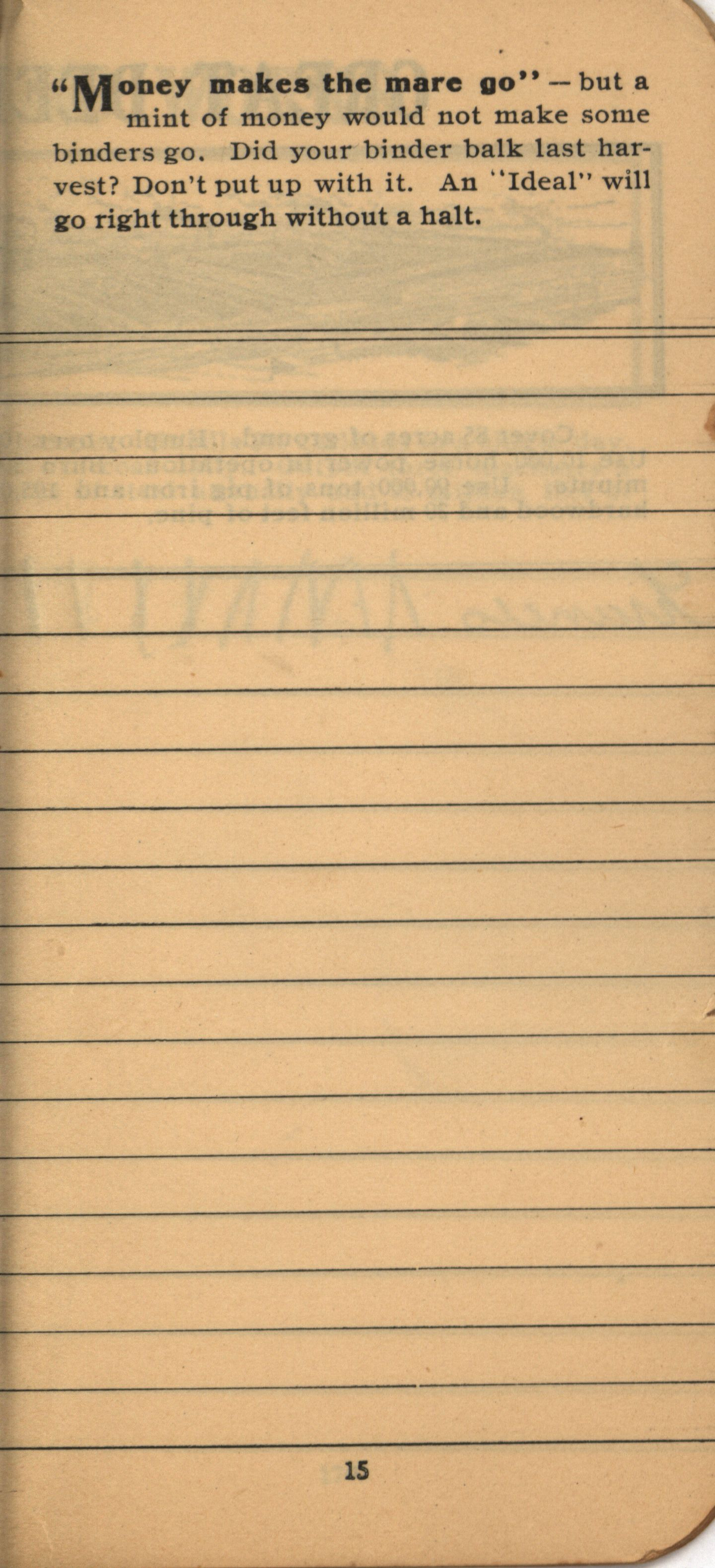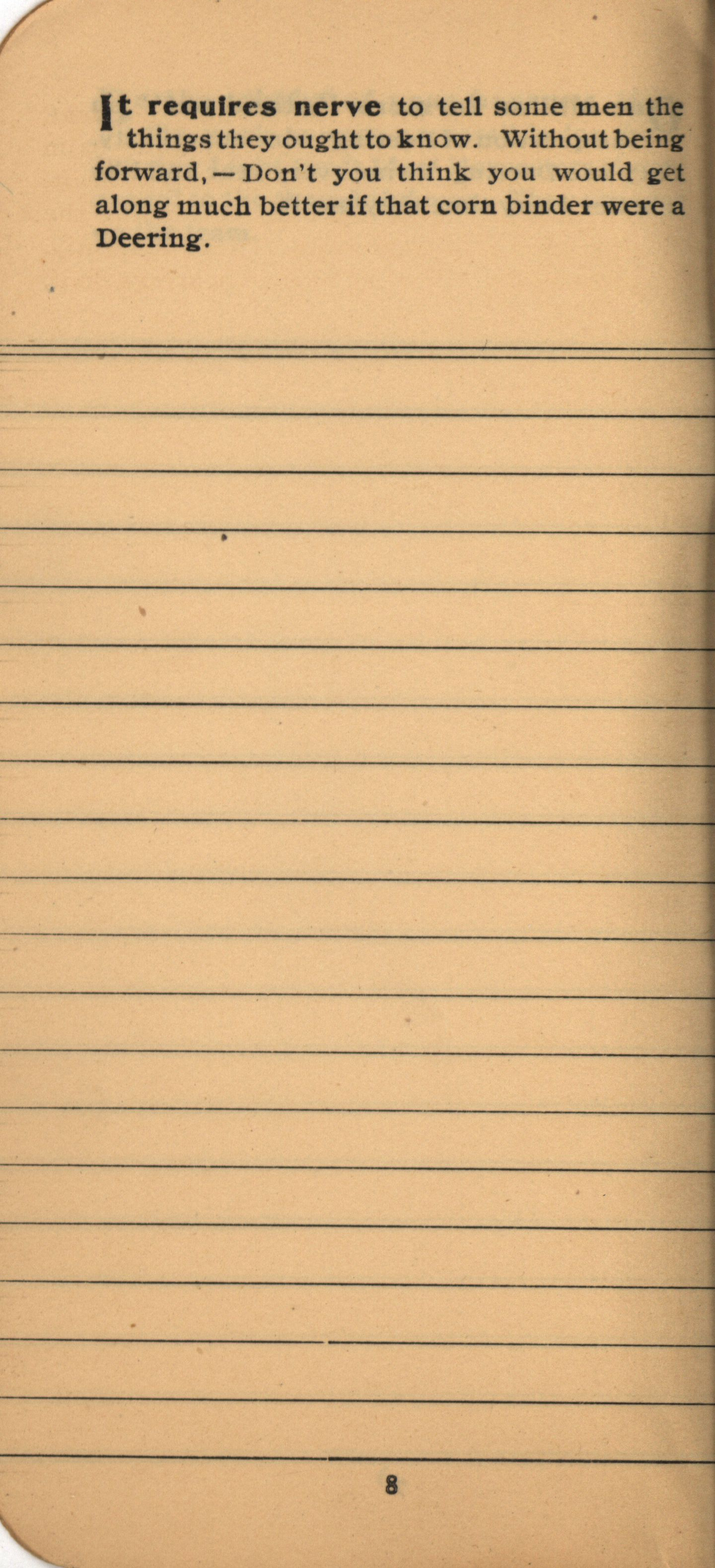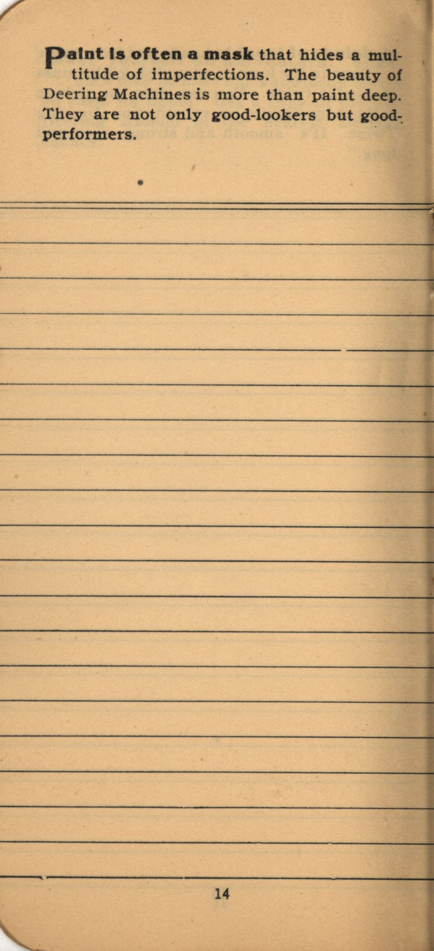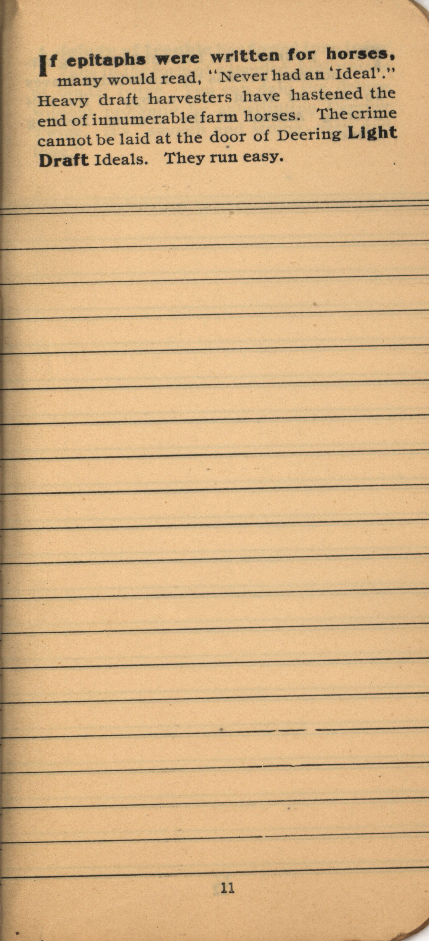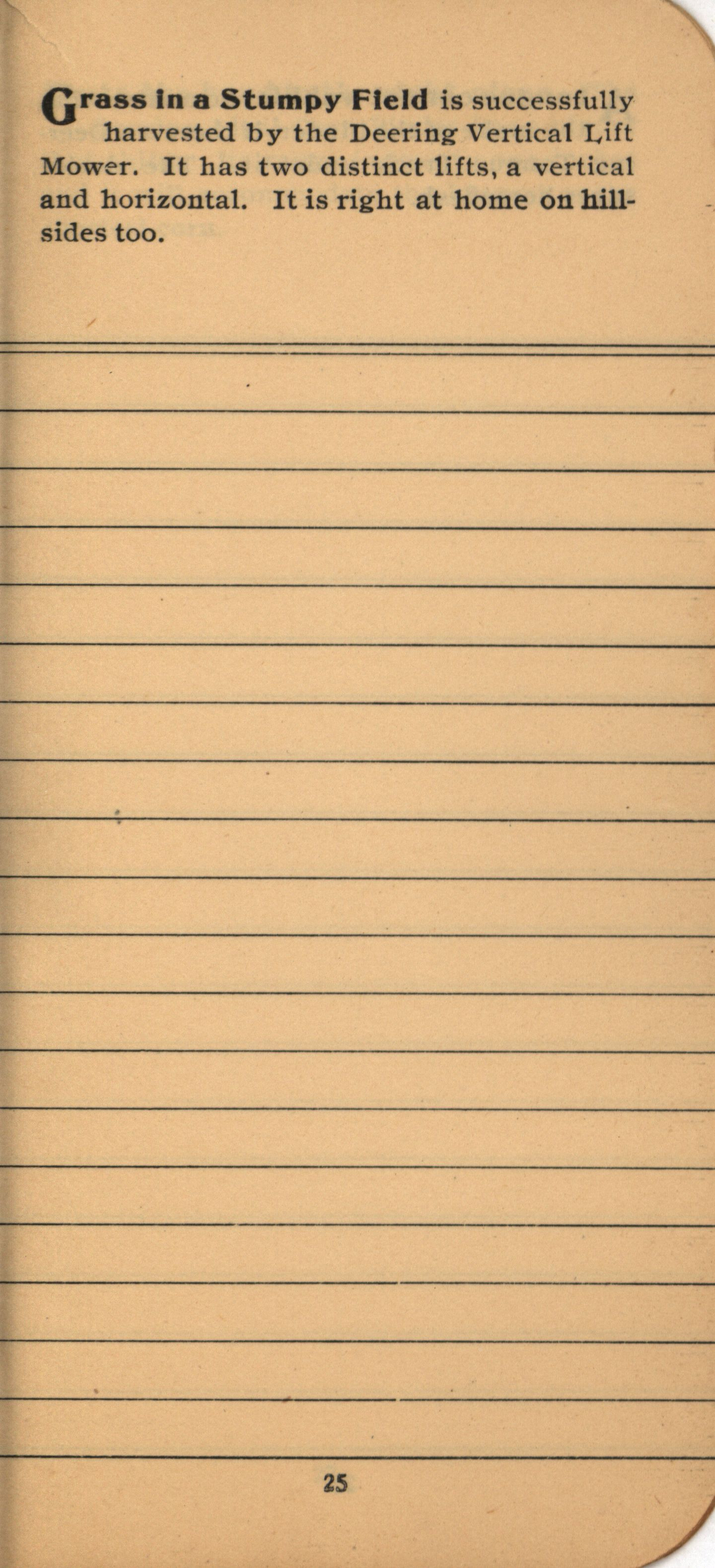 - "William Deering and Company Deering pocket memoranda", Agricultural Machinery Literature Collection, Iowa State University Library Digital Collections