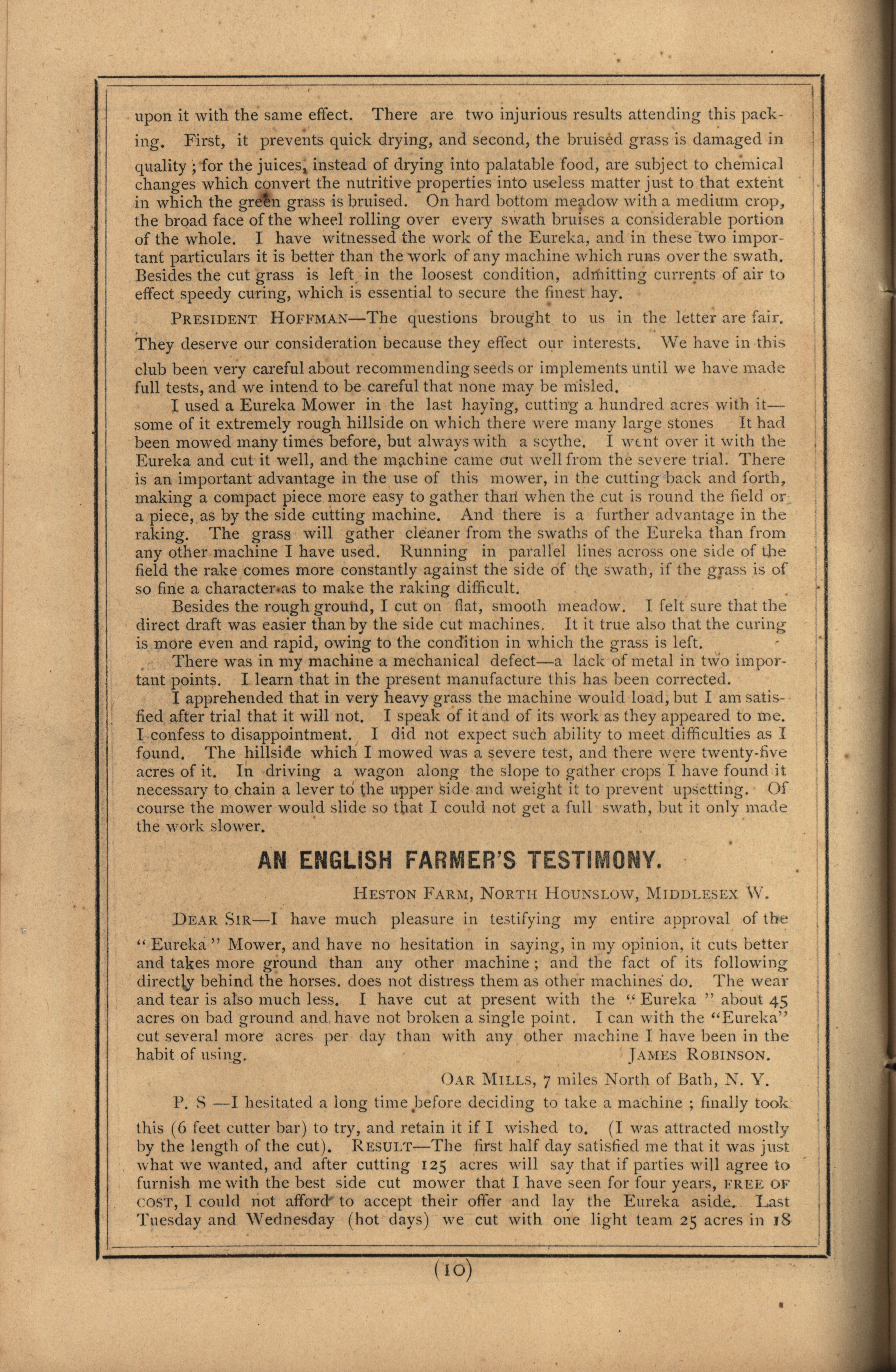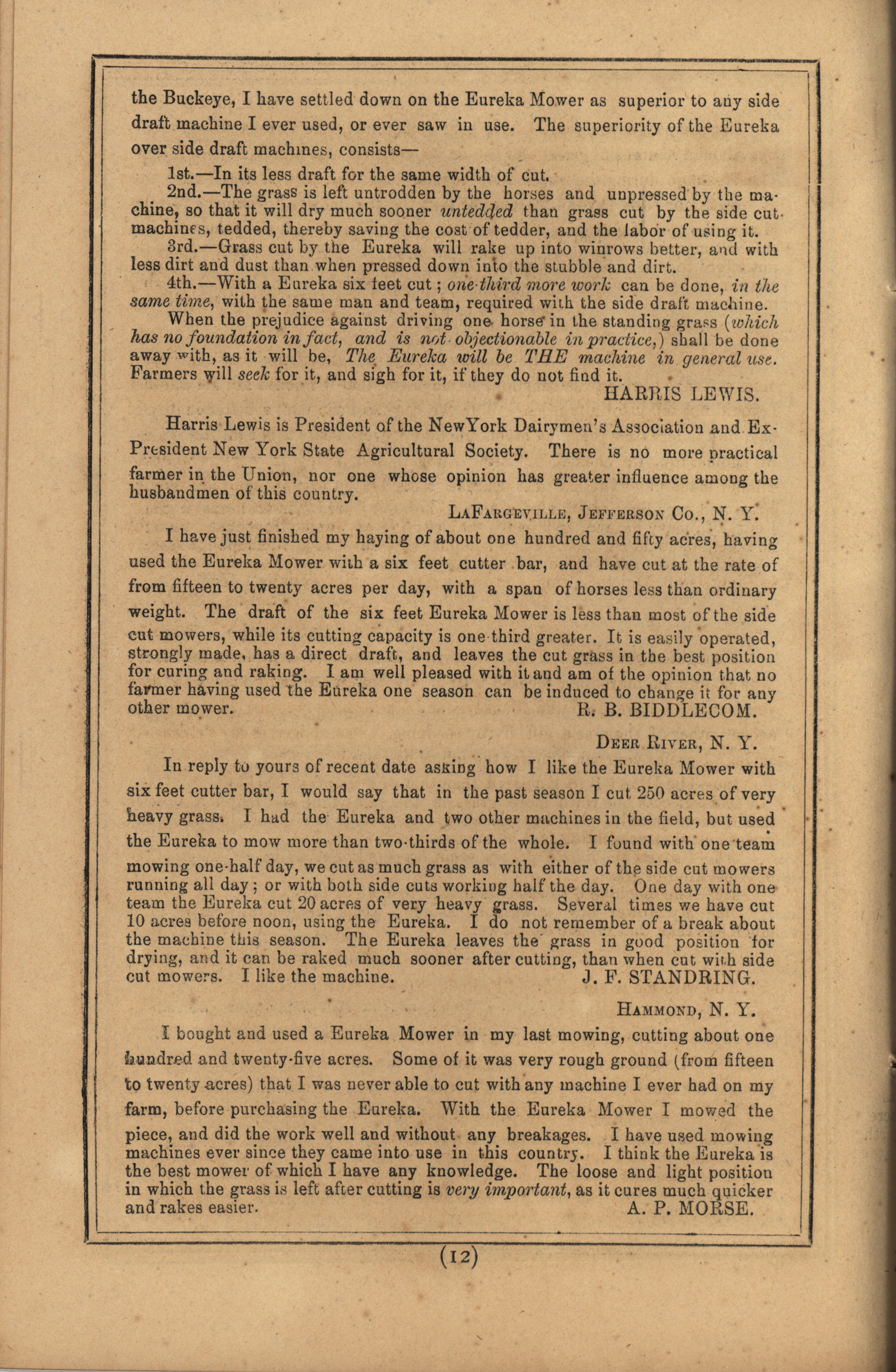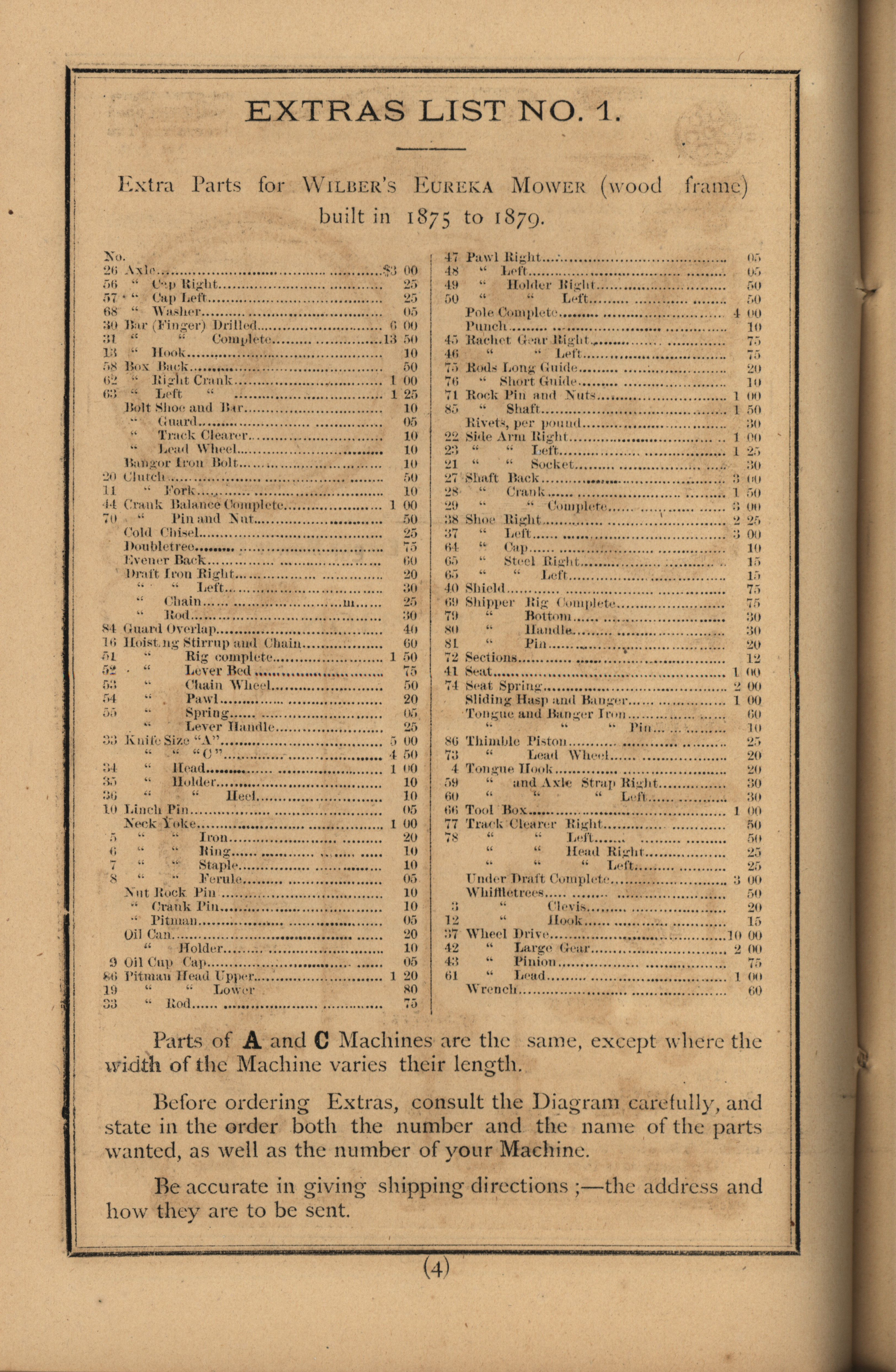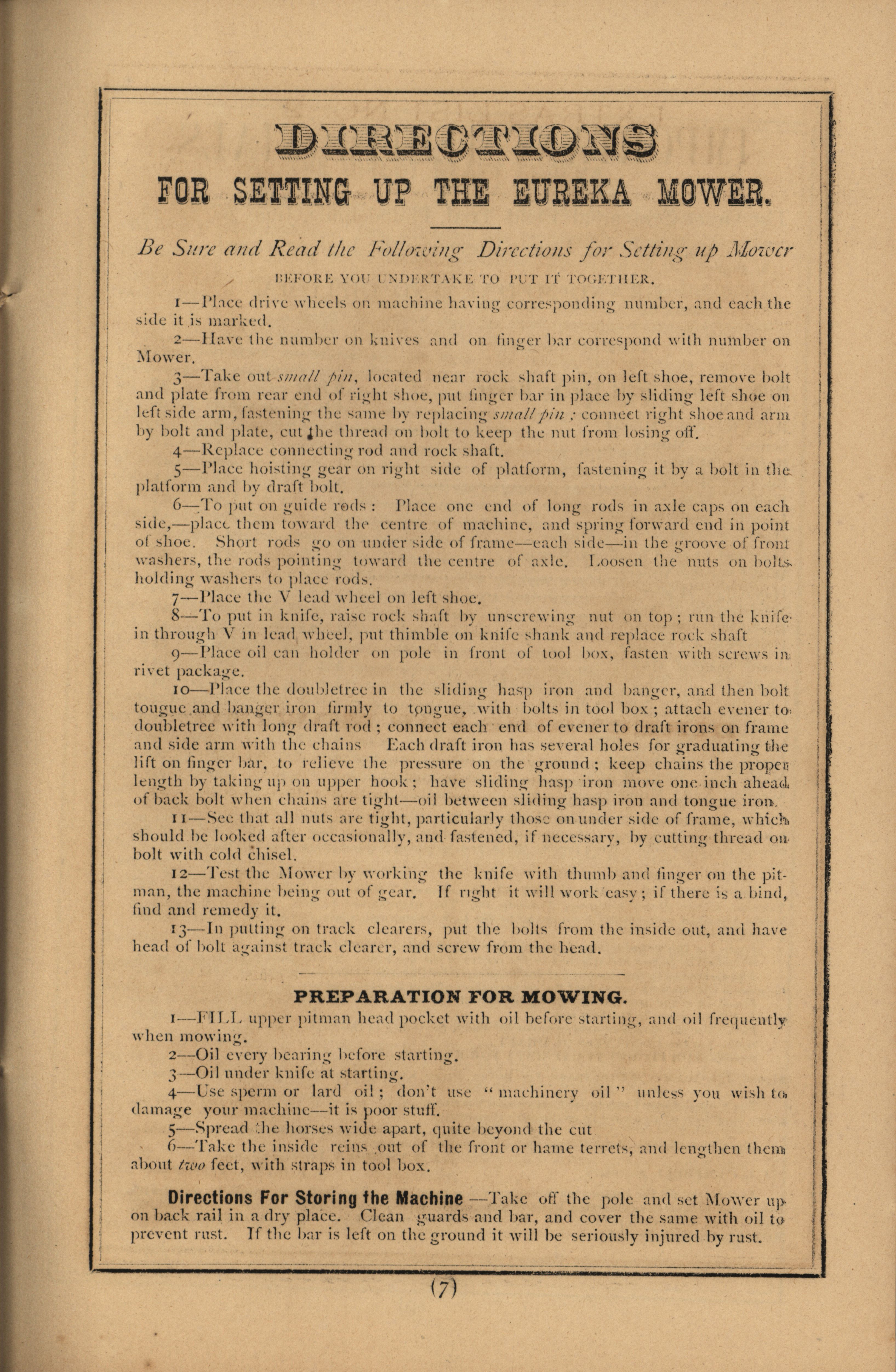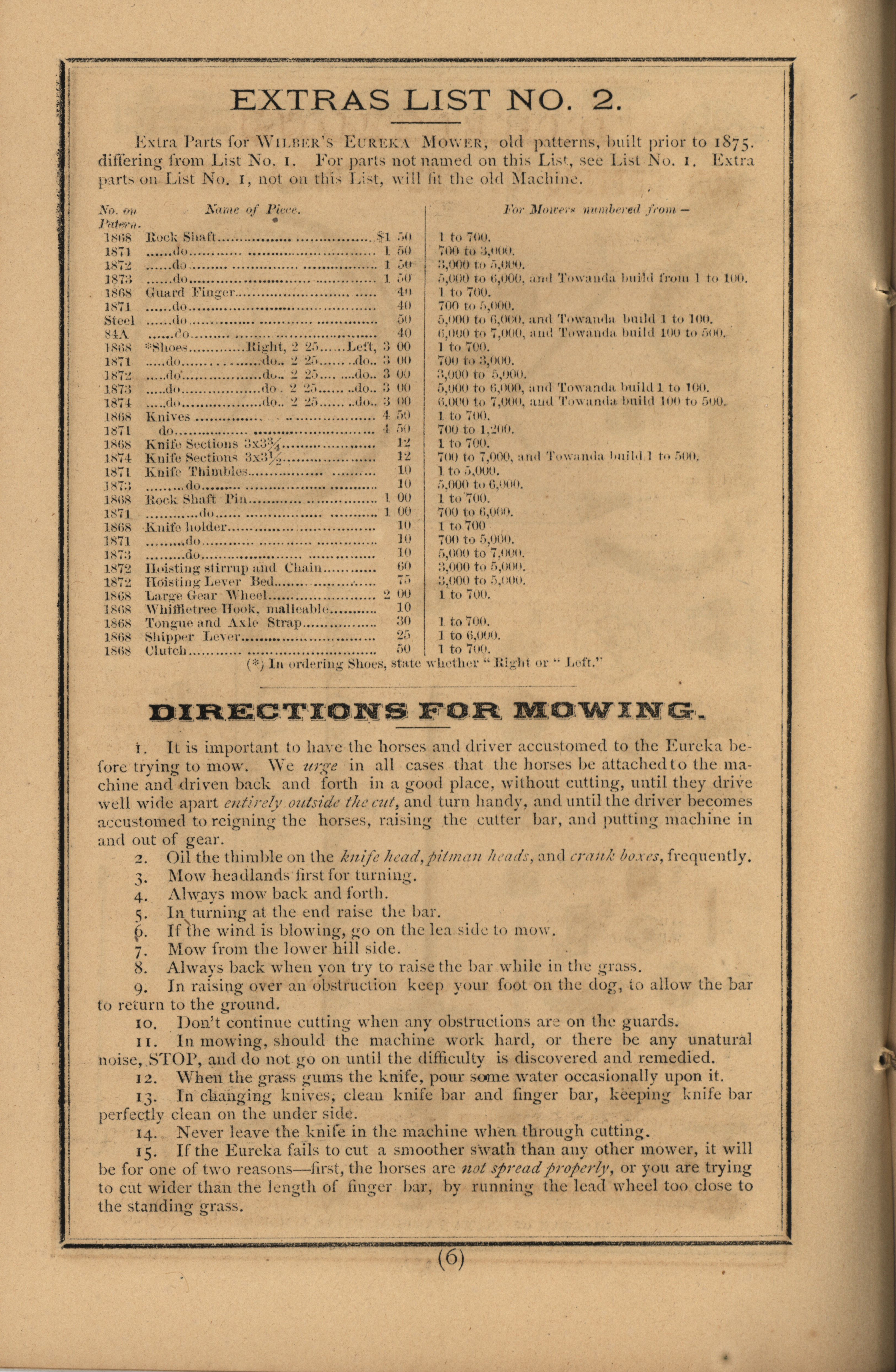 - "Eureka Mower Company 1879 catalog", Agricultural Machinery Literature Collection, Iowa State University Library Digital Collections
