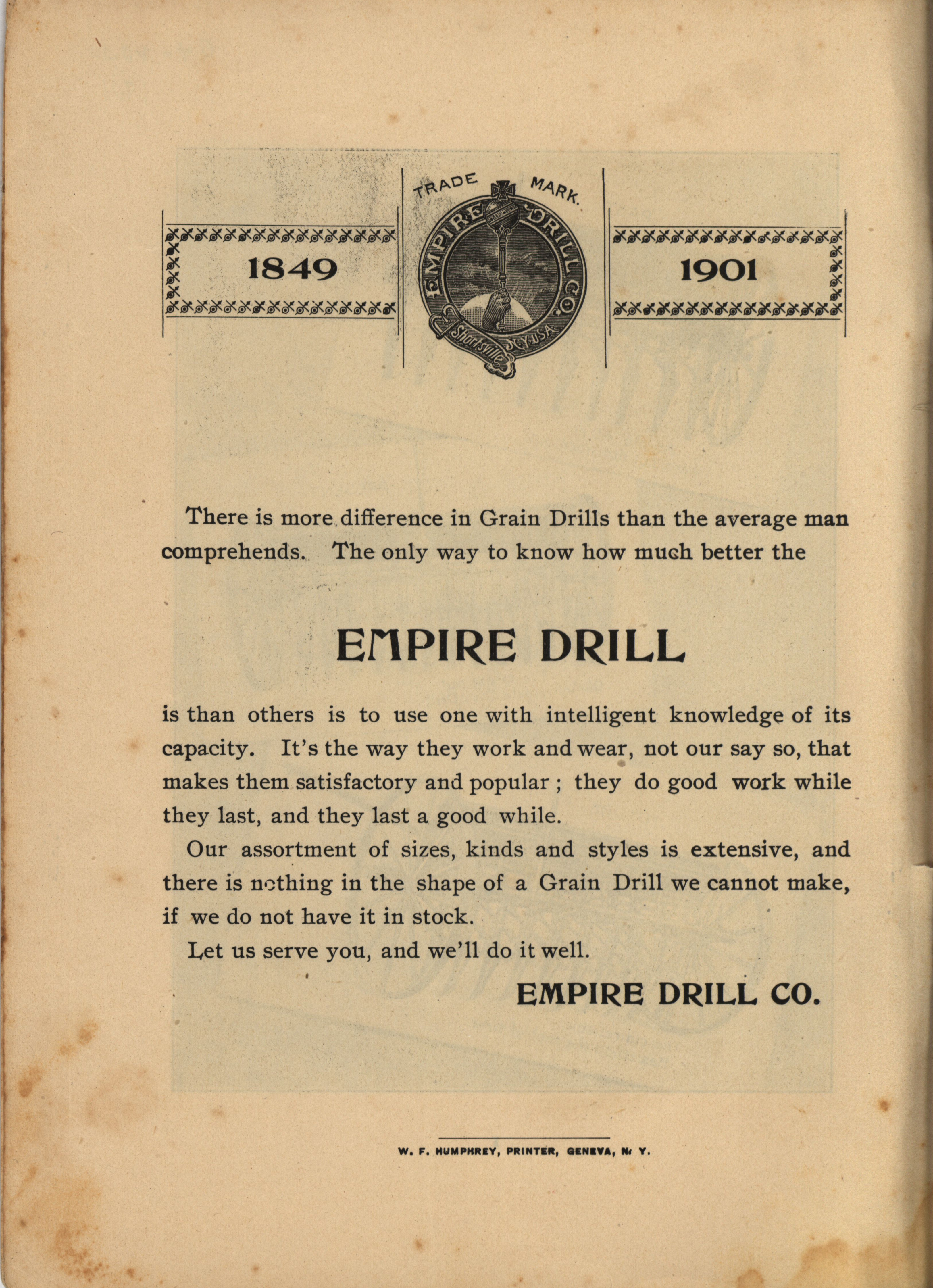 - Illustrated catalog describing the agricultural products offered by Empire Drill Company in 1901.