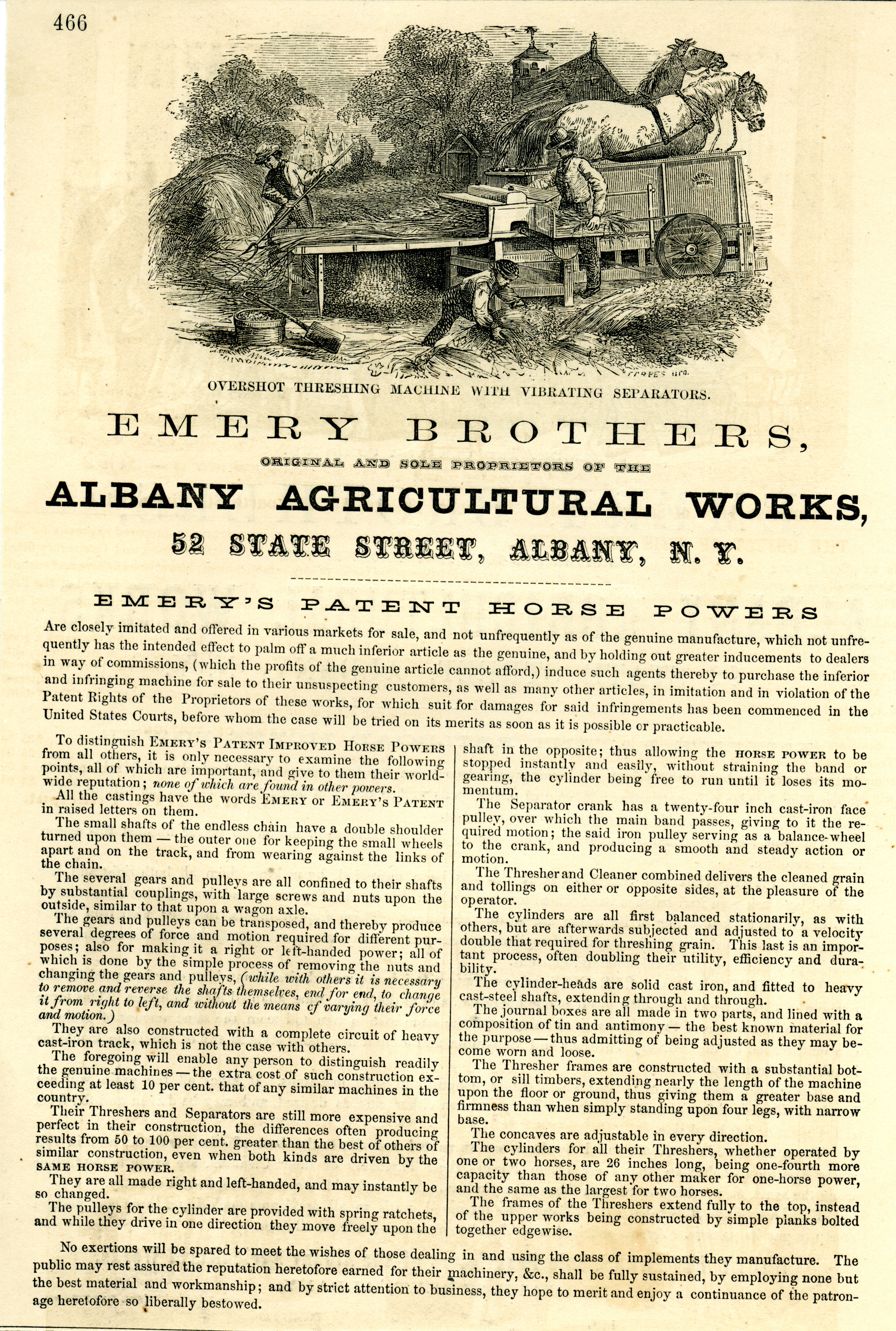 - "Albany Agricultural Works advertisement", Agricultural Machinery Literature Collection, Iowa State University Library Digital Collections