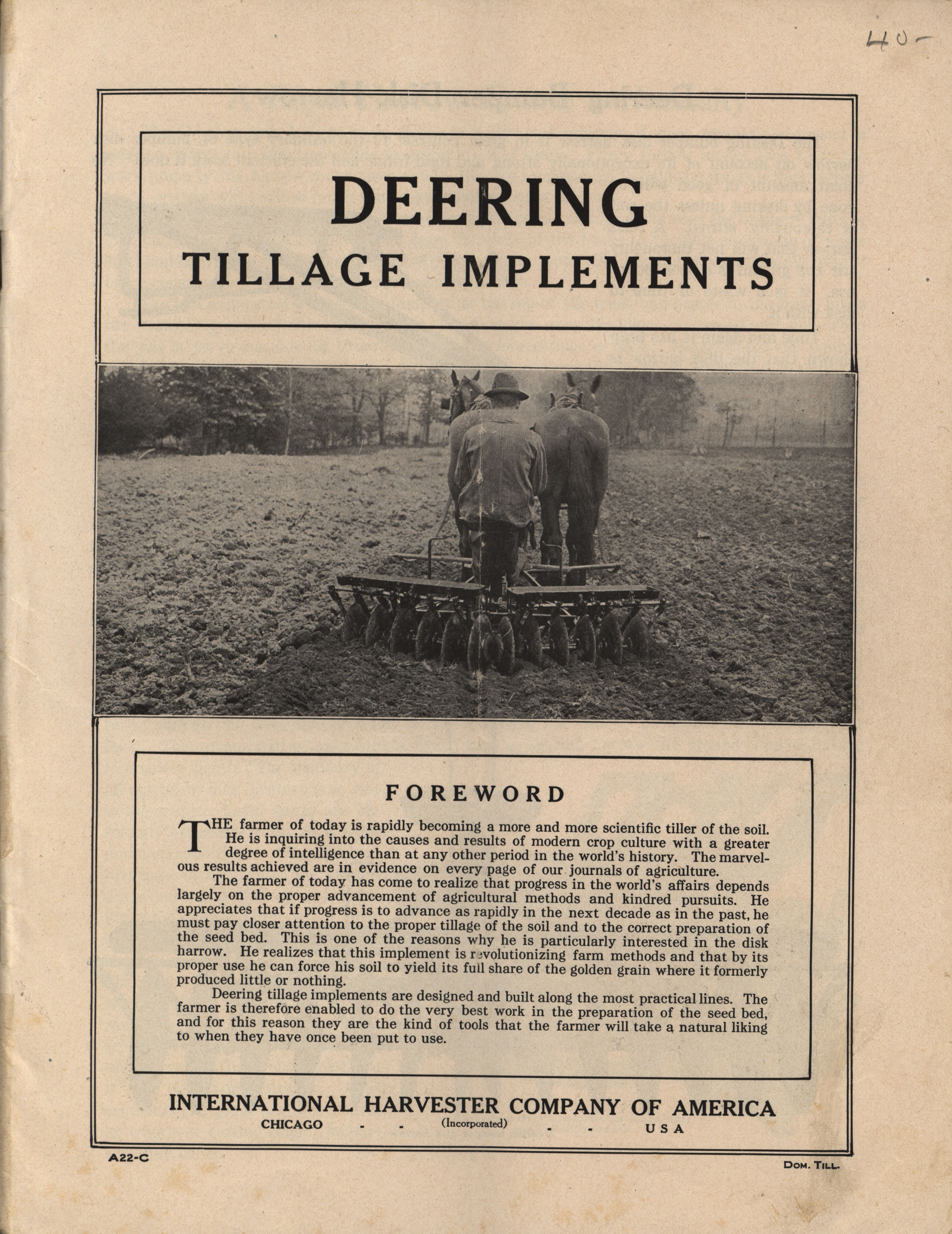 - Illustrated catalog describing the tillage implements offered by William Deering and Company.