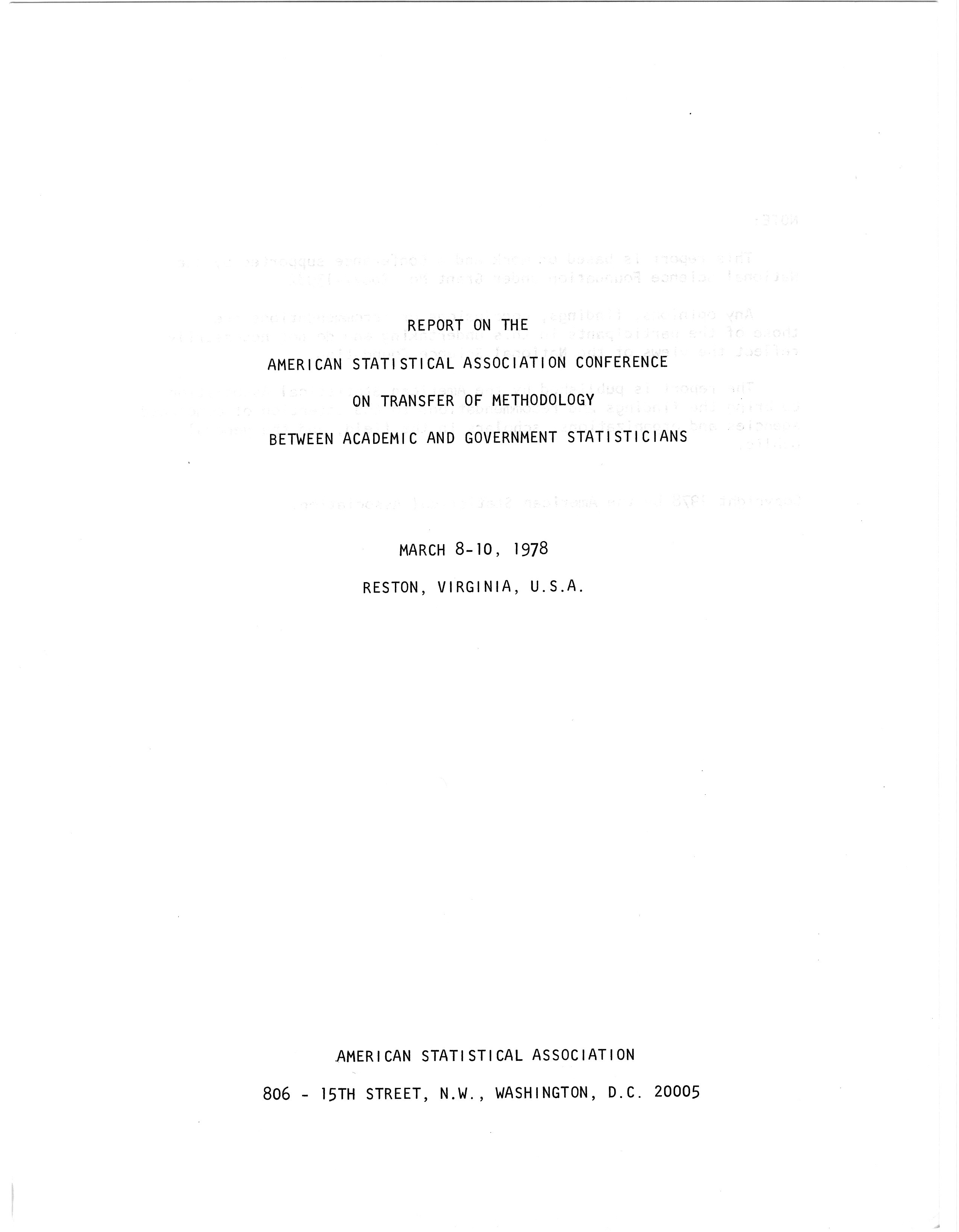 Report on the American Statistical Association conference on transfer of methodology between academic and government statisticians Item Info