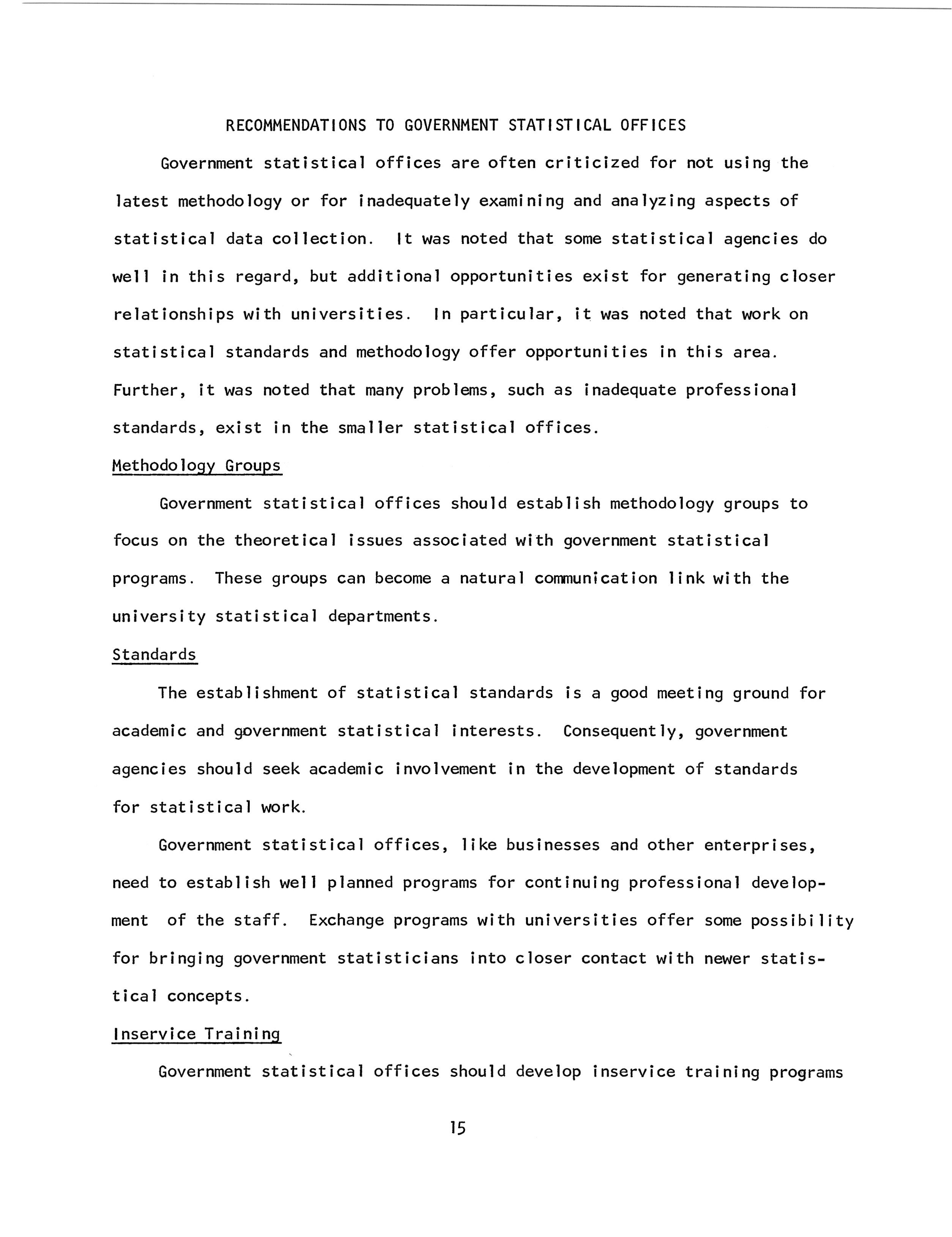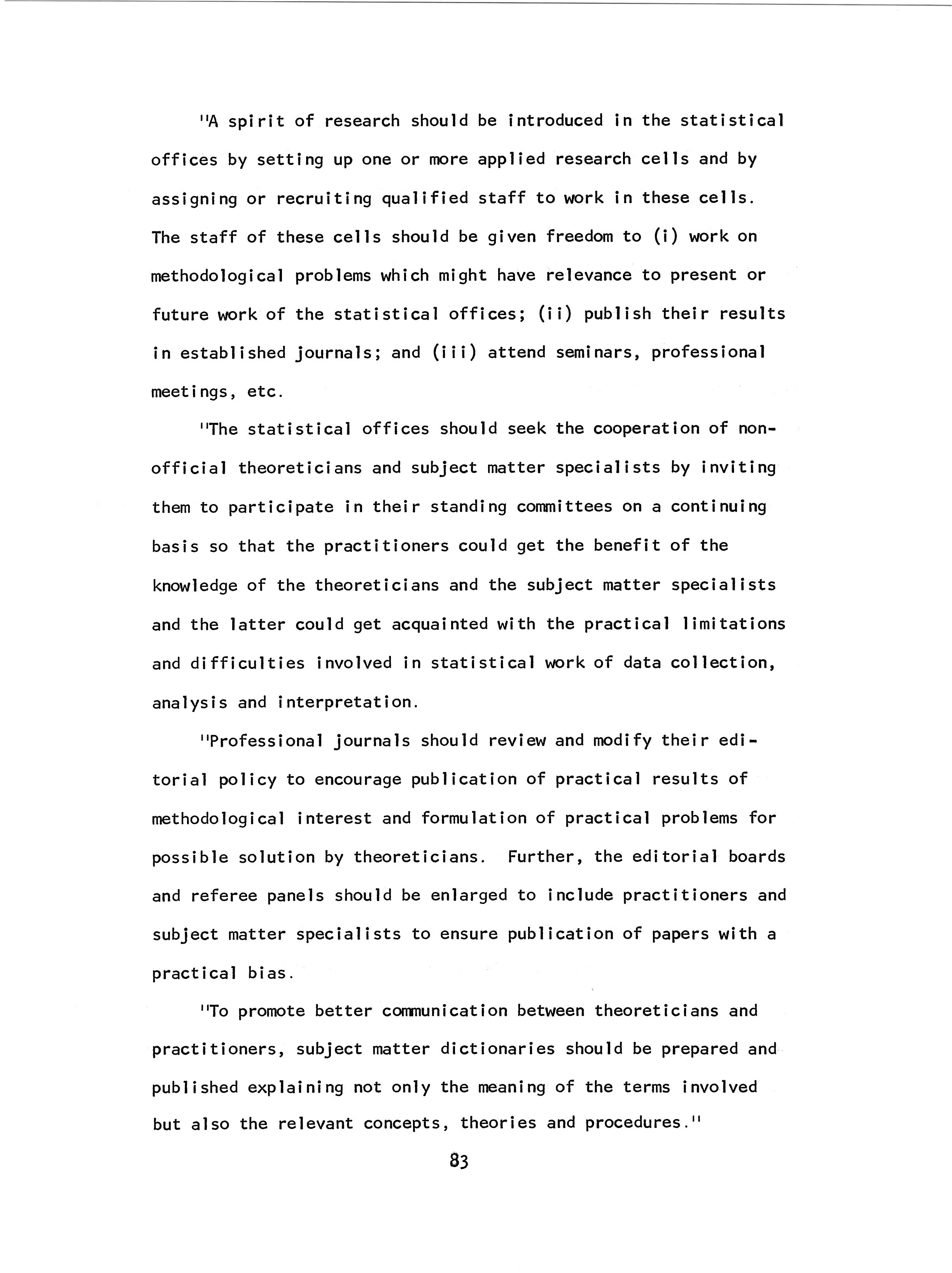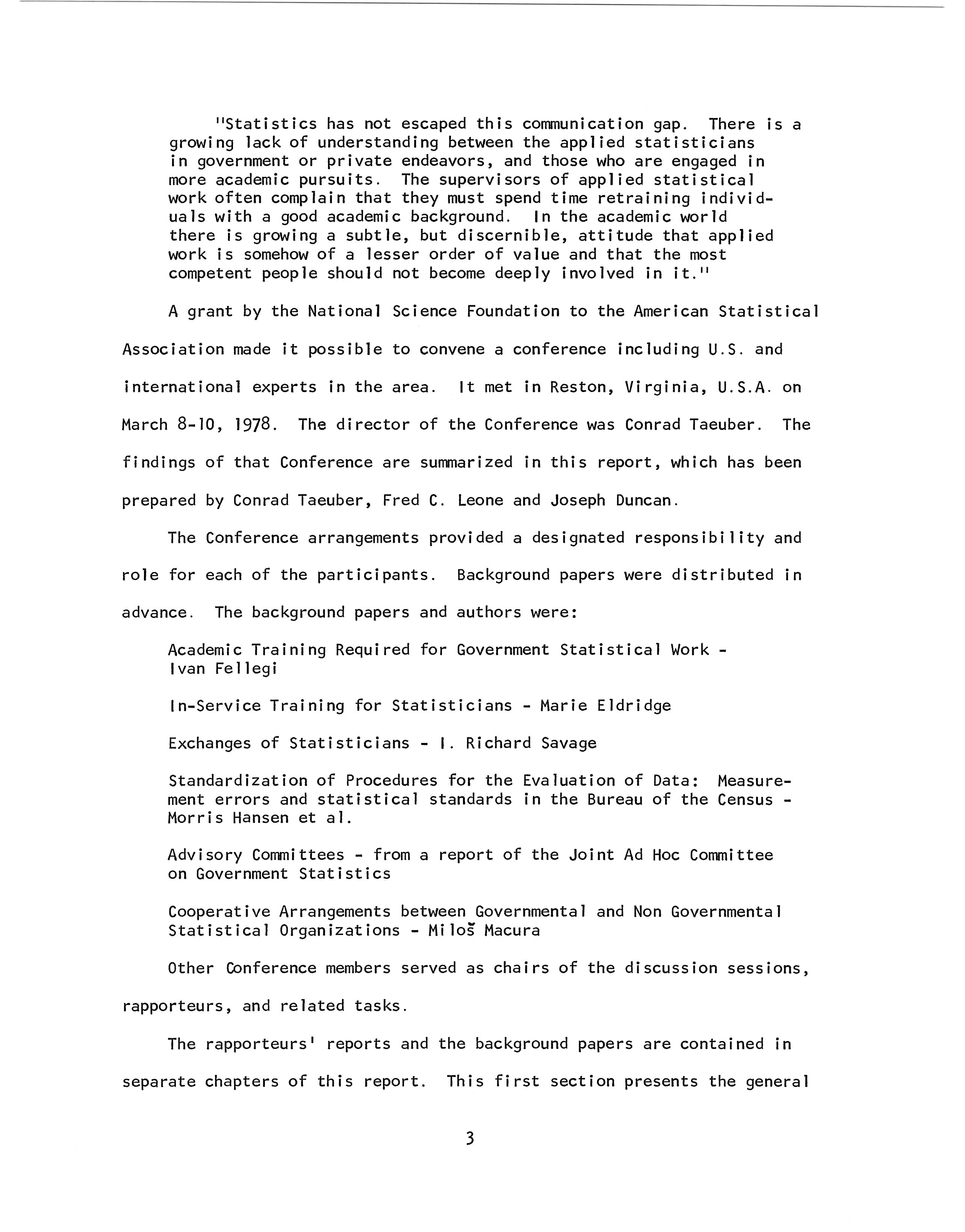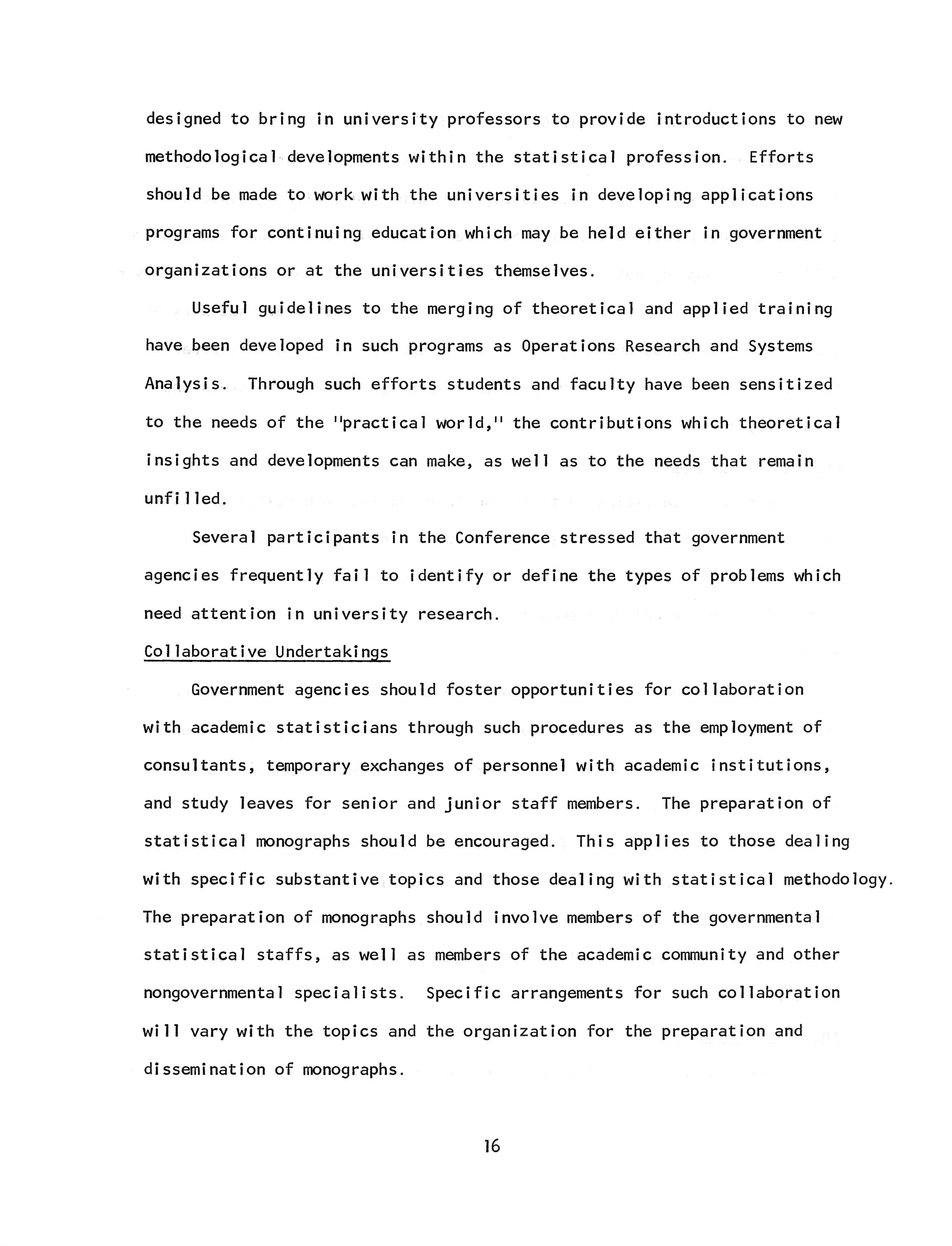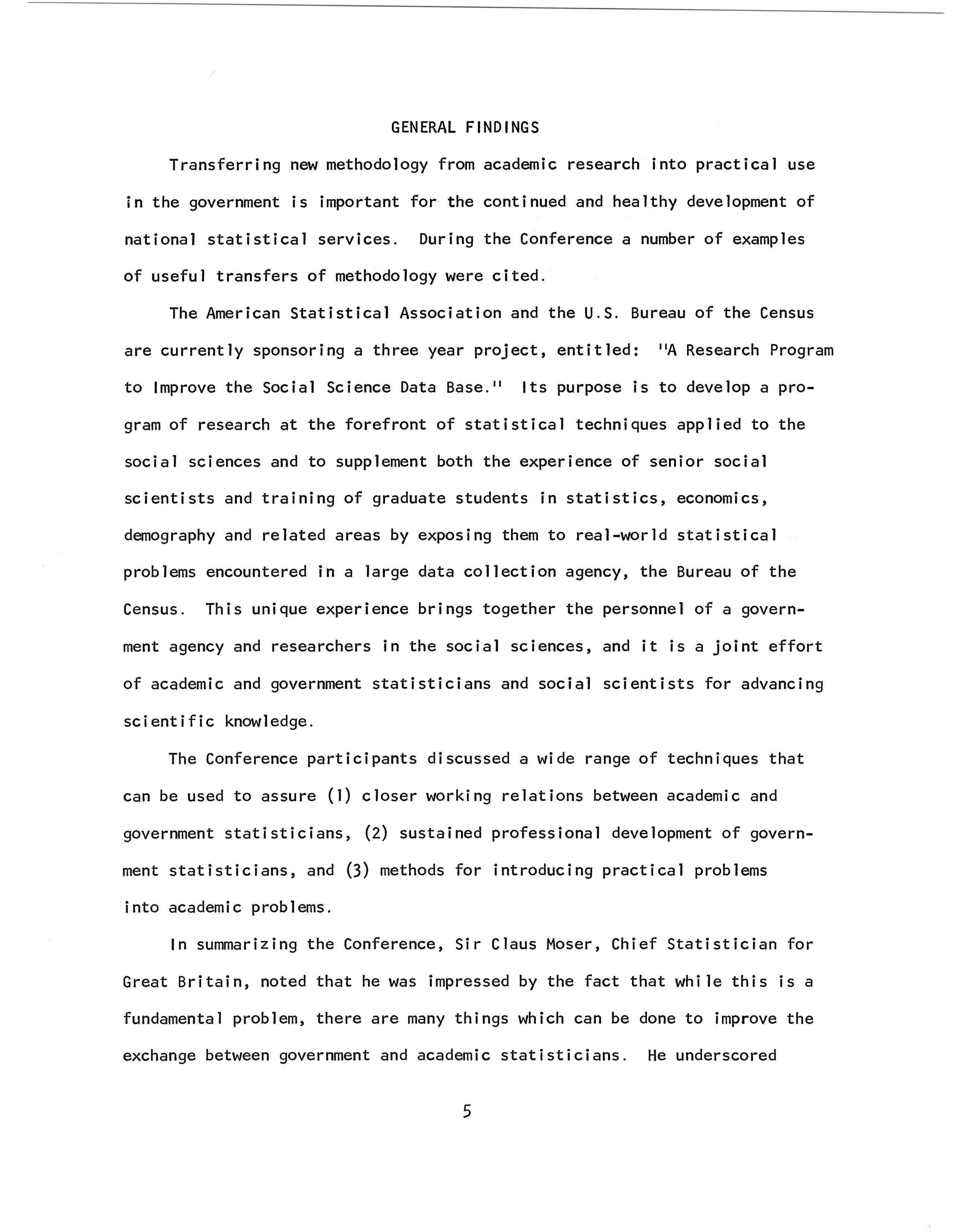 - Report on the American Statistical Association Conference on Transfer of Methodology Between Academic and Government Statisticians.