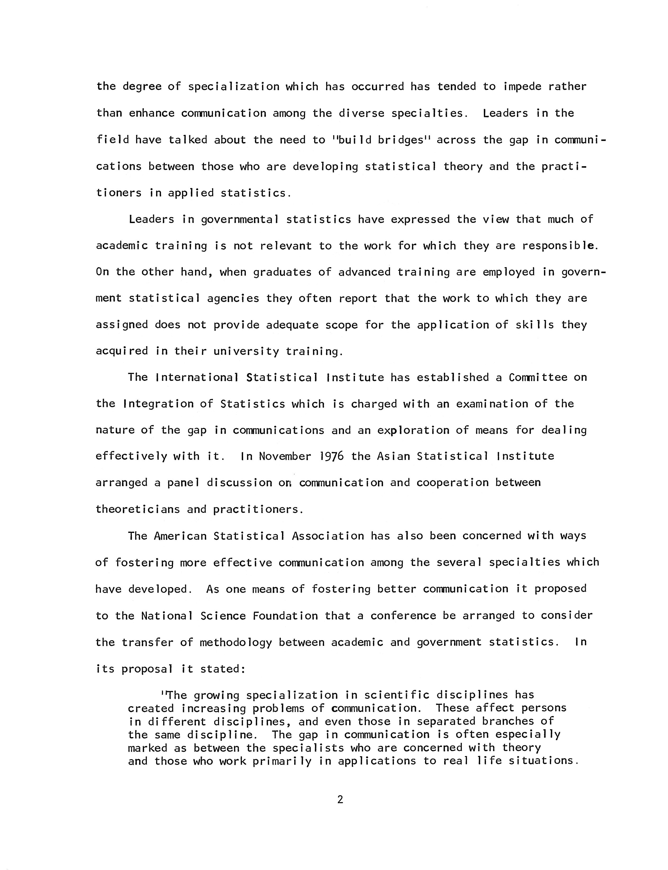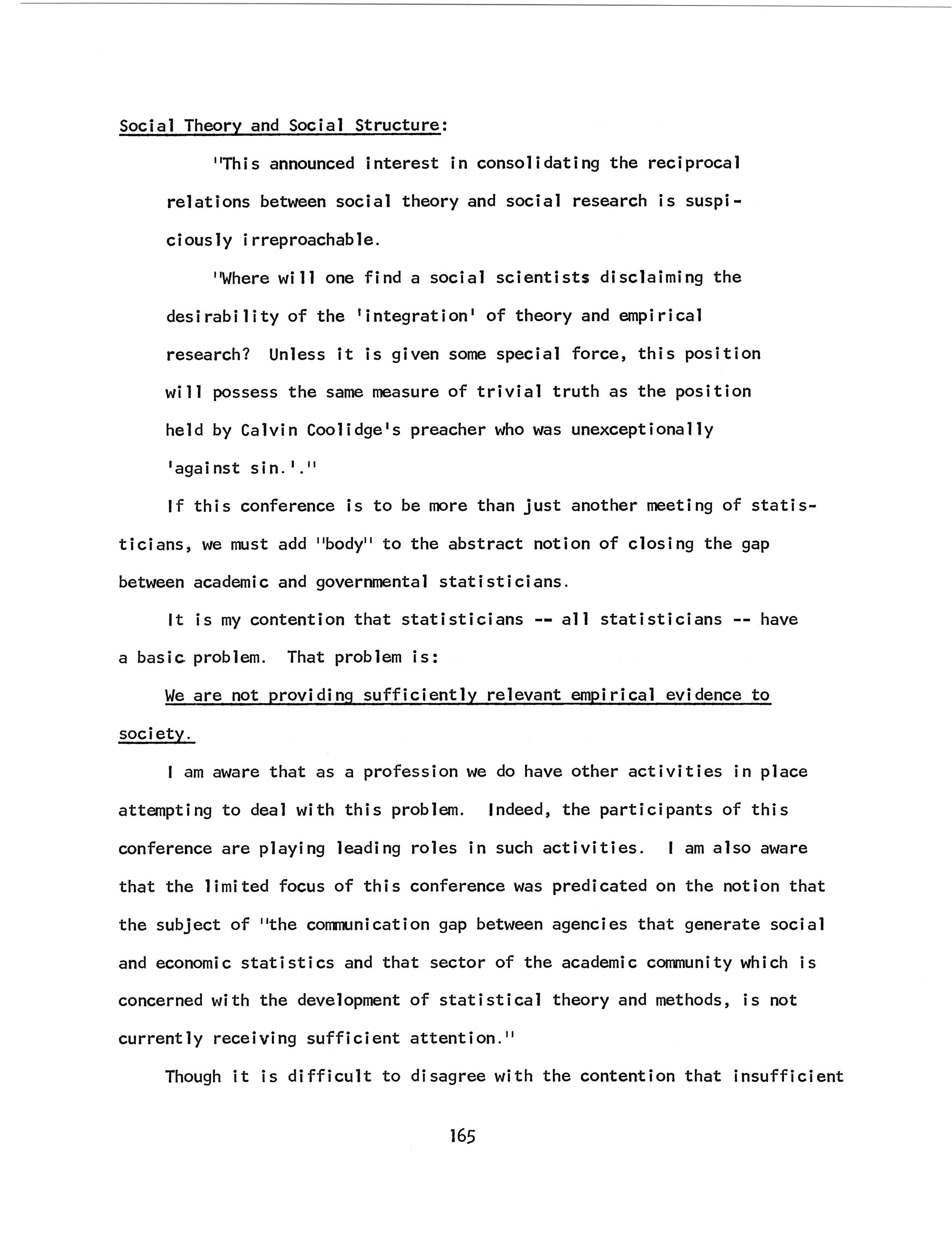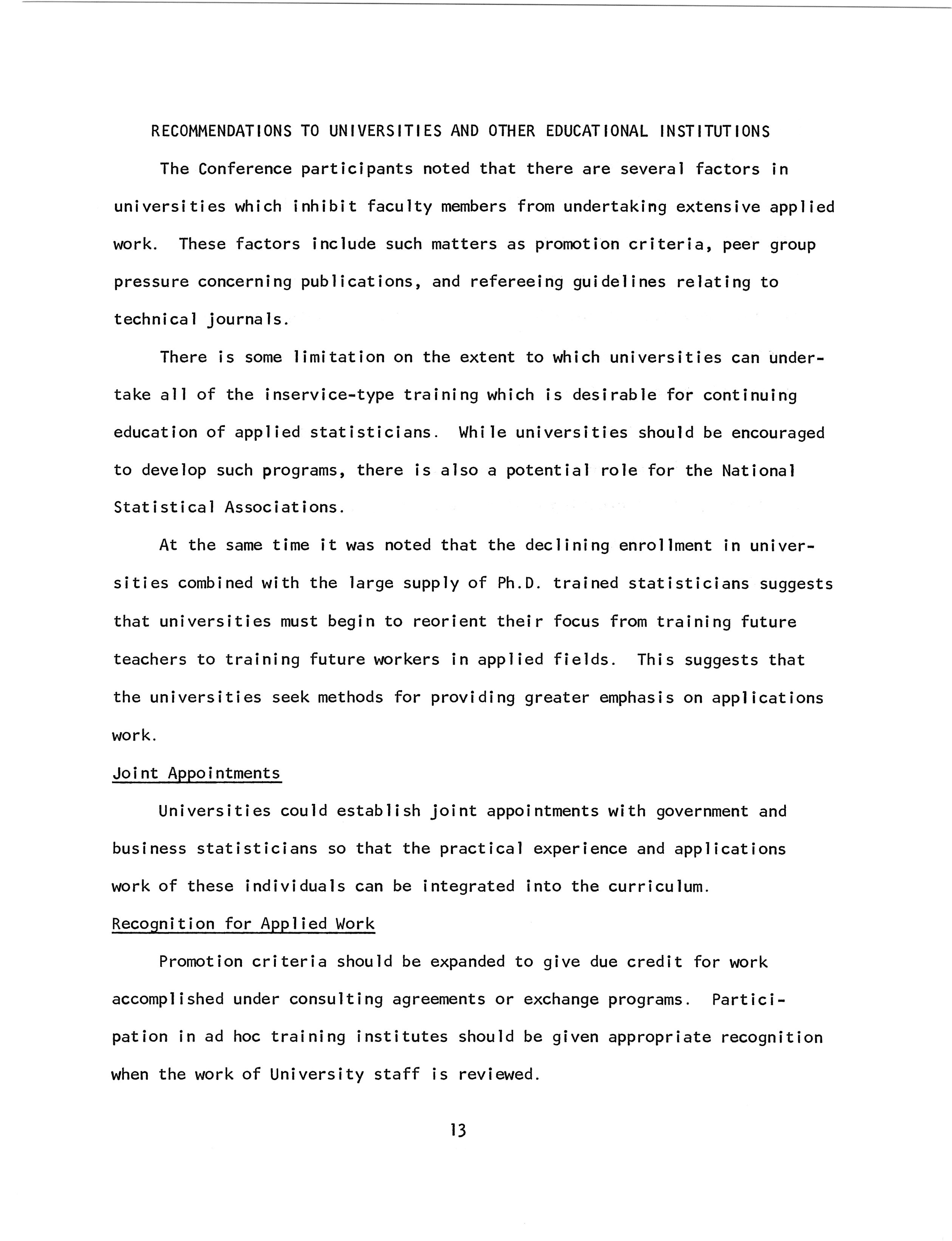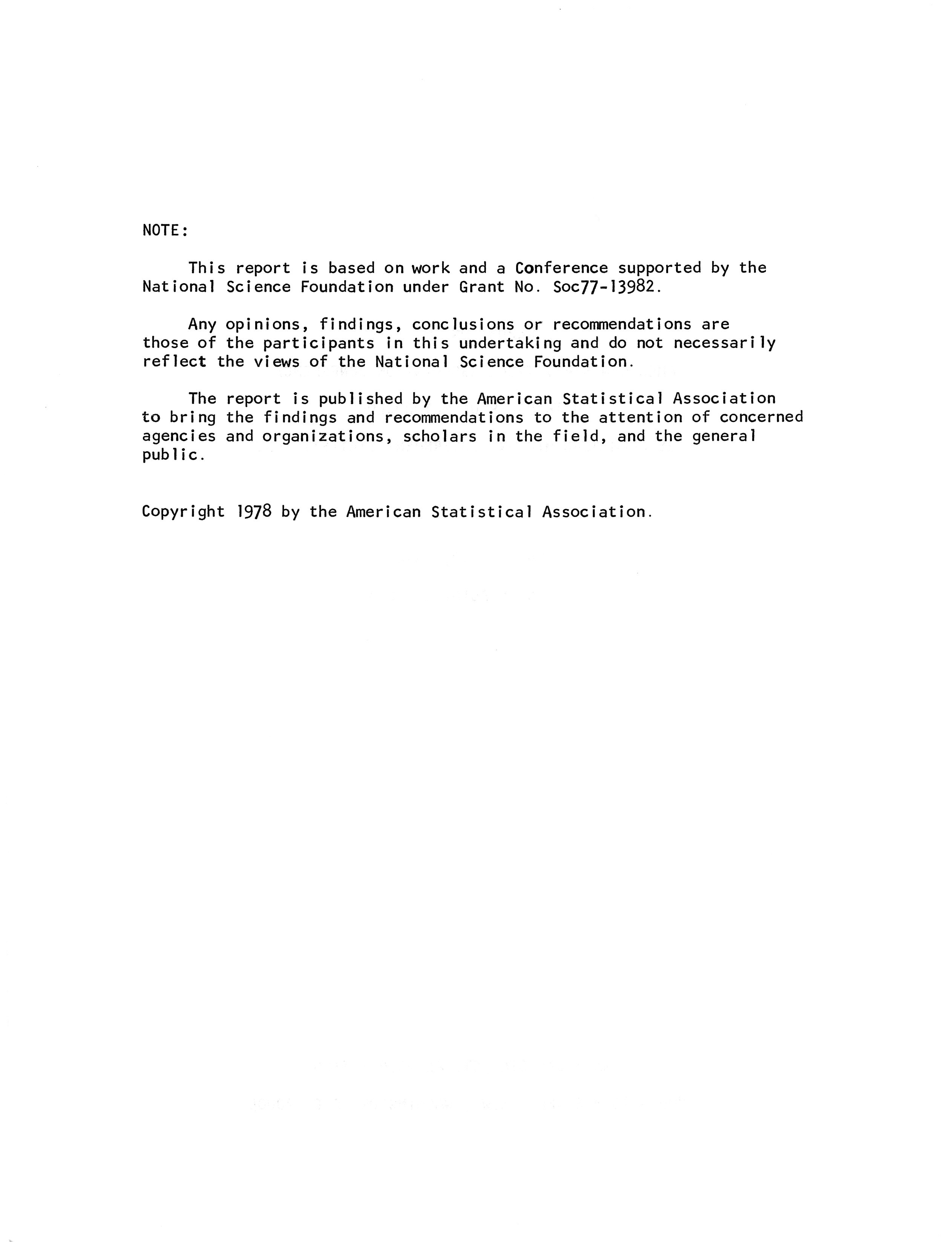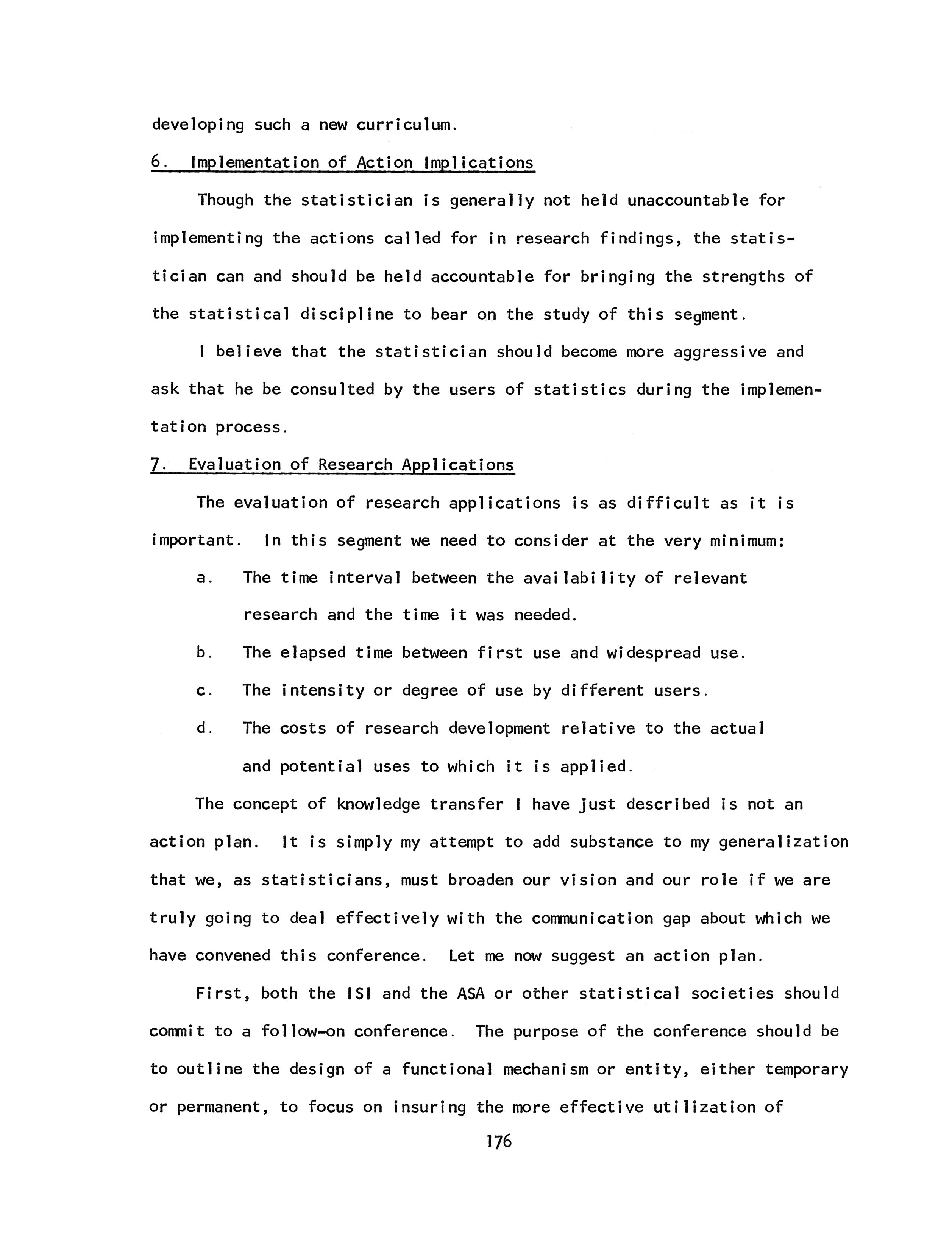 - Report on the American Statistical Association Conference on Transfer of Methodology Between Academic and Government Statisticians.