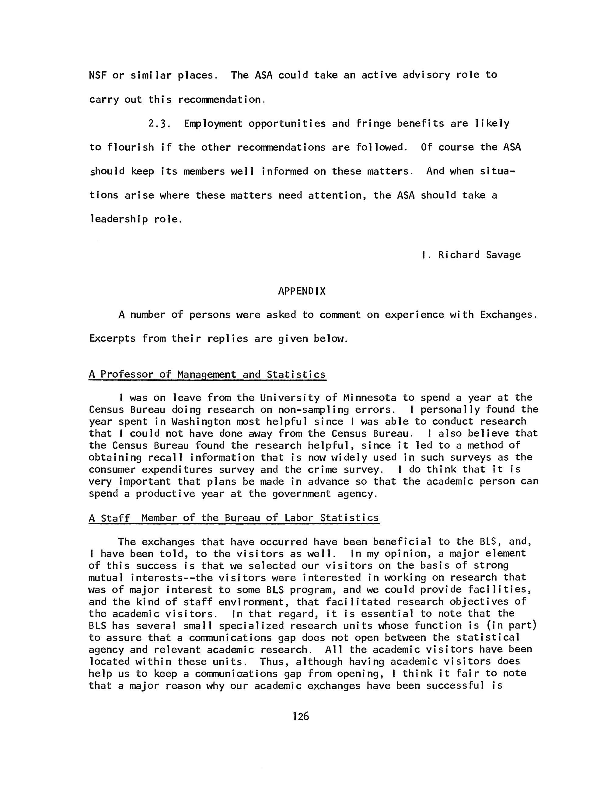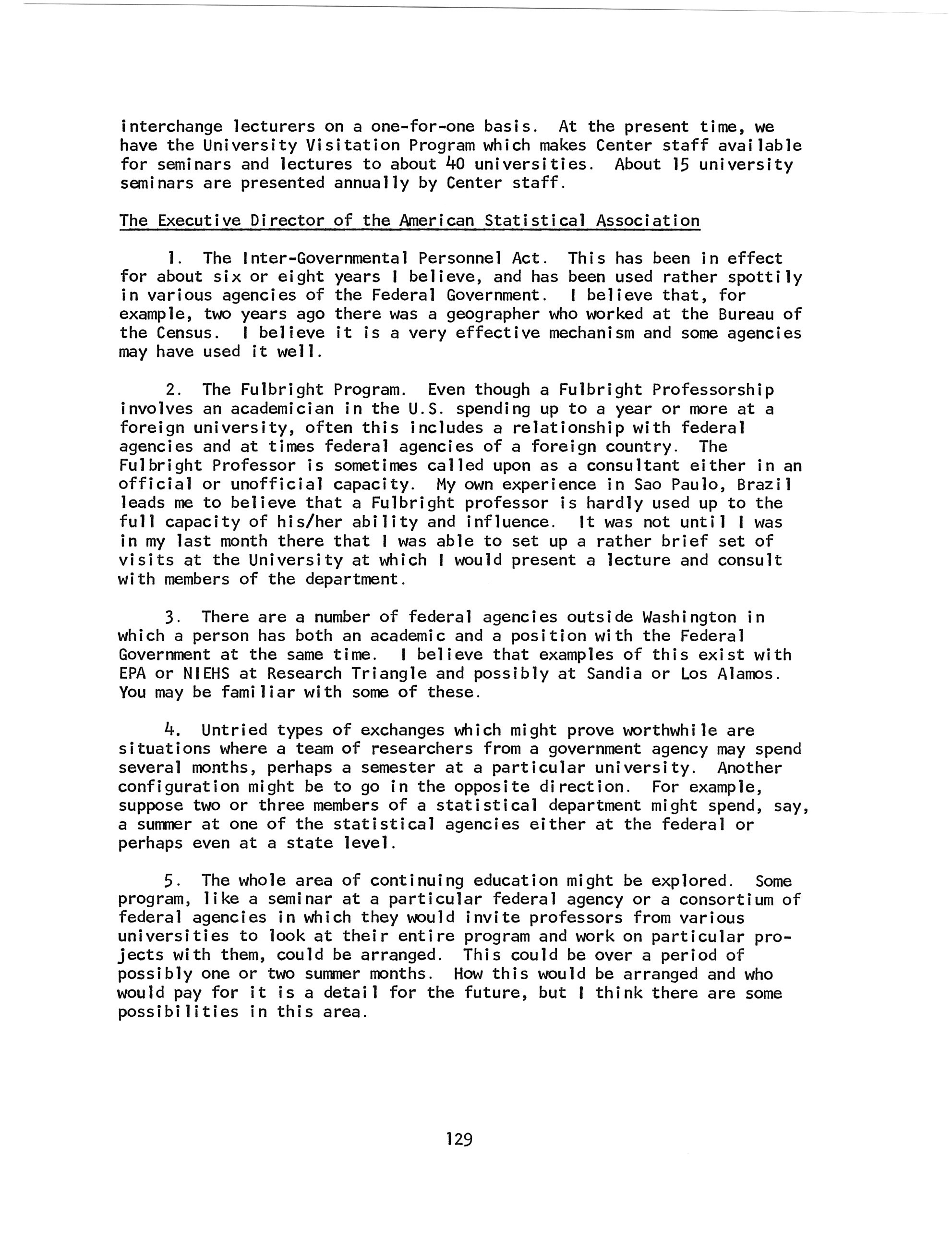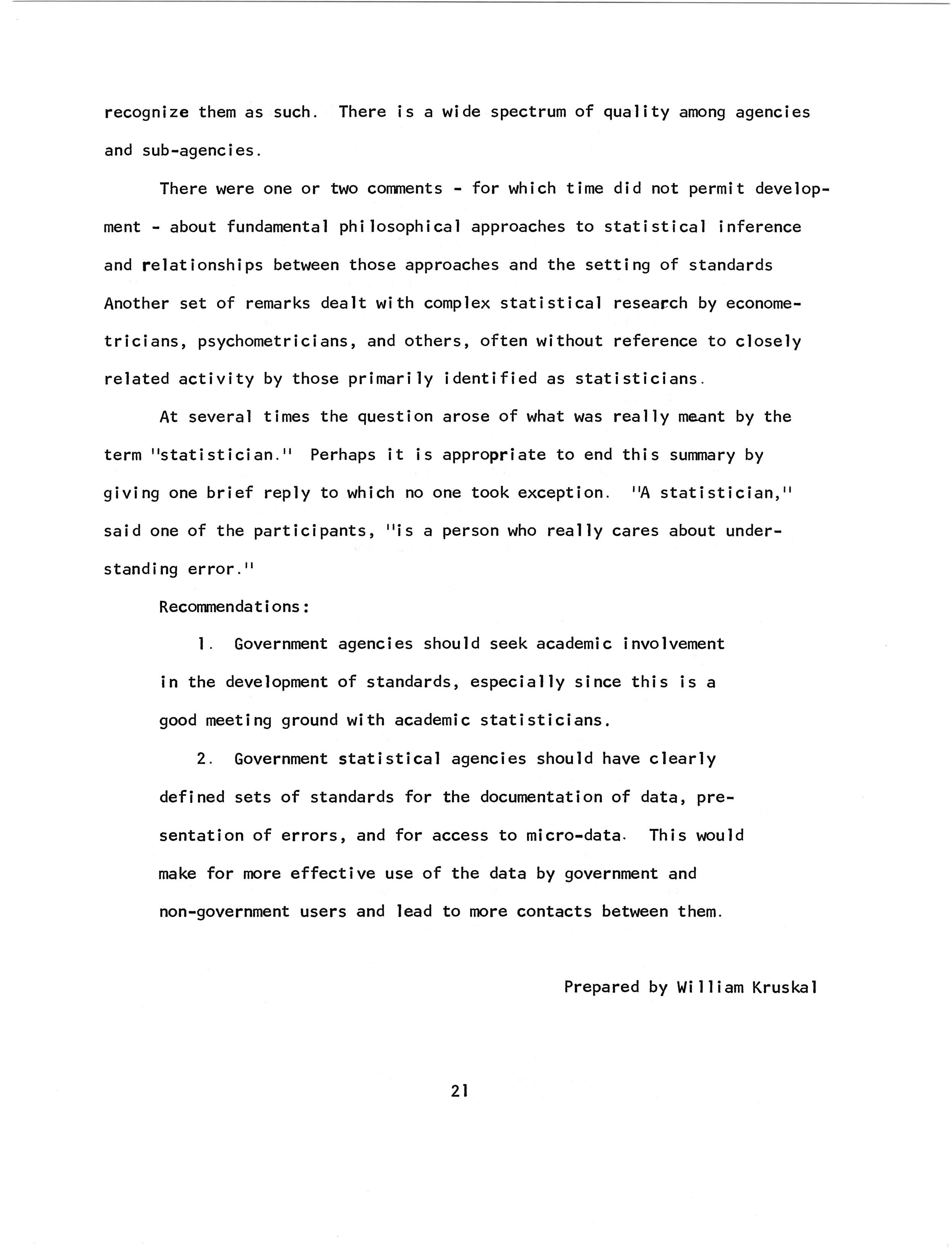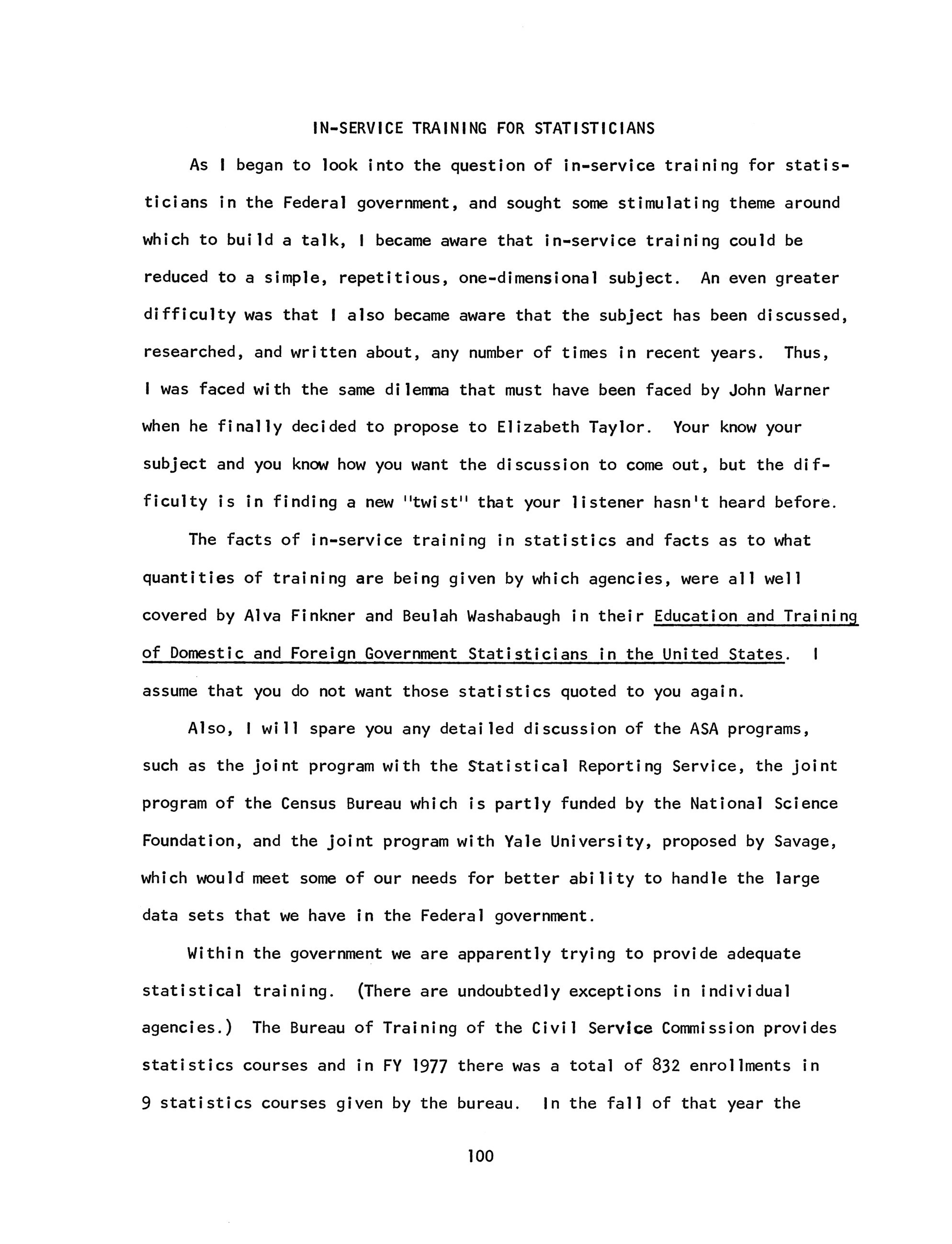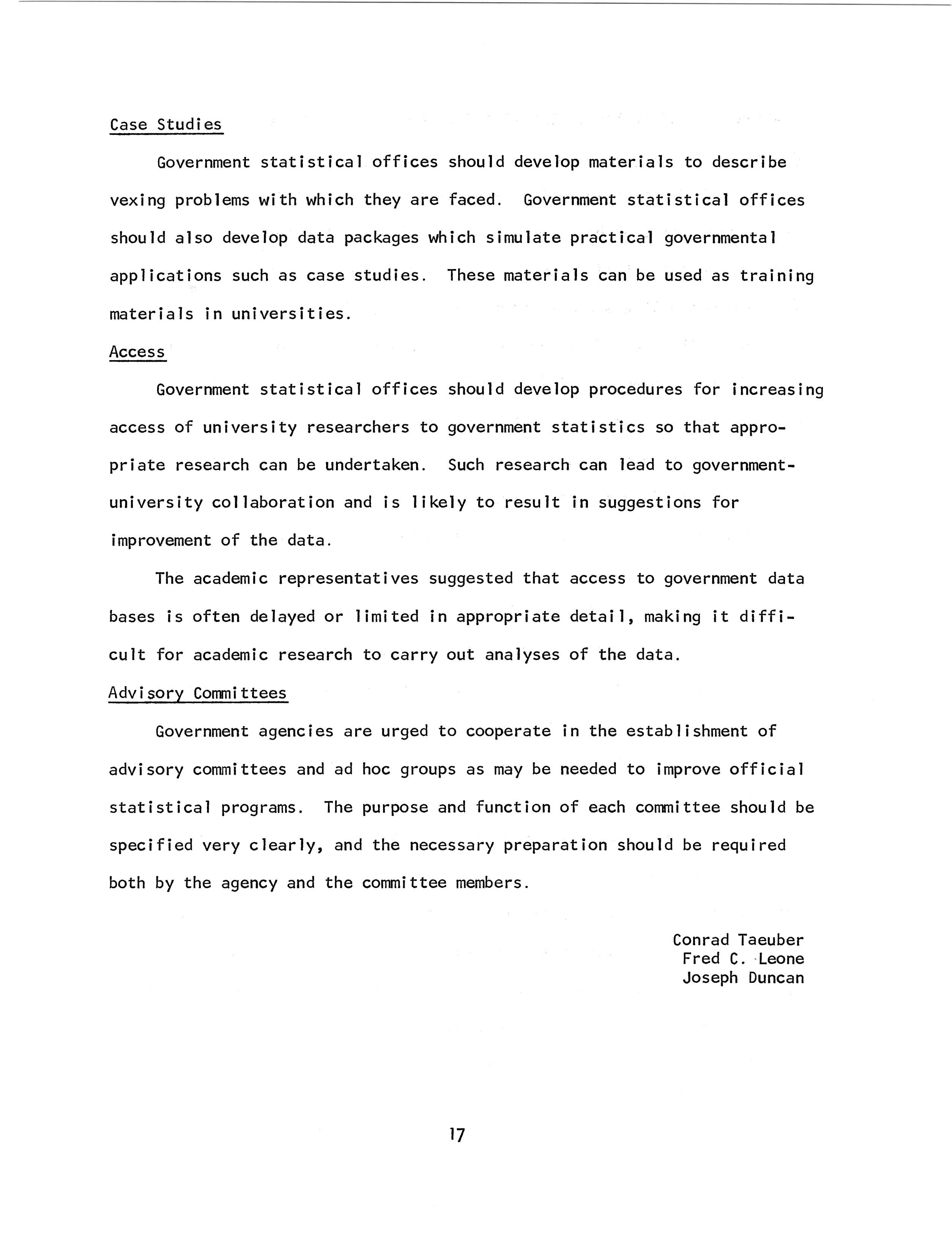 - Report on the American Statistical Association Conference on Transfer of Methodology Between Academic and Government Statisticians.