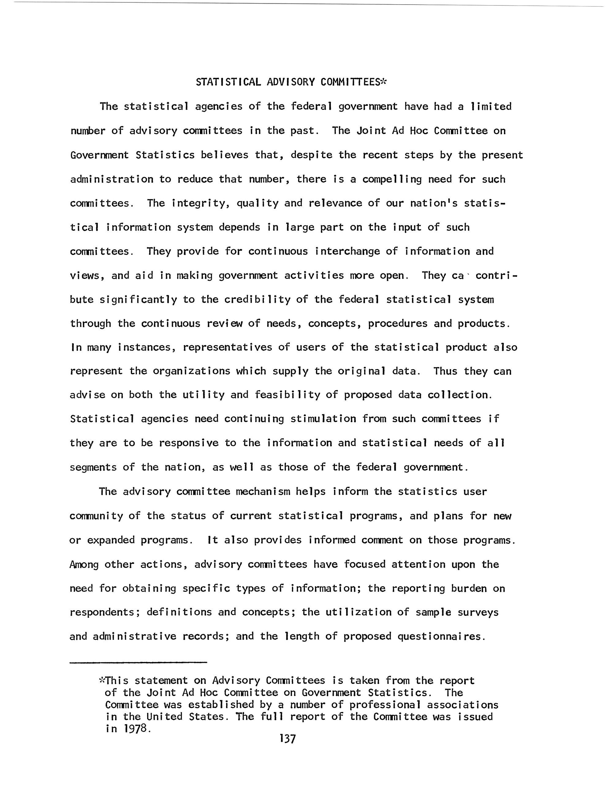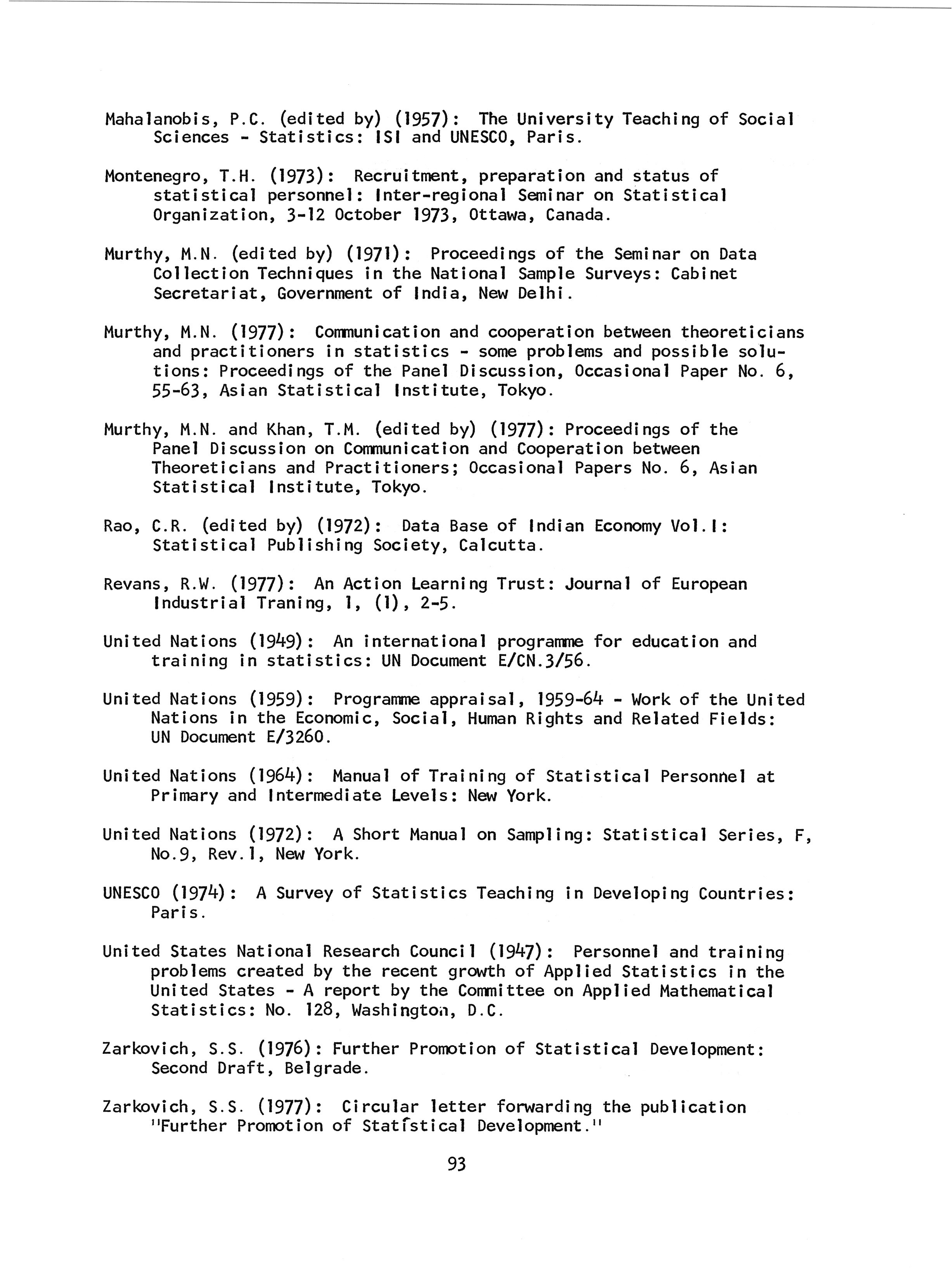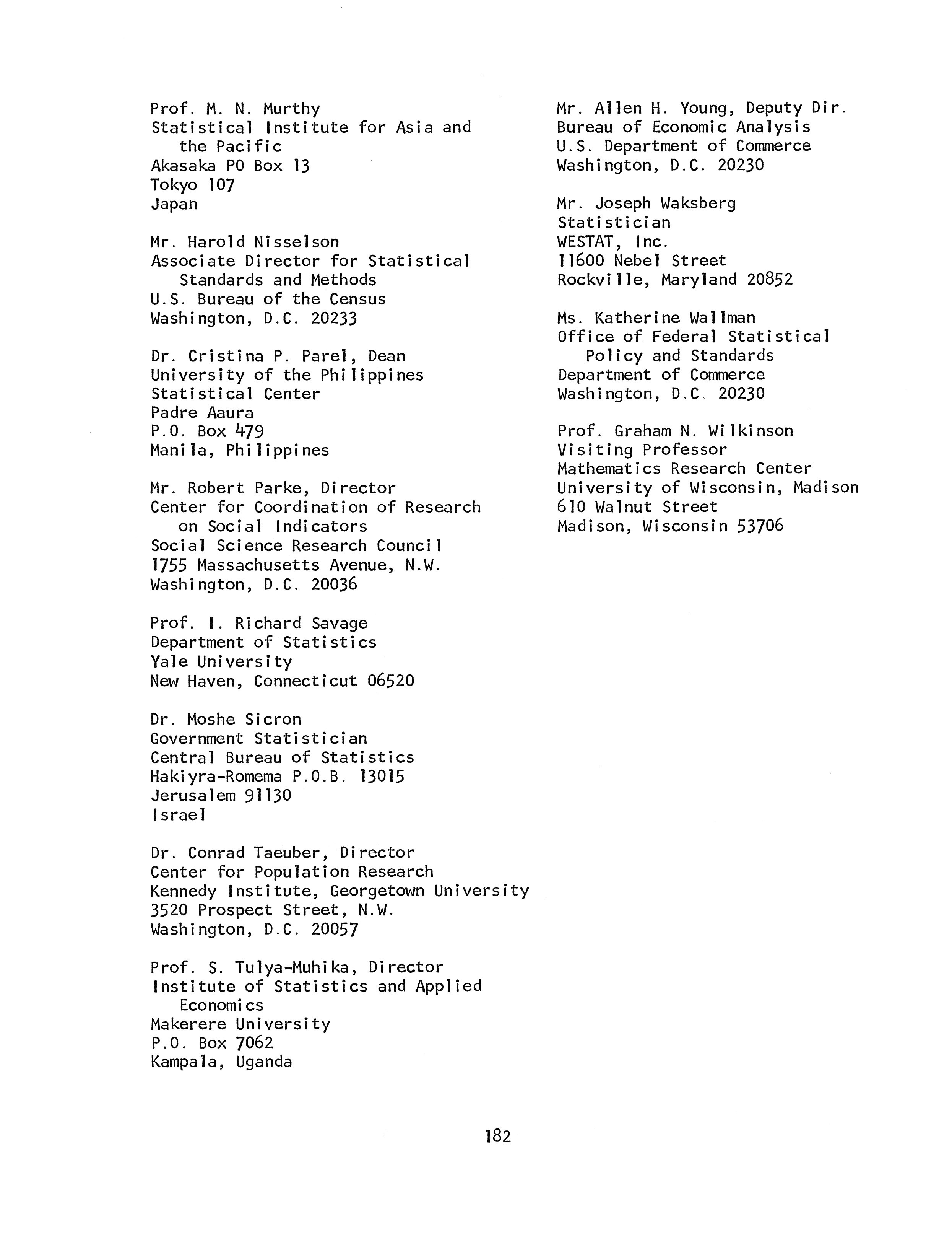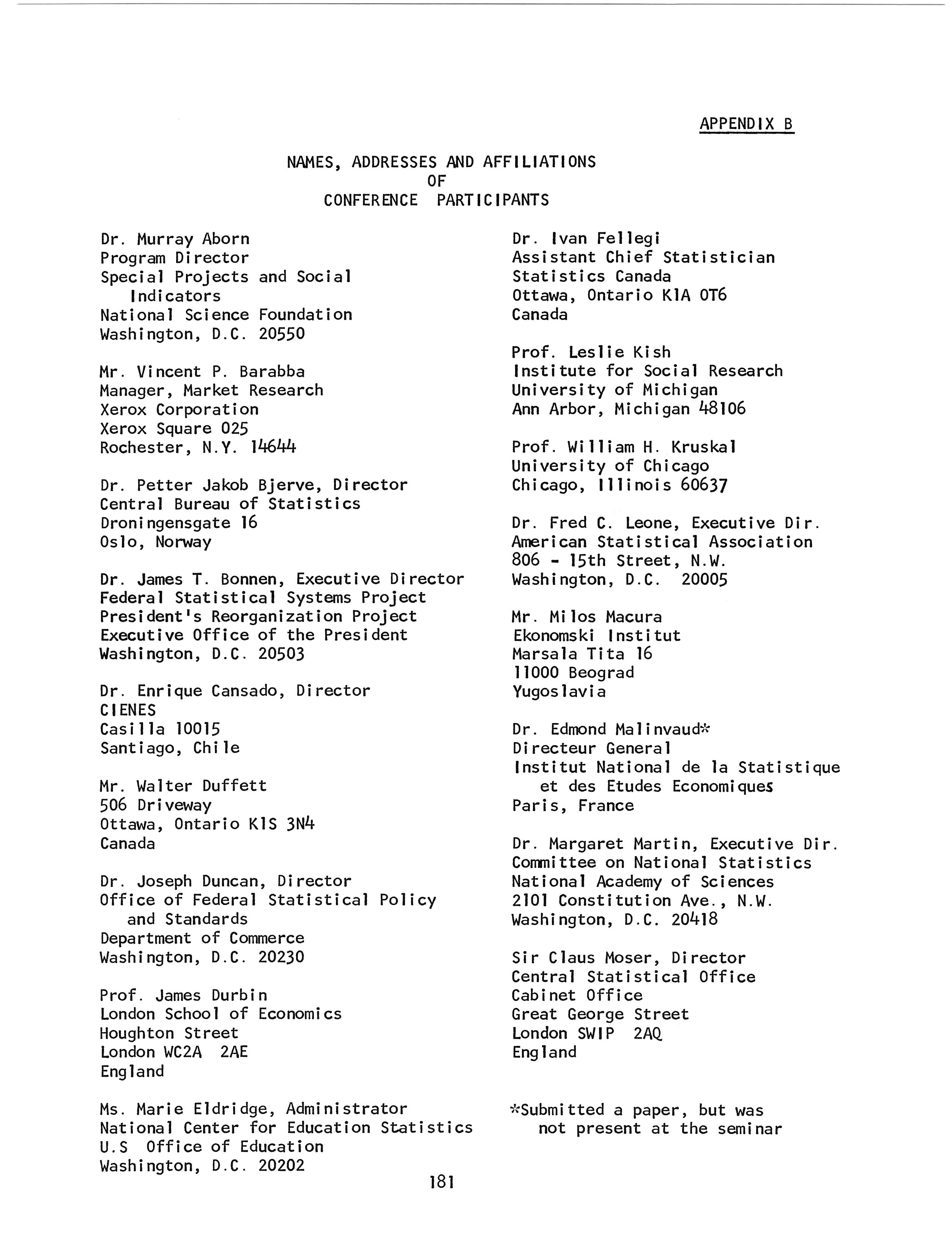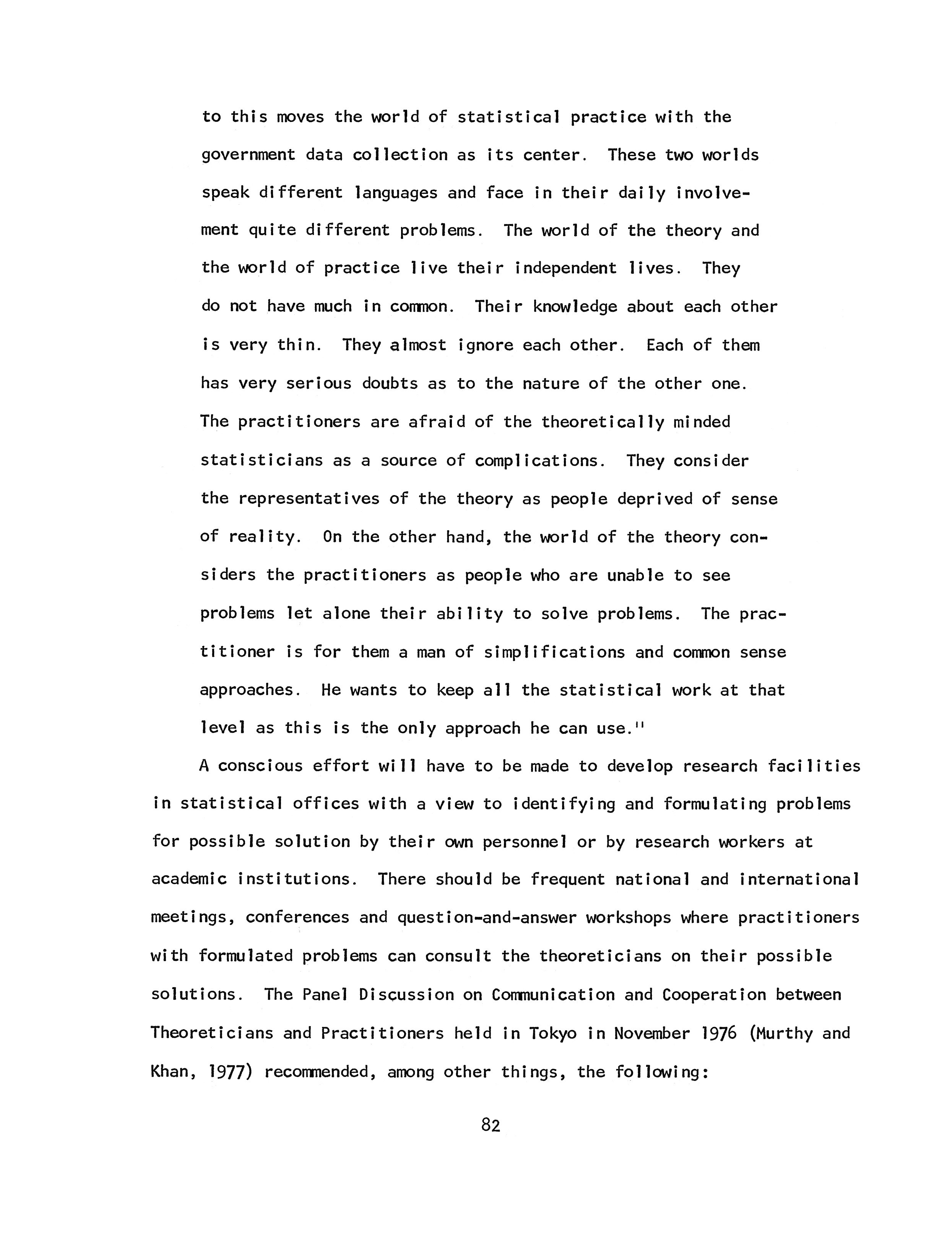 - Report on the American Statistical Association Conference on Transfer of Methodology Between Academic and Government Statisticians.