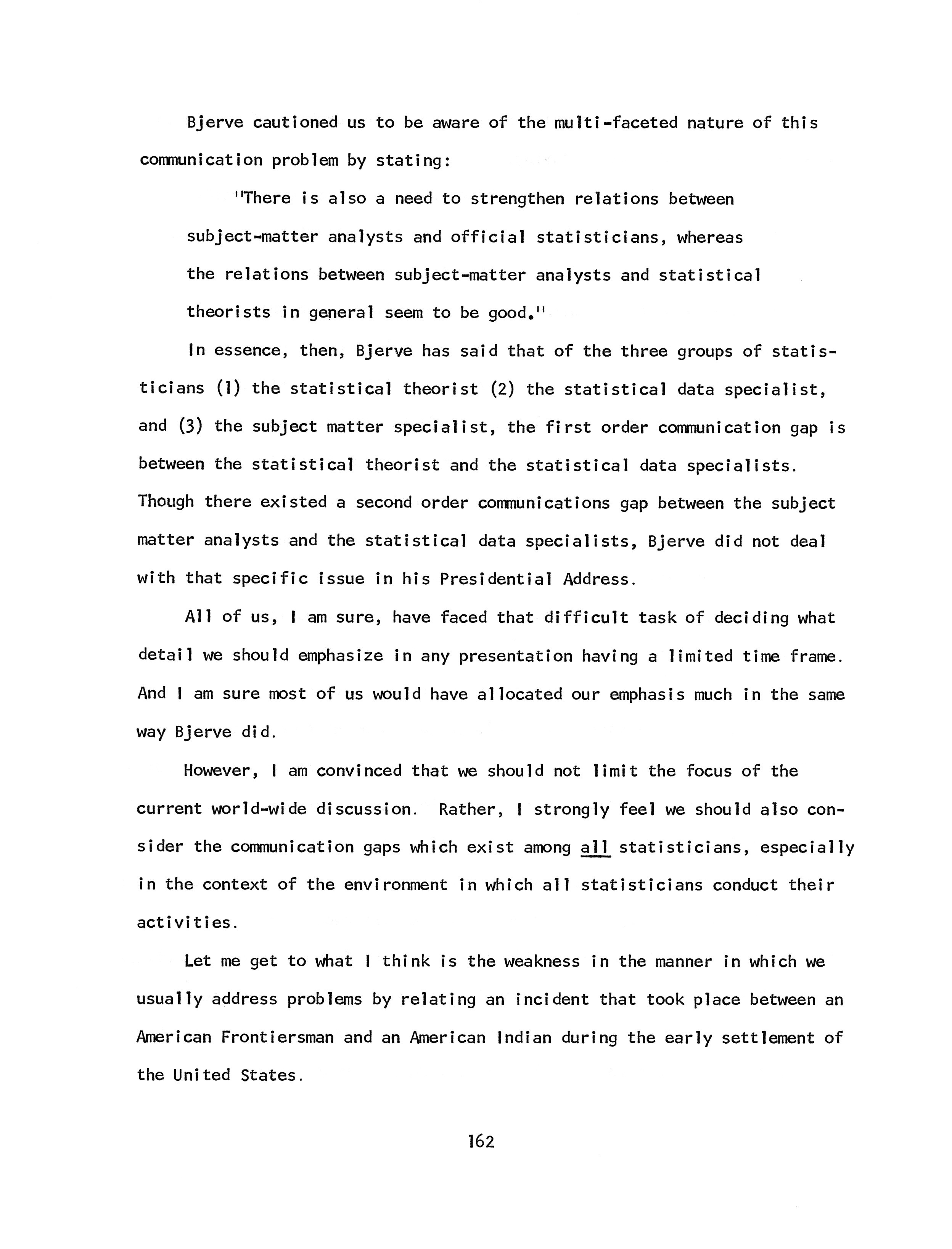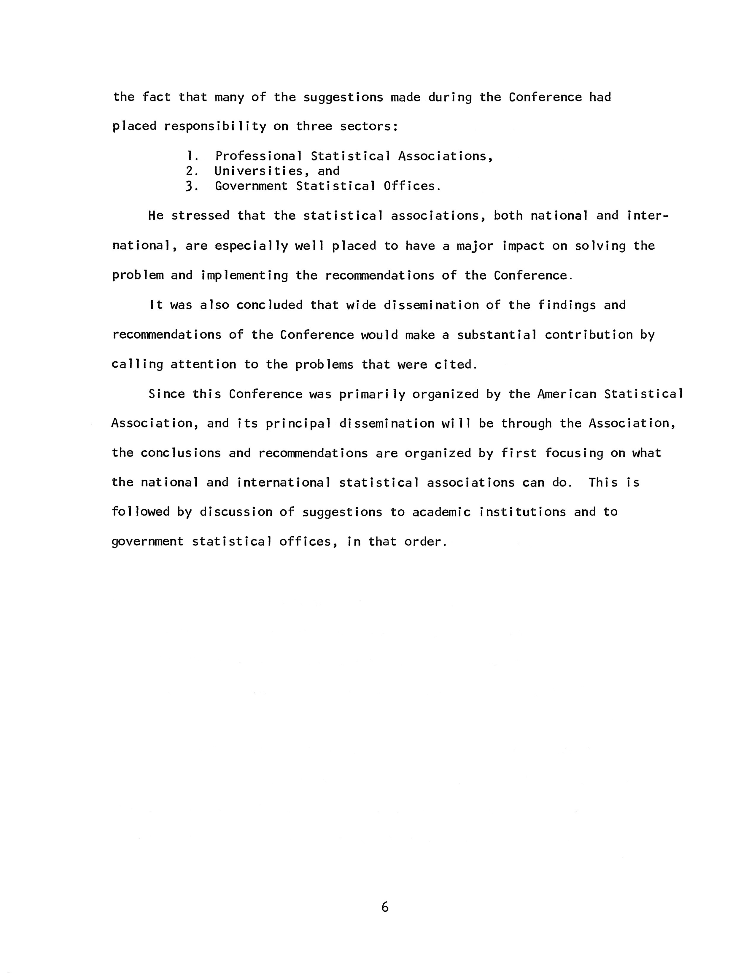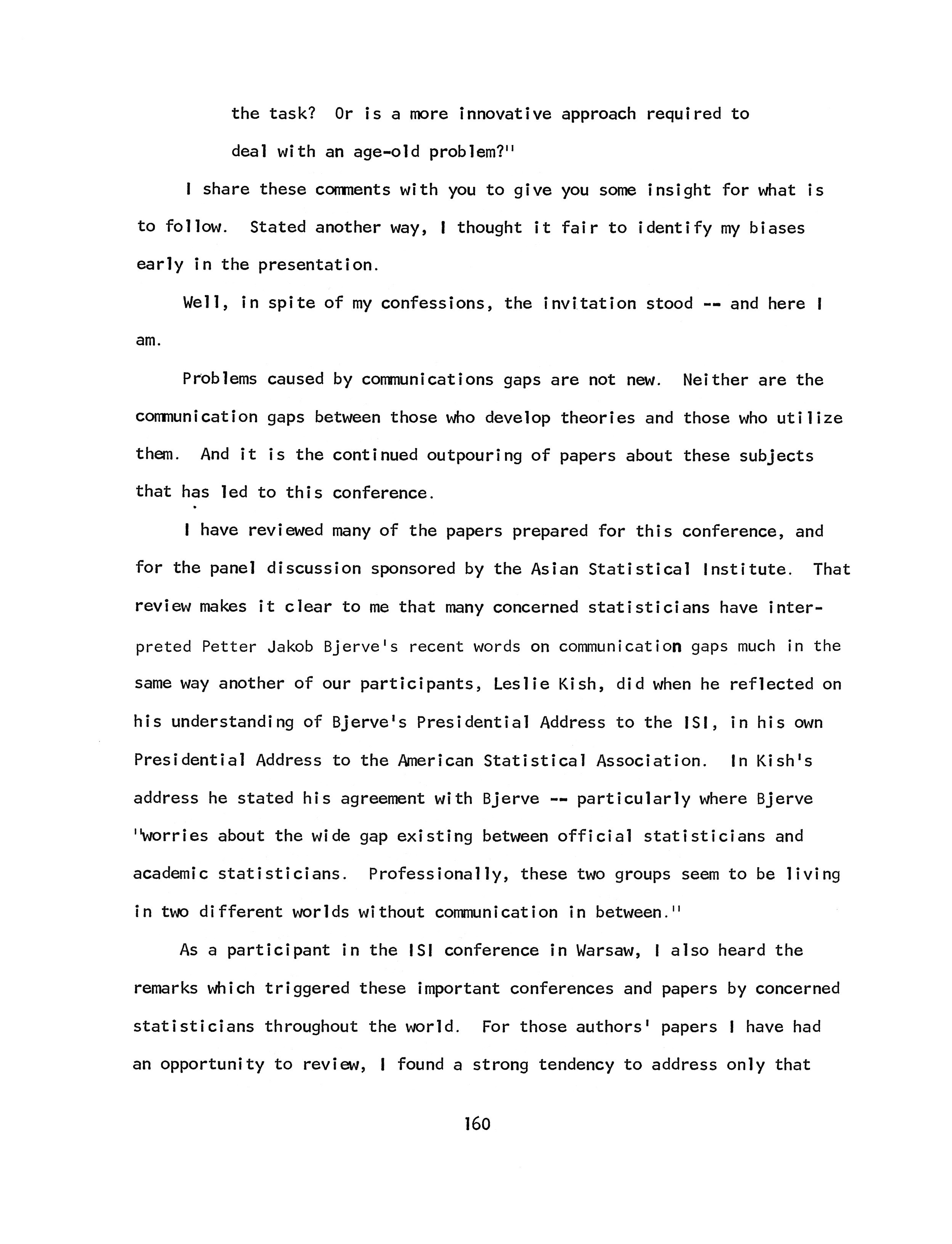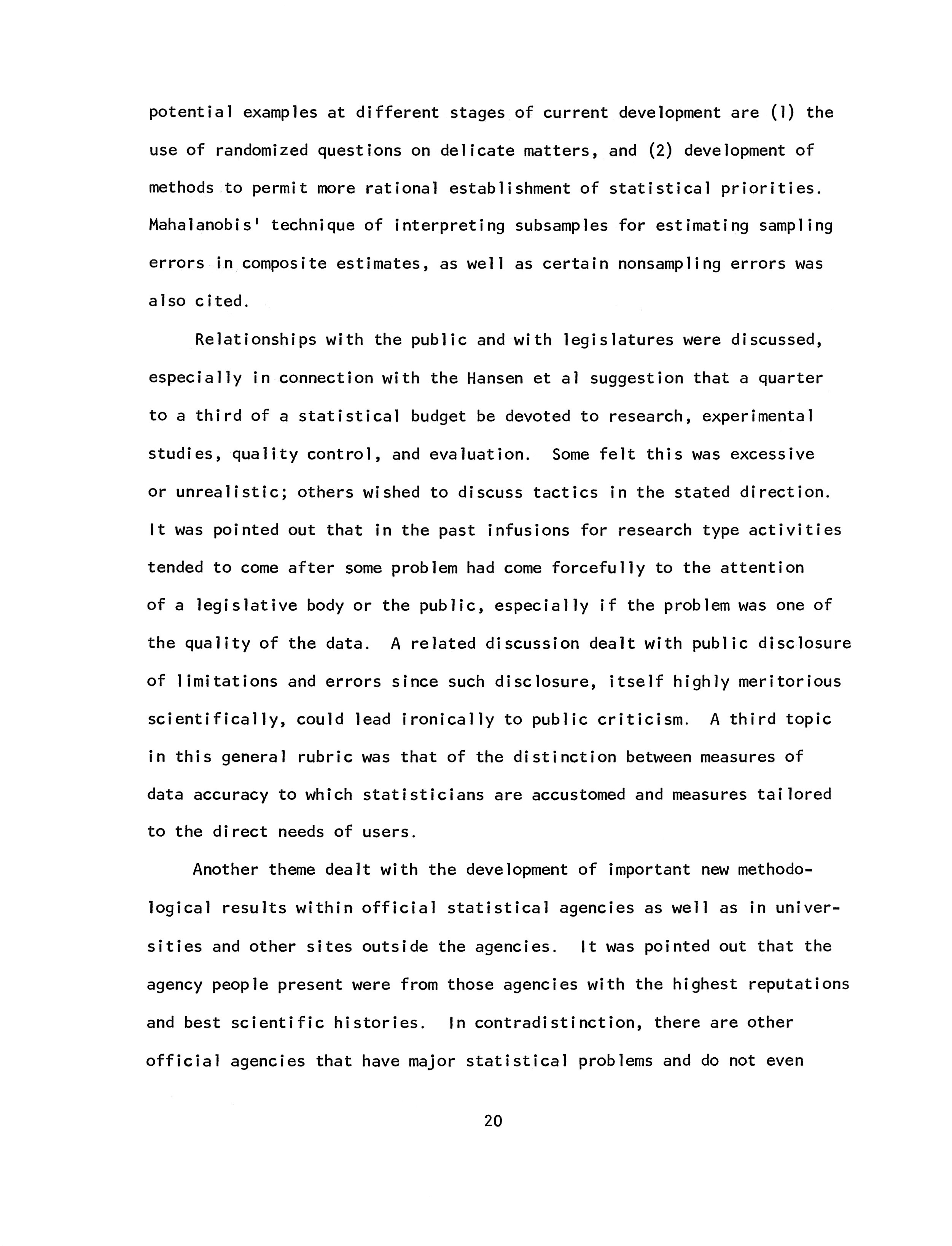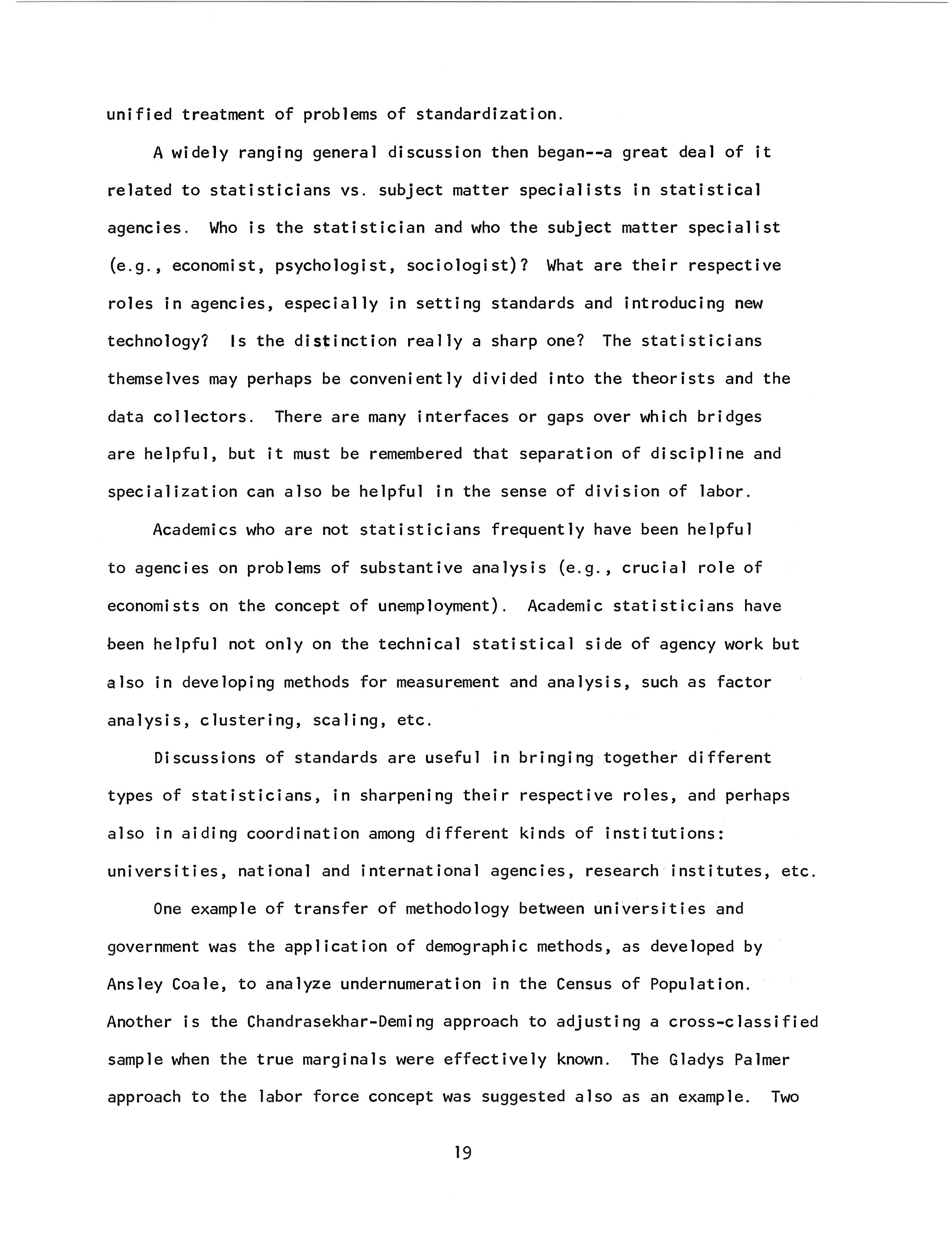 - Report on the American Statistical Association conference on transfer of methodology between academic and government statisticians