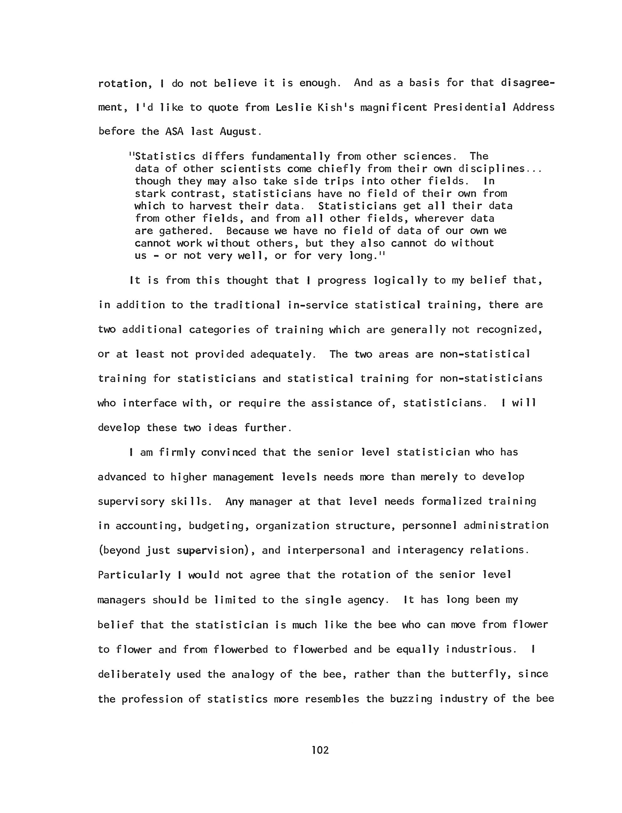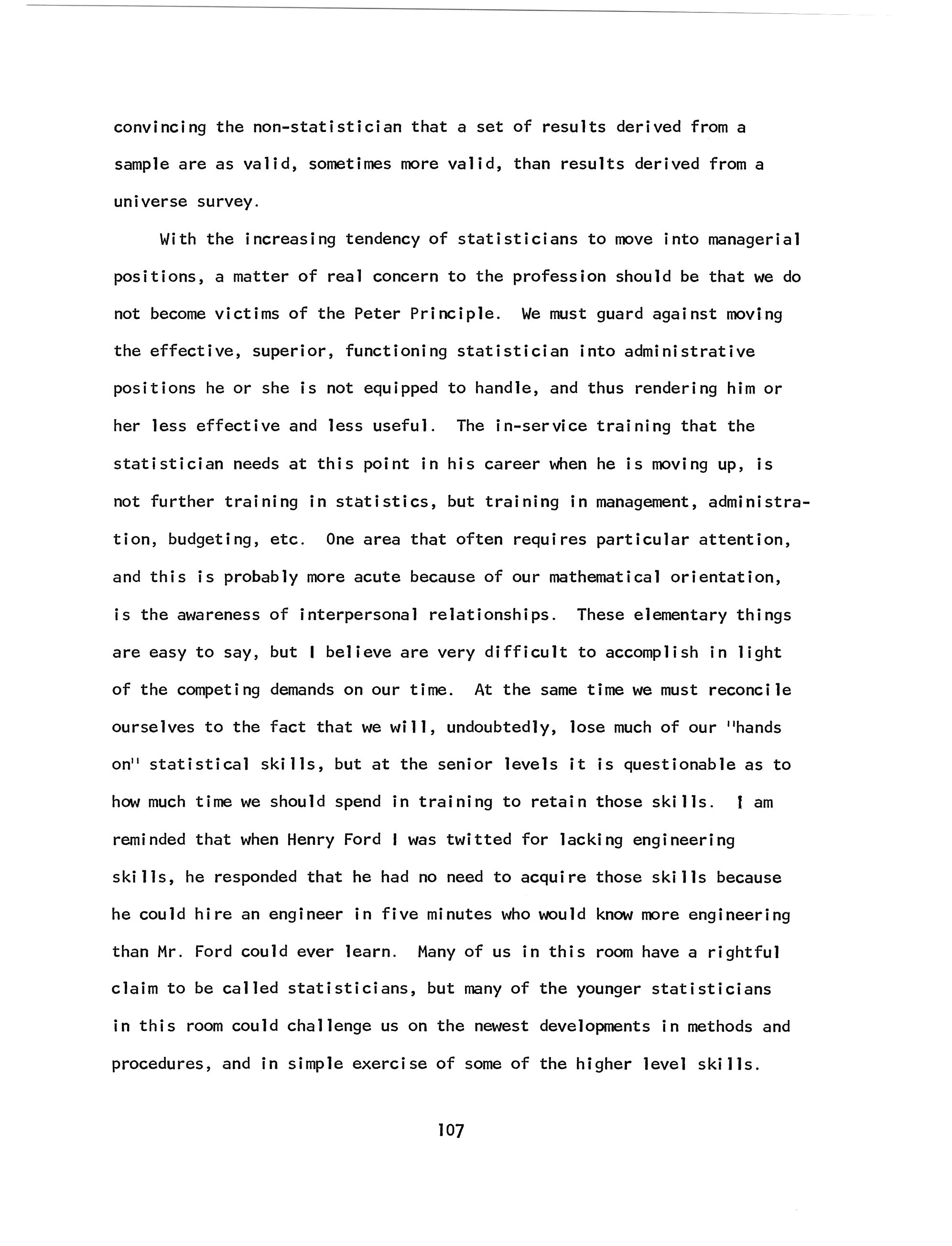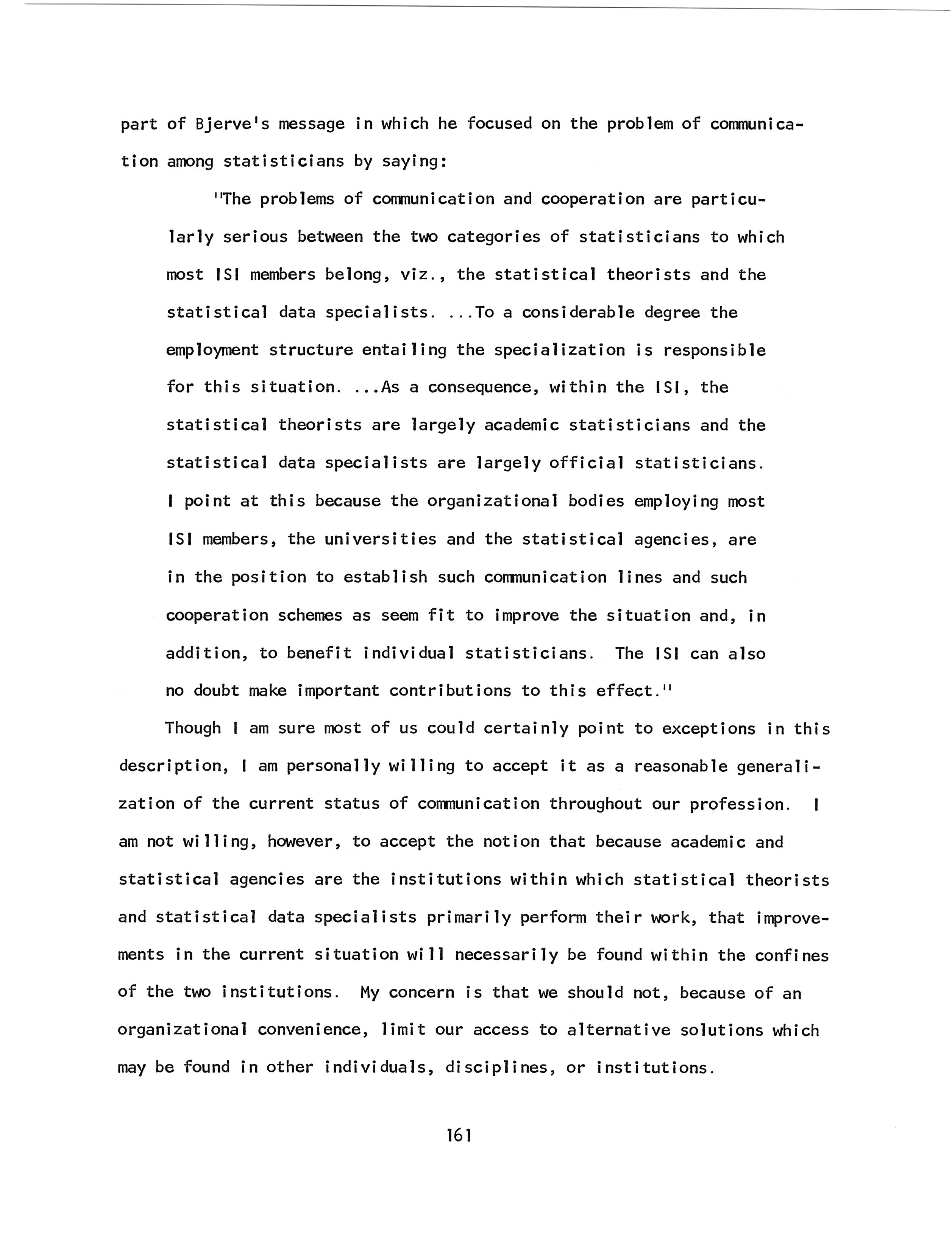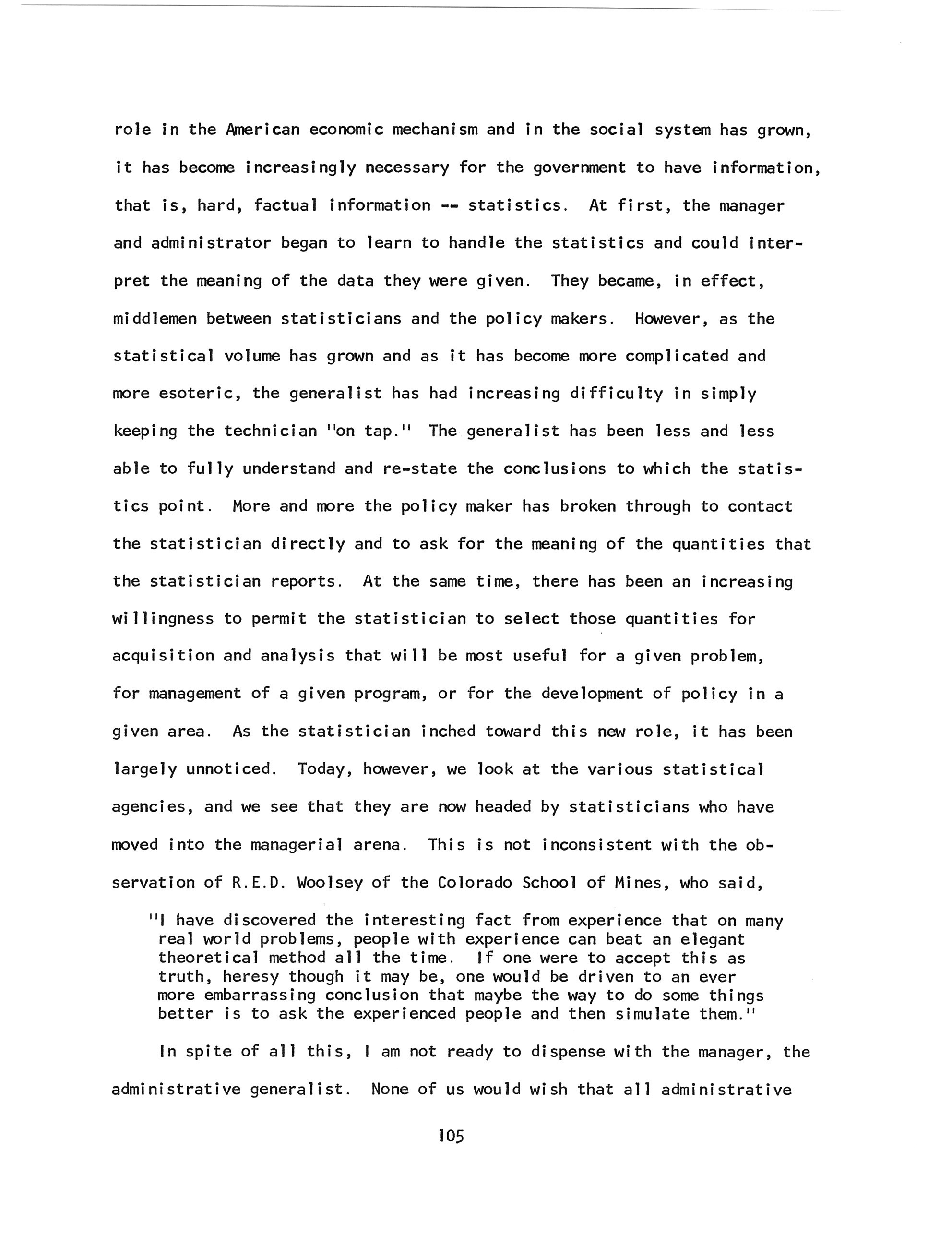 - "Report on the American Statistical Association conference on transfer of methodology between academic and government statisticians", American Statistical Association Collection, Iowa State University Library Digital Collections