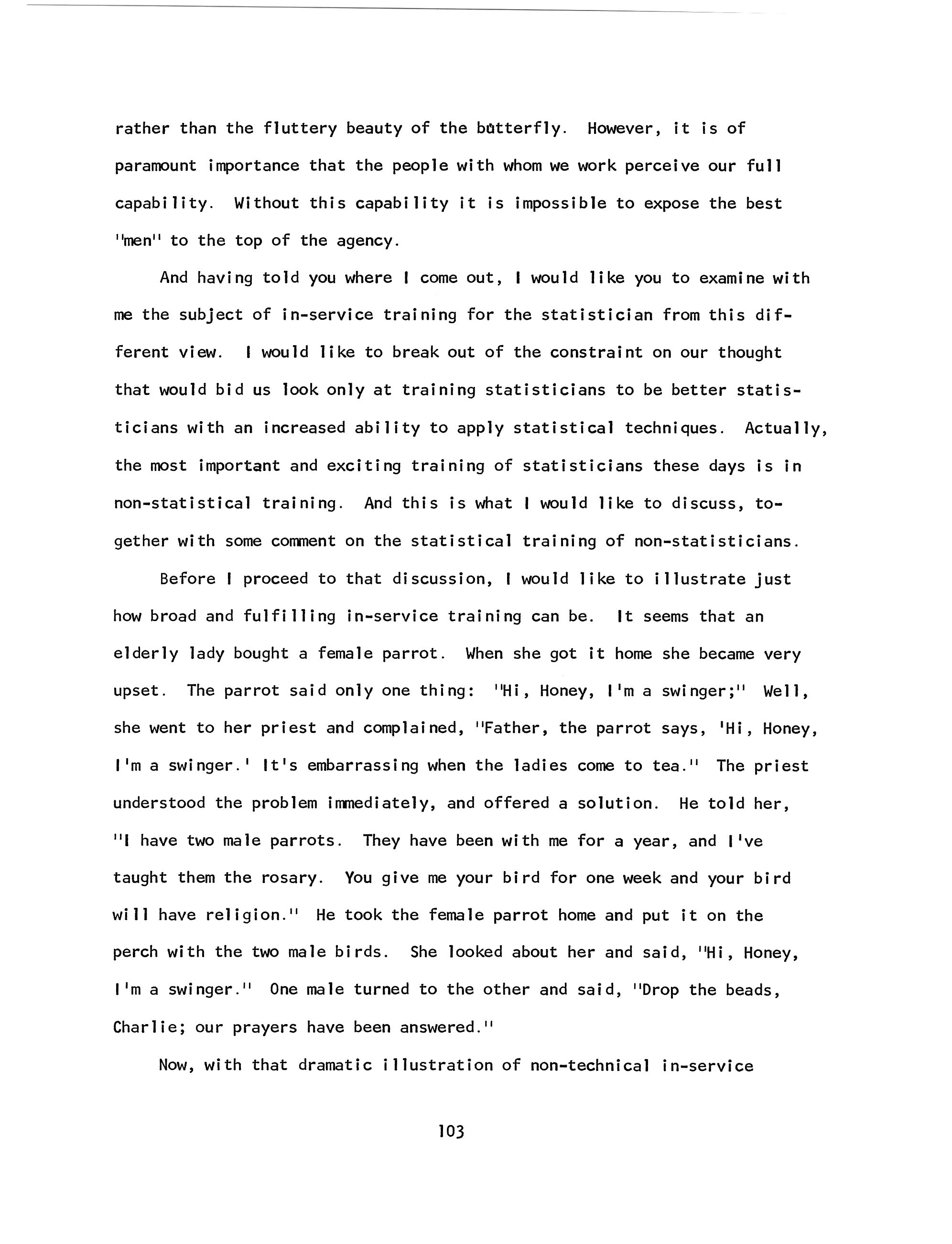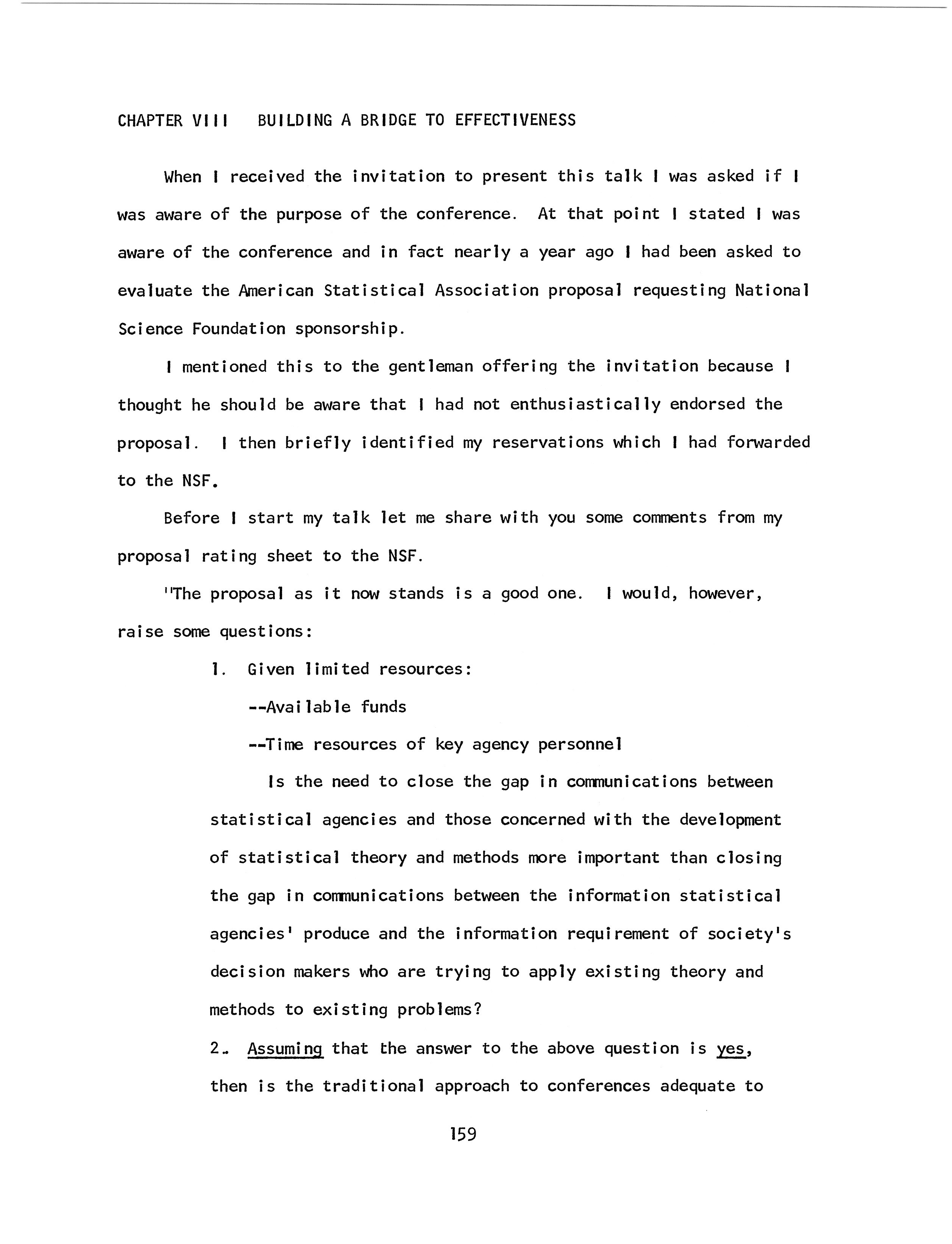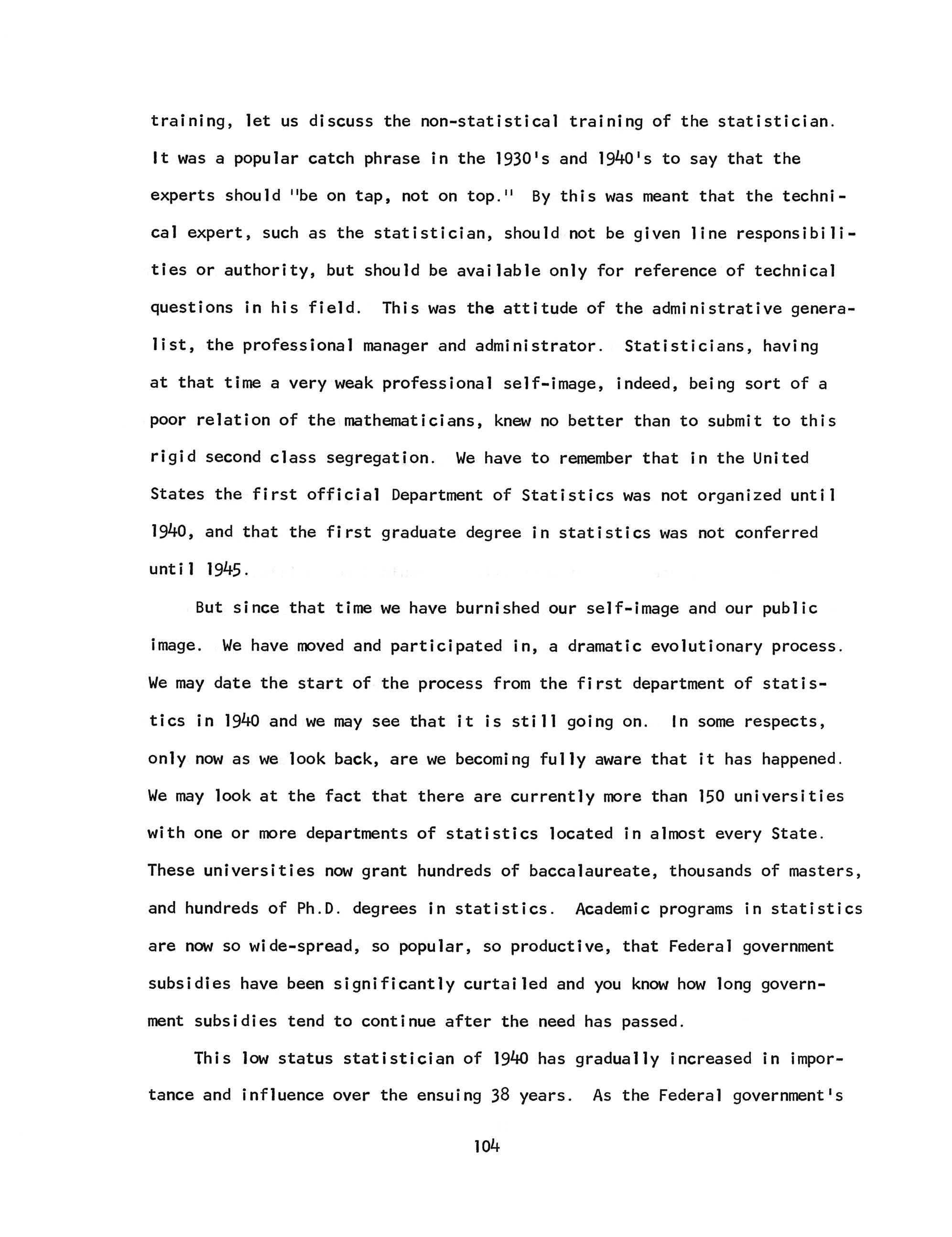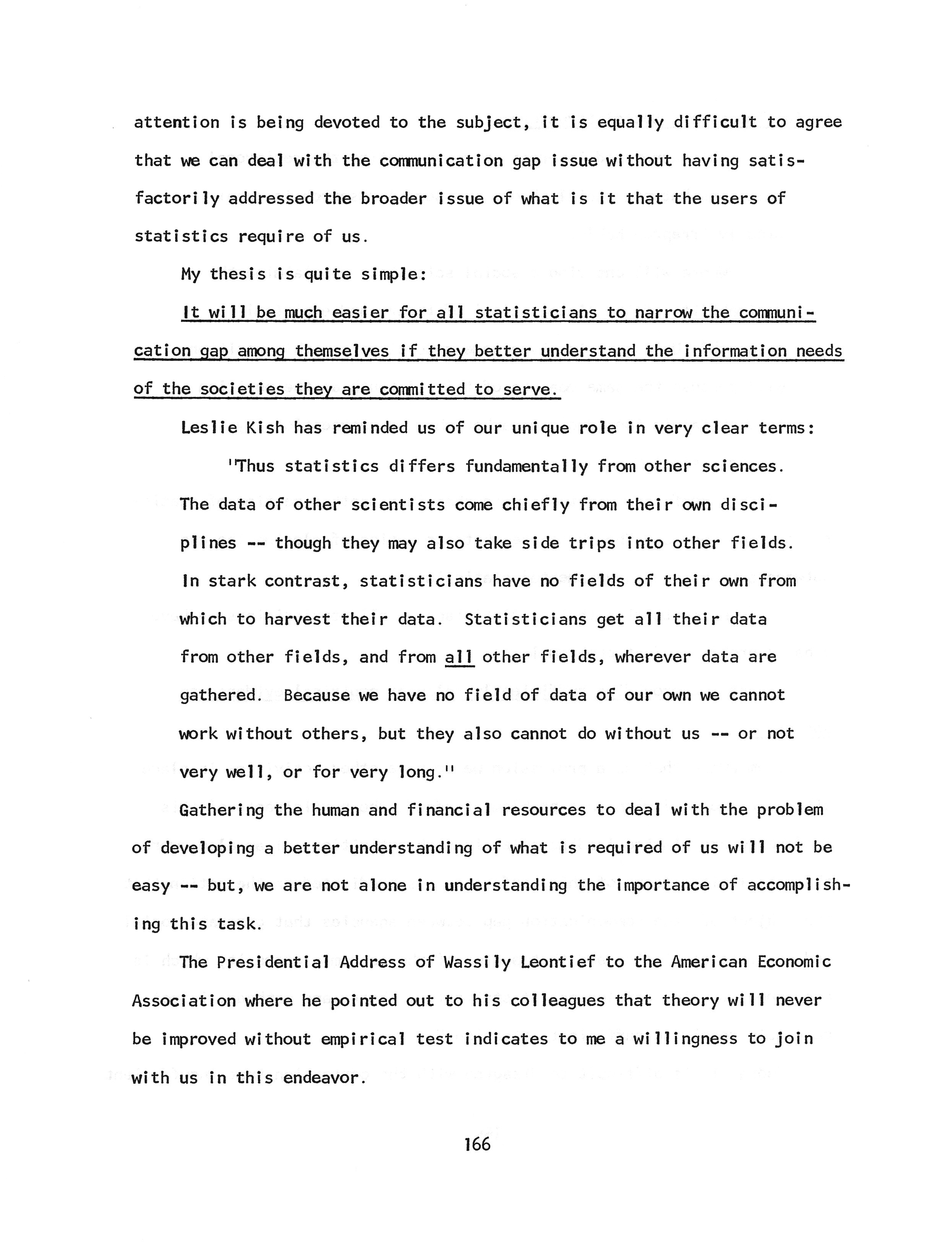 - "Report on the American Statistical Association conference on transfer of methodology between academic and government statisticians", American Statistical Association Collection, Iowa State University Library Digital Collections