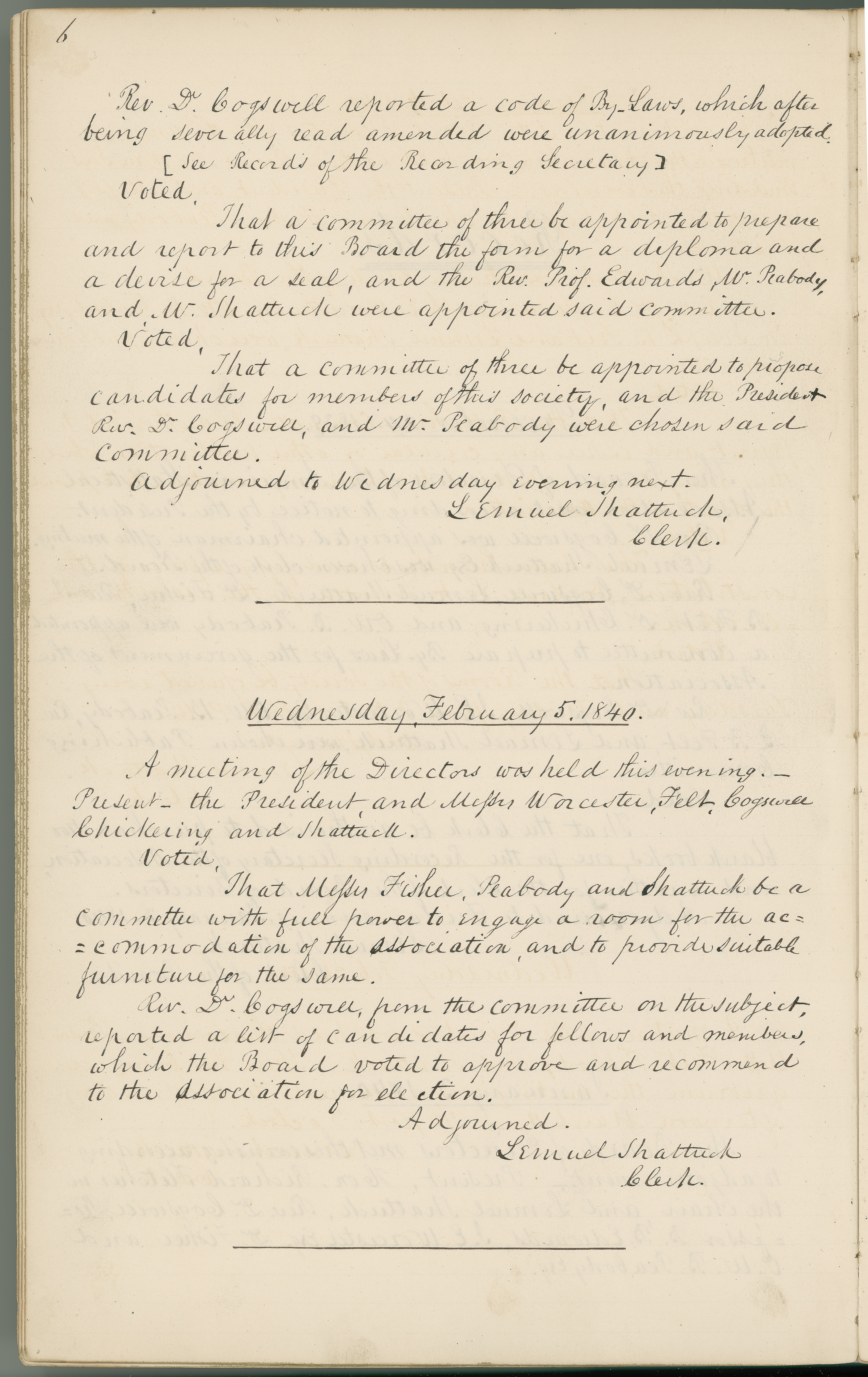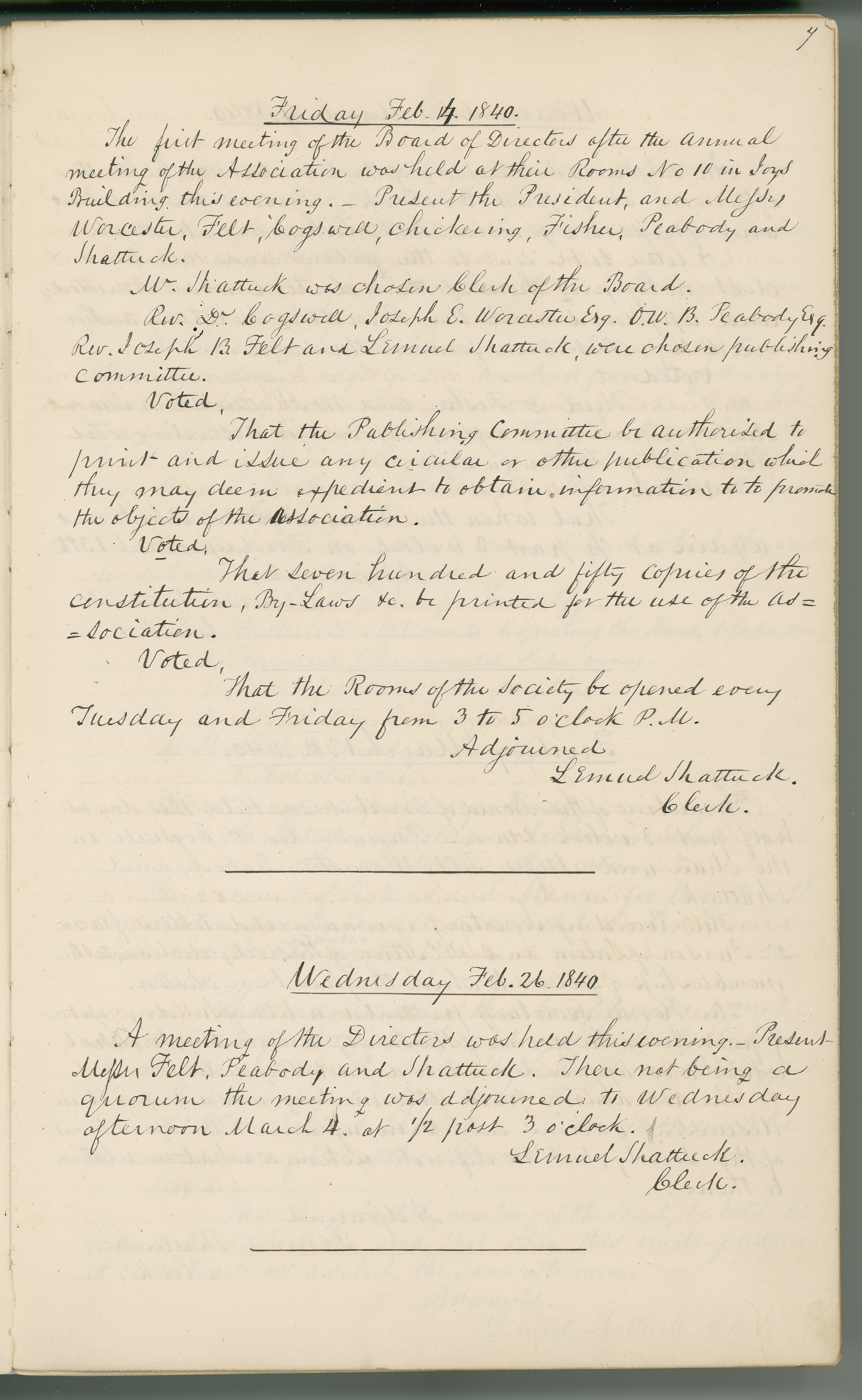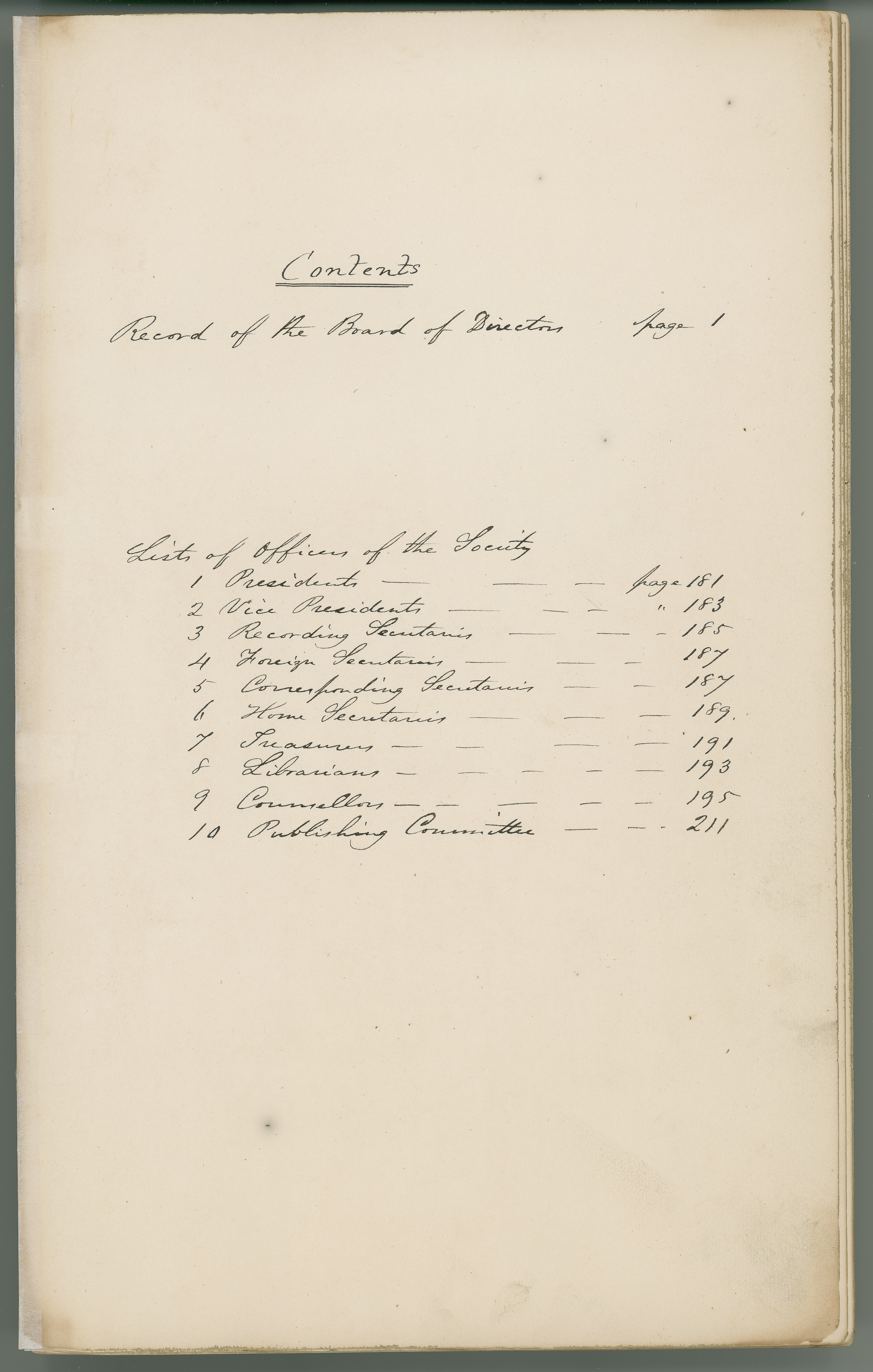 - These Board of Directors' records, 1839-1872, include handwritten minutes for meetings of the association. The information includes attendance, officer and committee lists, presentations, proposals for membership, and resolutions.