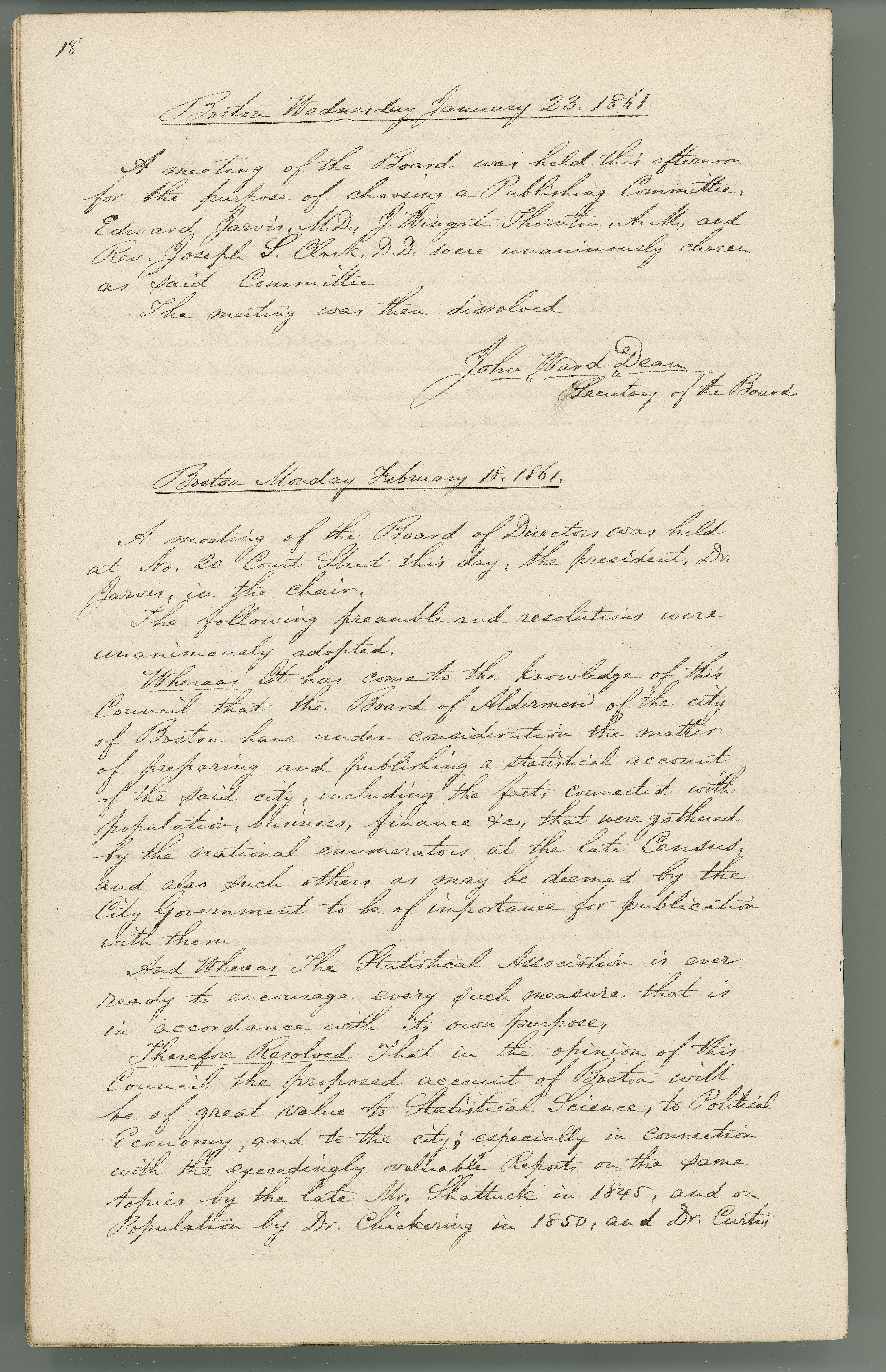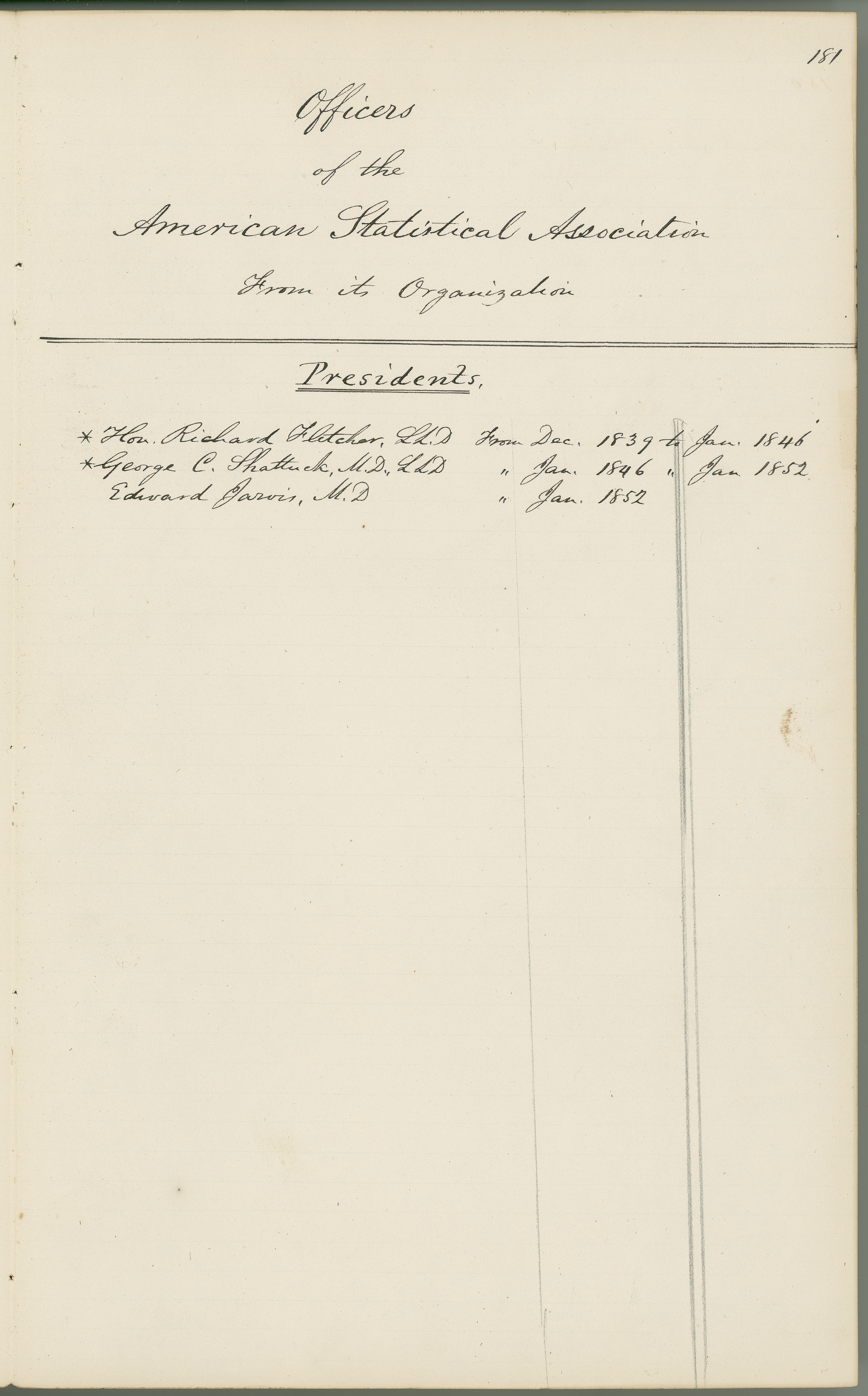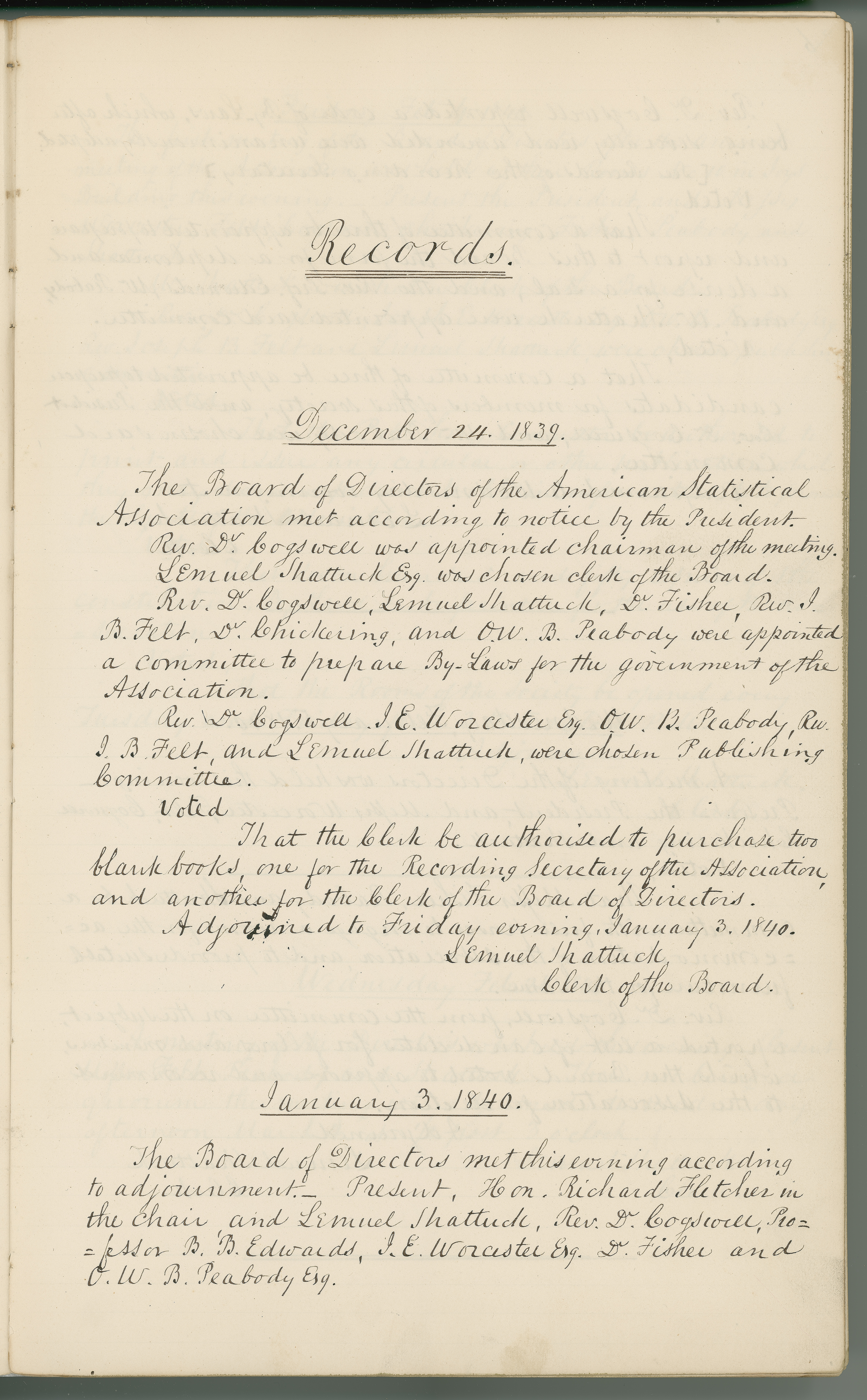 - Records of the Board of Directors of the American Statistical Association, 1839-1872