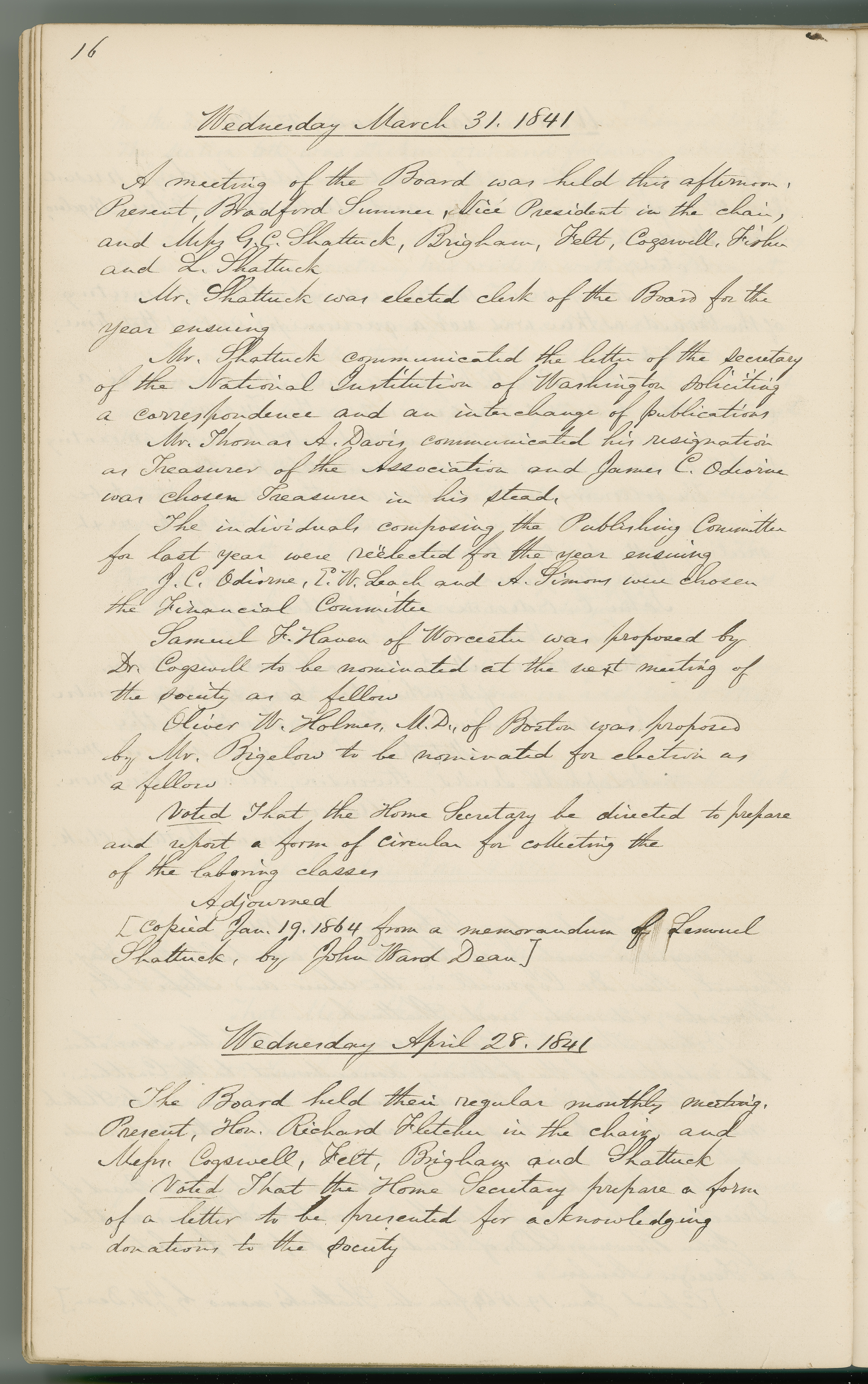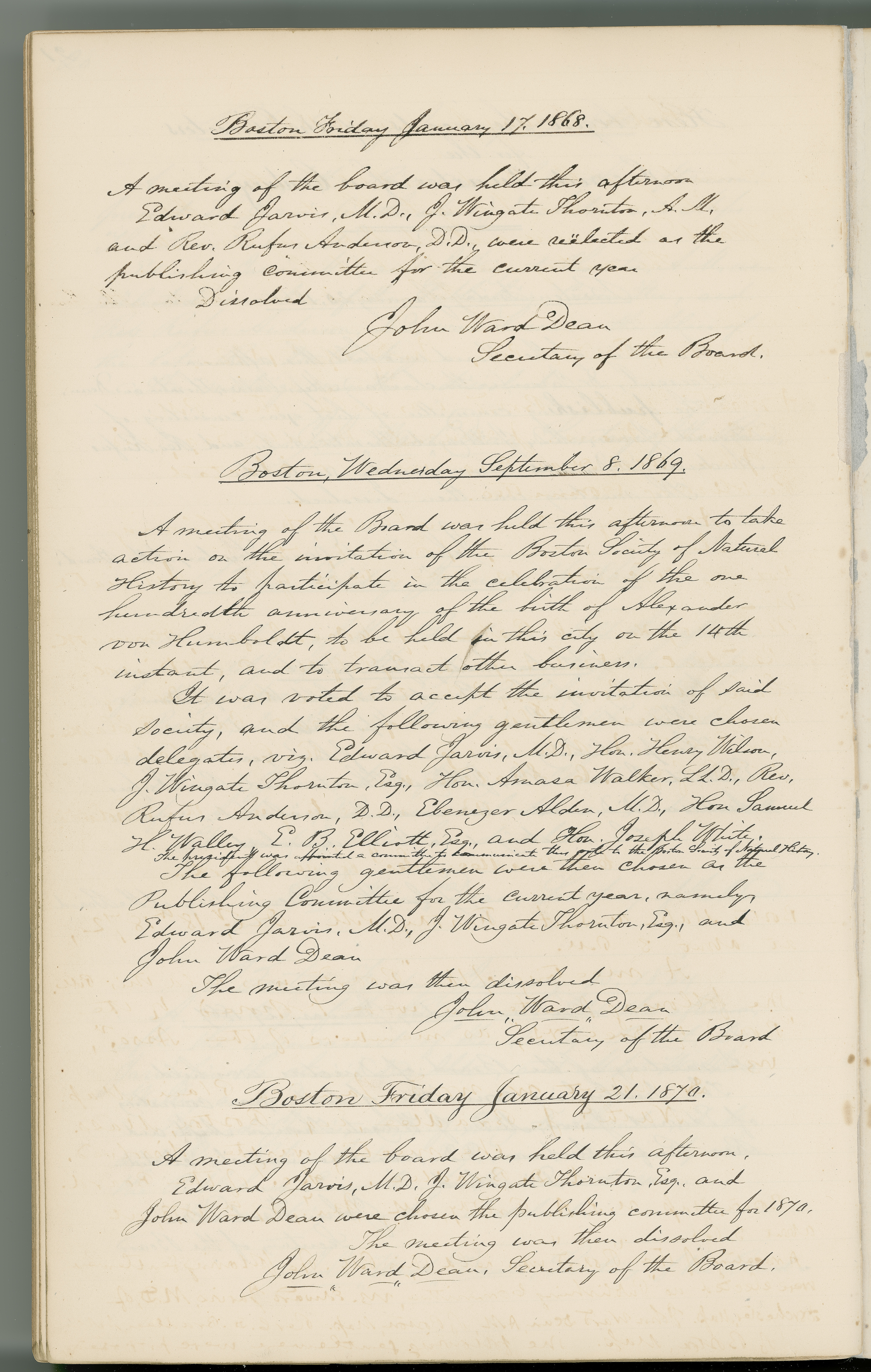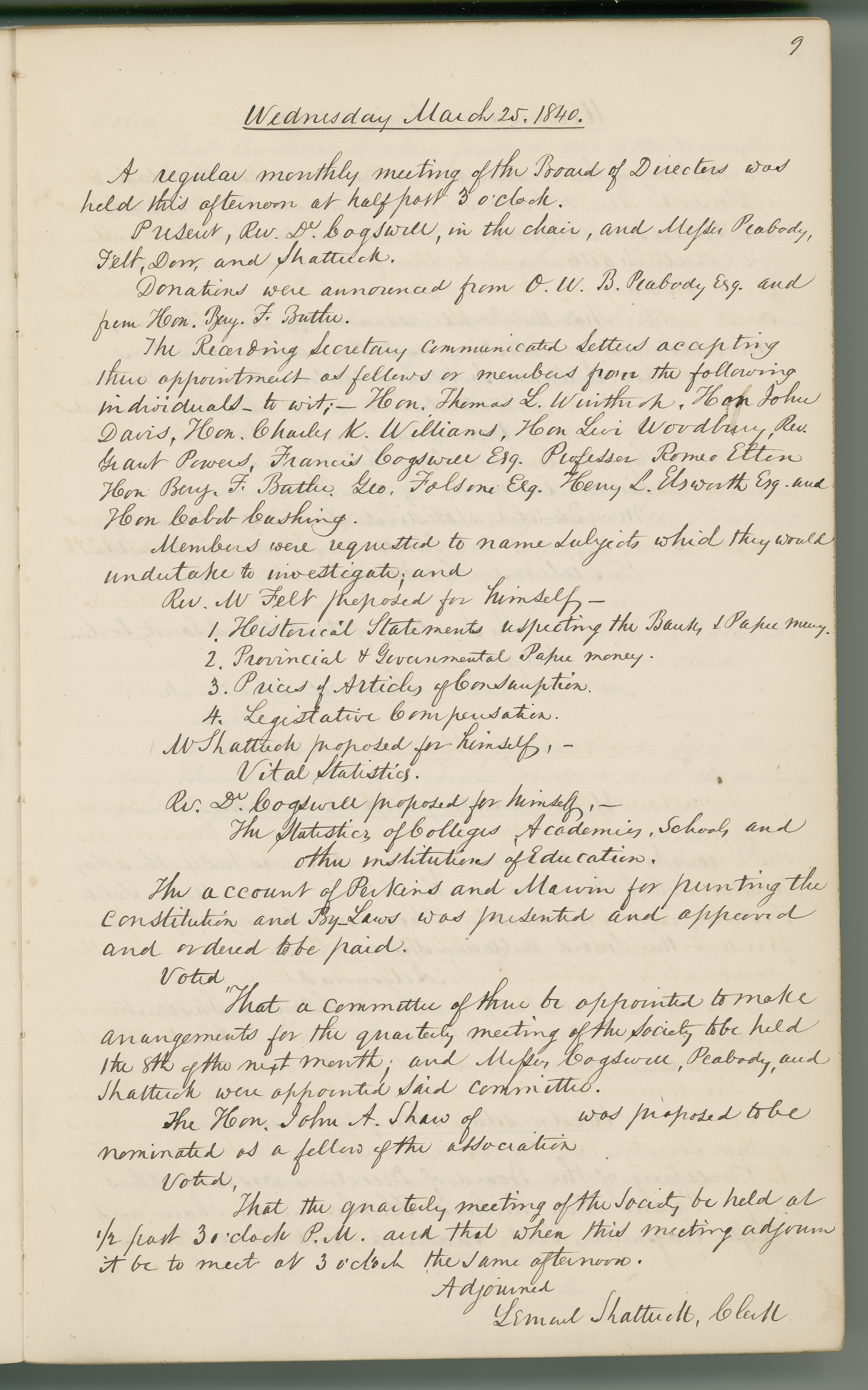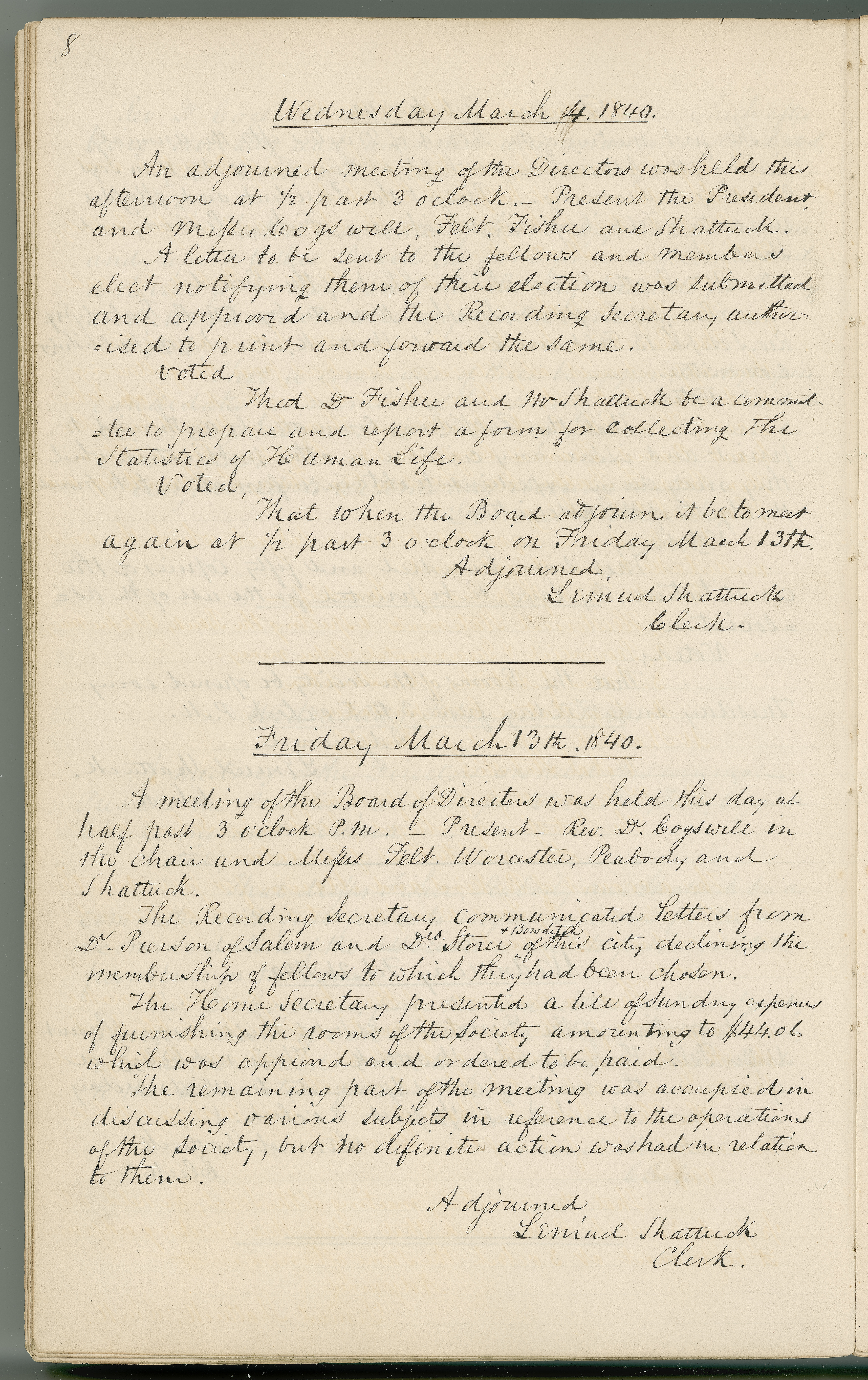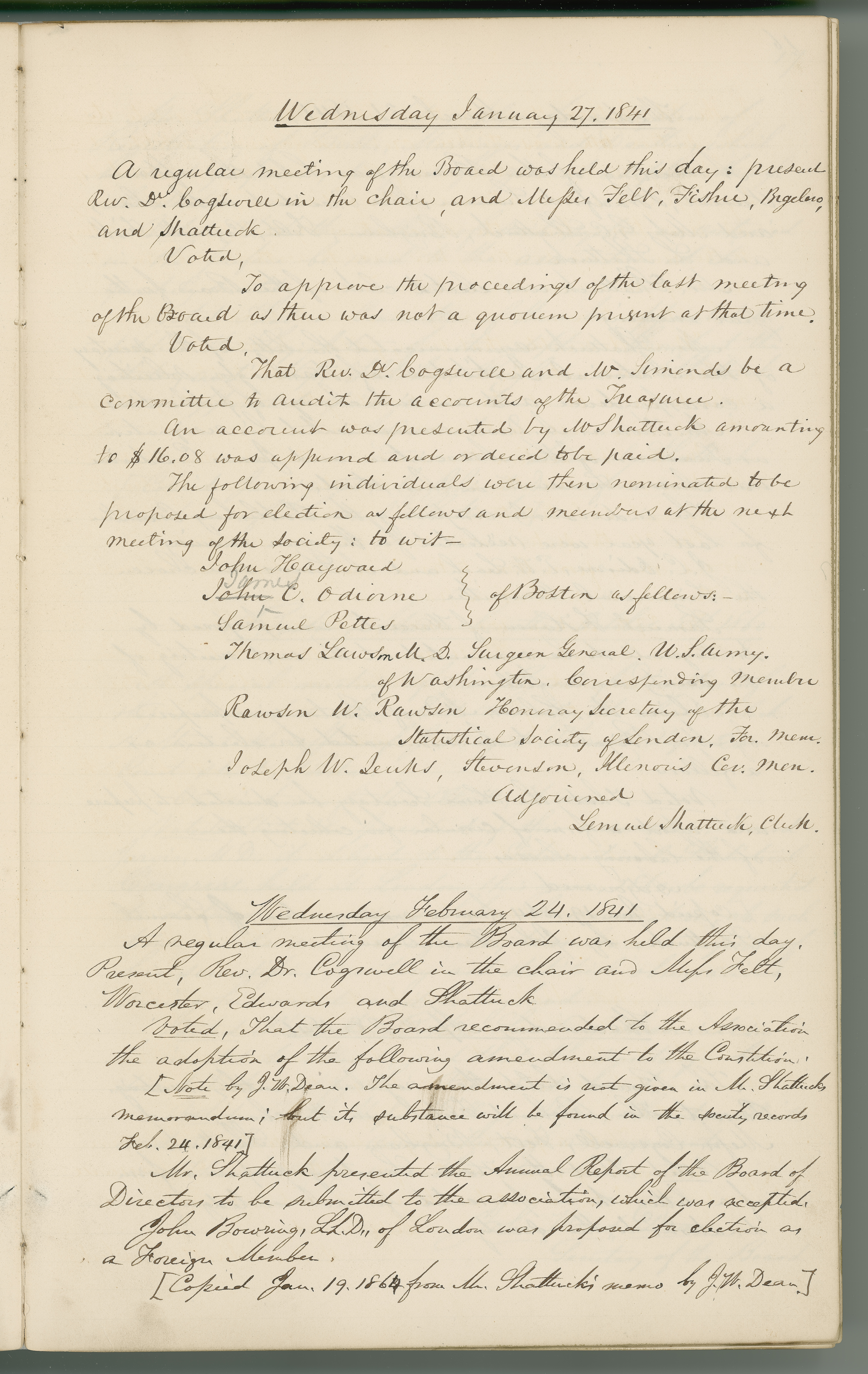 Records of the Board of Directors of the American Statistical Association, 1839-1872 Item Info
