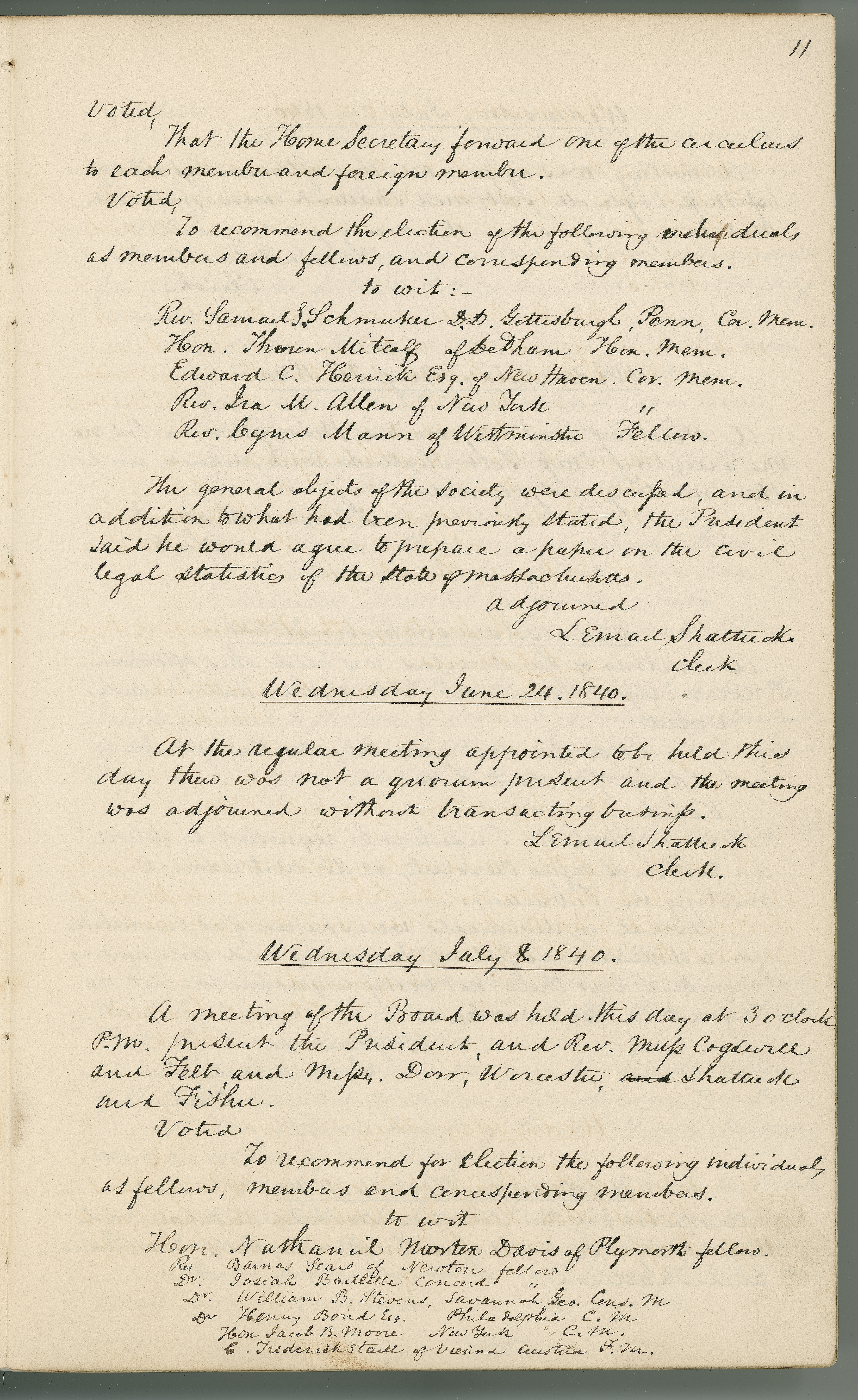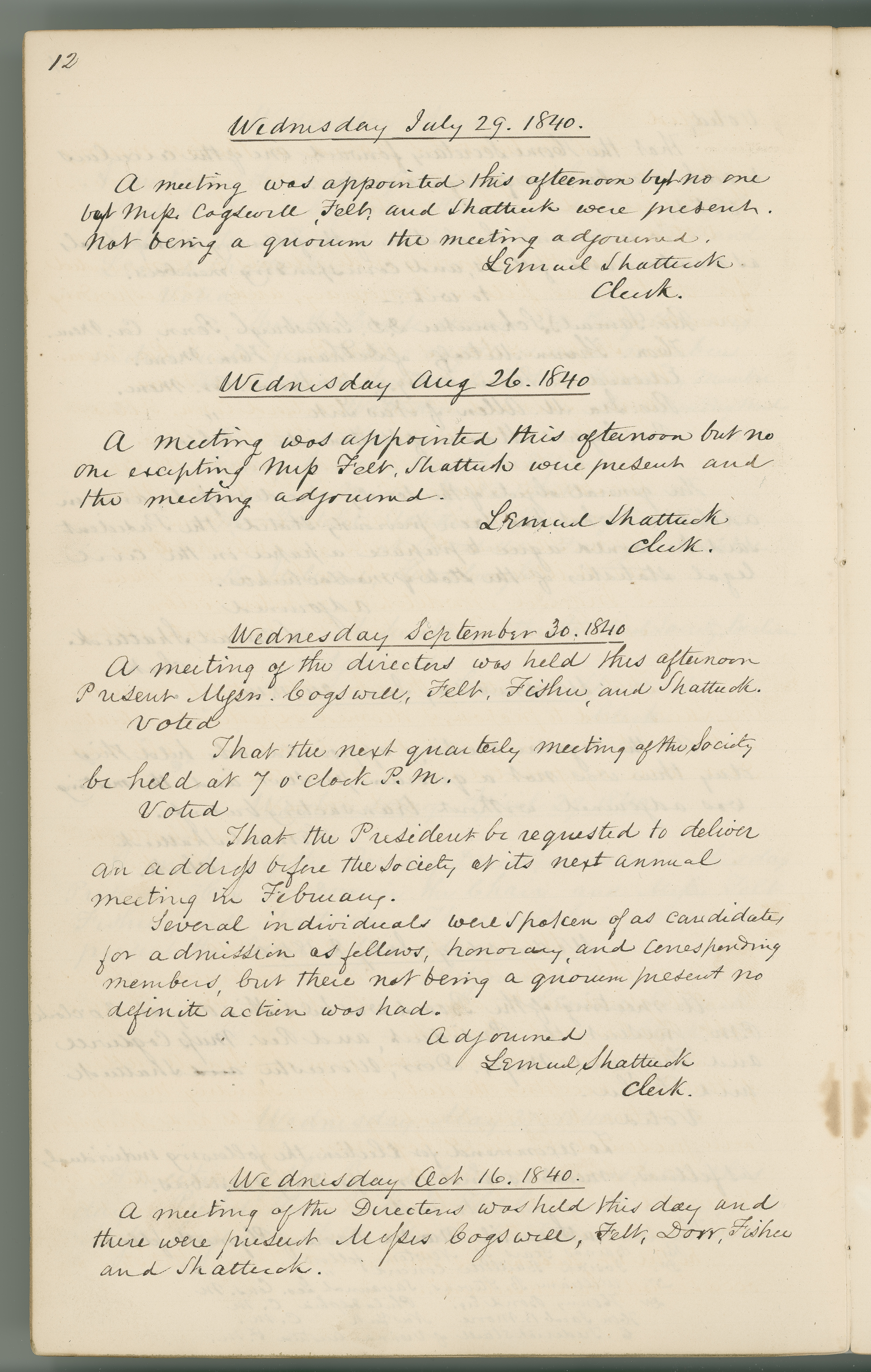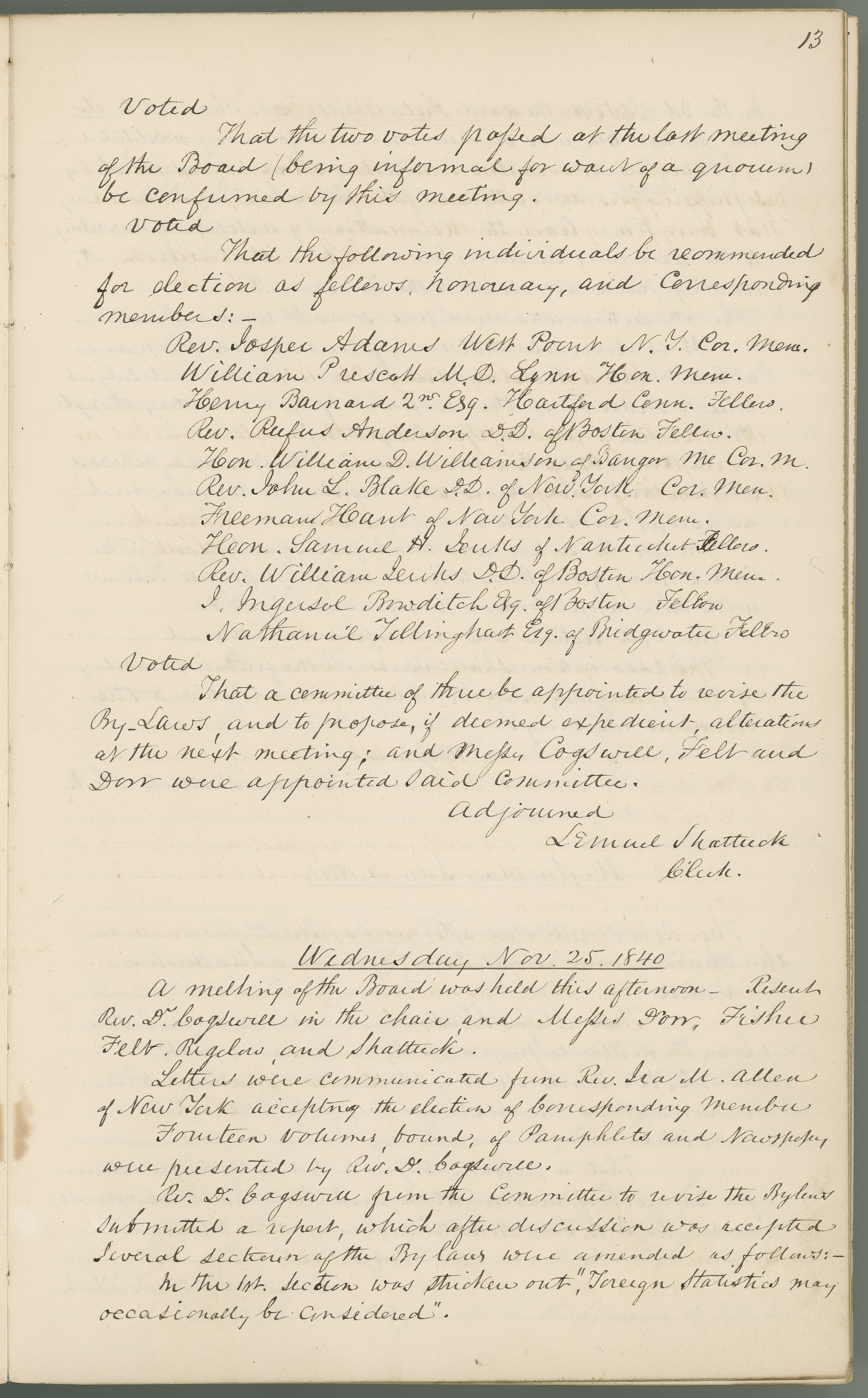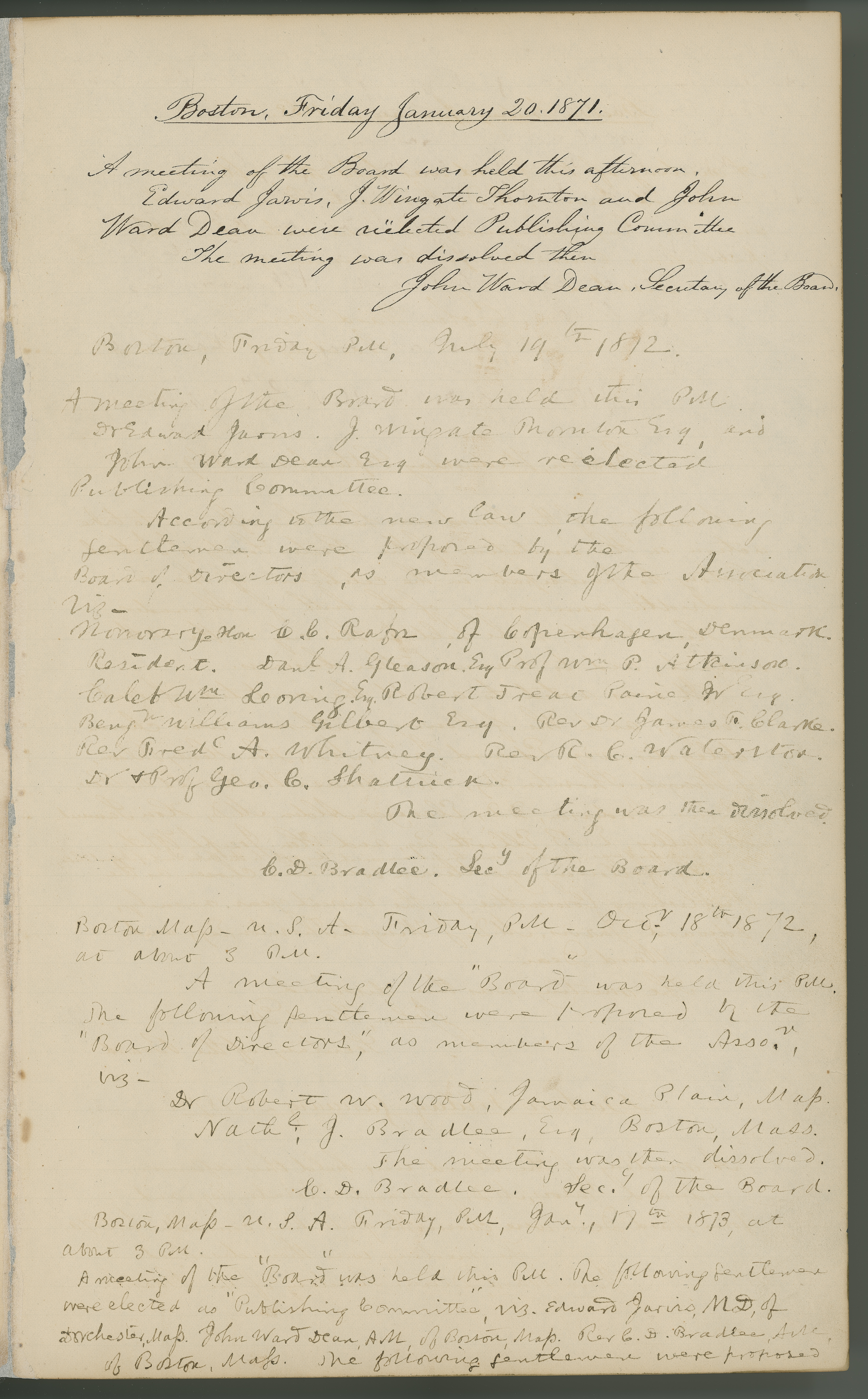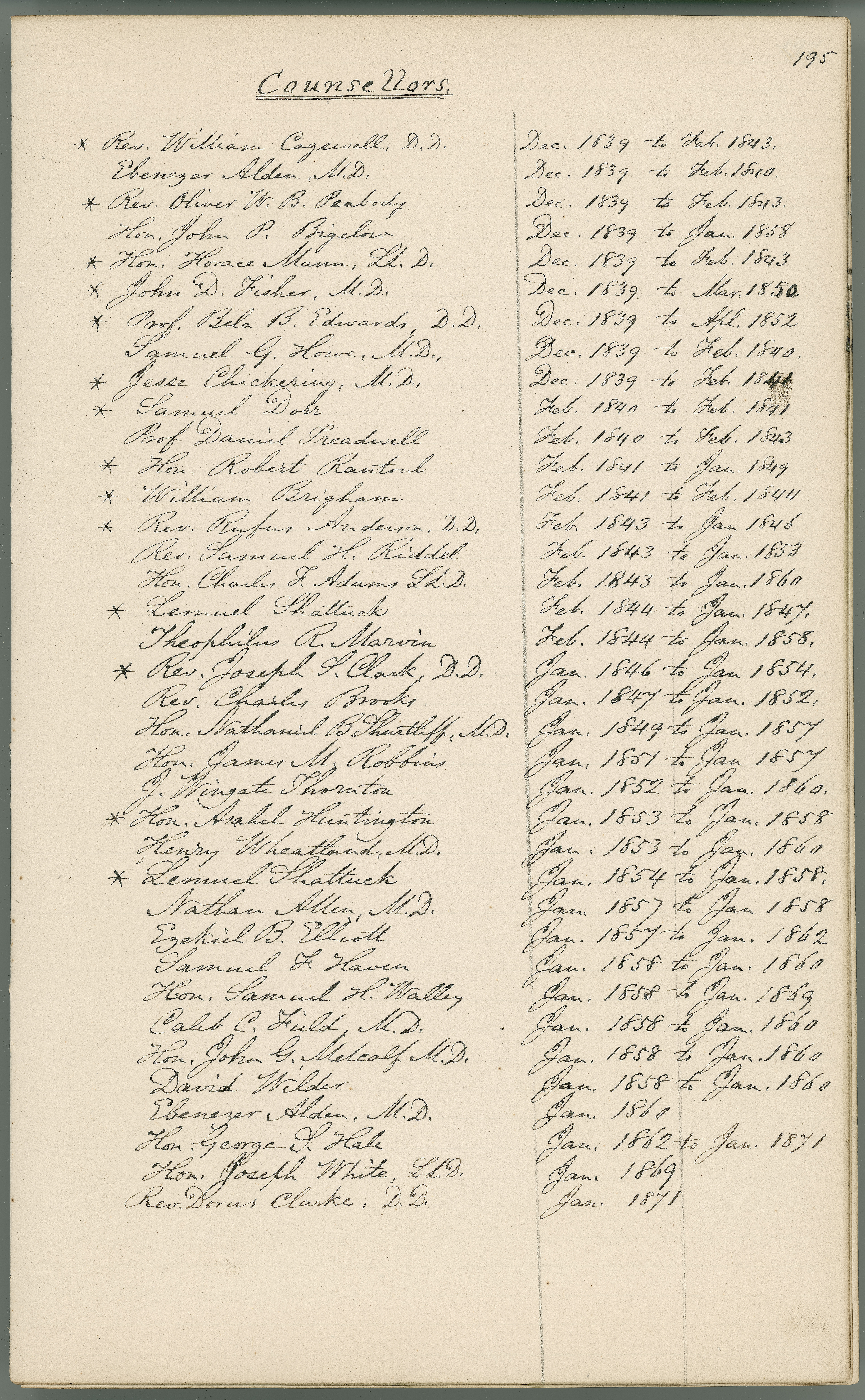 Records of the Board of Directors of the American Statistical Association, 1839-1872 Item Info