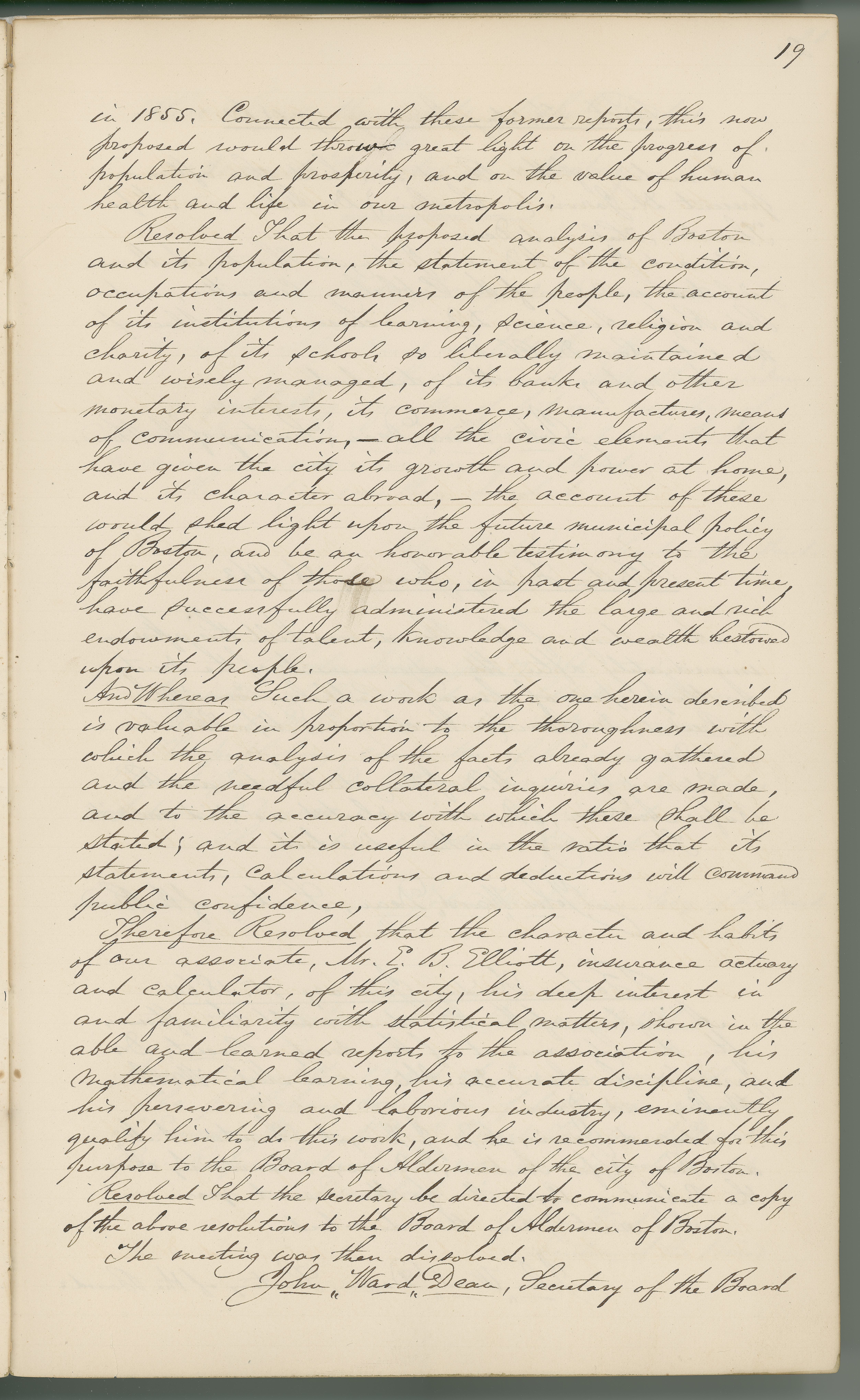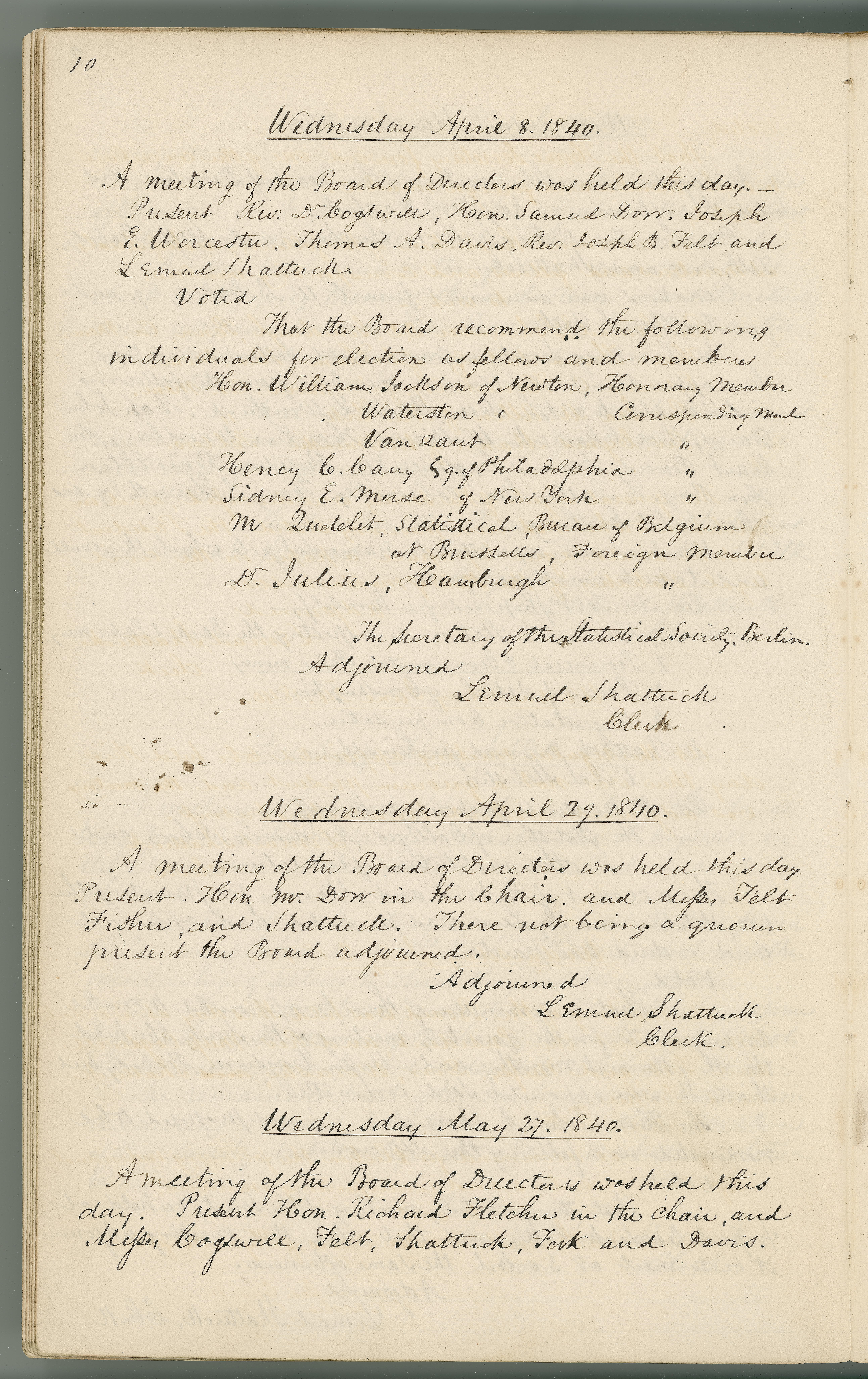 - "Records of the Board of Directors of the American Statistical Association, 1839-1872", American Statistical Association Collection, Iowa State University Library Digital Collections