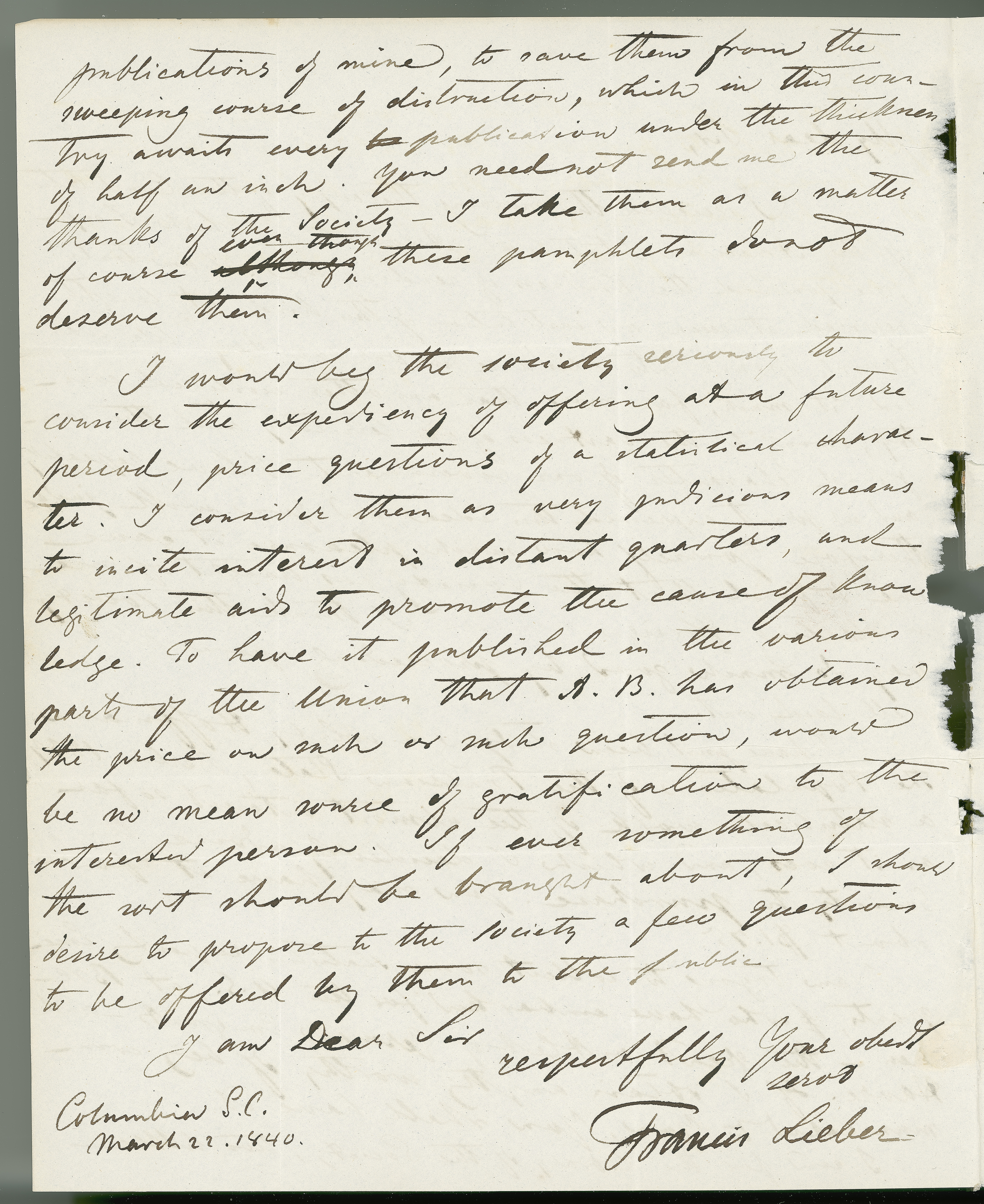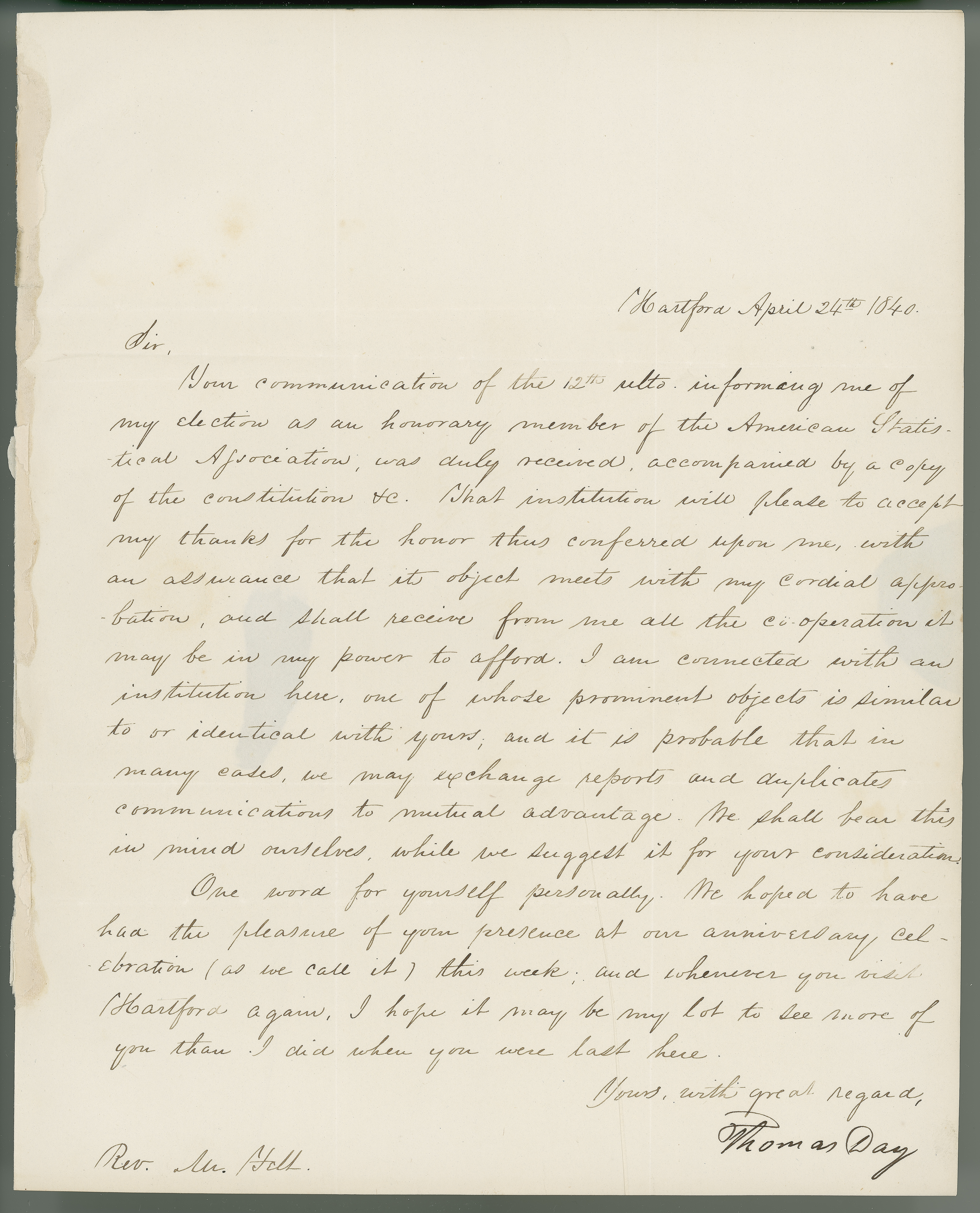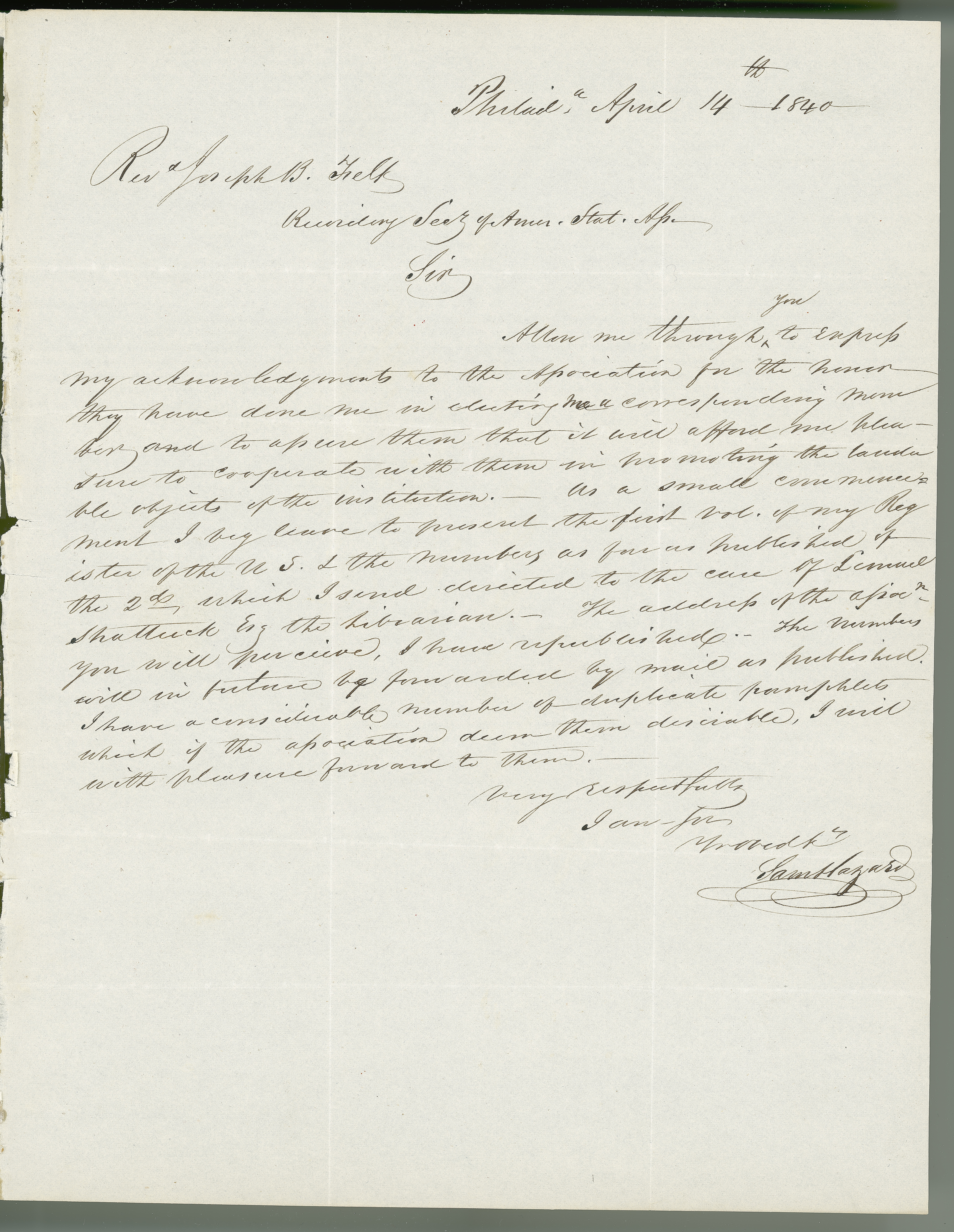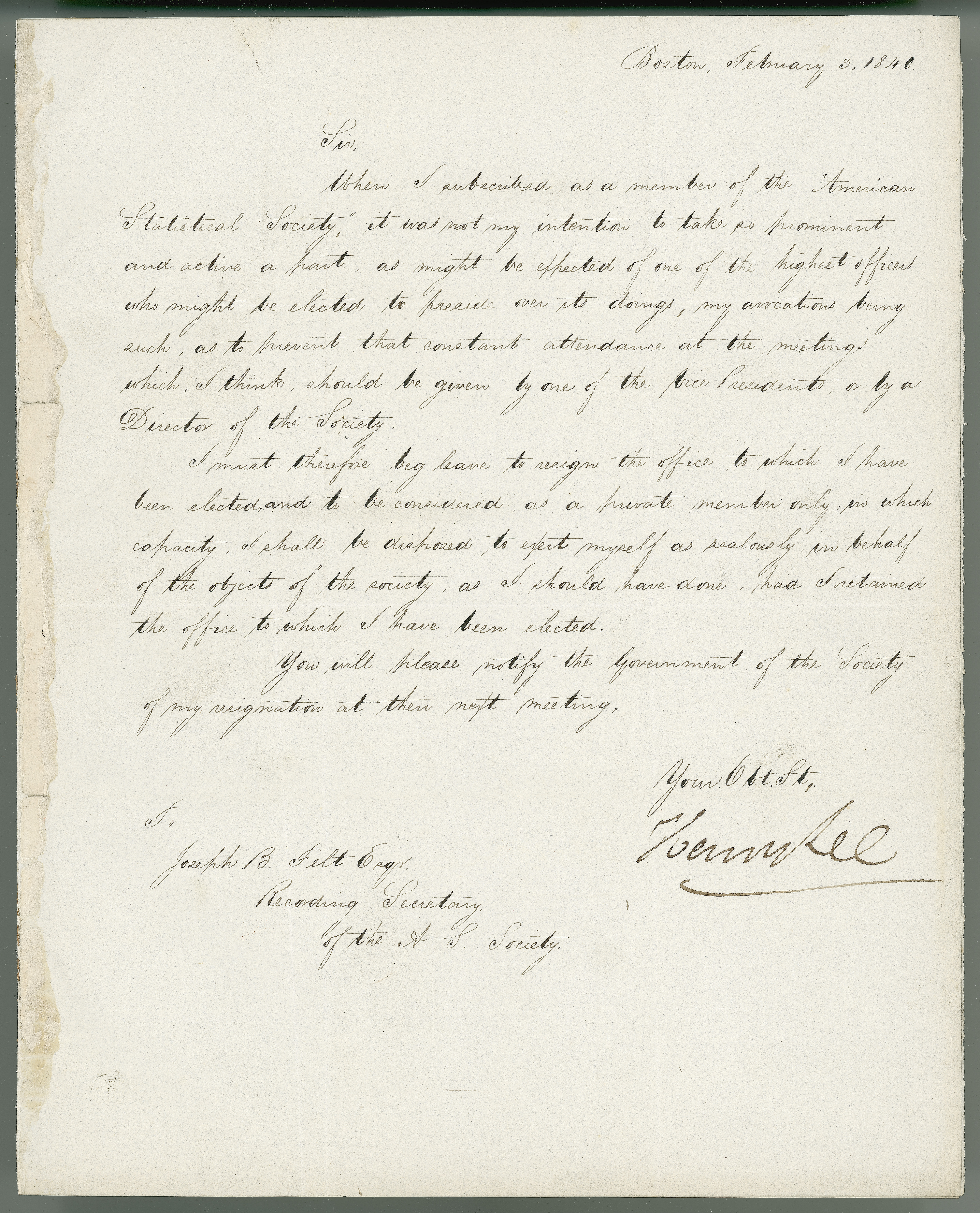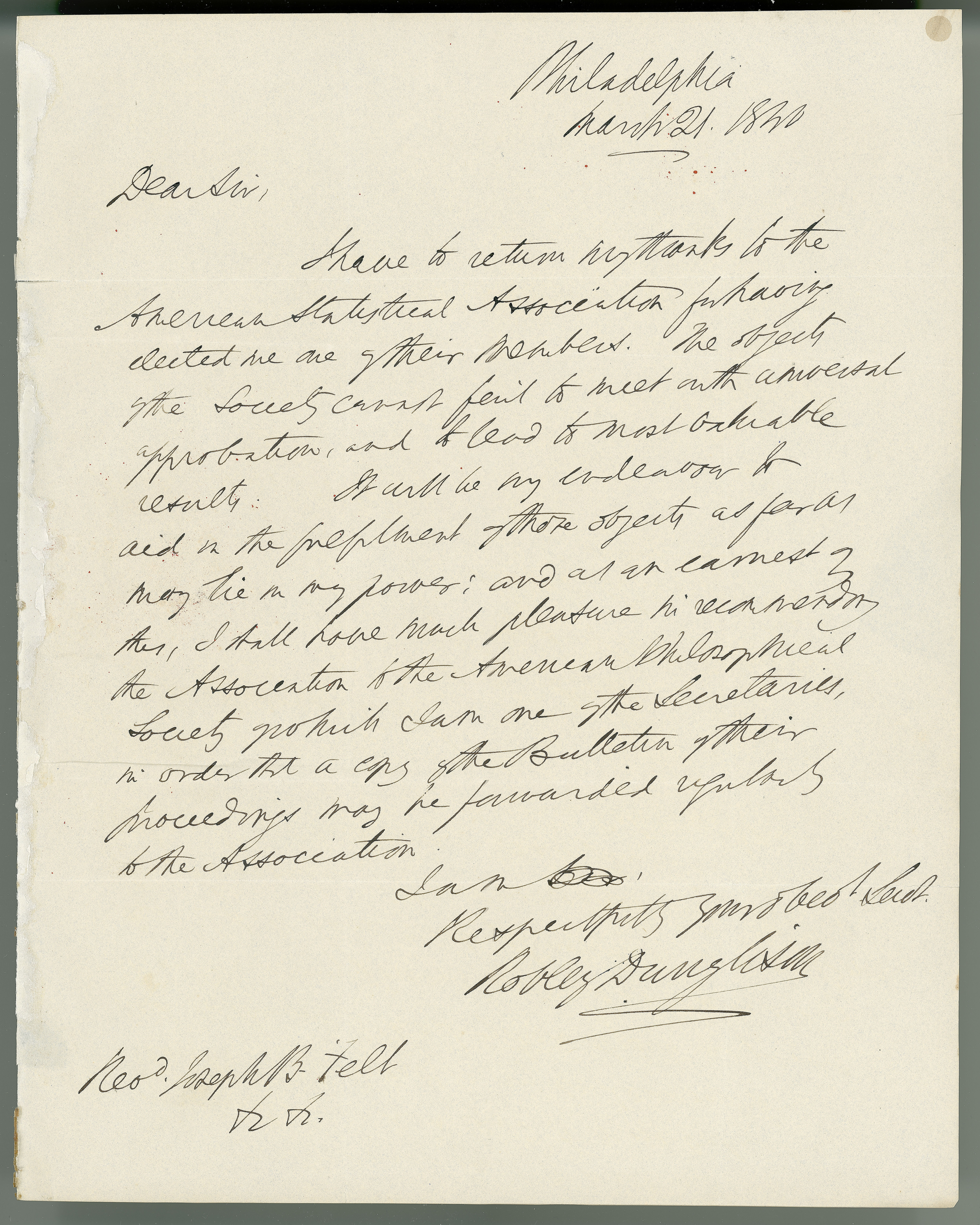 Correspondence regarding the American Statistical Association, 1840-1844 Item Info