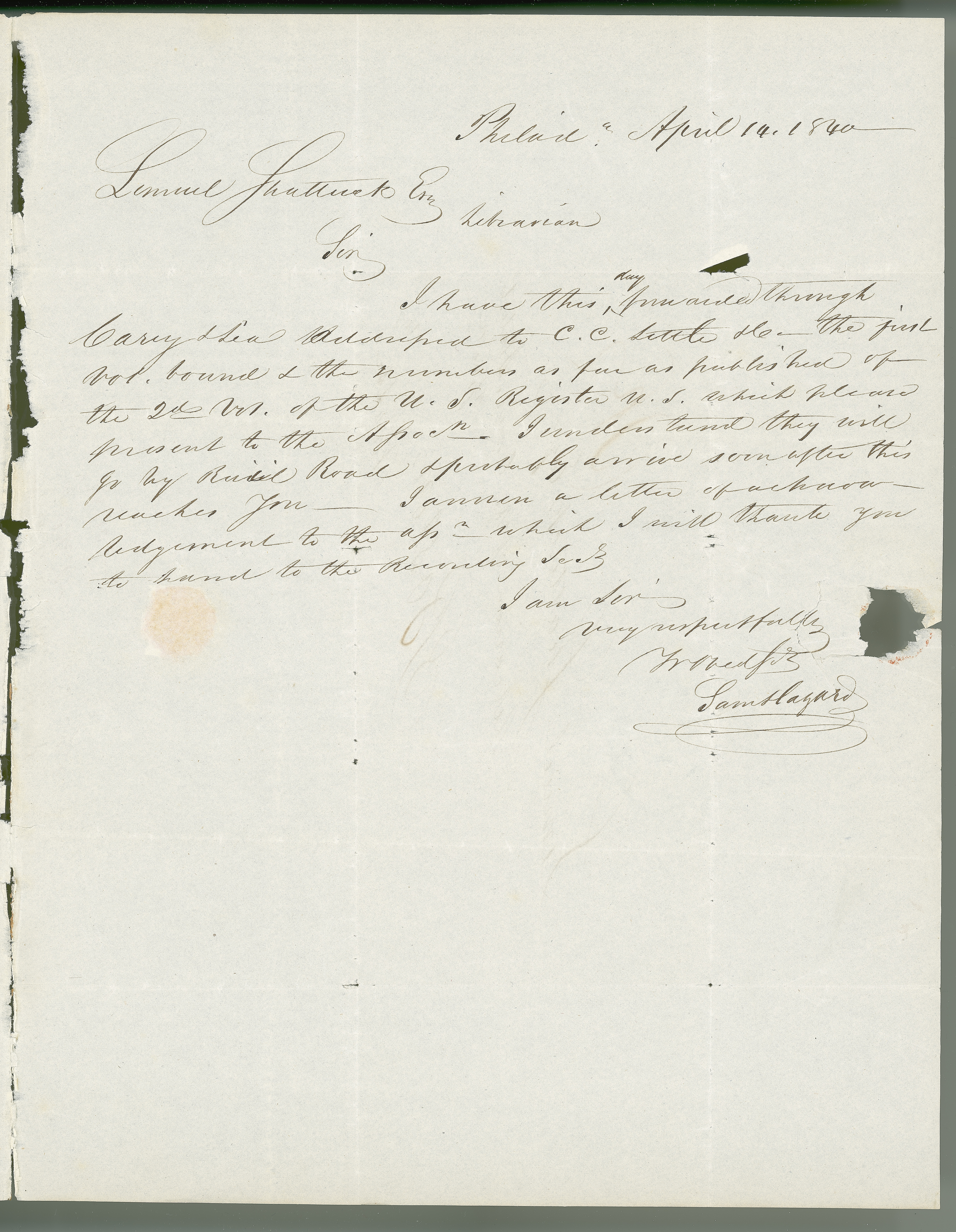 - Correspondence regarding the American Statistical Association, 1840-1844