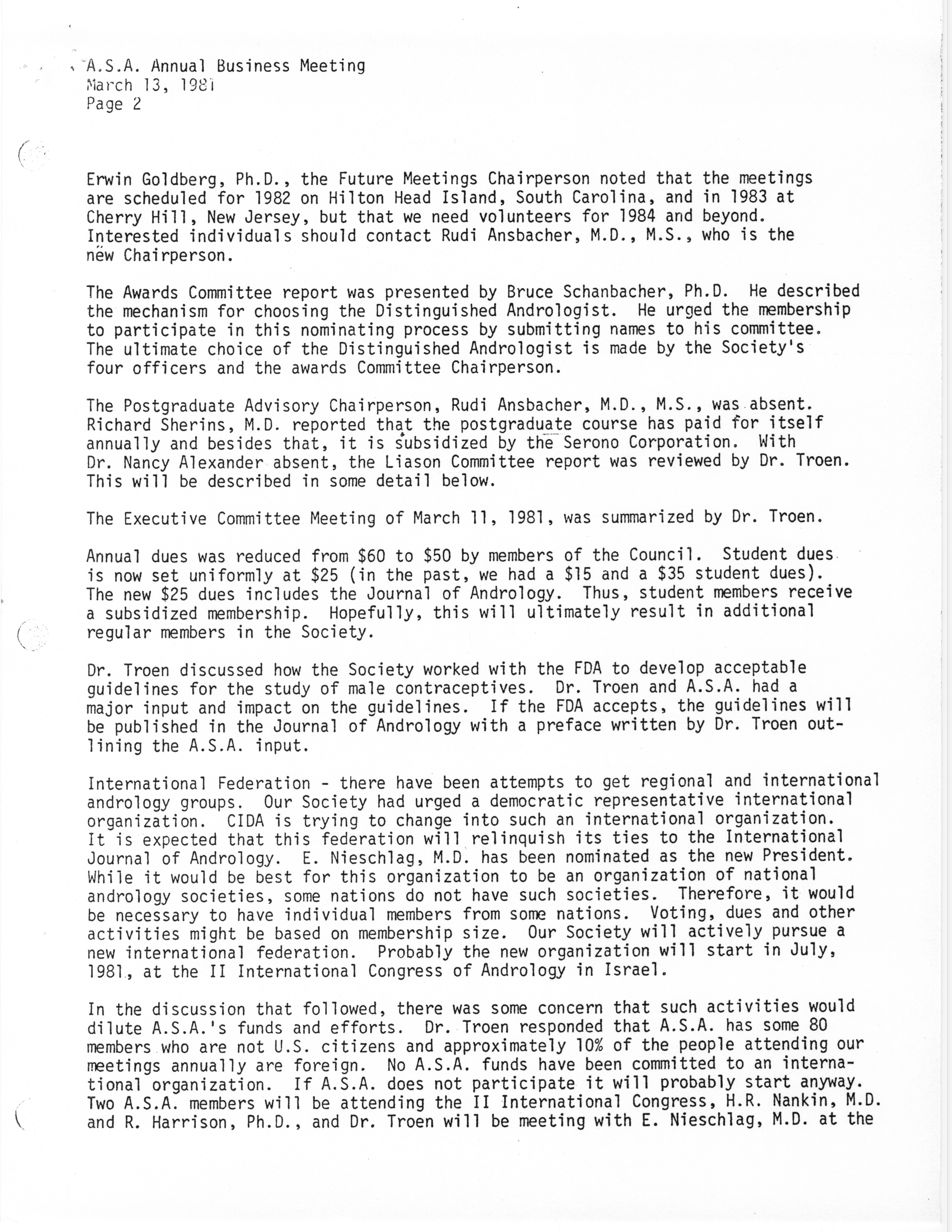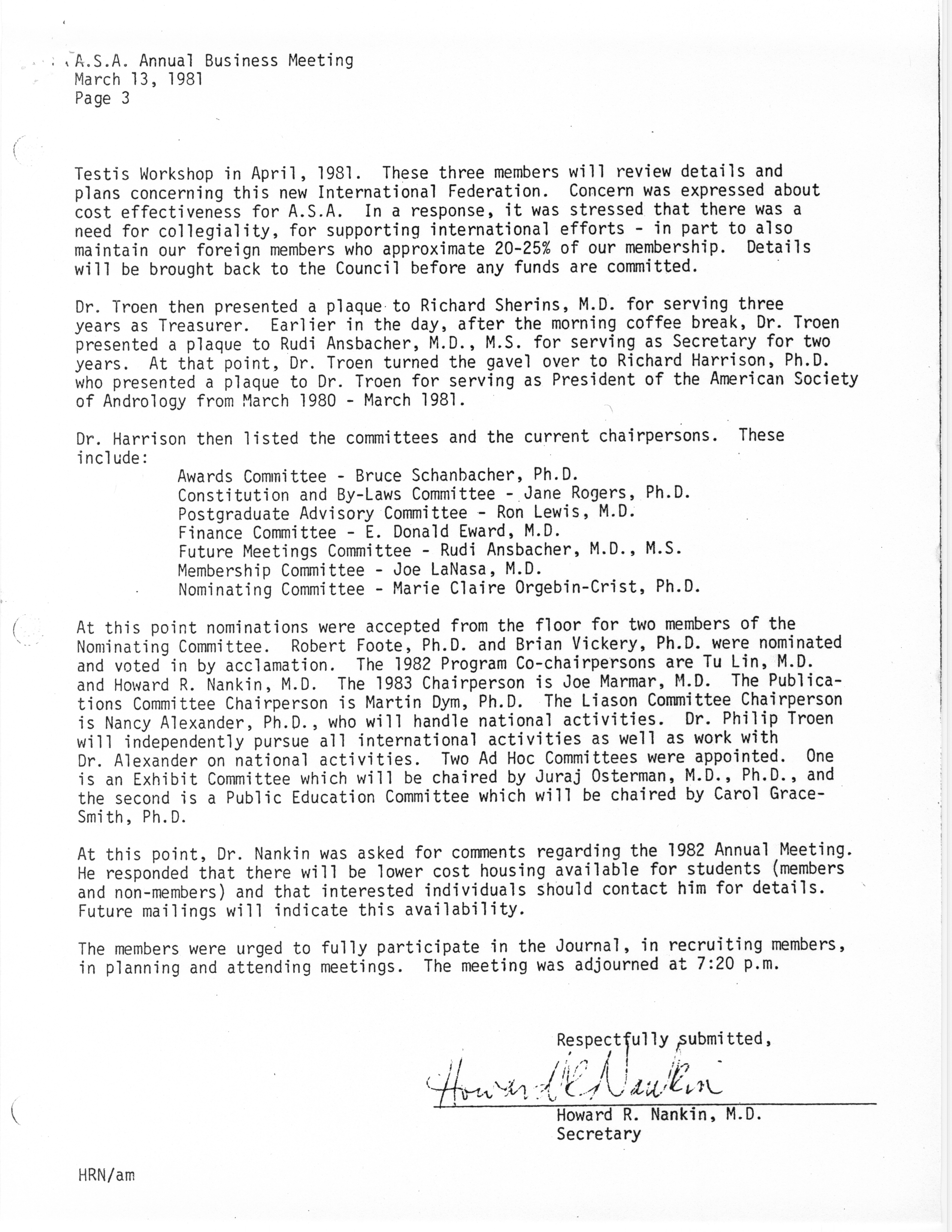 - "Business Meeting of the American Society of Andrology, 1981", American Society of Andrology Collection, Iowa State University Library Digital Collections