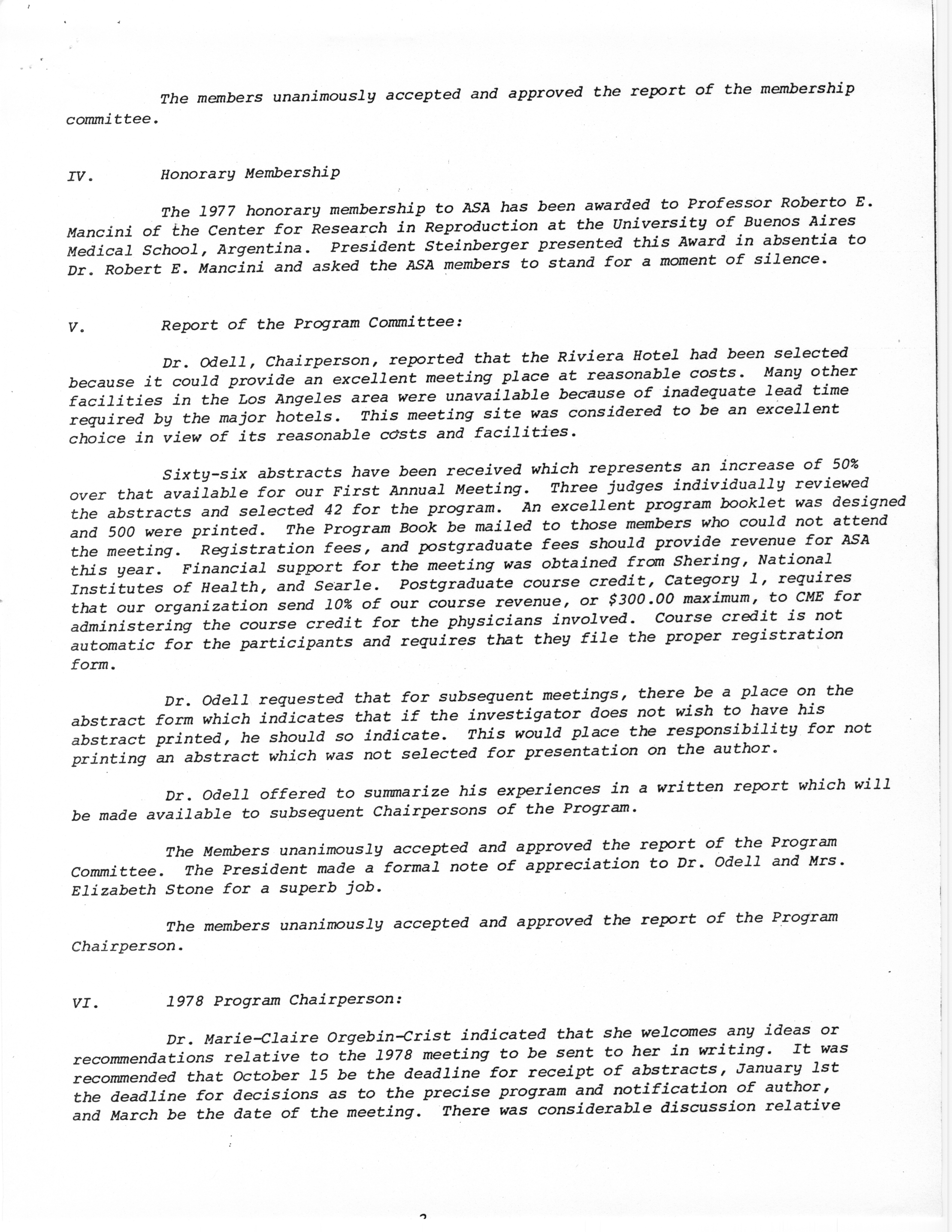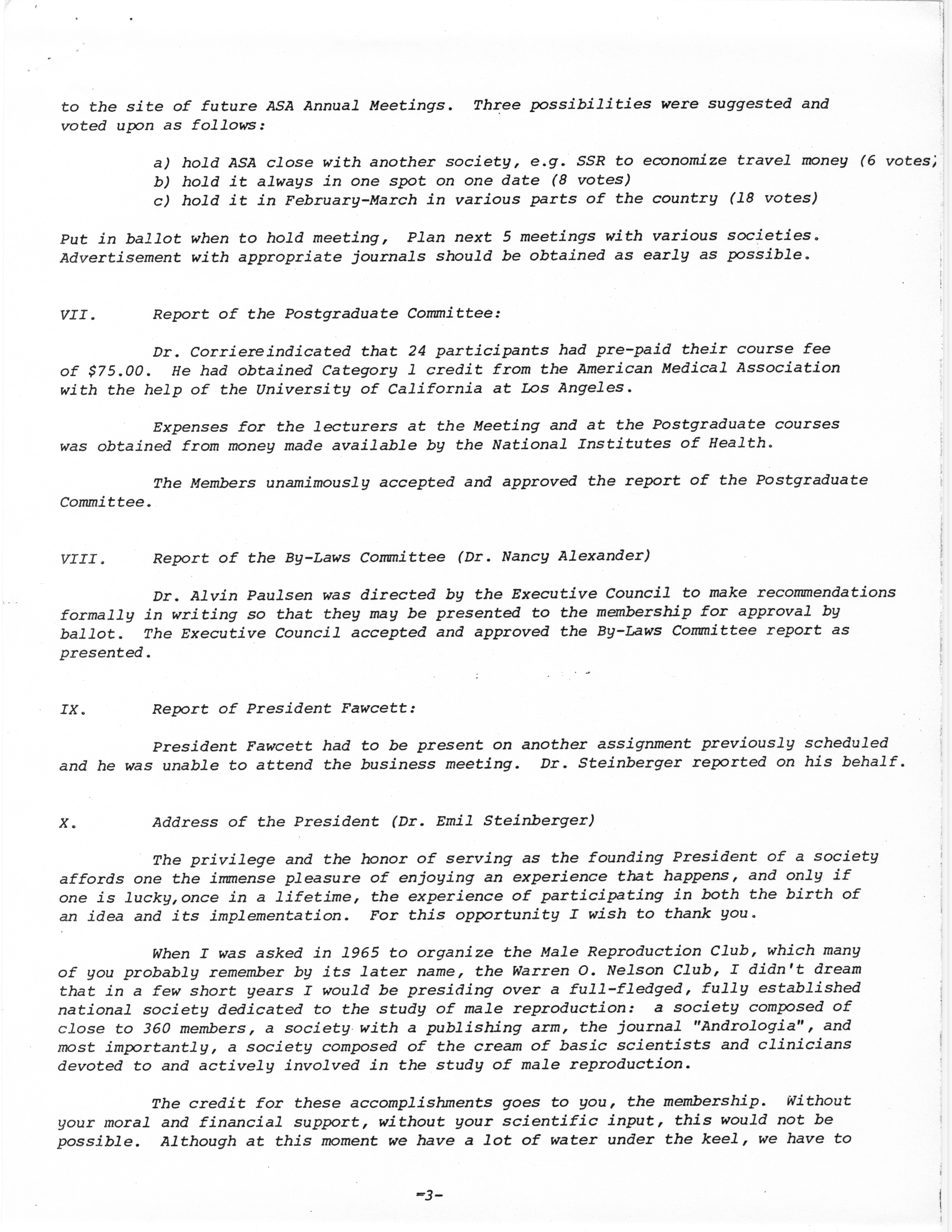 - "Business Meetings of the American Society of Andrology, 1977", American Society of Andrology Collection, Iowa State University Library Digital Collections