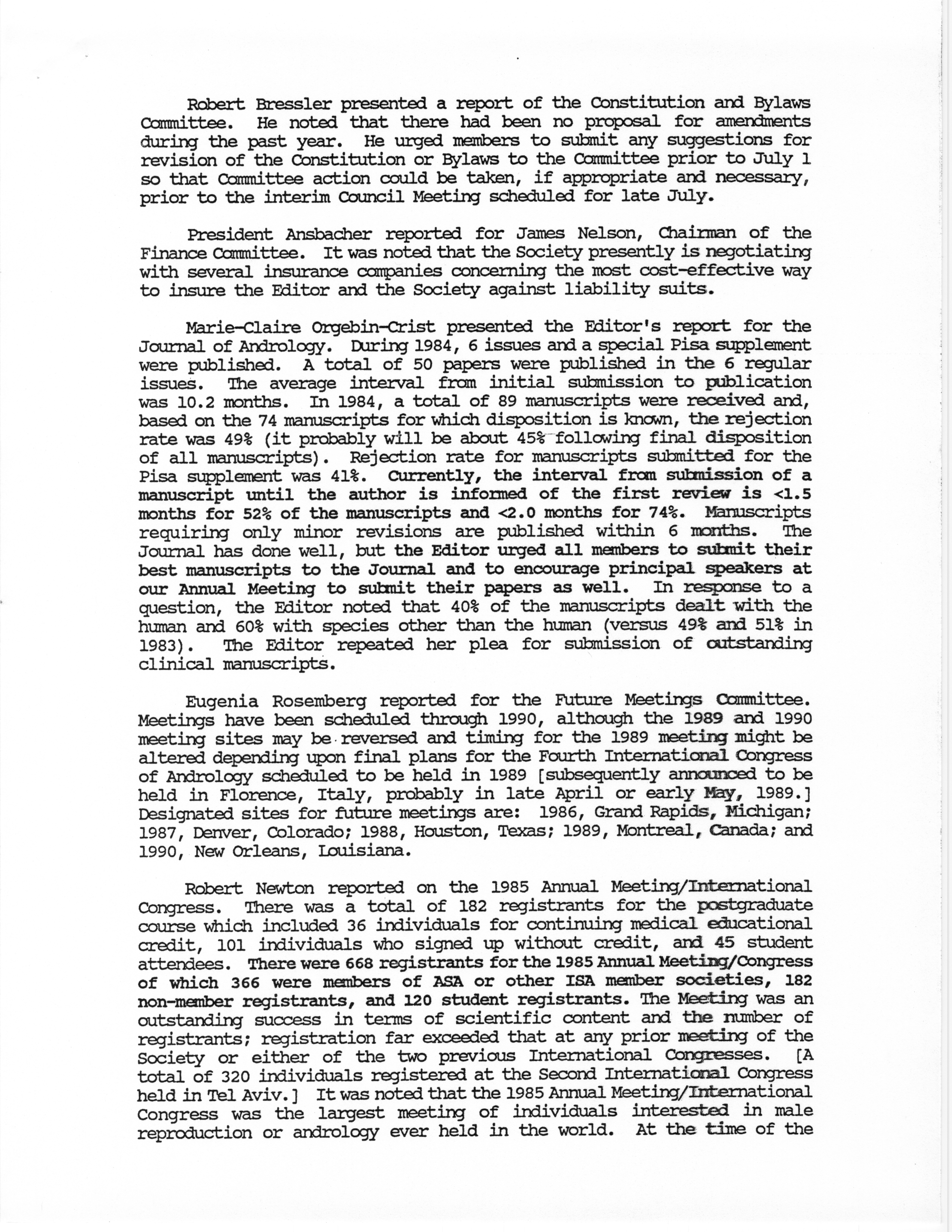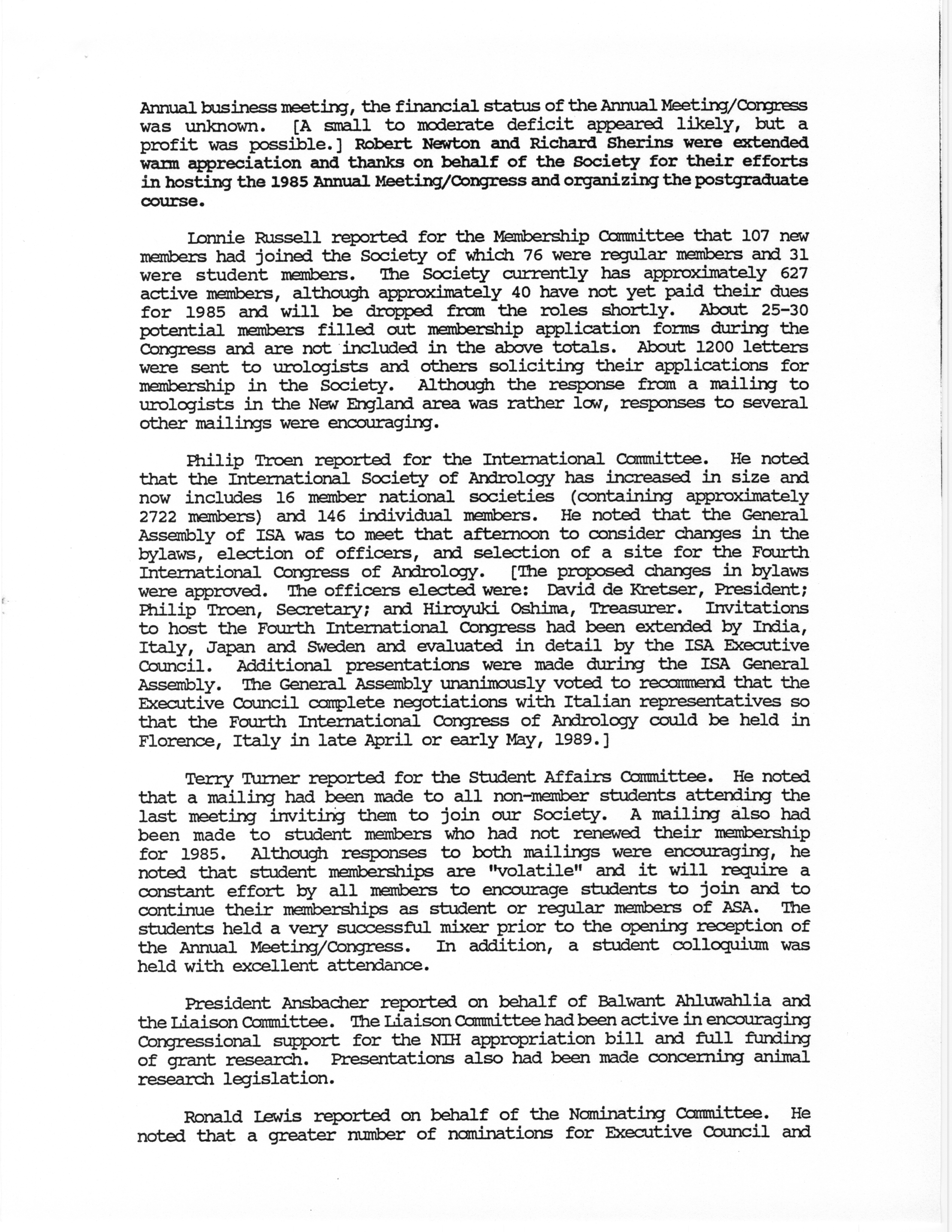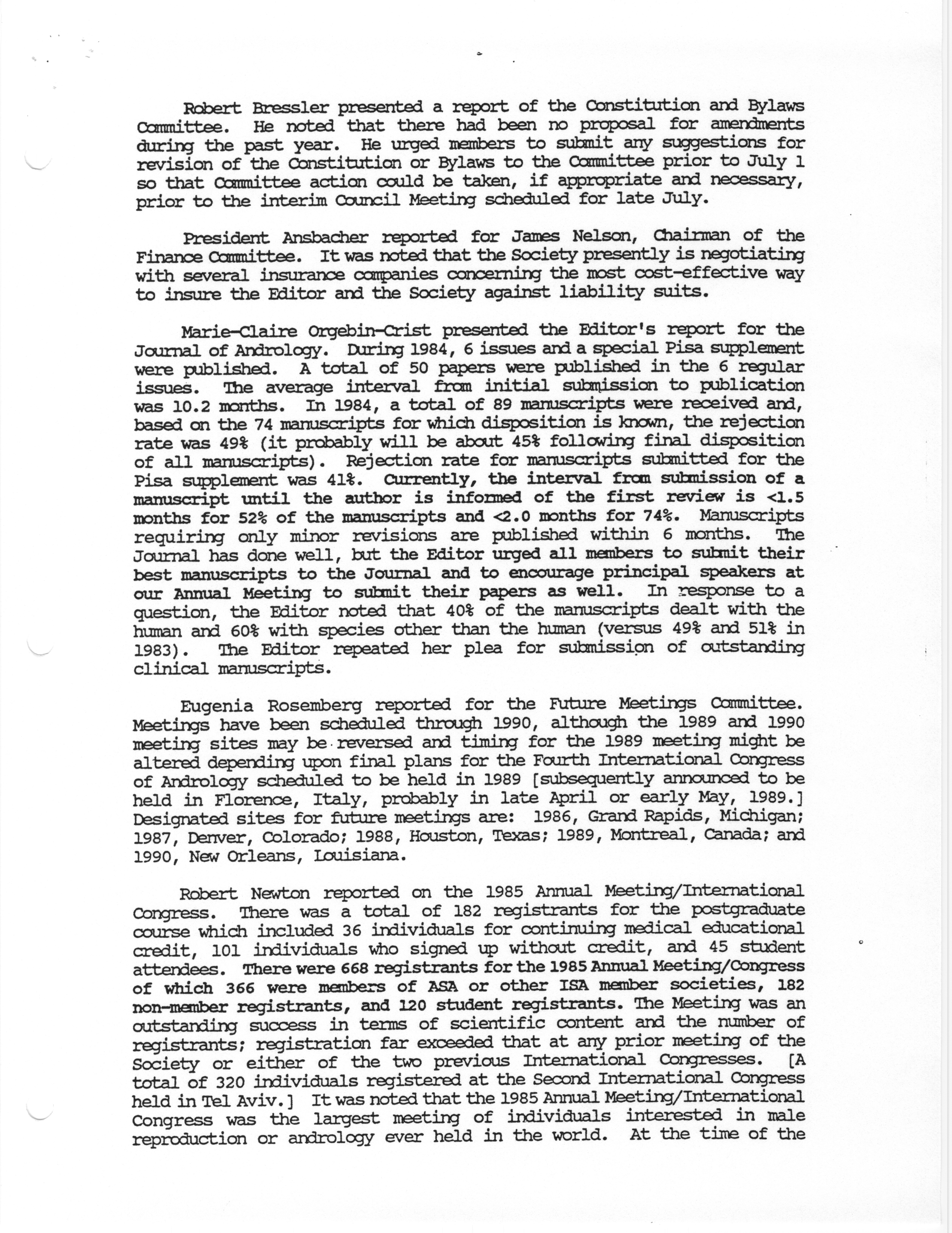 - Business Meeting of the American Society of Andrology, 1985
