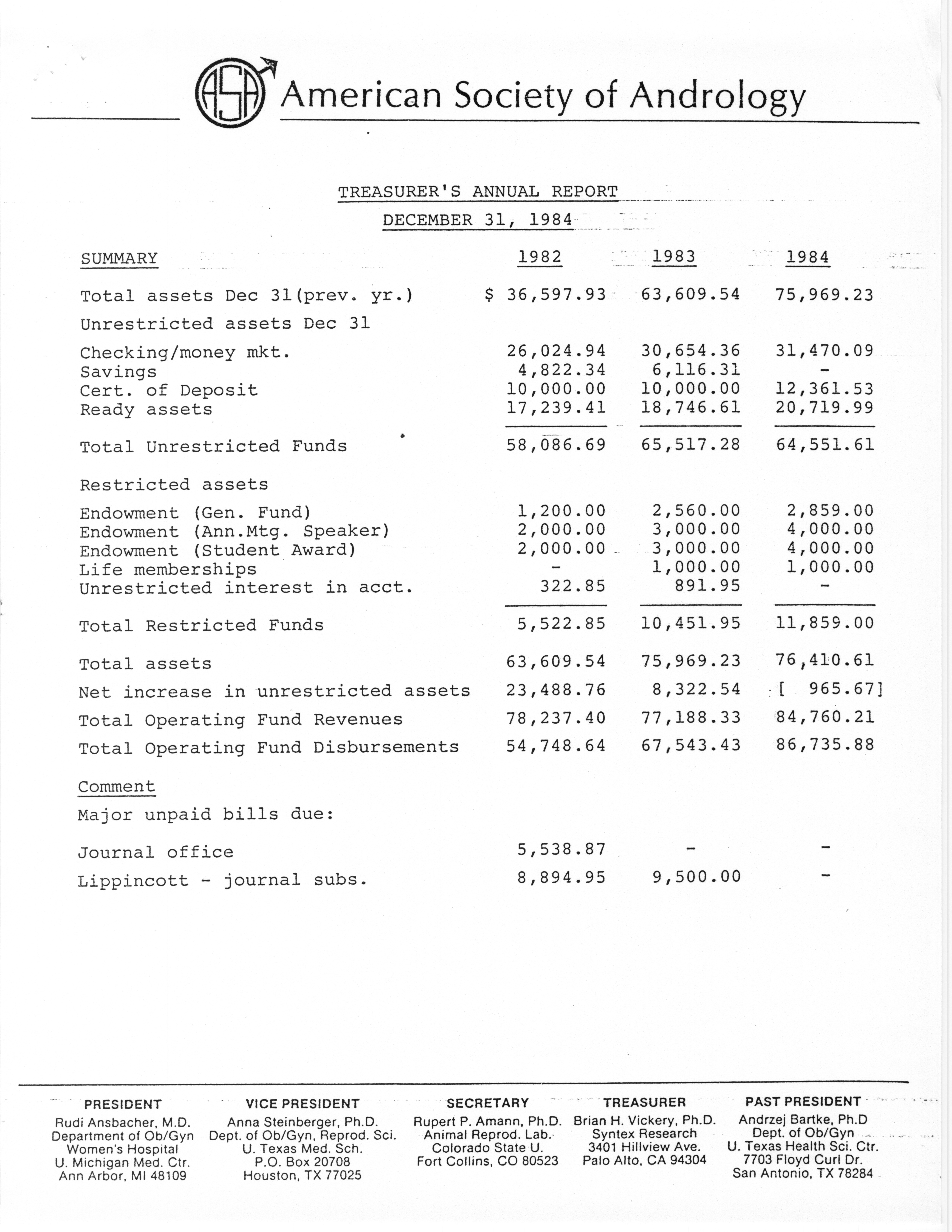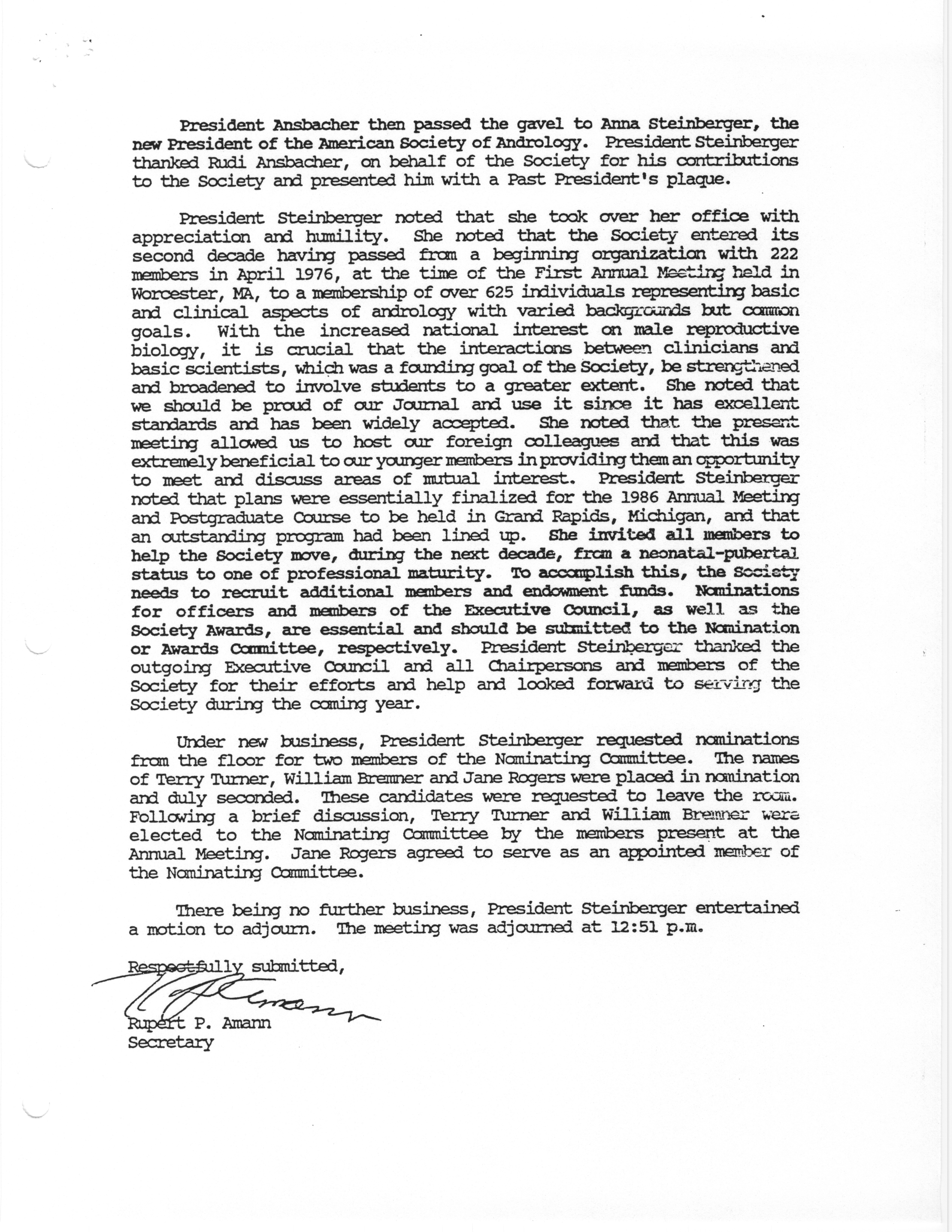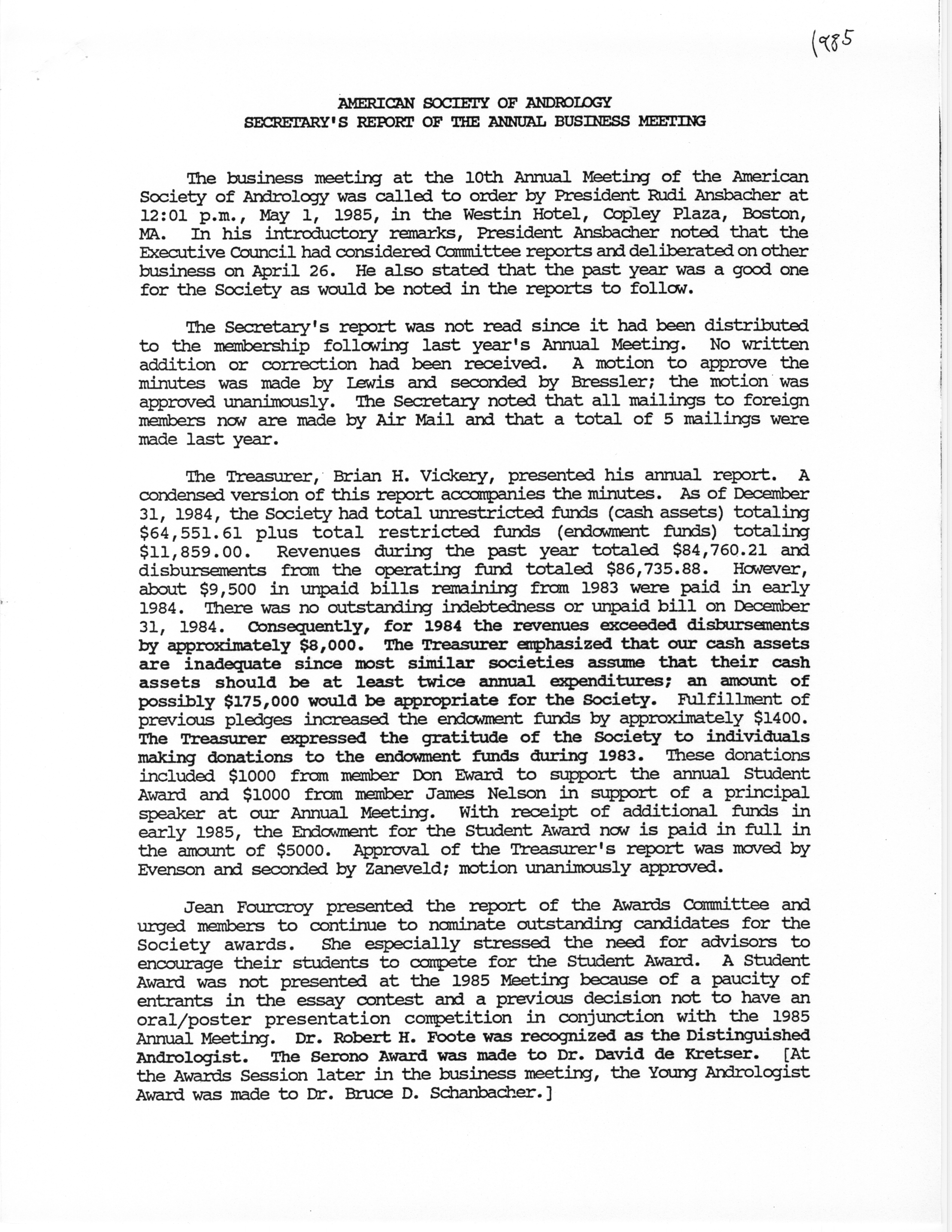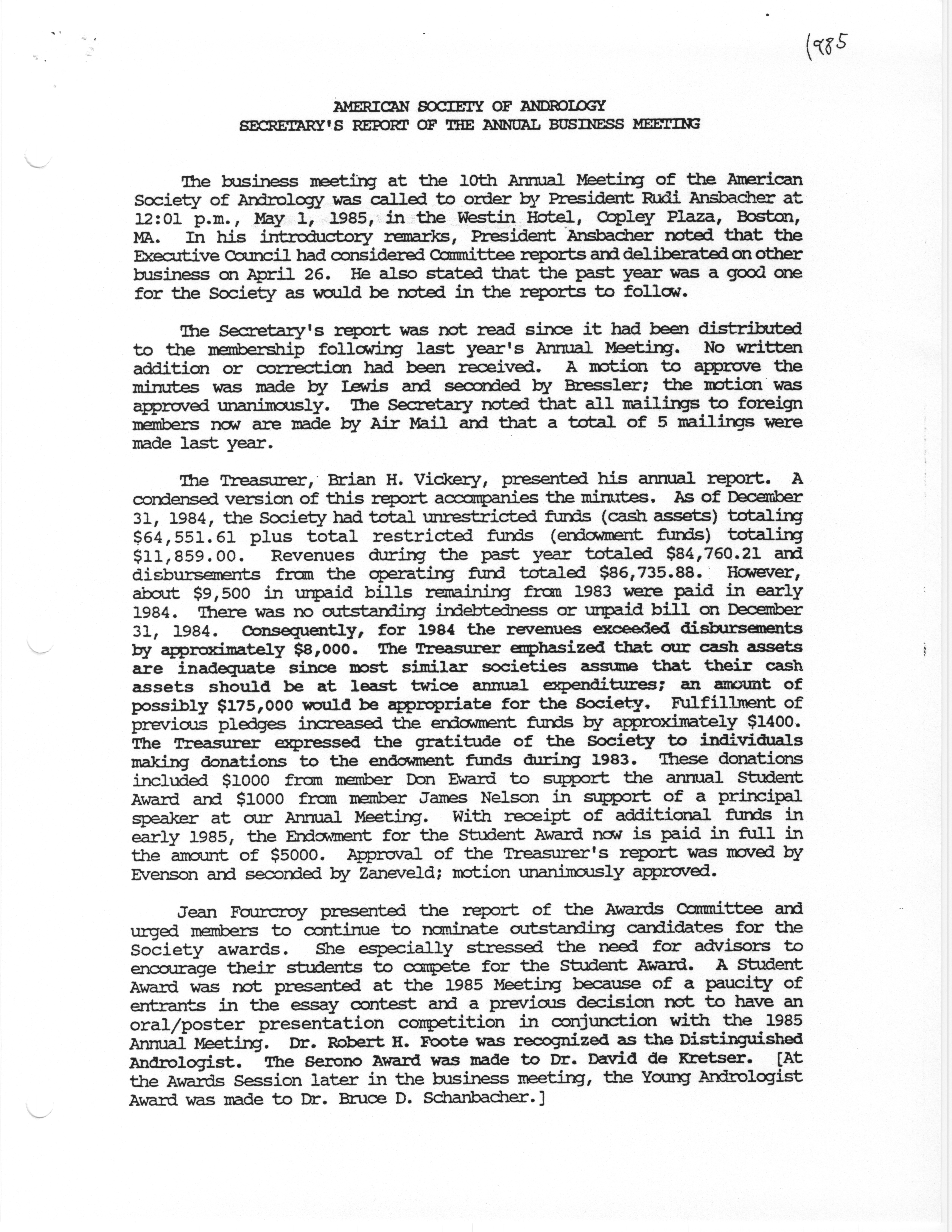 - Business Meeting of the American Society of Andrology, 1985