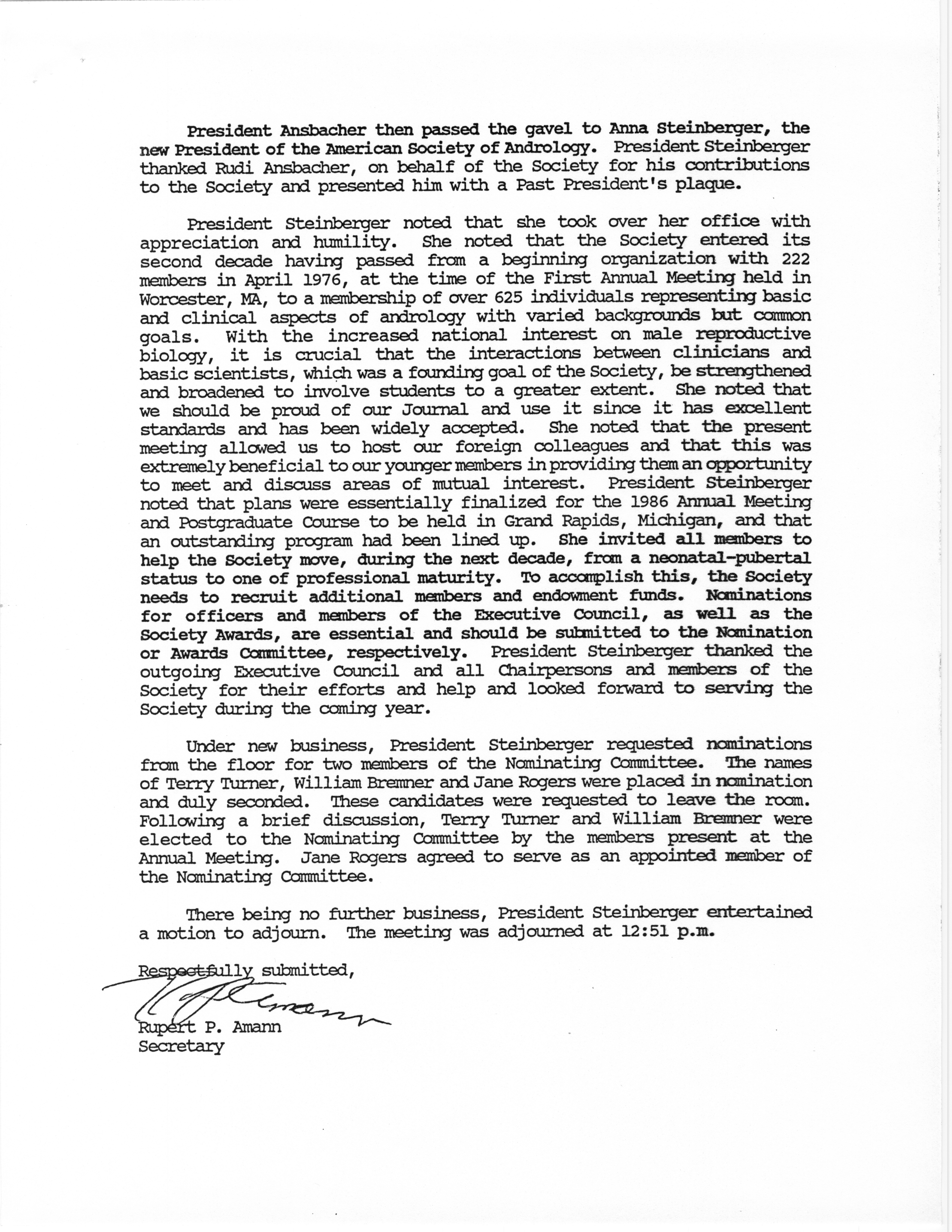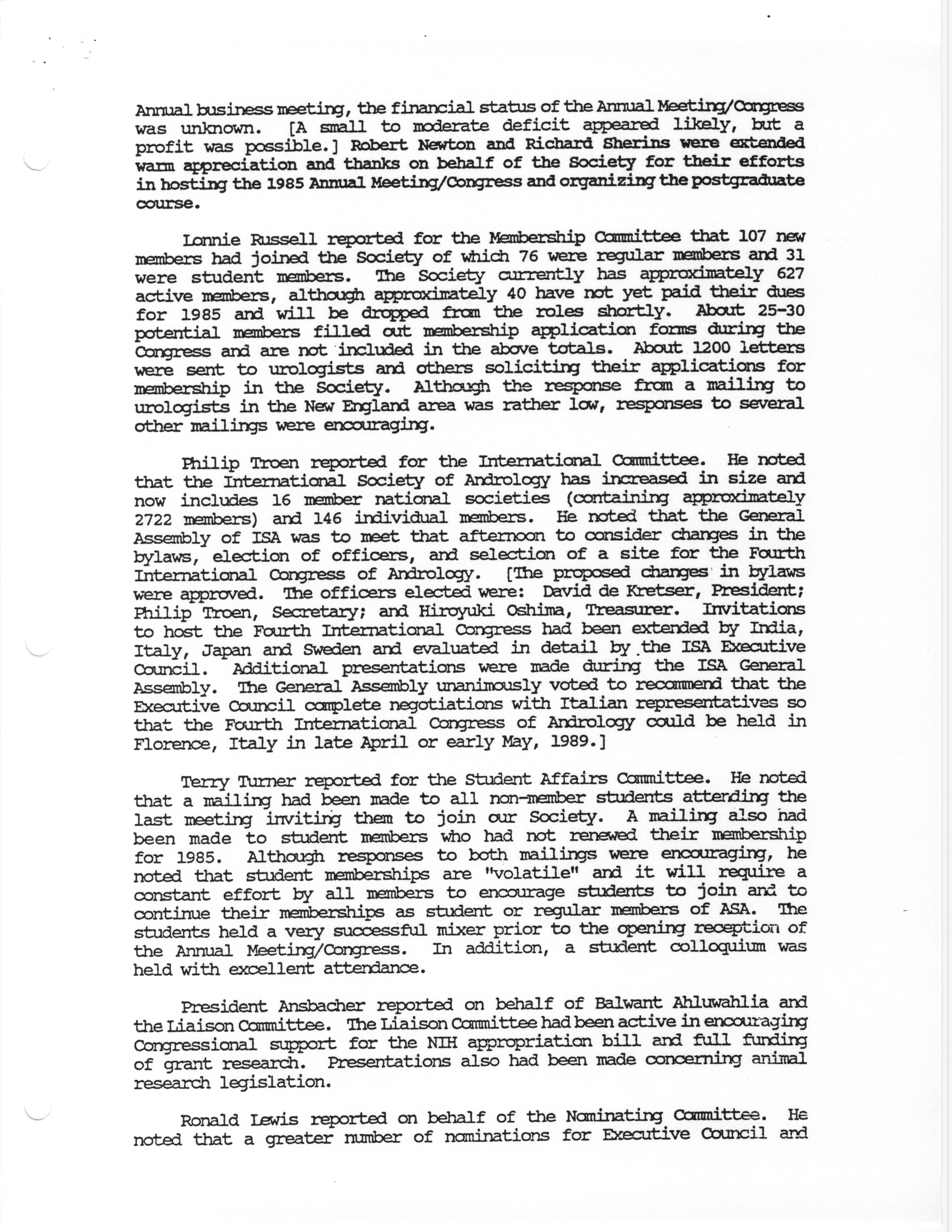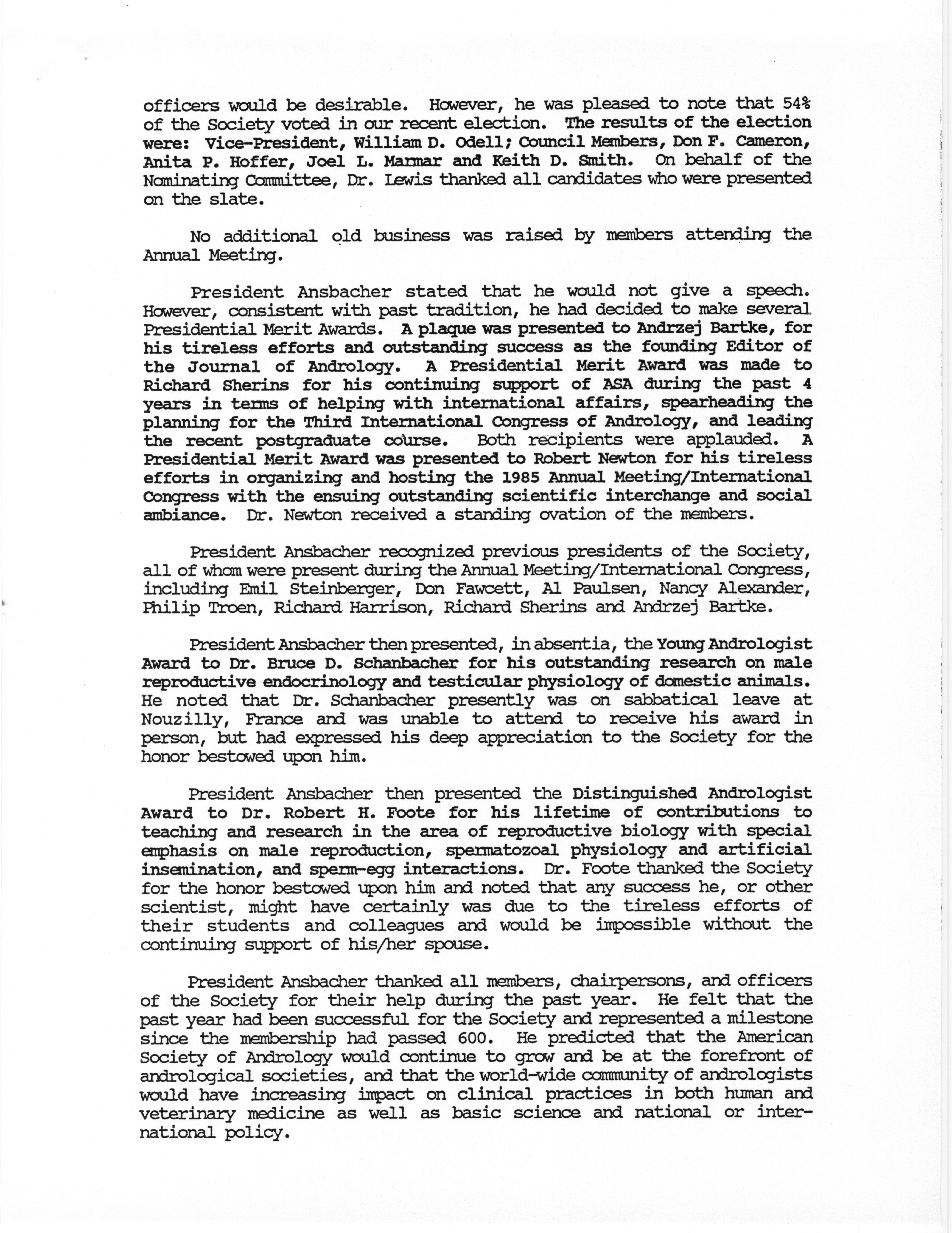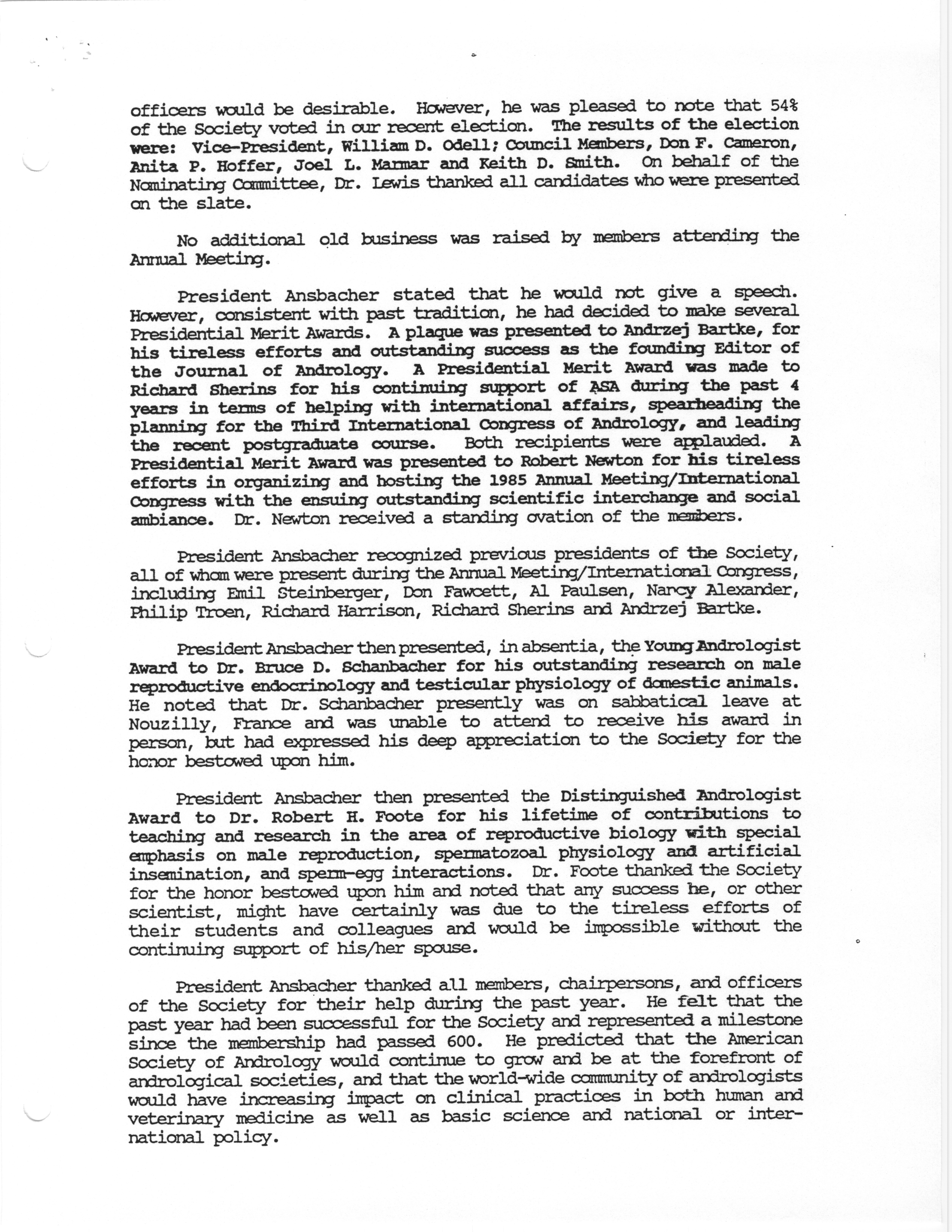 - "Business Meeting of the American Society of Andrology, 1985", American Society of Andrology Collection, Iowa State University Library Digital Collections