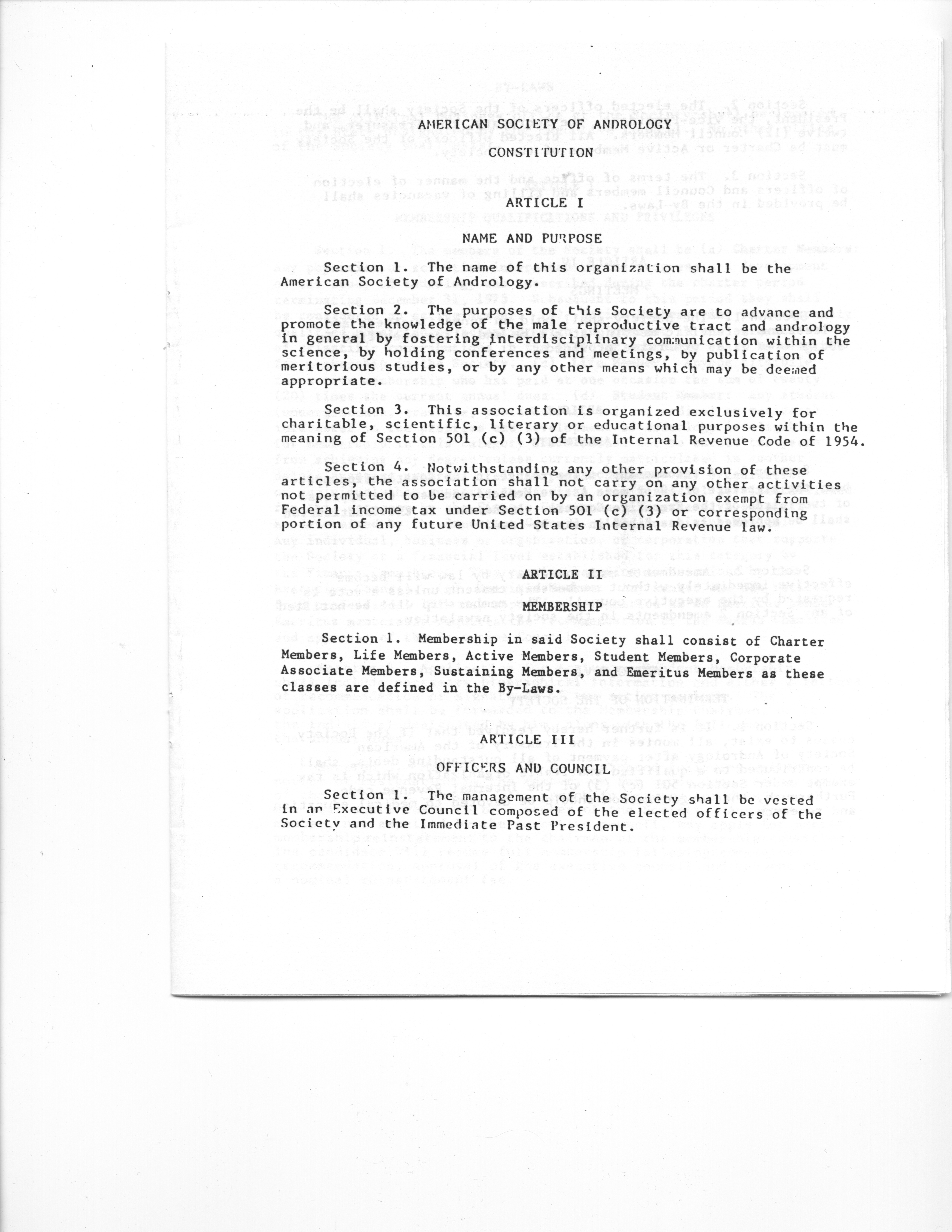 - "Constitution of the American Society of Andrology, 1984", American Society of Andrology Collection, Iowa State University Library Digital Collections