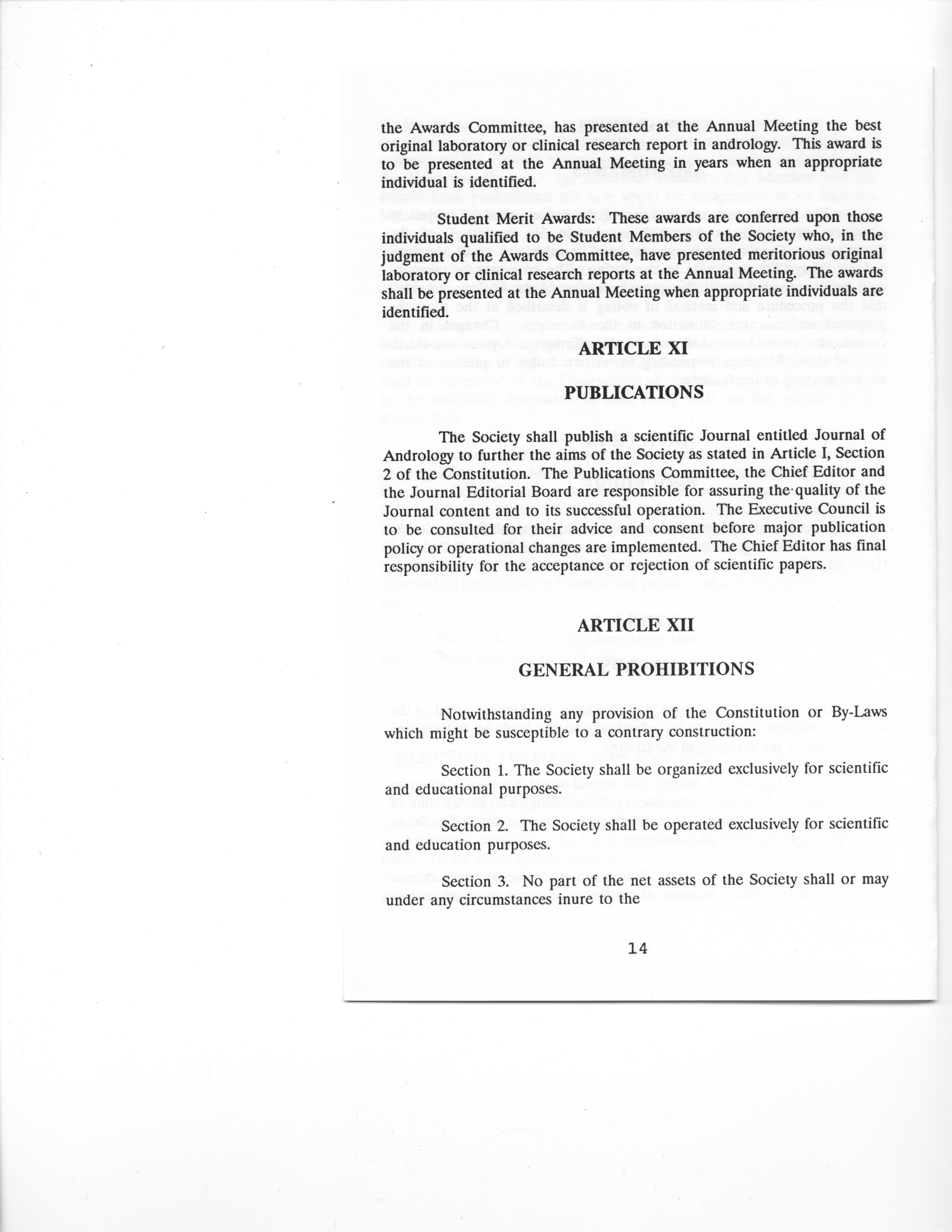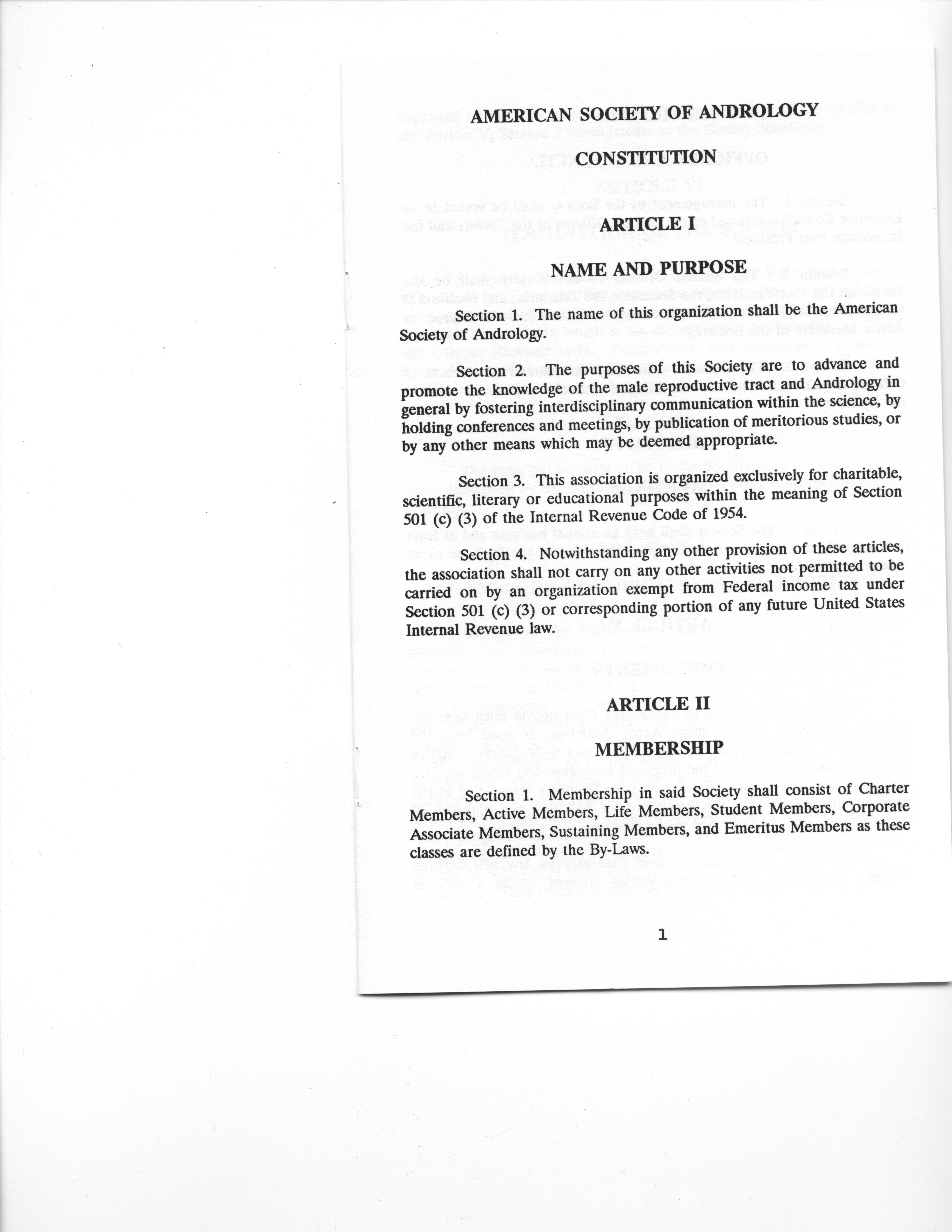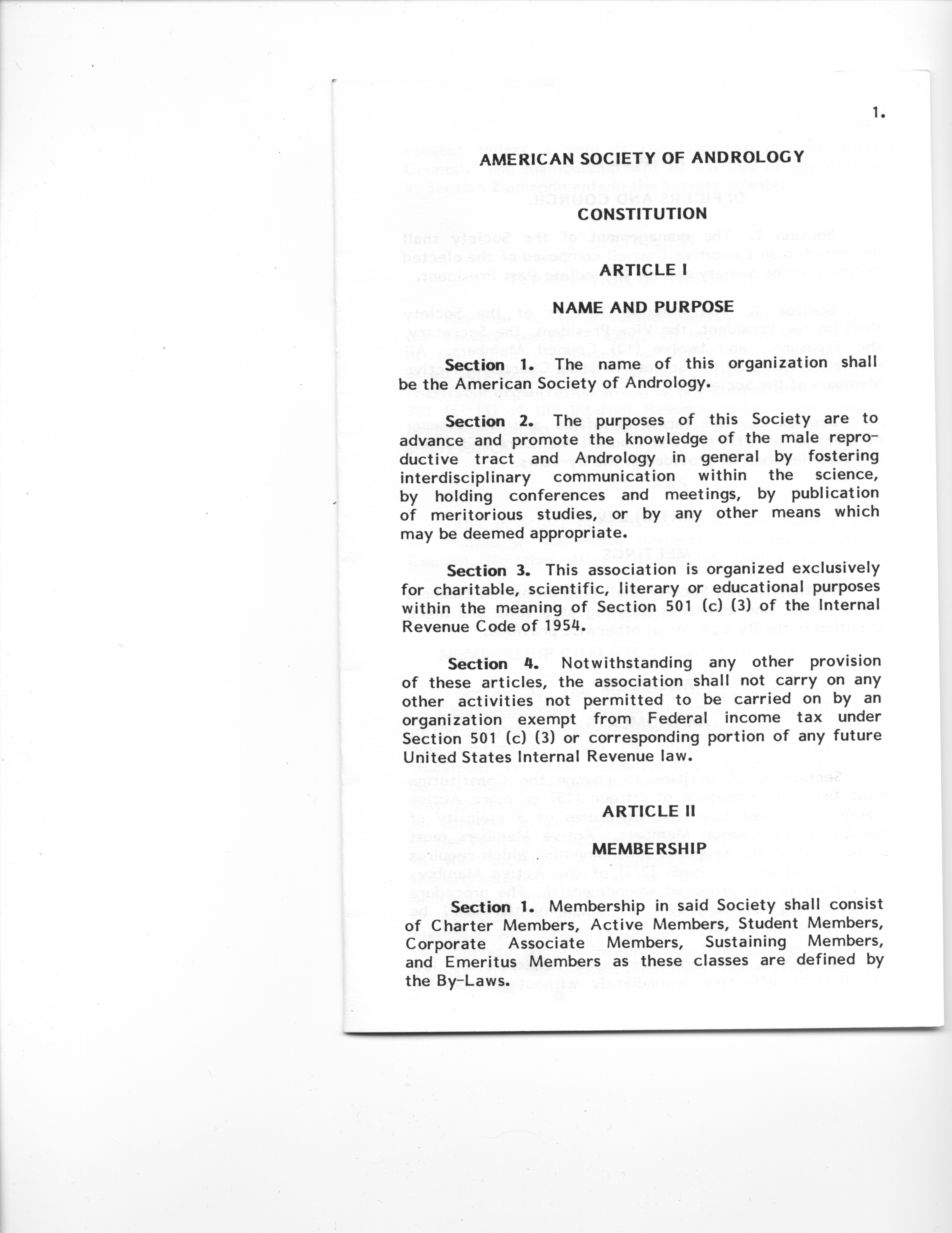 - "Constitution and By-laws of the American Society of Andrology", American Society of Andrology Collection, Iowa State University Library Digital Collections