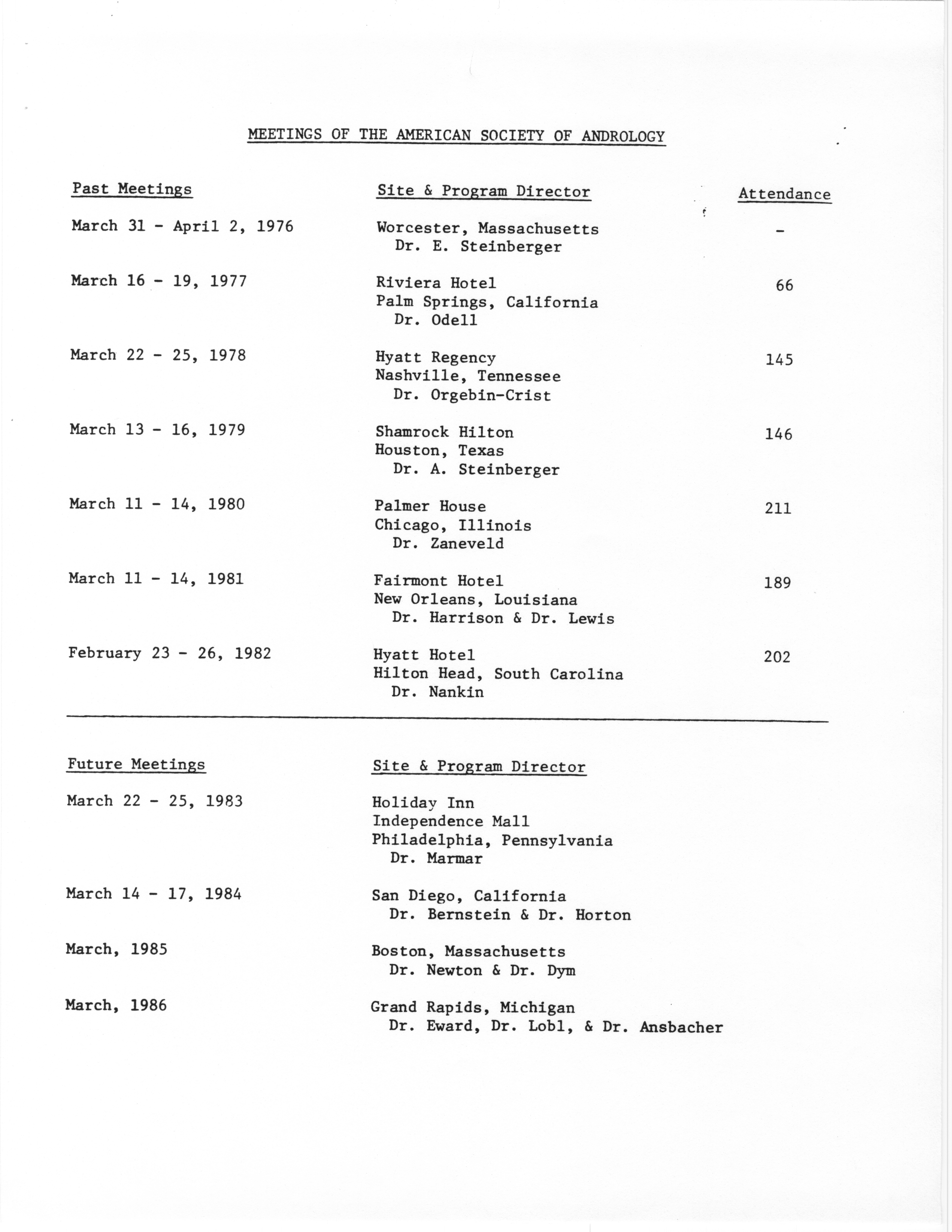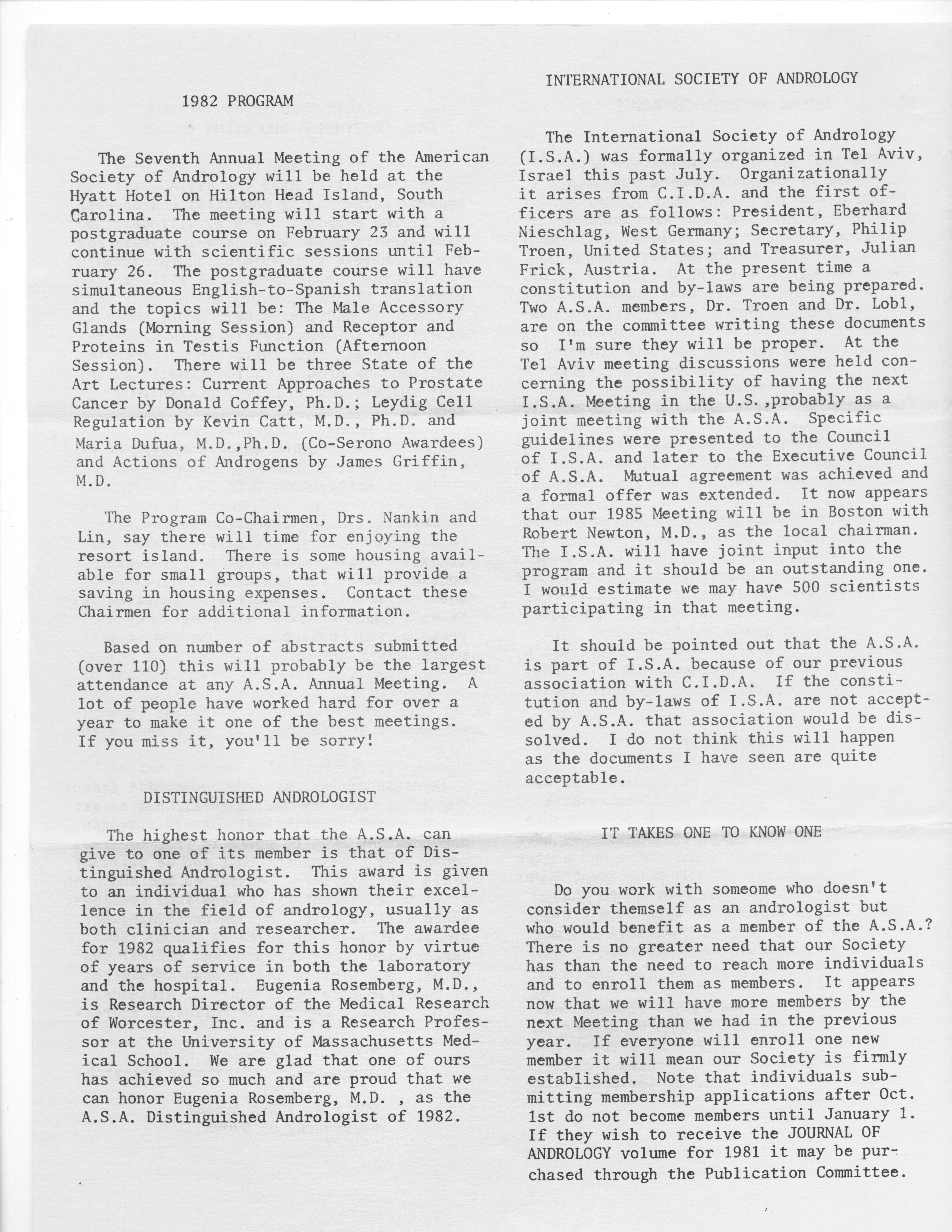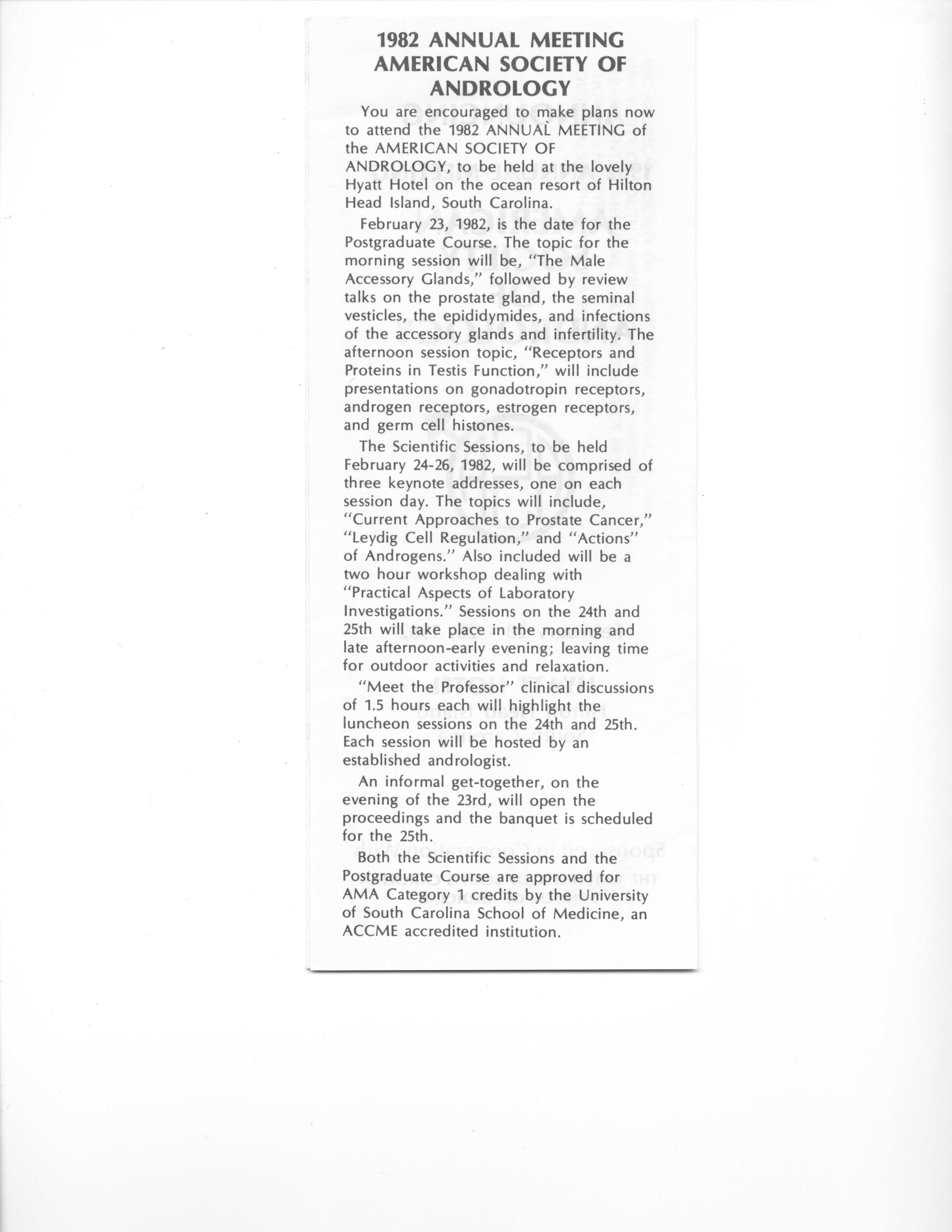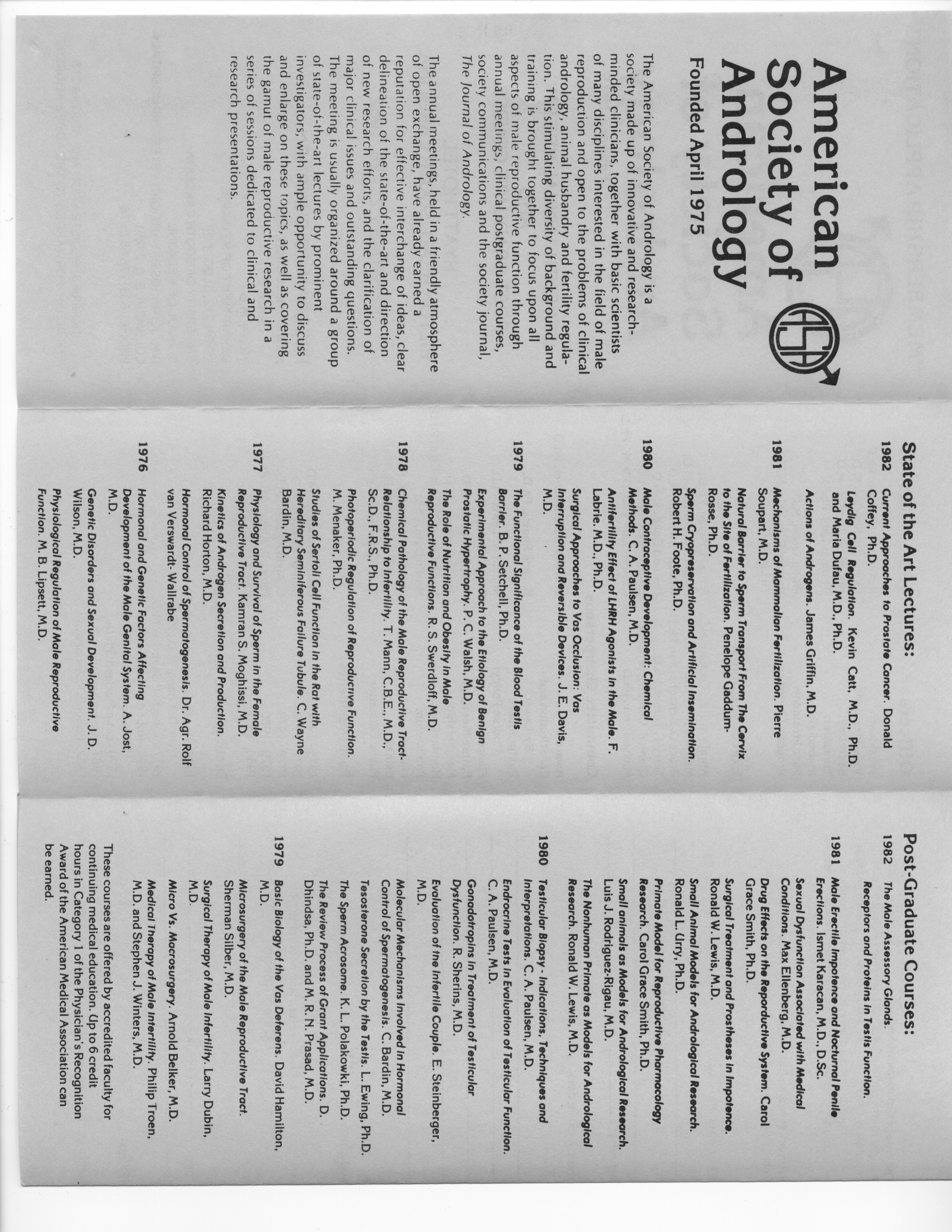 - "Annual Meeting of the American Society of Andrology, 1982", American Society of Andrology Collection, Iowa State University Library Digital Collections