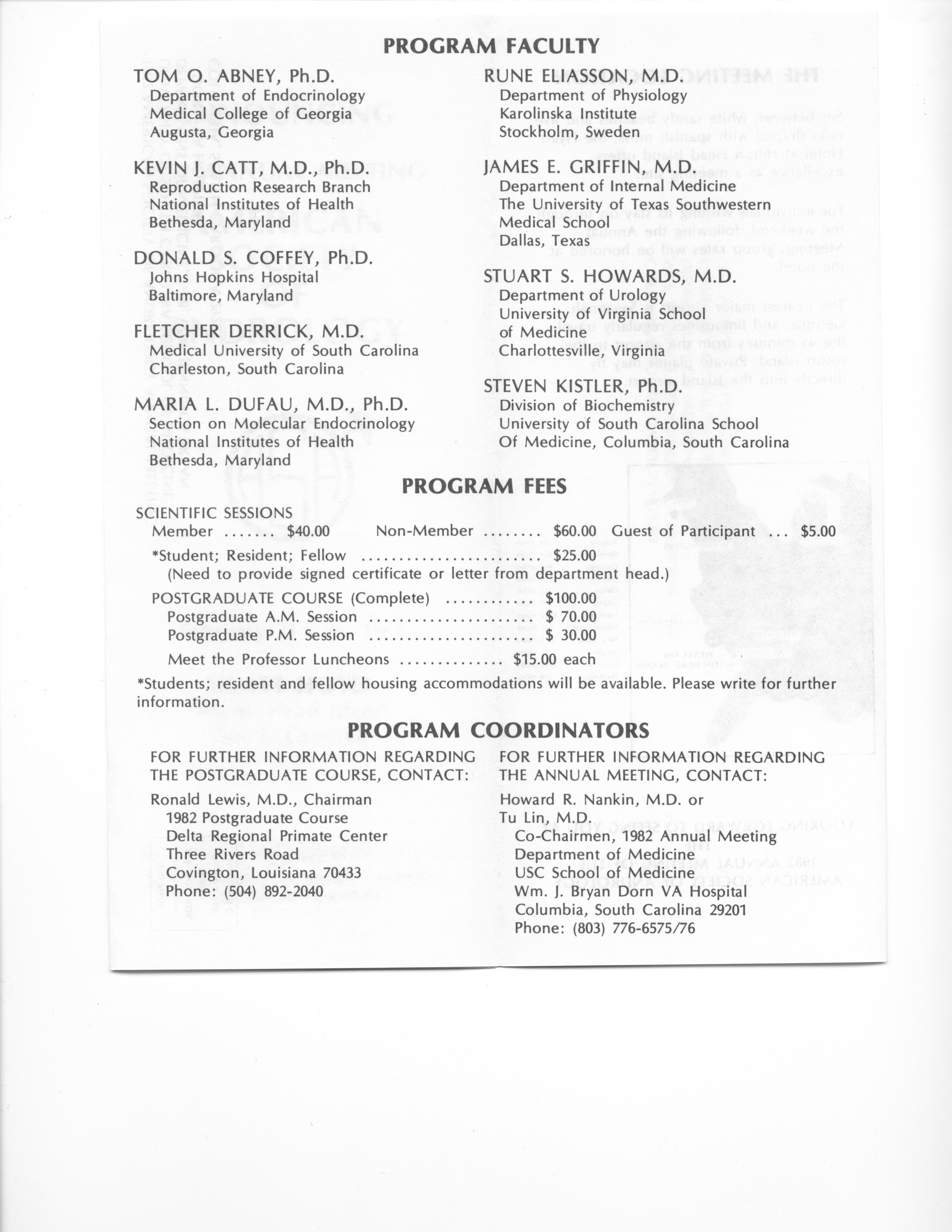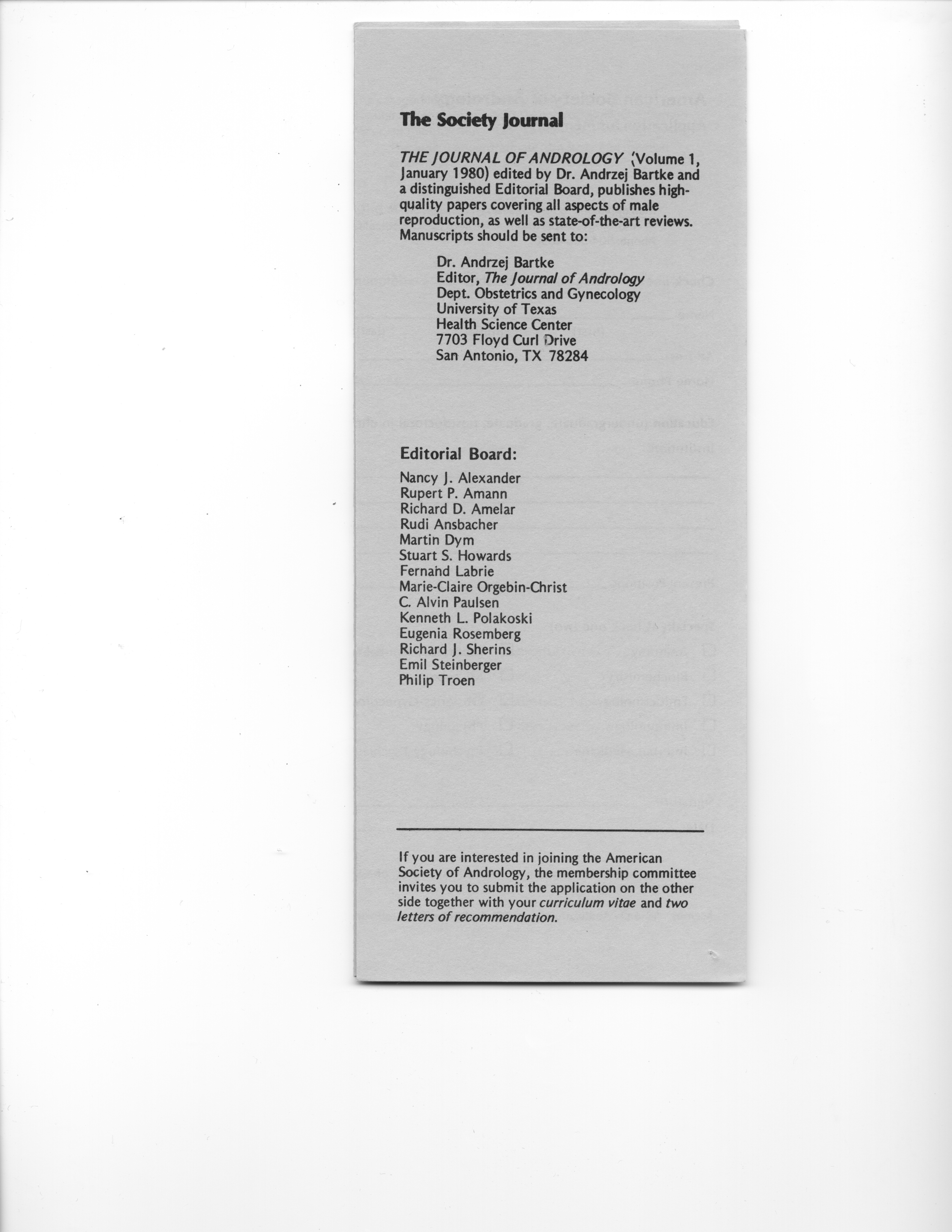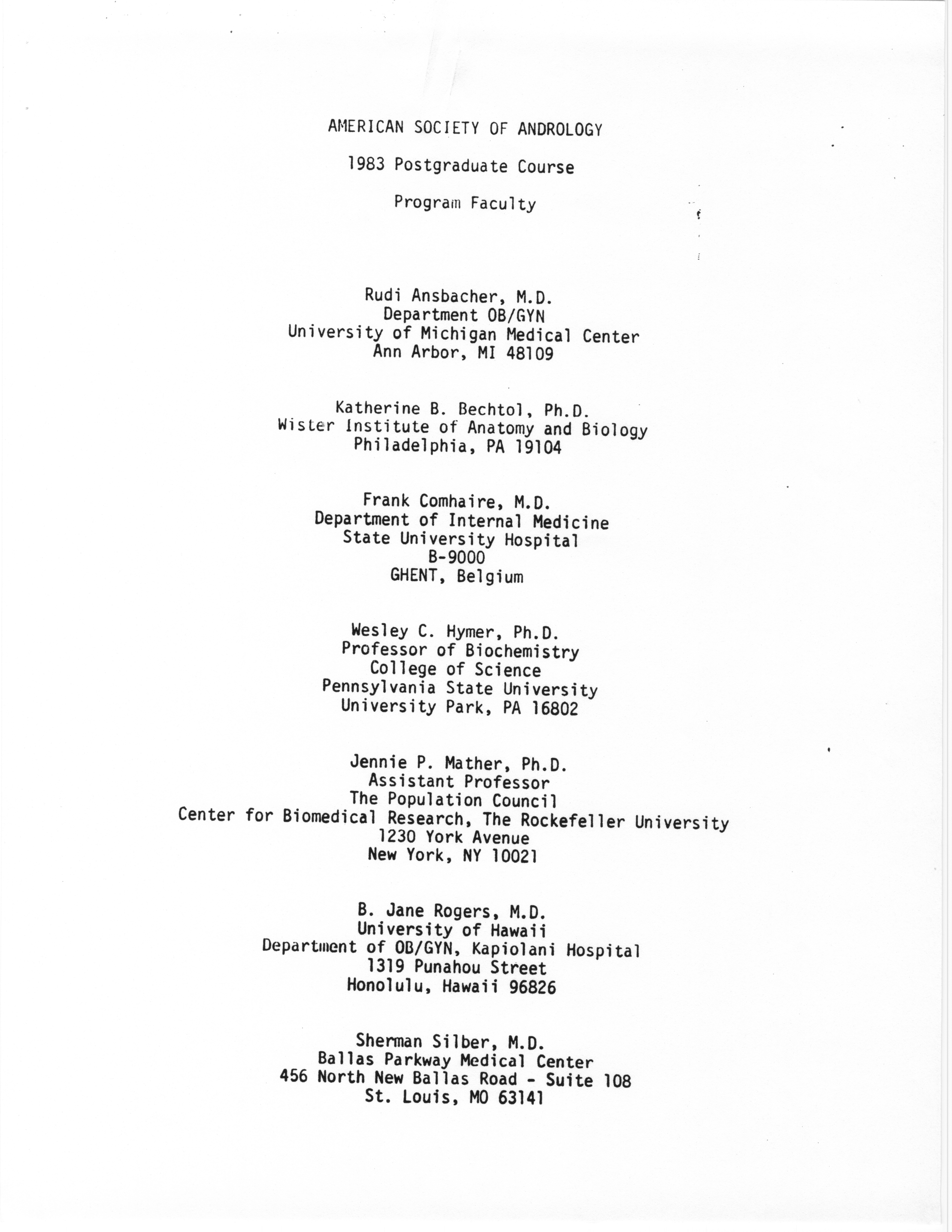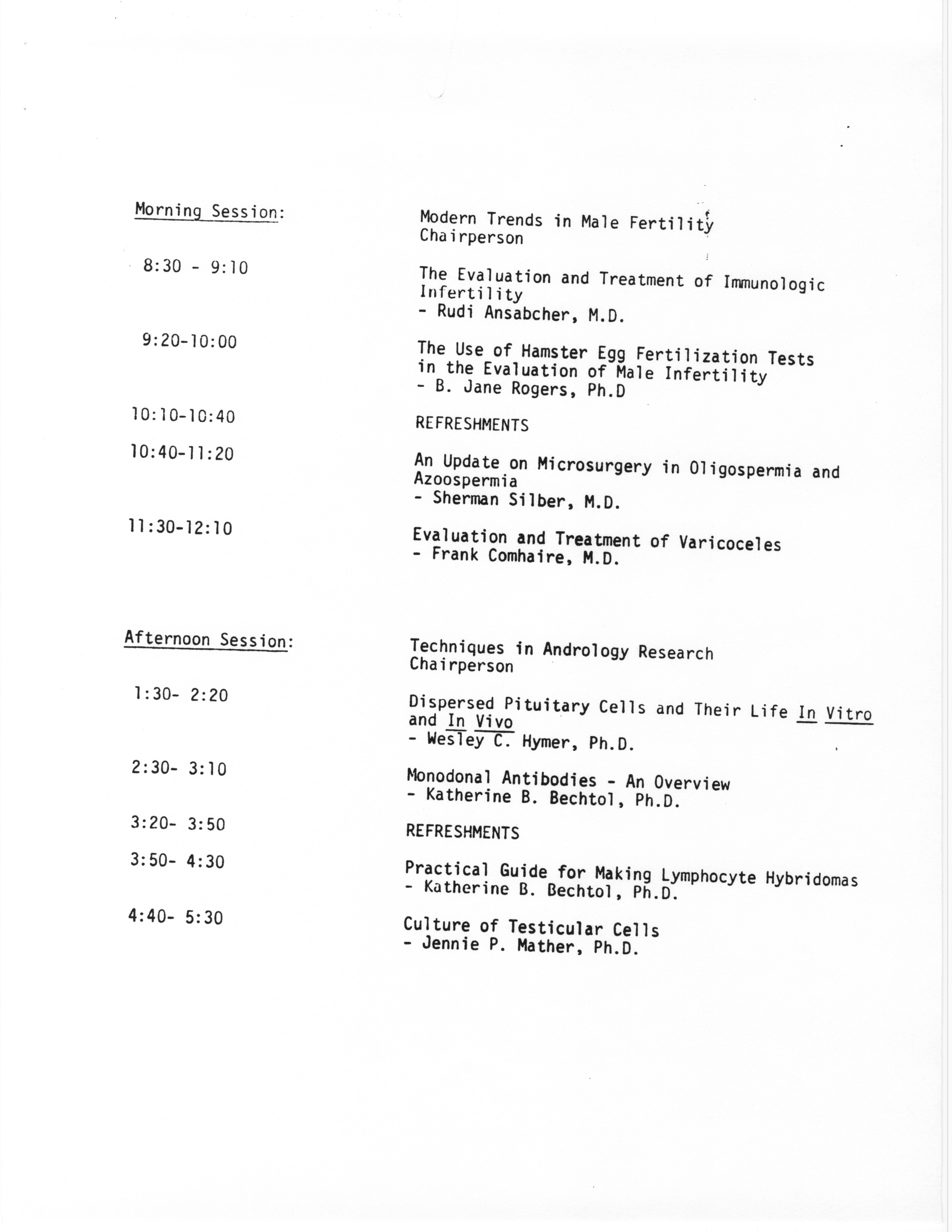 - "Annual Meeting of the American Society of Andrology, 1982", American Society of Andrology Collection, Iowa State University Library Digital Collections