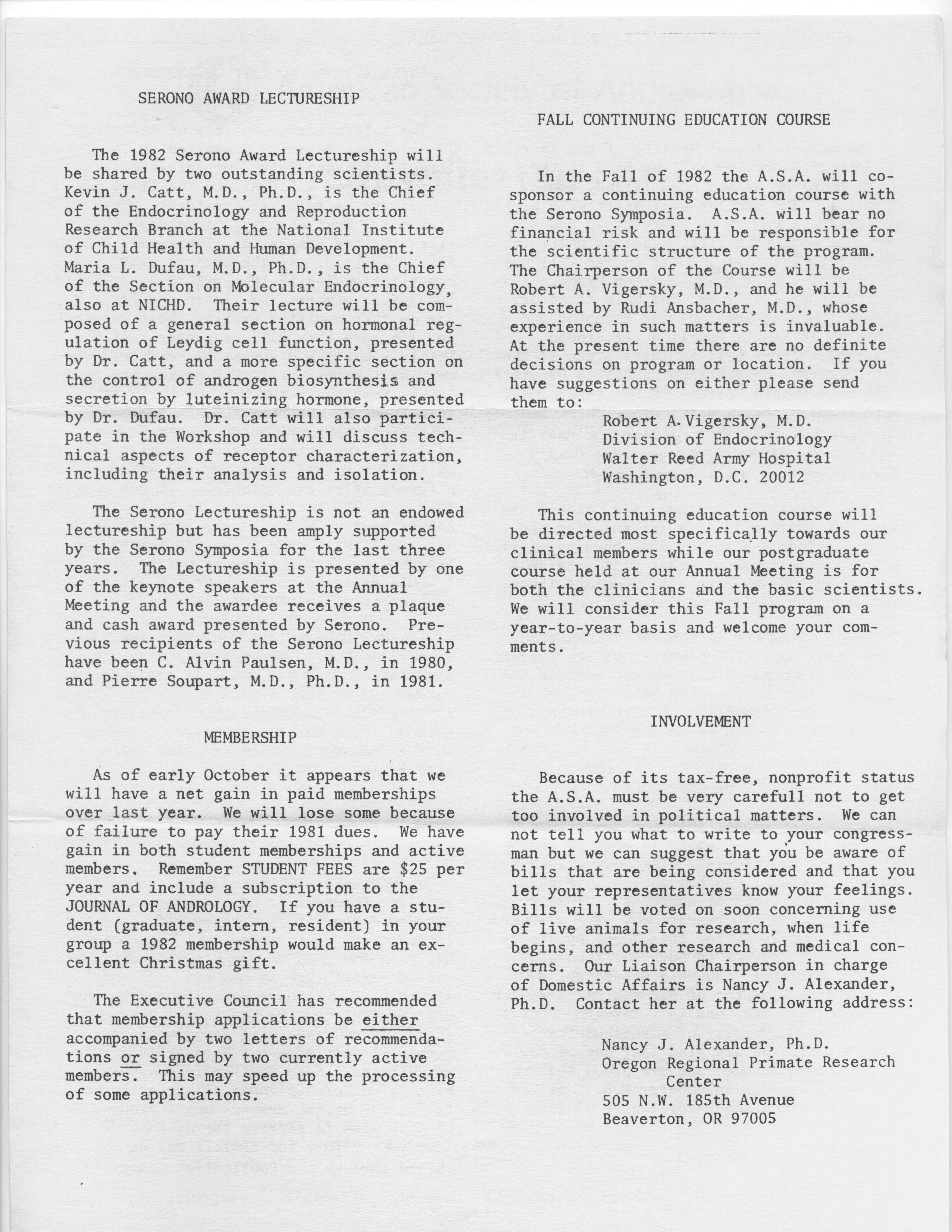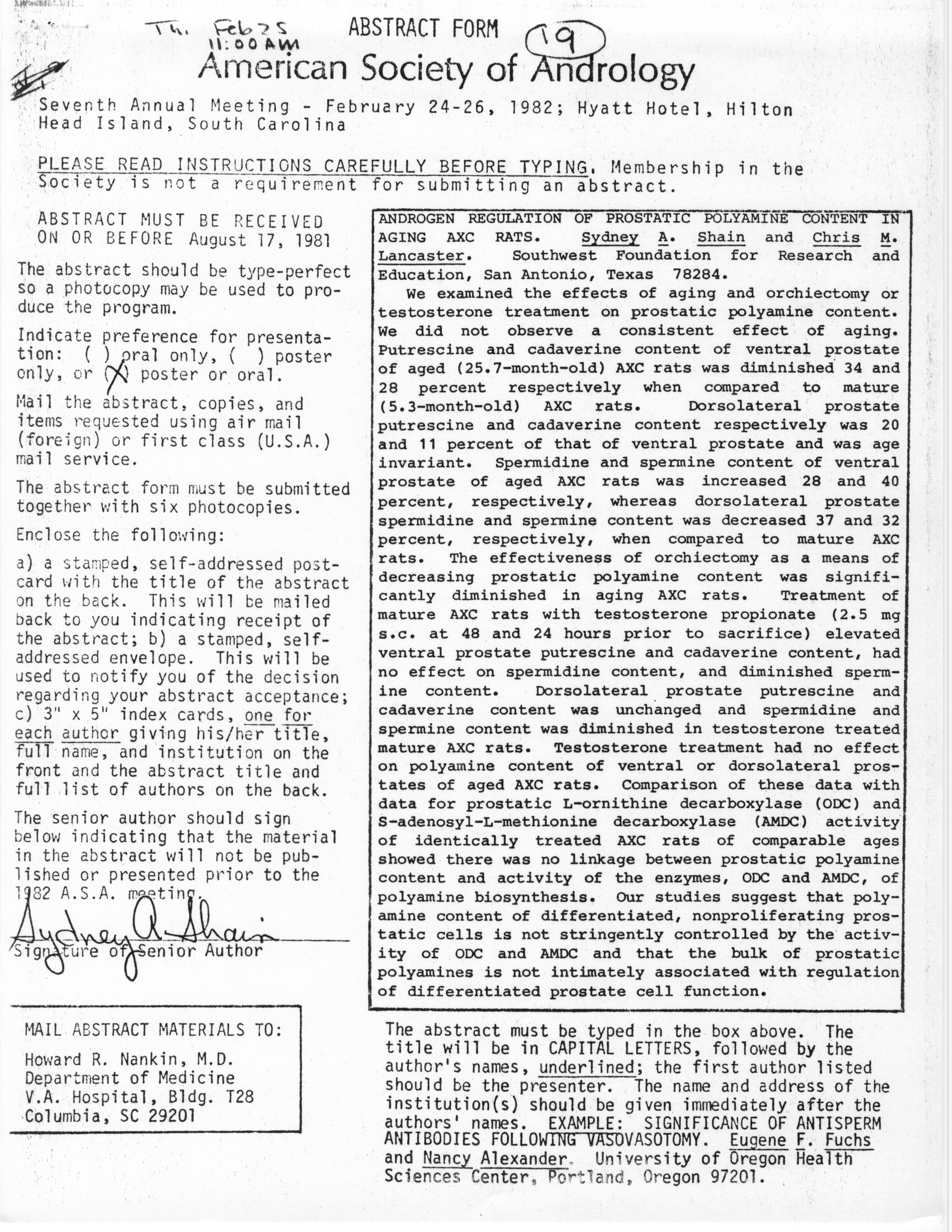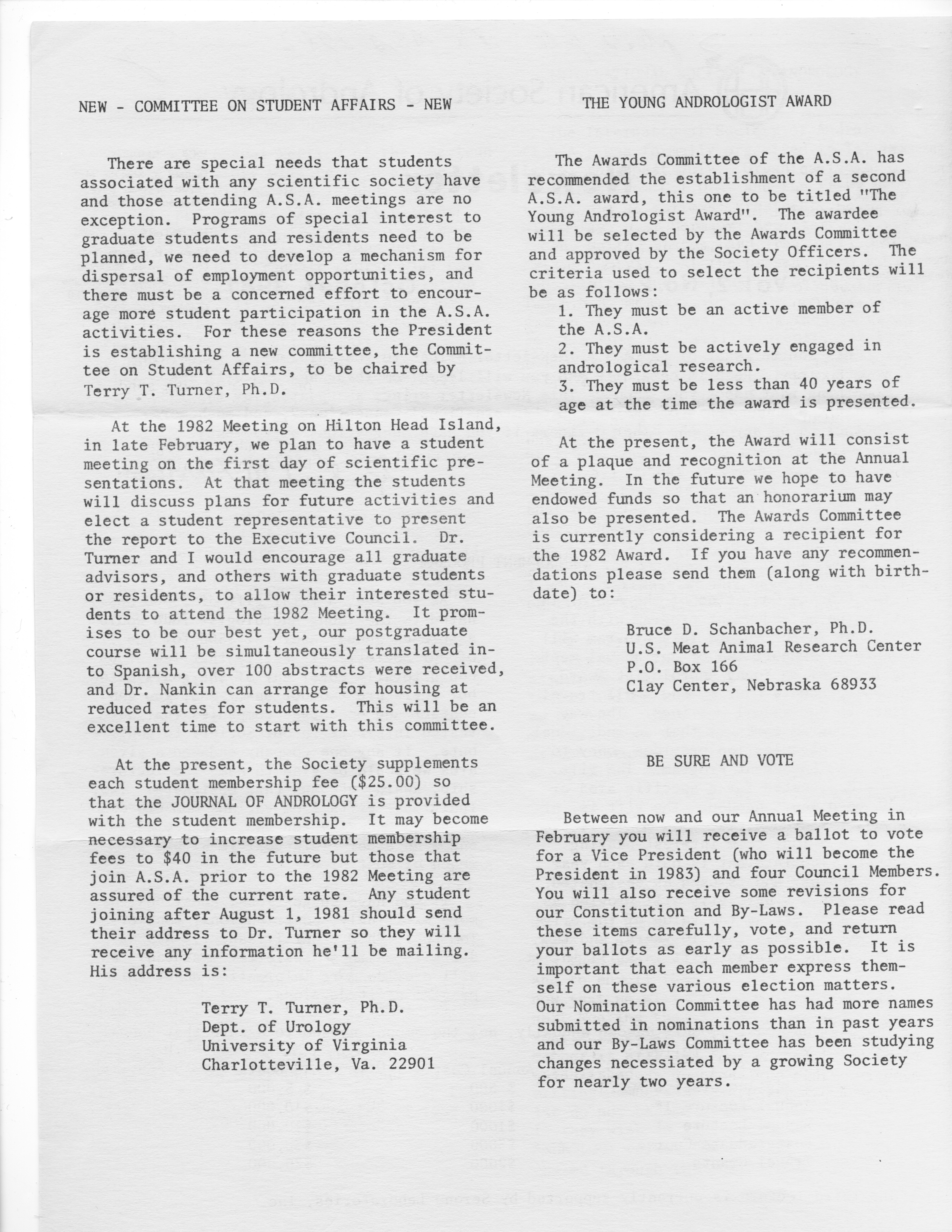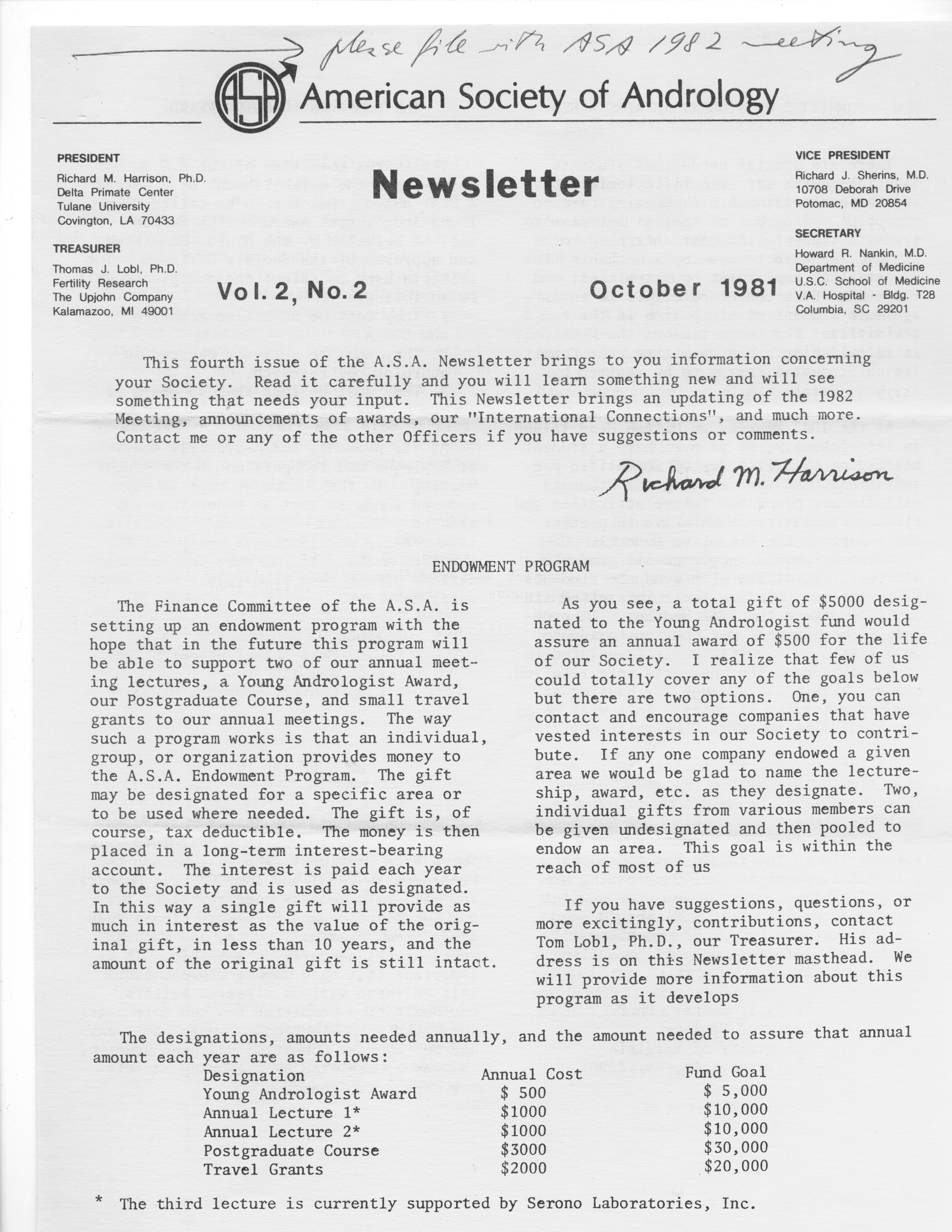 - "Annual Meeting of the American Society of Andrology, 1982", American Society of Andrology Collection, Iowa State University Library Digital Collections