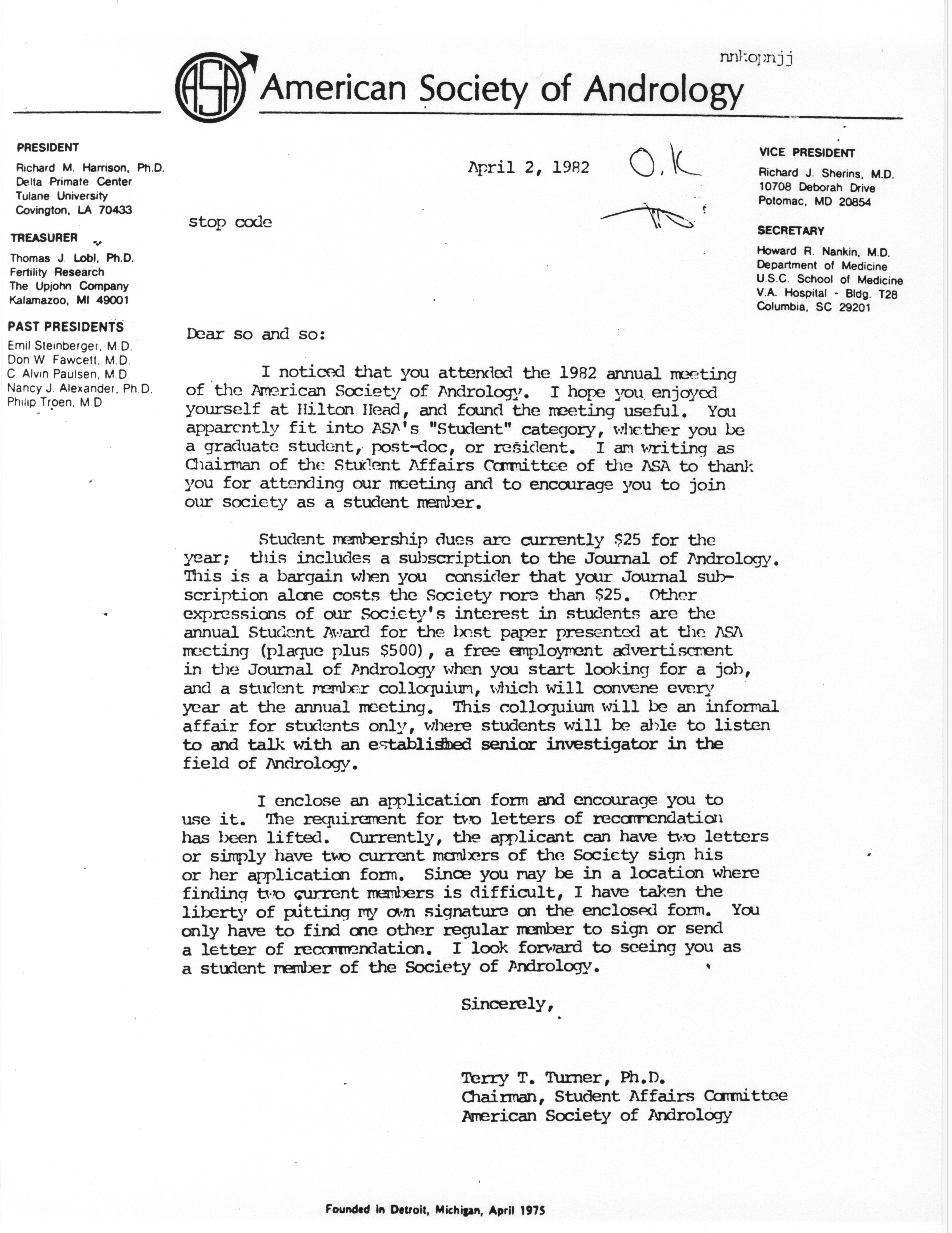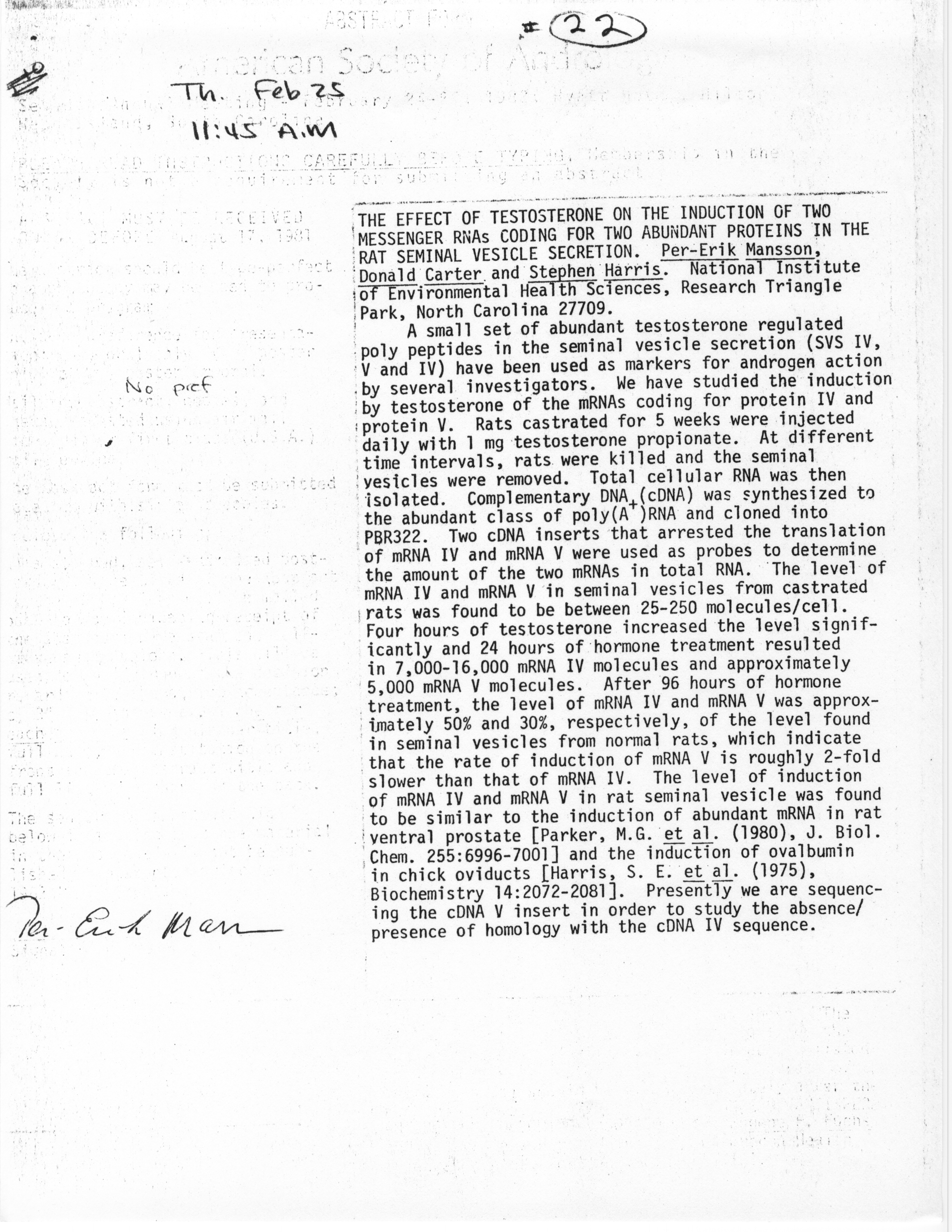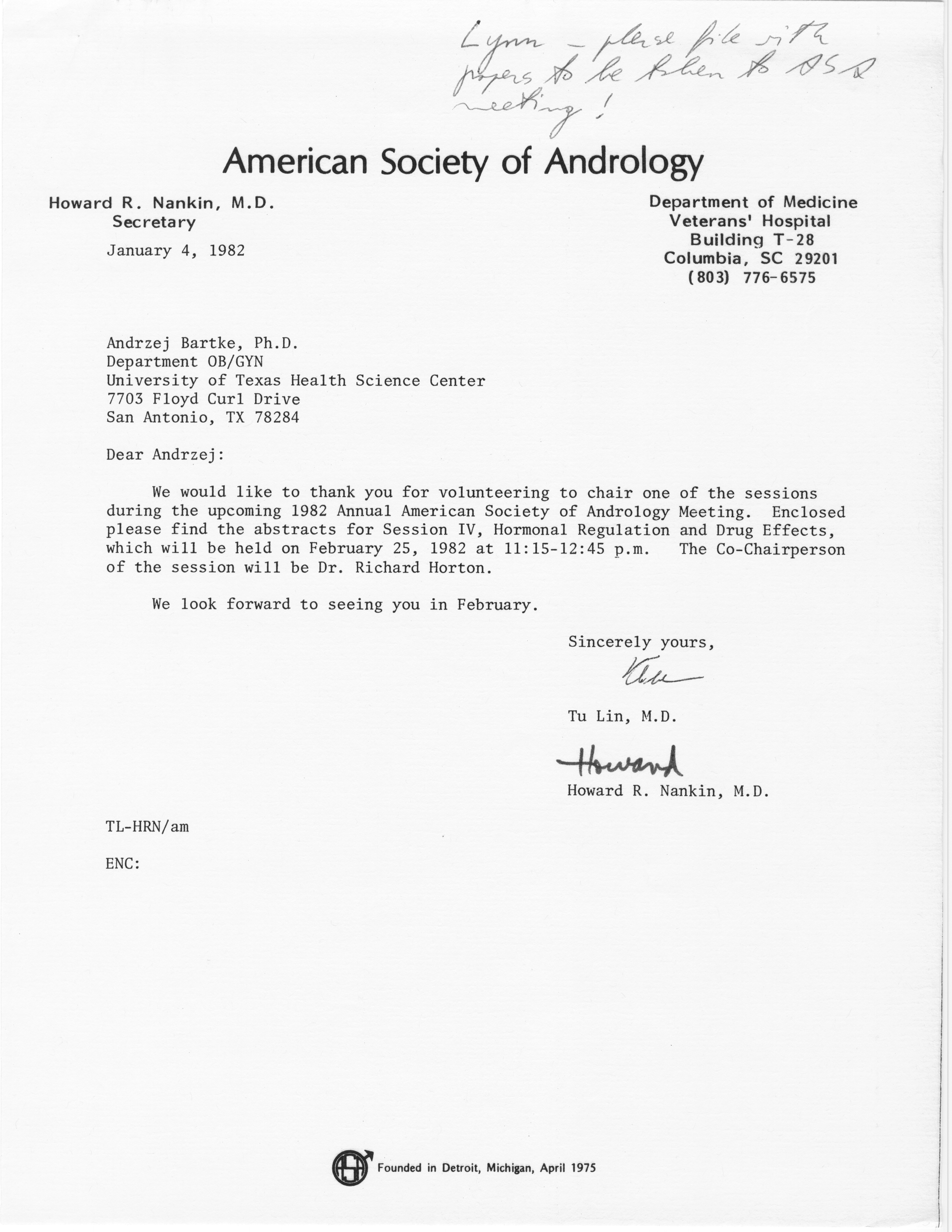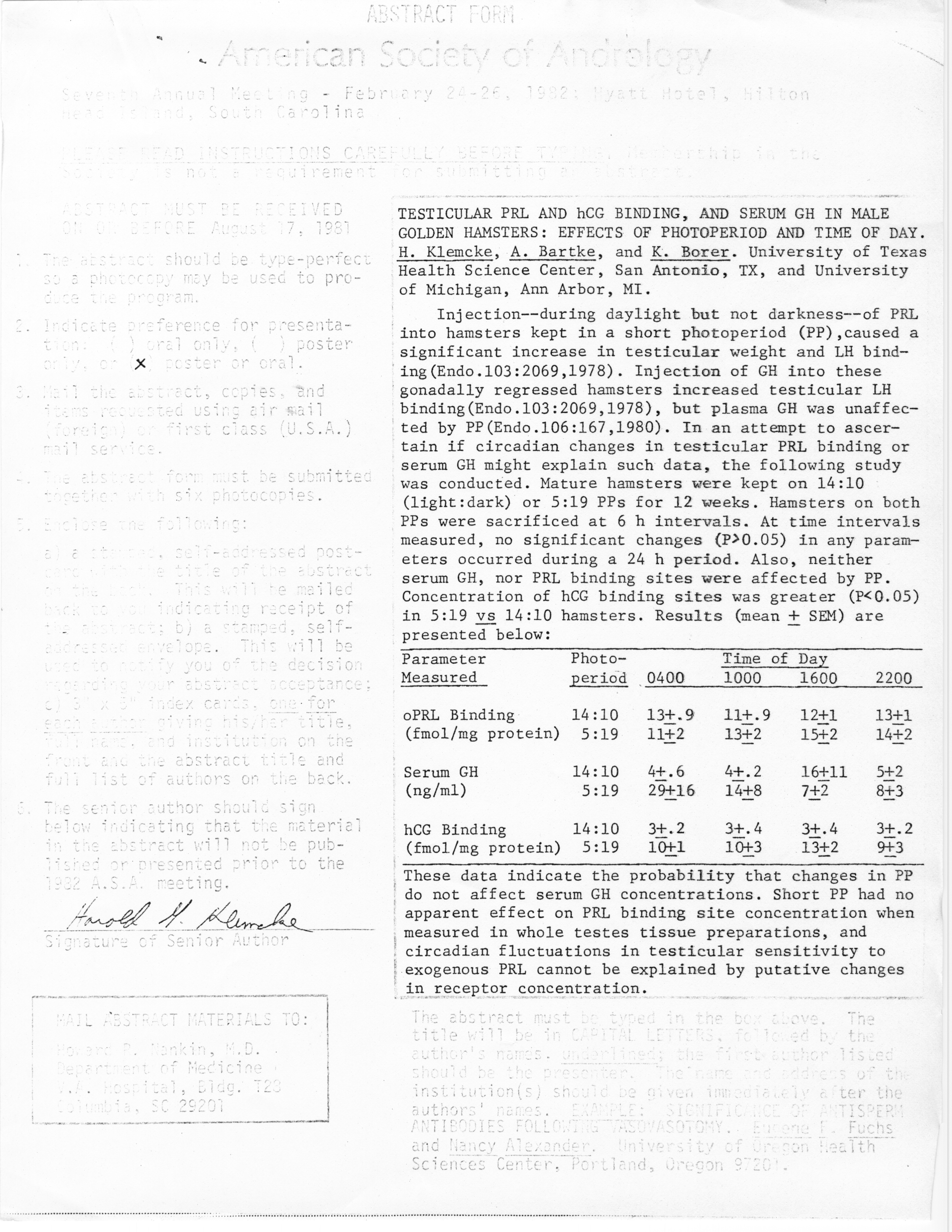 - "Annual Meeting of the American Society of Andrology, 1982", American Society of Andrology Collection, Iowa State University Library Digital Collections