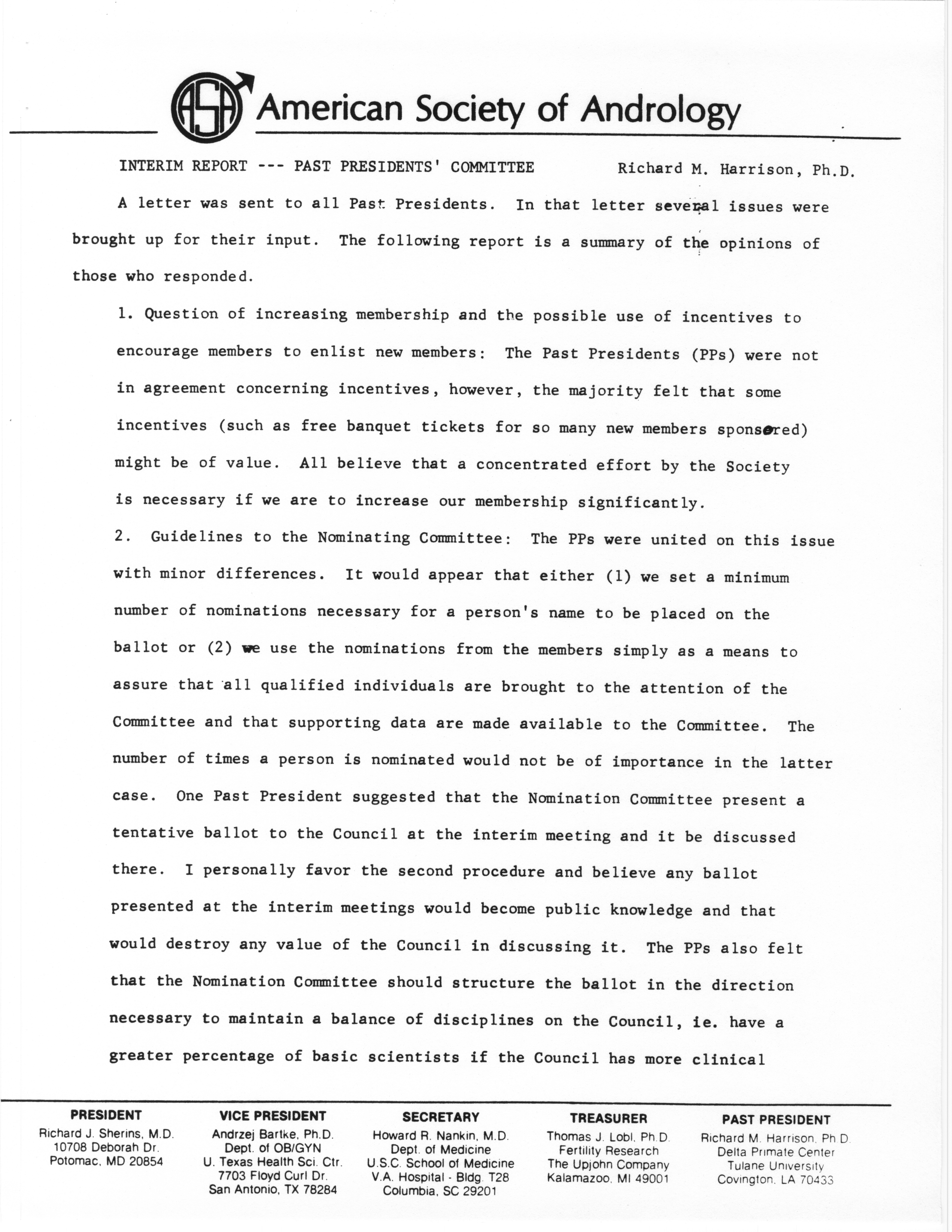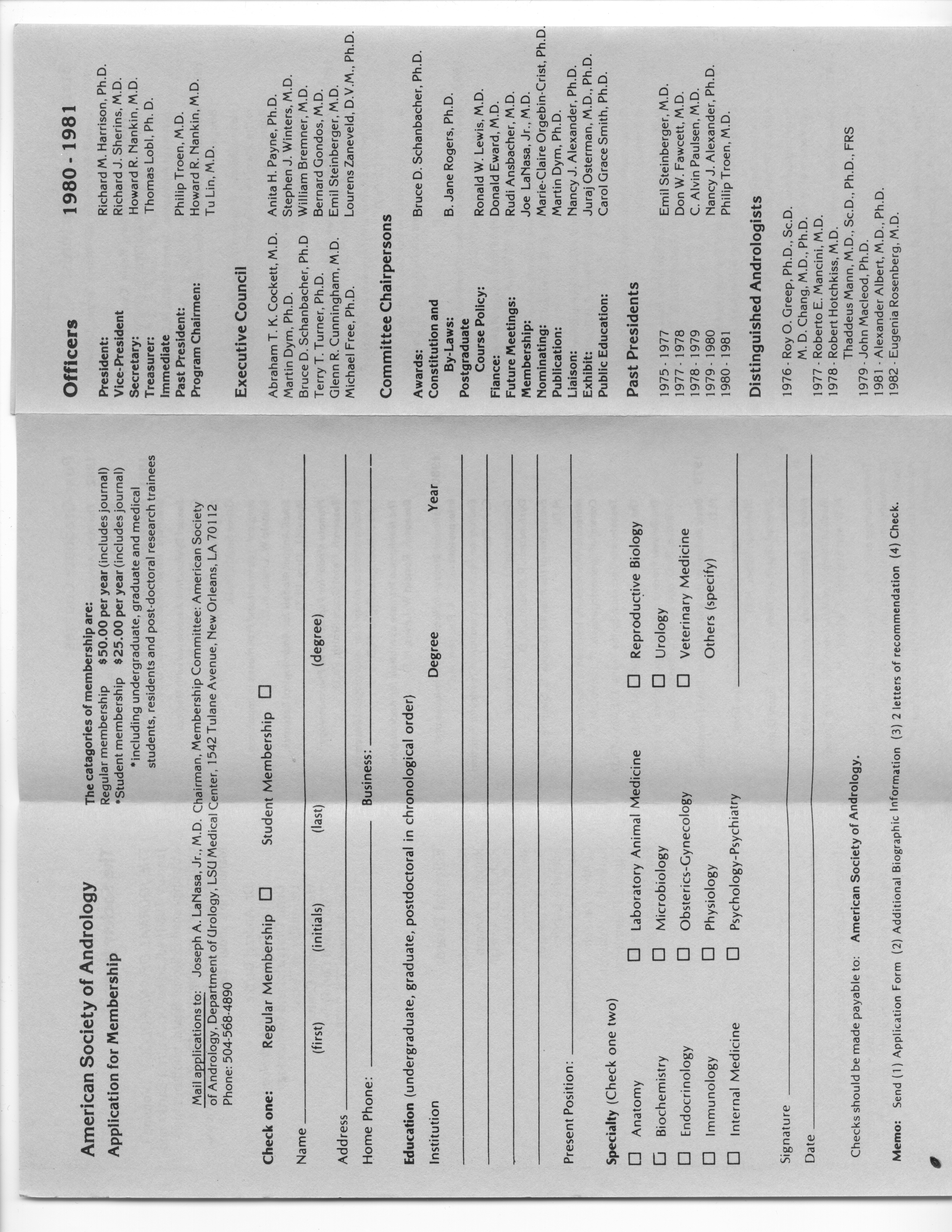 - Includes officer reports, Journal of Andrology report, brochures, correspondence, abstract submissions, newsletters, and membership application forms.