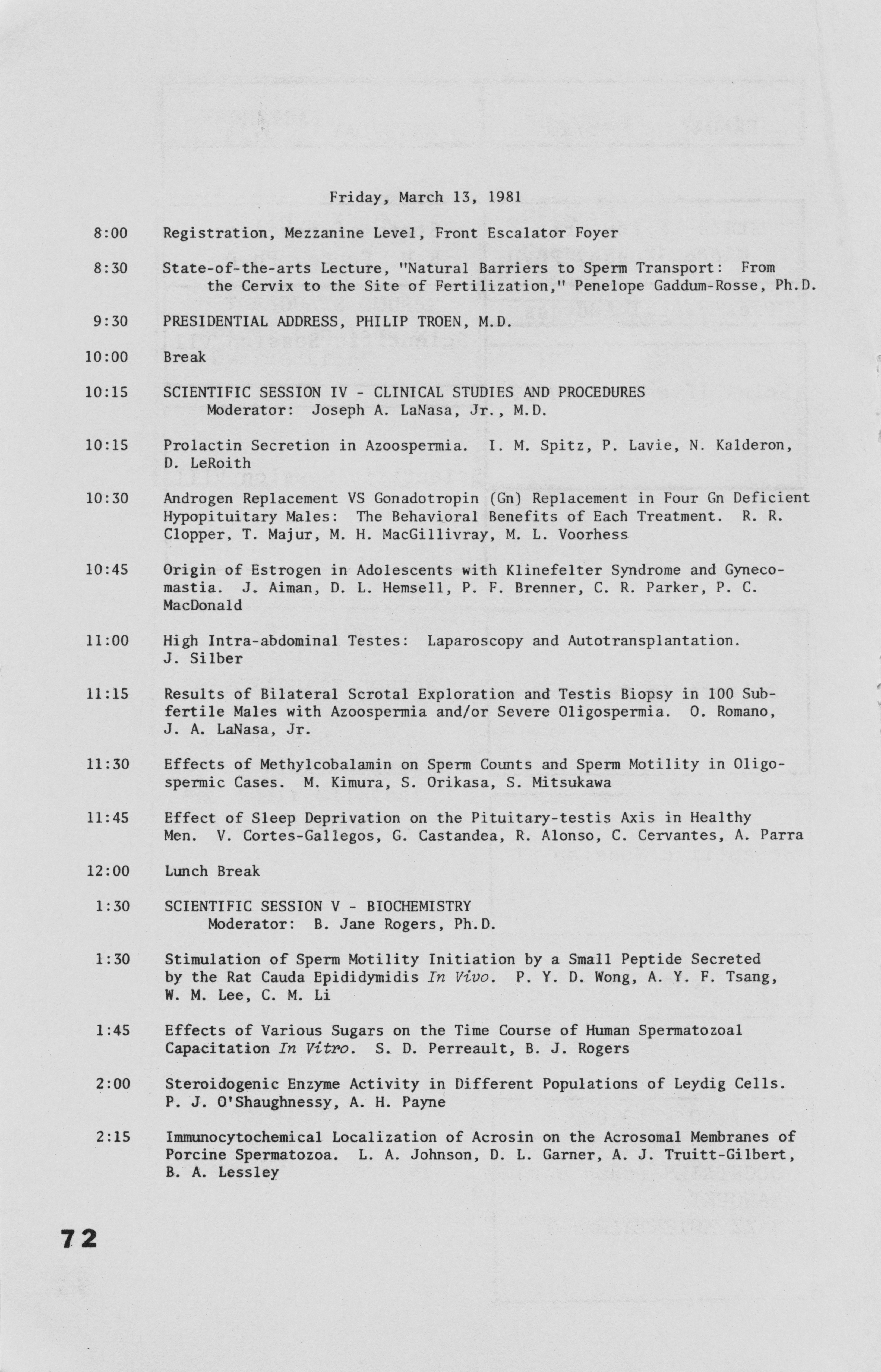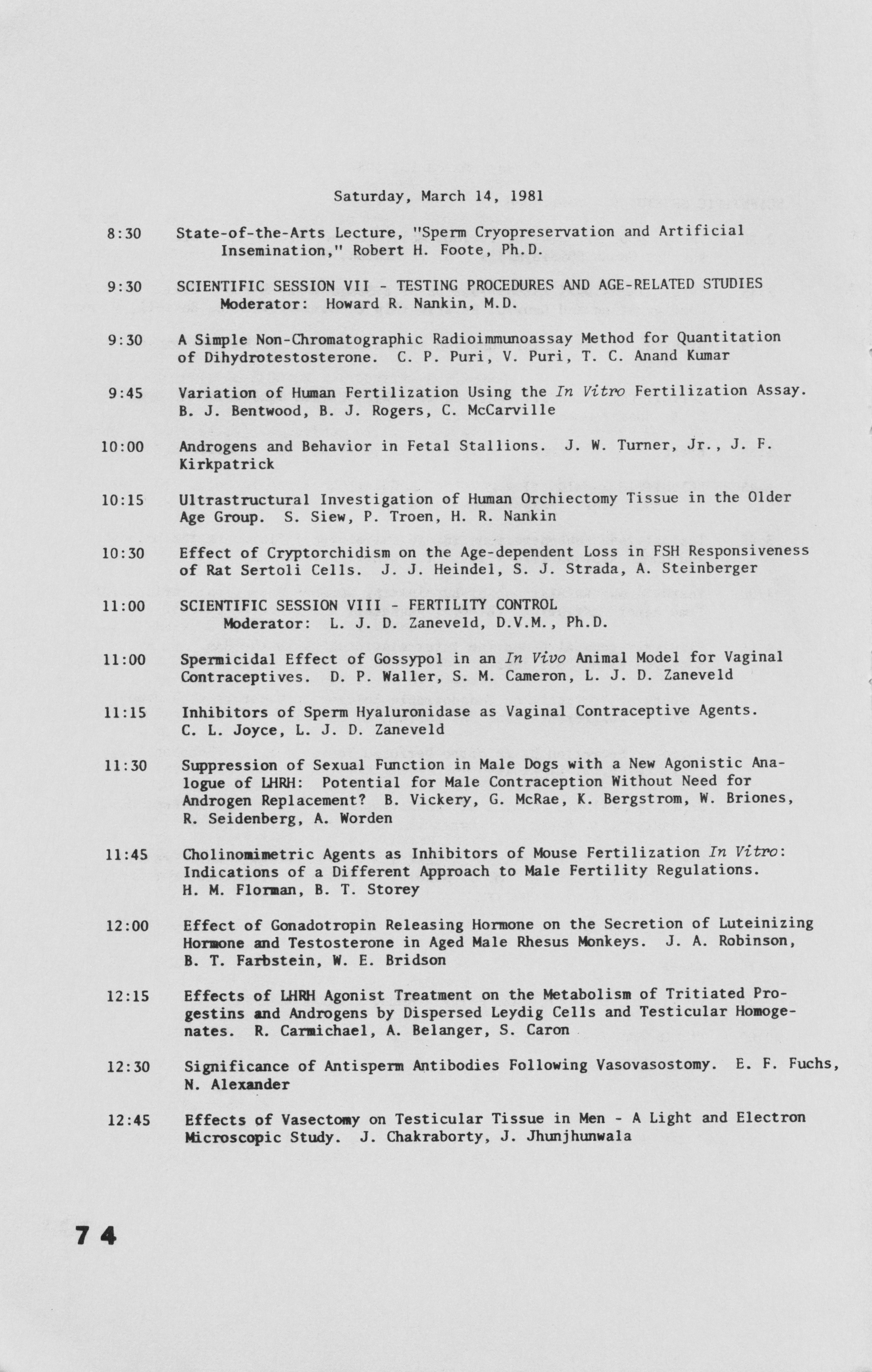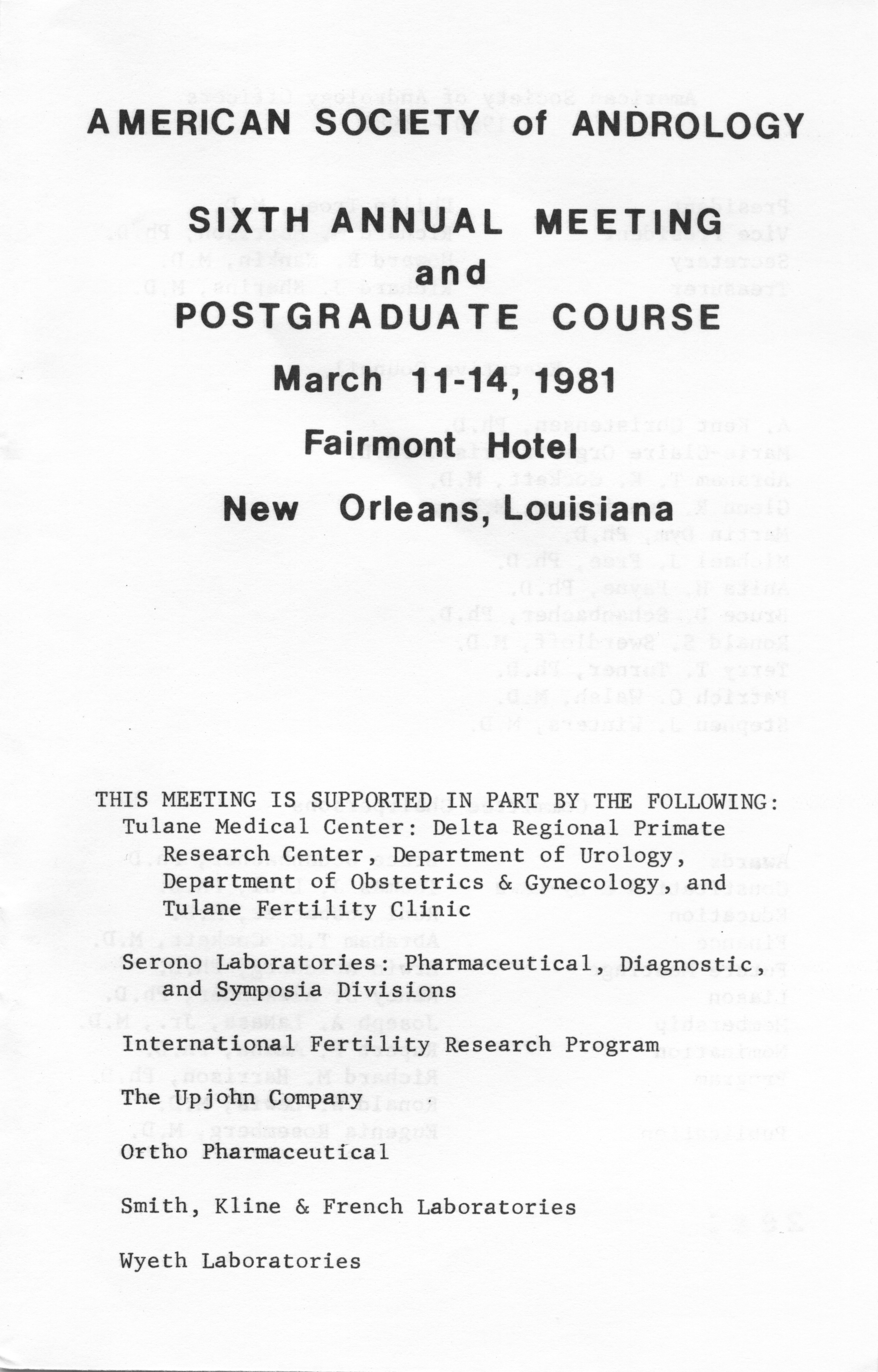 - "Annual Meeting Program of the American Society of Andrology, 1981", American Society of Andrology Collection, Iowa State University Library Digital Collections
