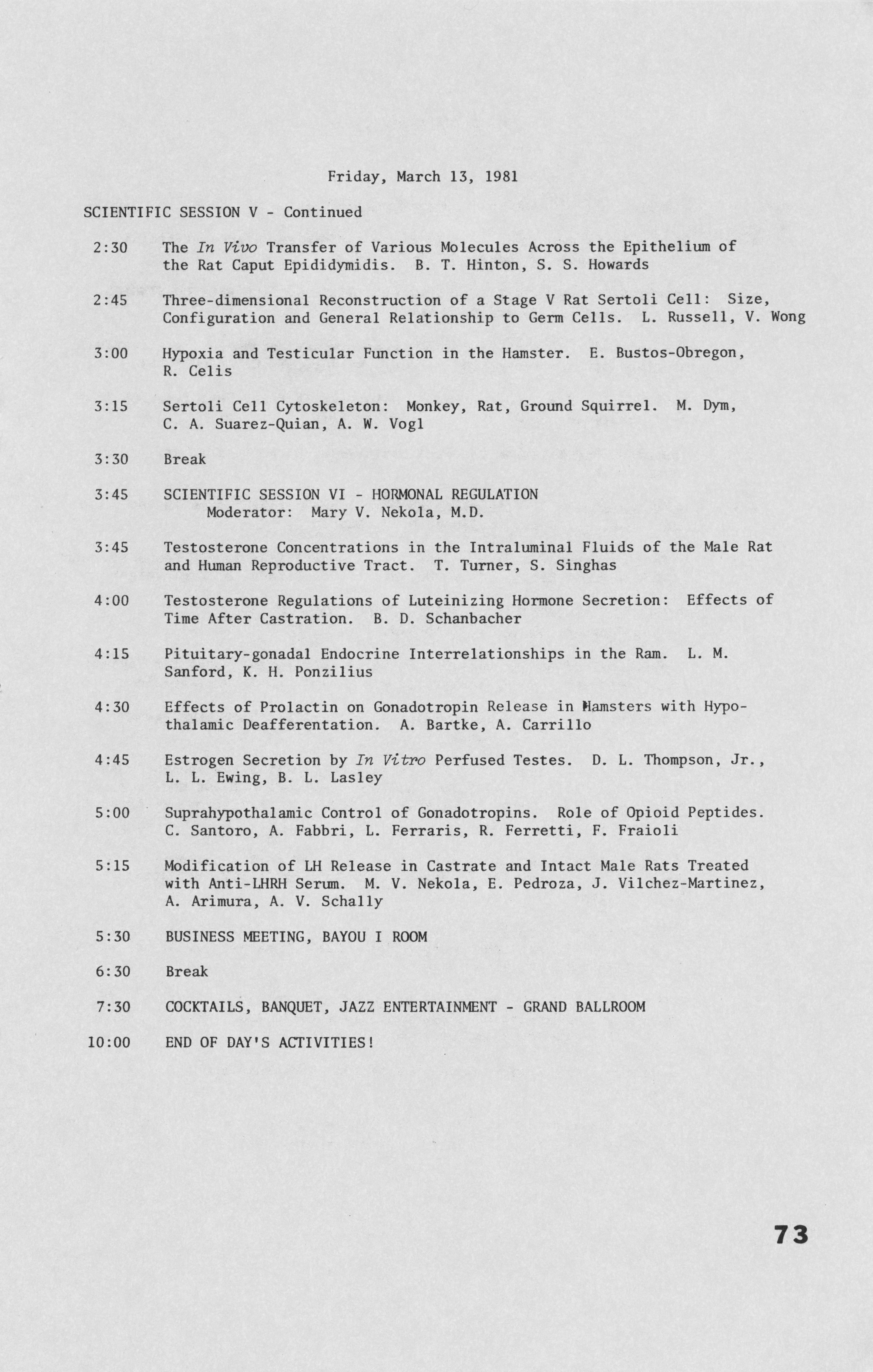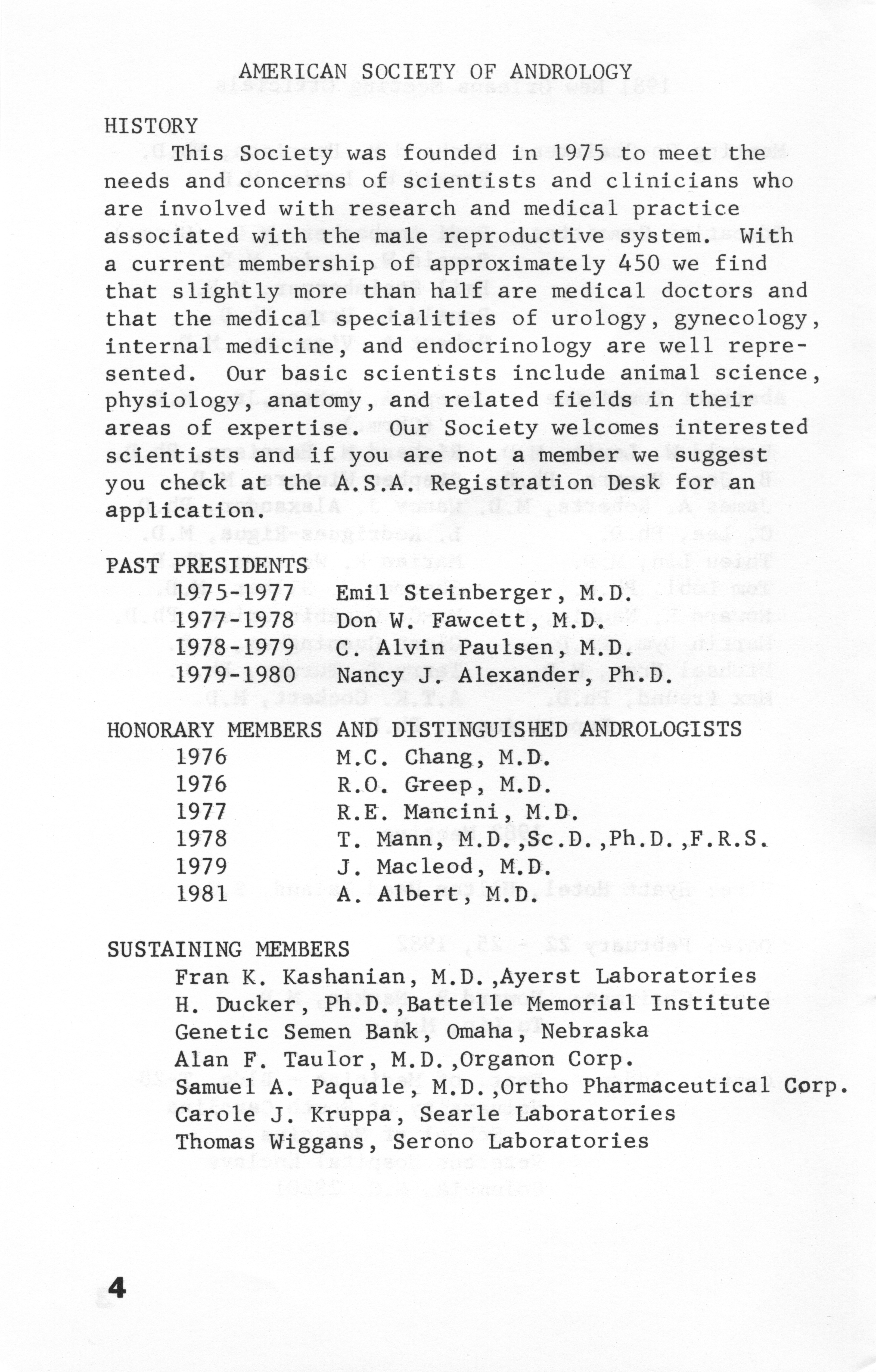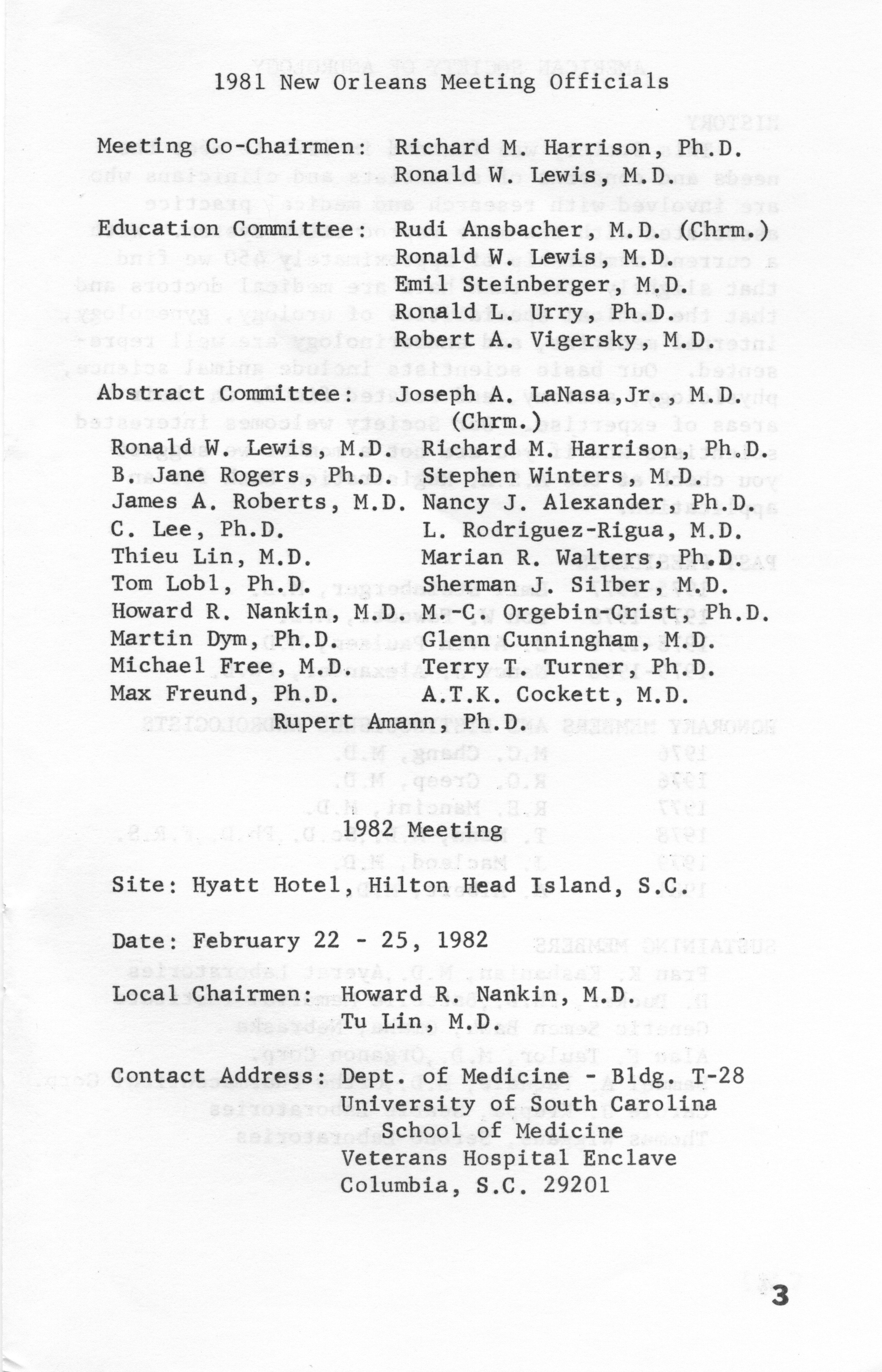 - "Annual Meeting Program of the American Society of Andrology, 1981", American Society of Andrology Collection, Iowa State University Library Digital Collections