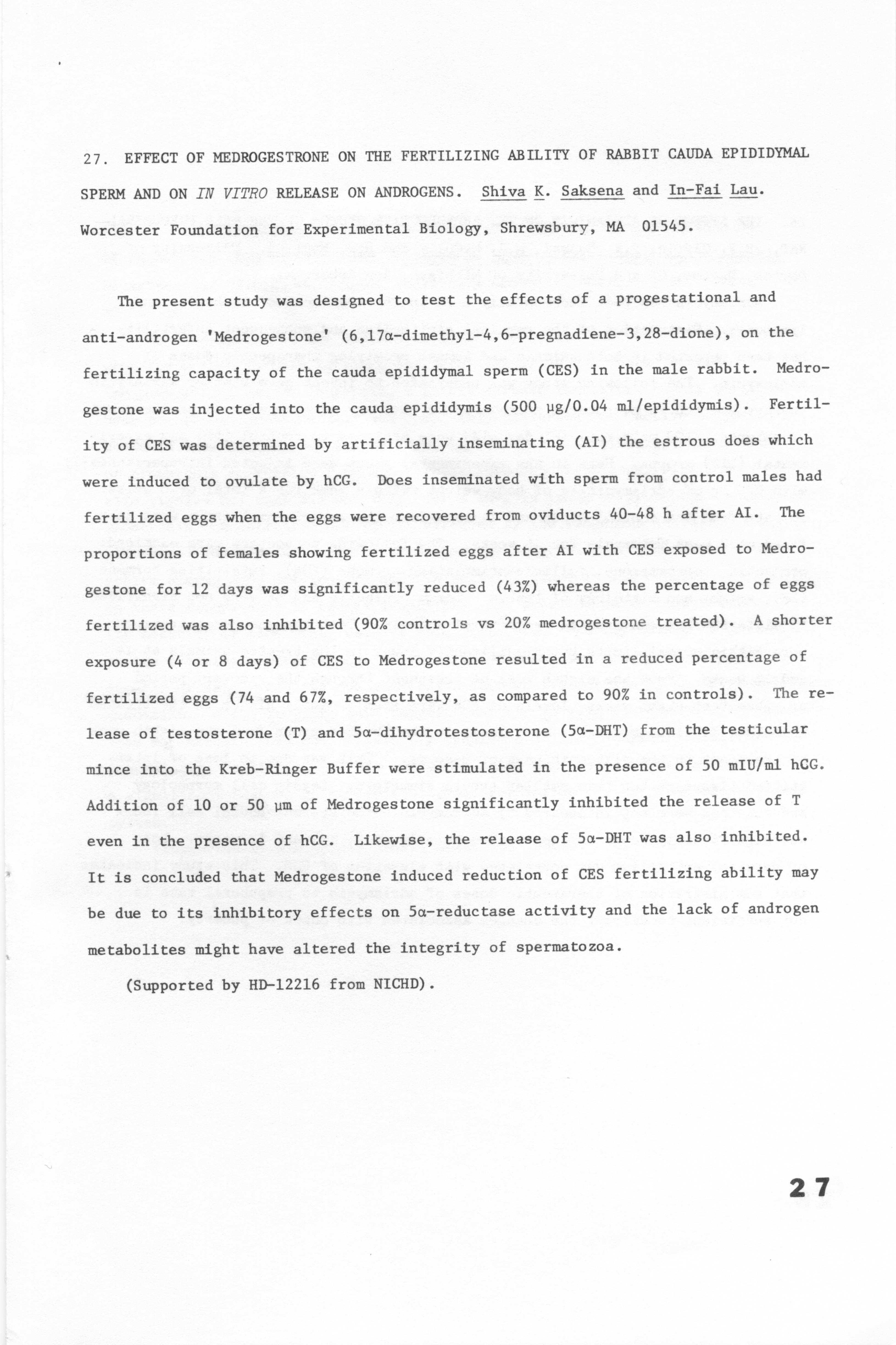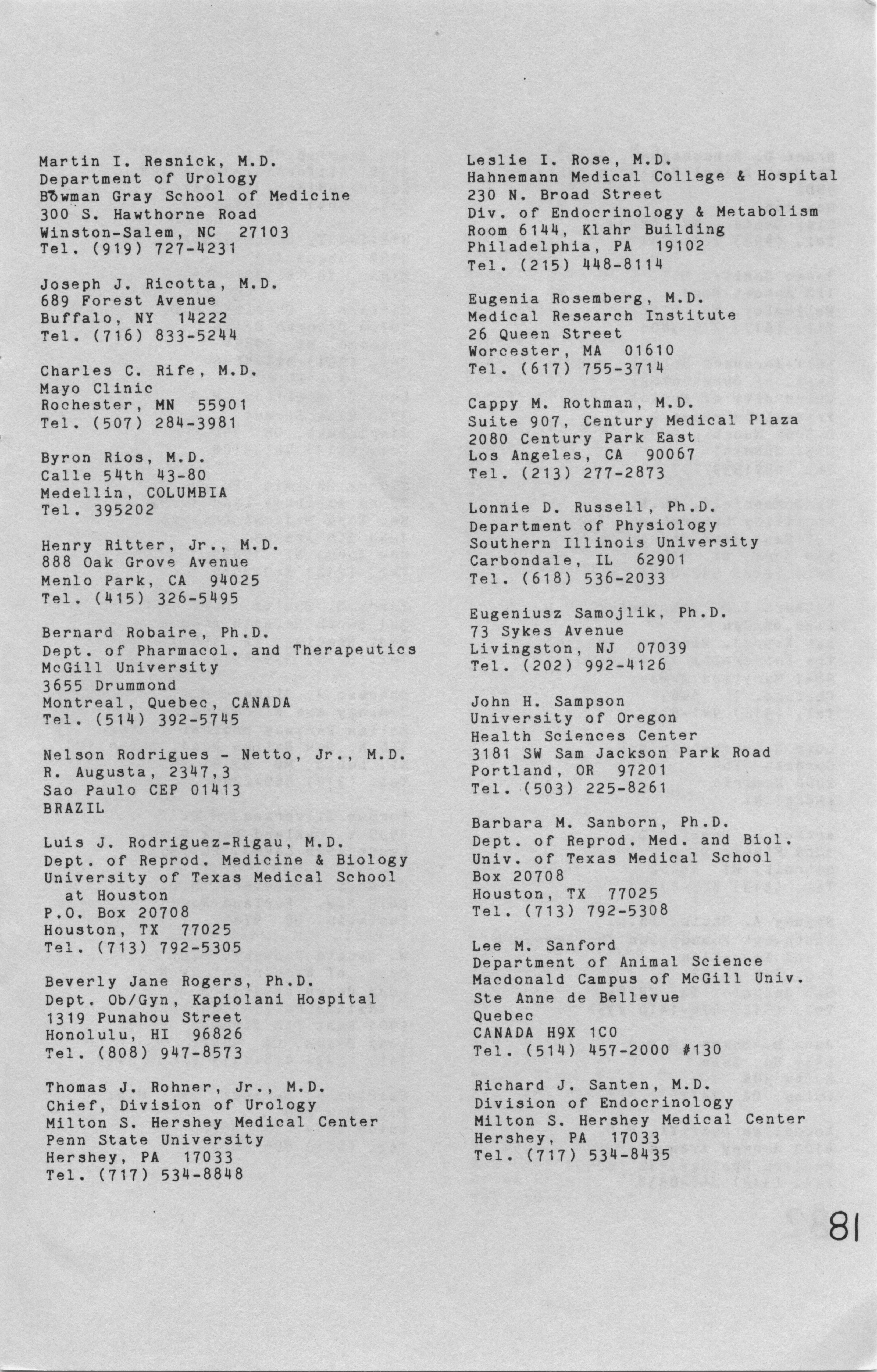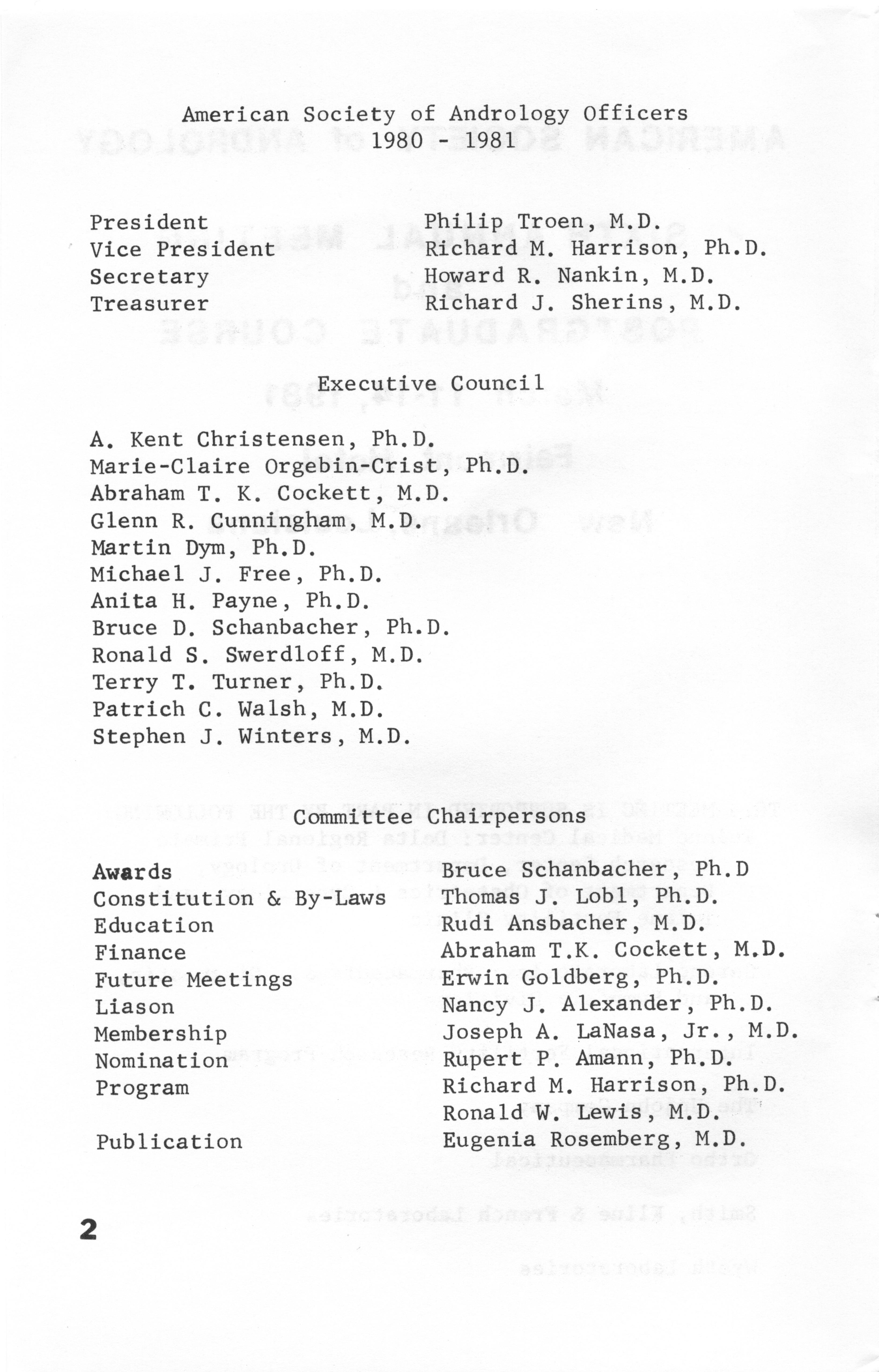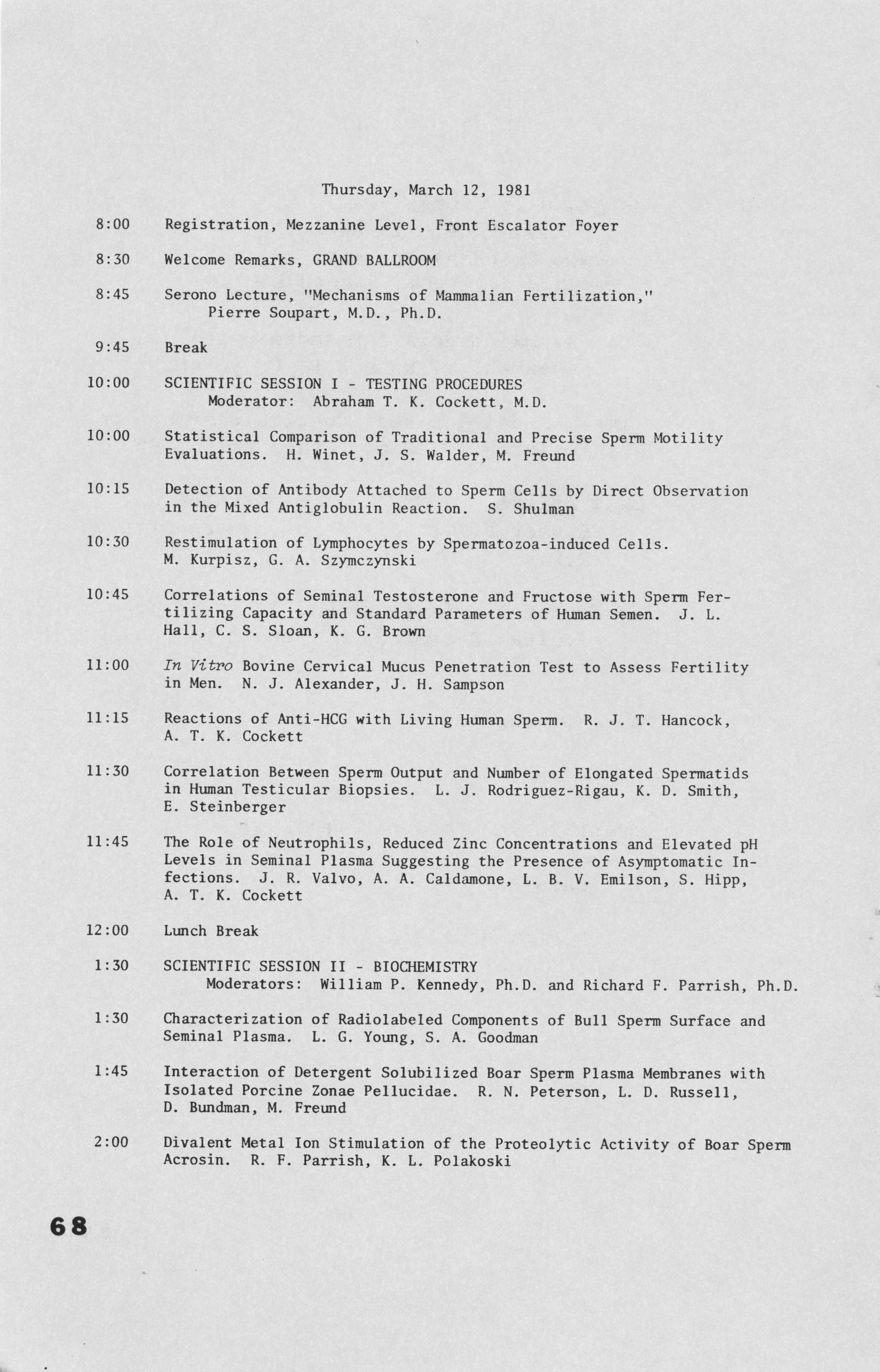 - Annual Meeting Program of the American Society of Andrology, 1981