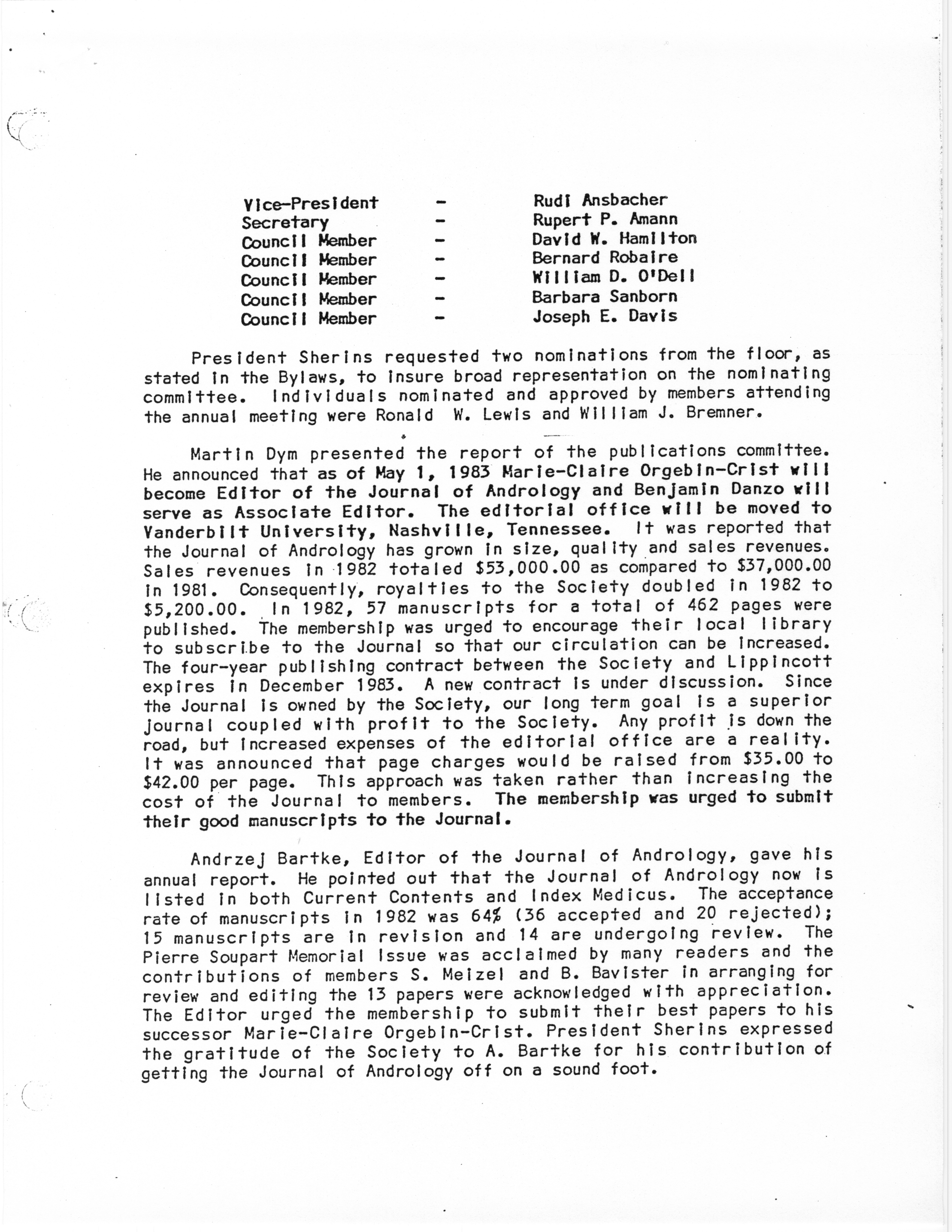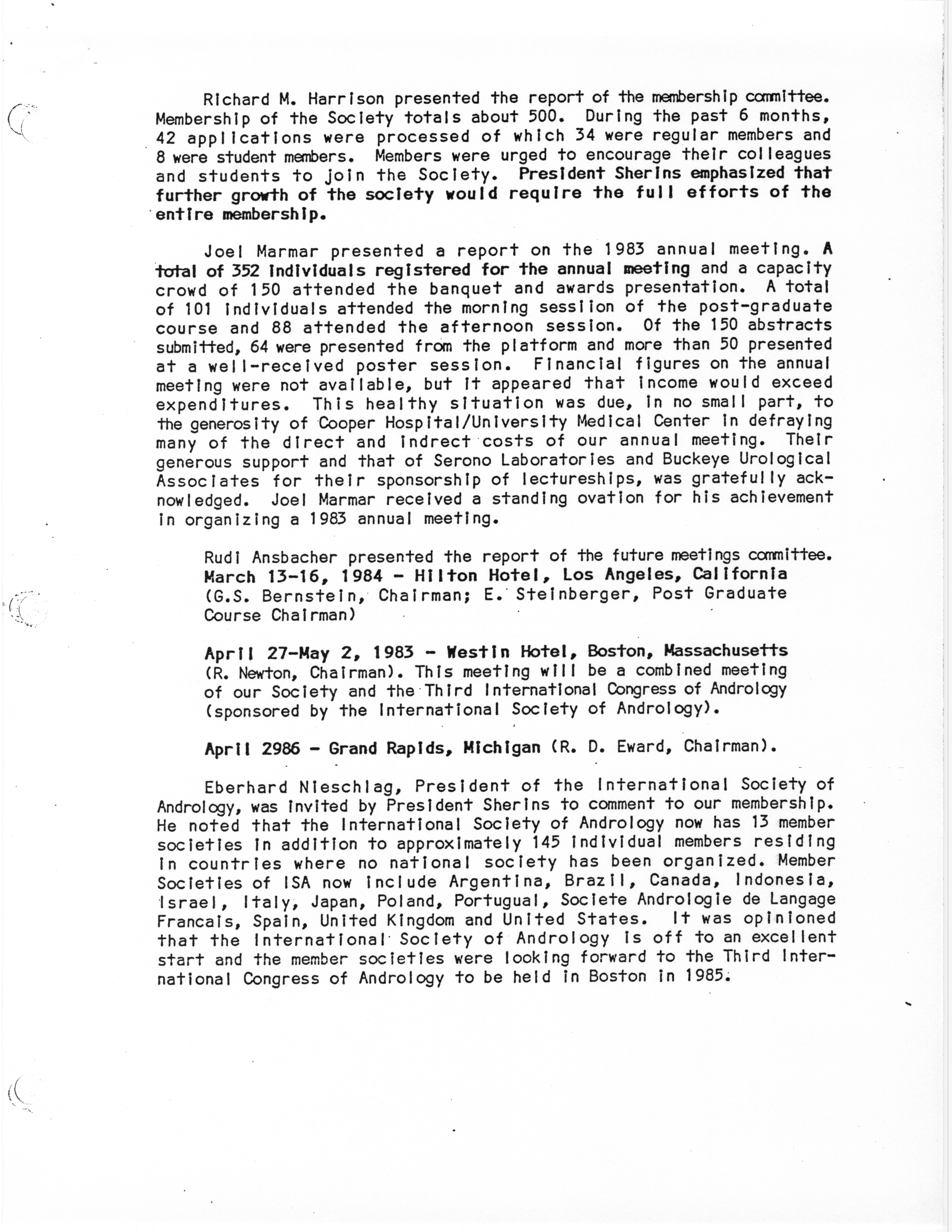 - Business Meeting of the American Society of Andrology, 1983