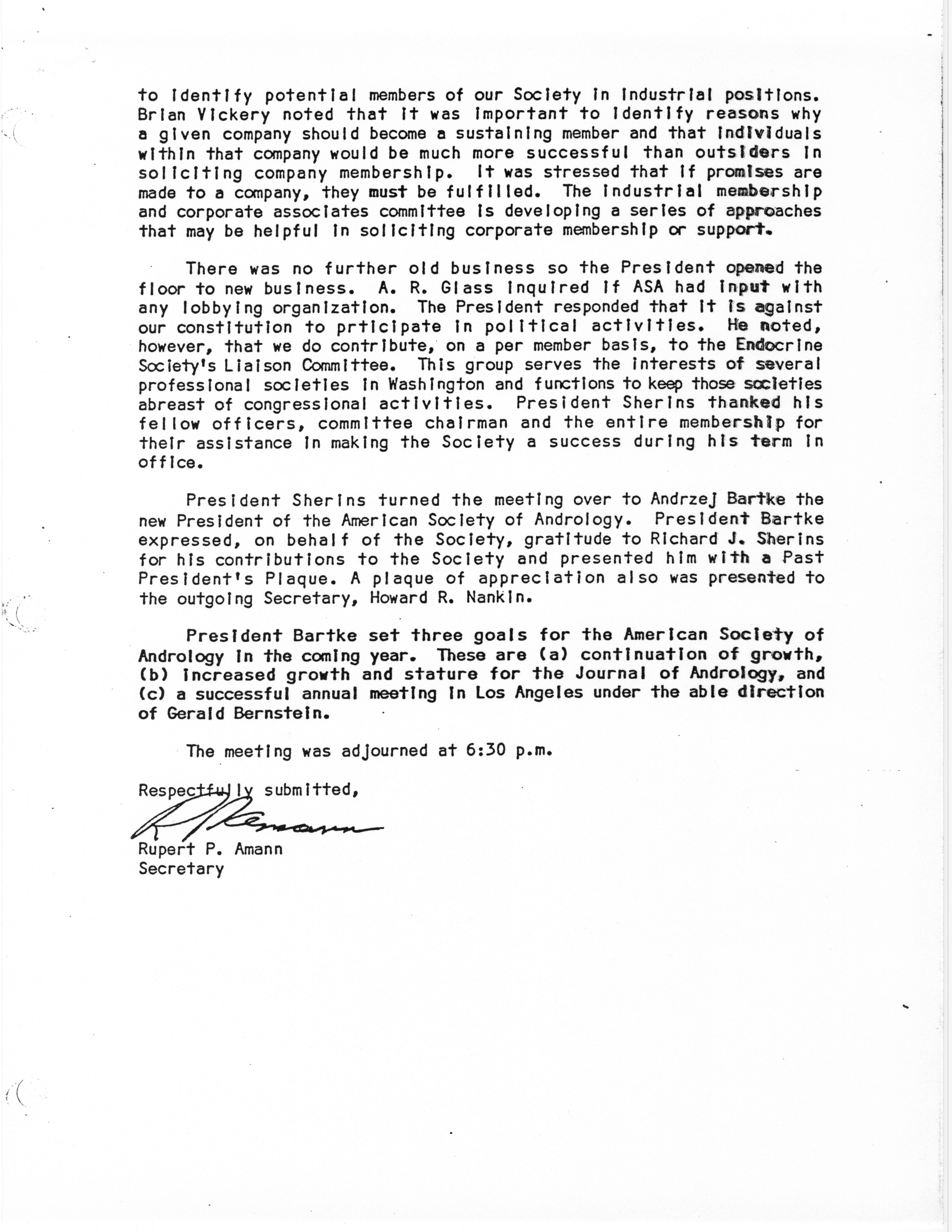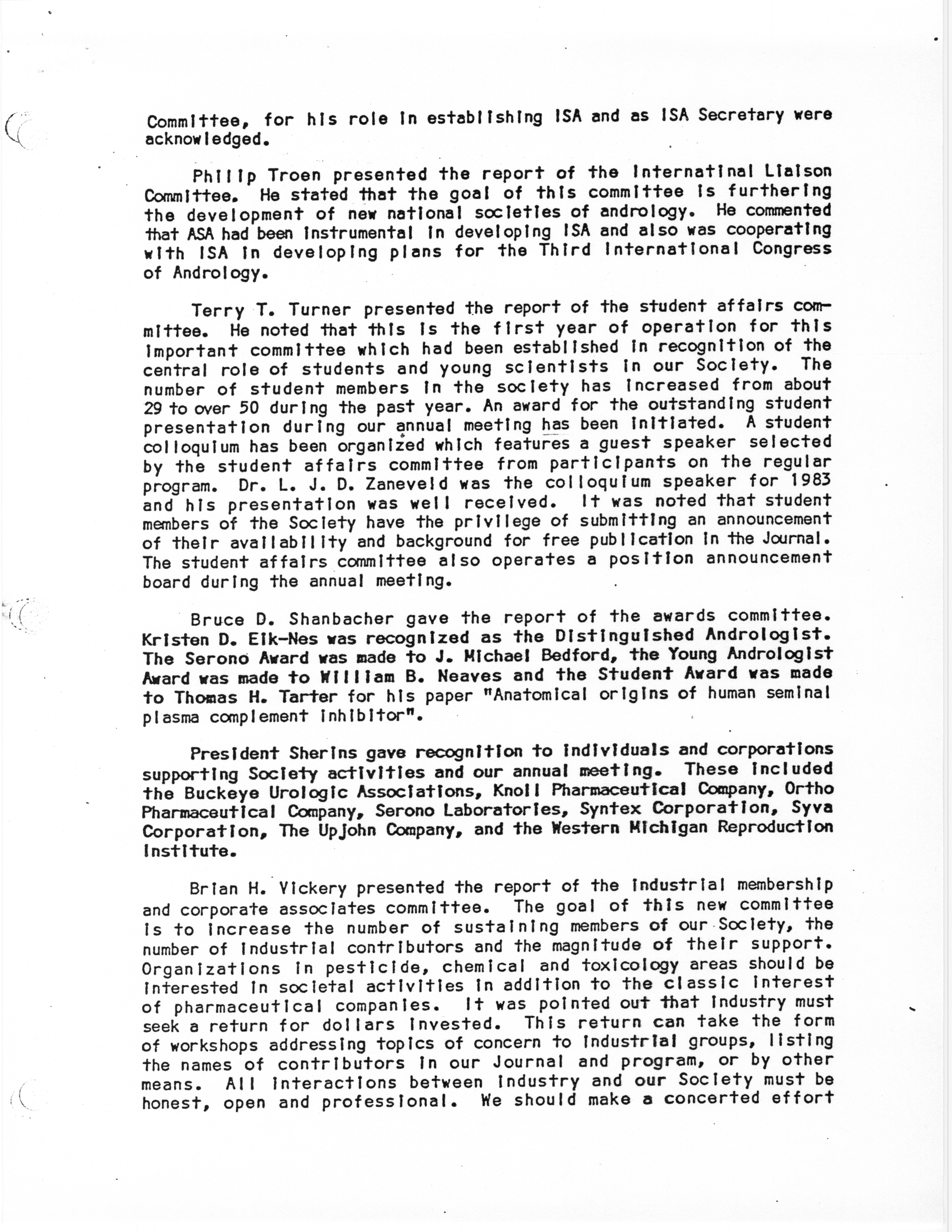 - "Business Meeting of the American Society of Andrology, 1983", American Society of Andrology Collection, Iowa State University Library Digital Collections