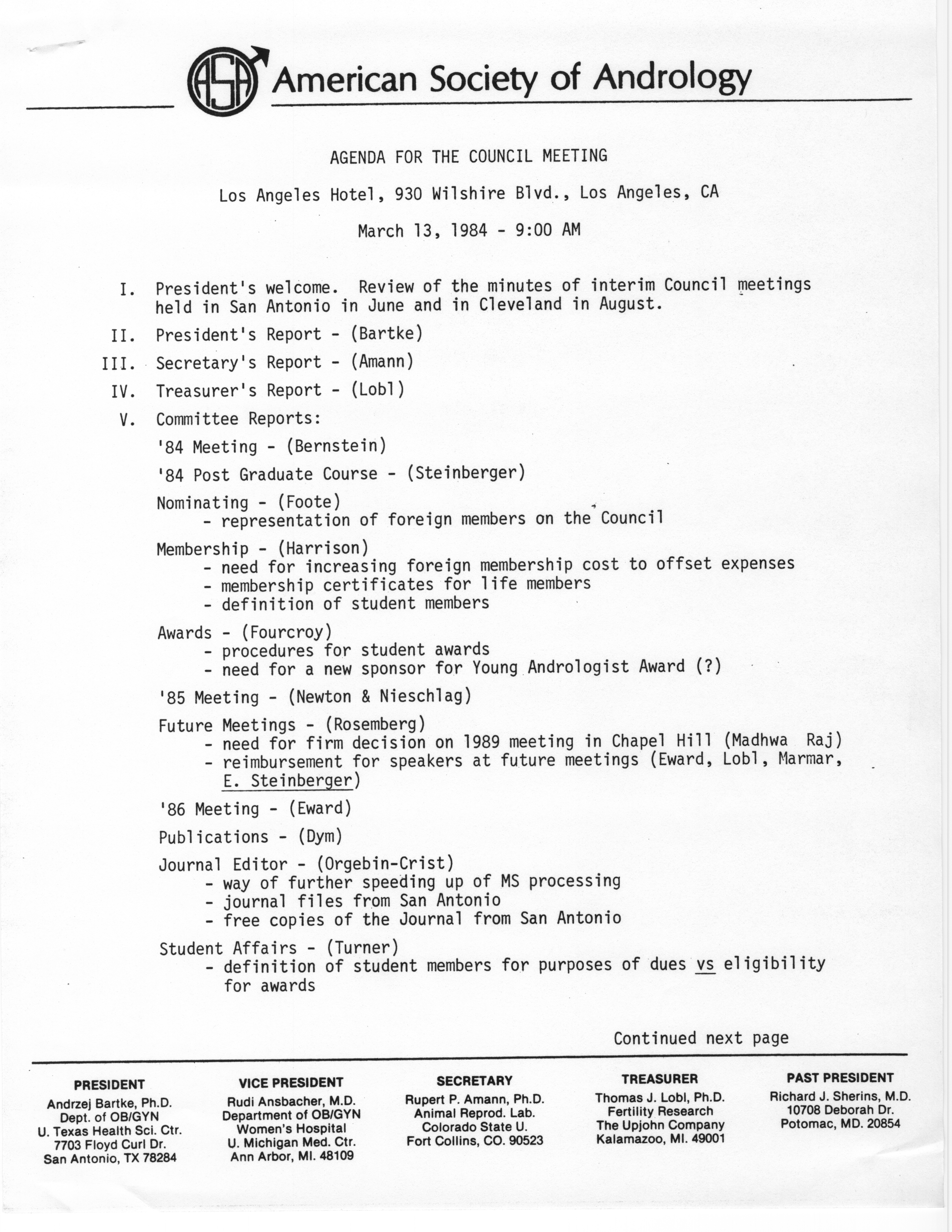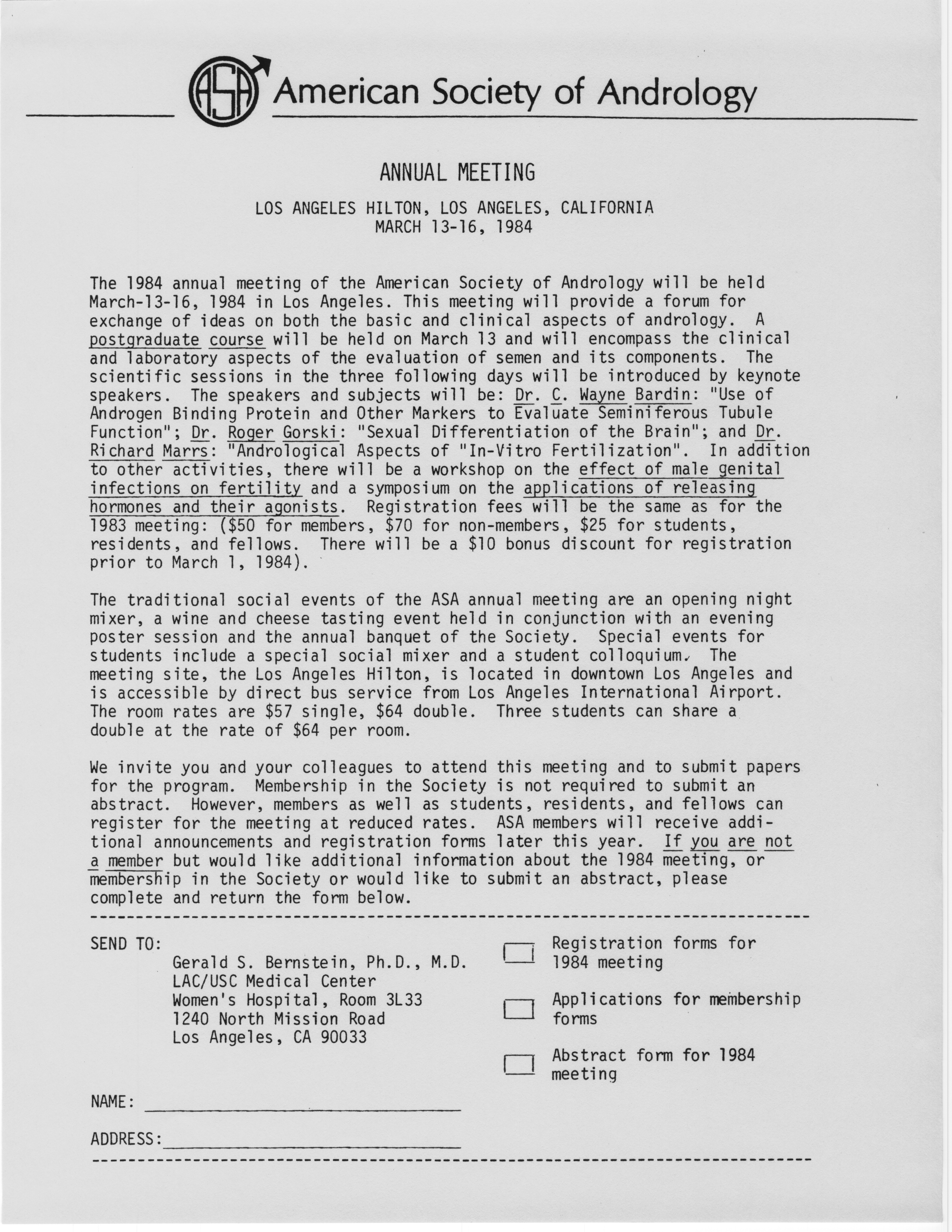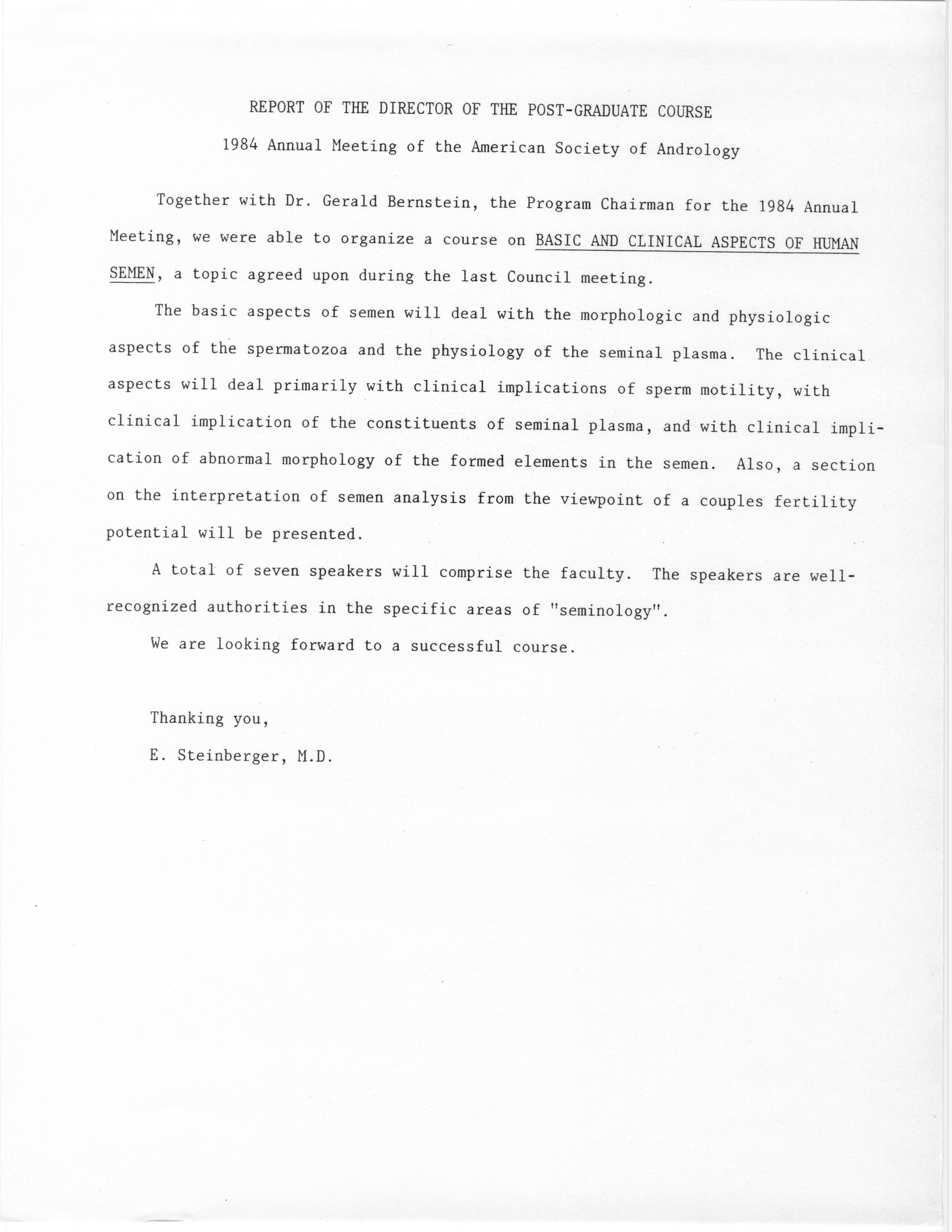 - Annual Meeting of the American Society of Andrology, 1984