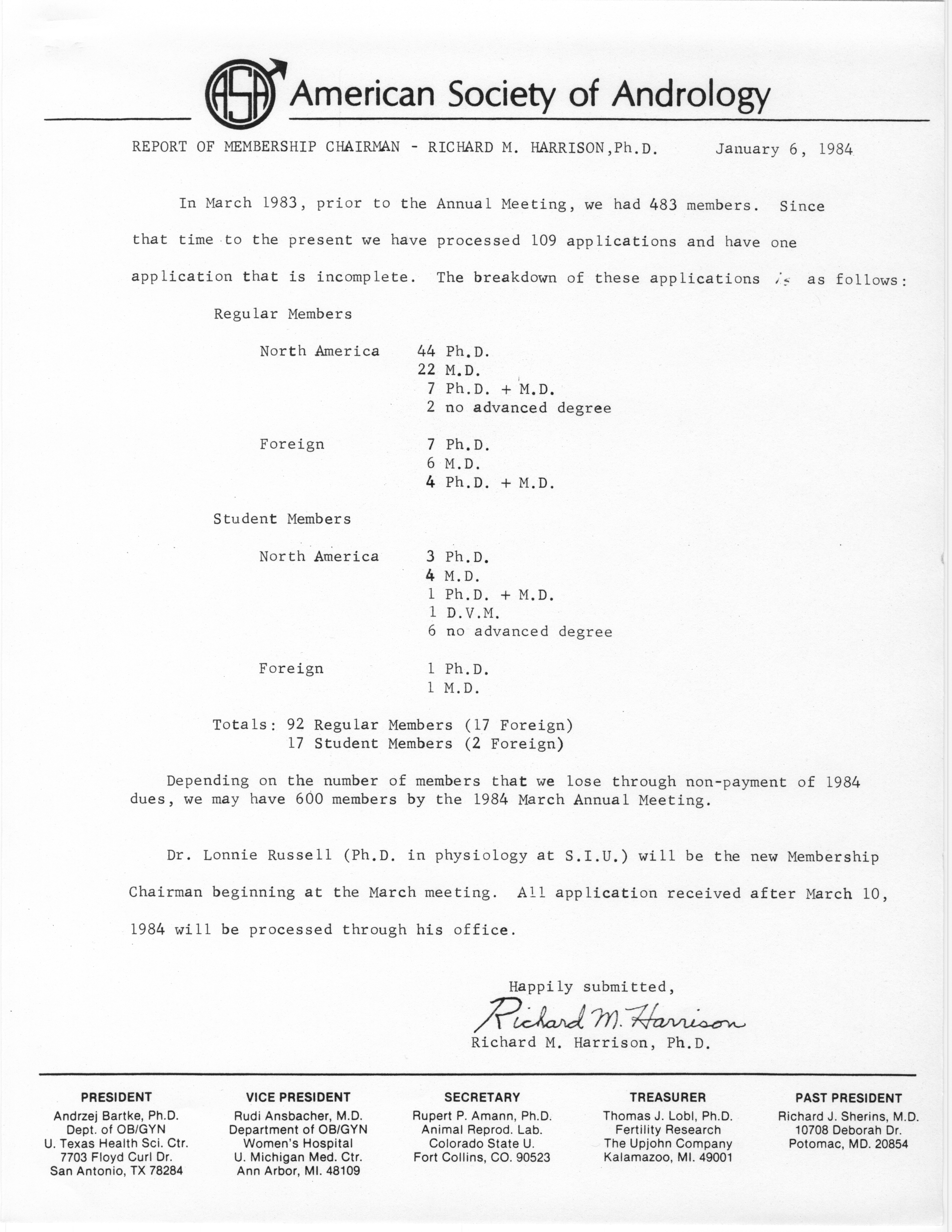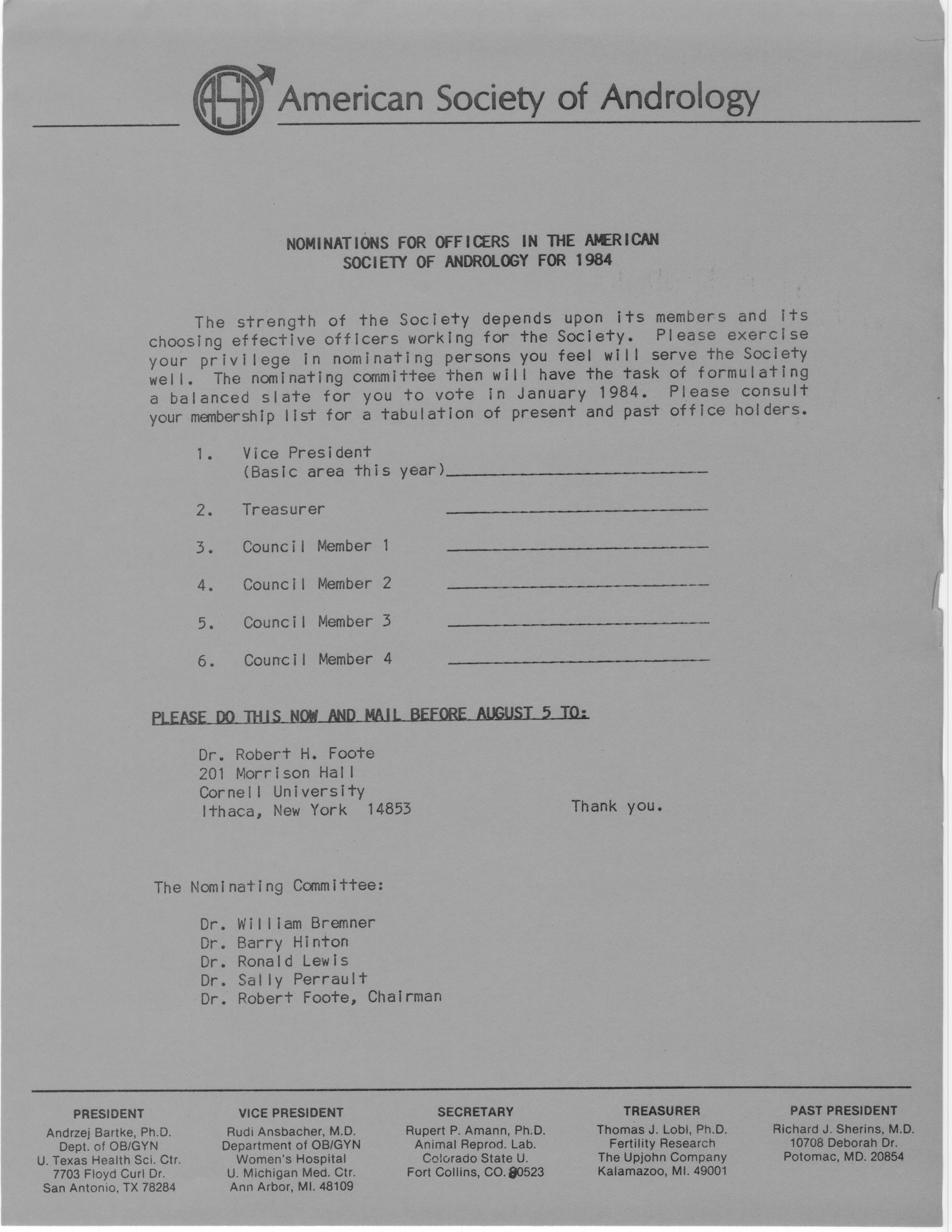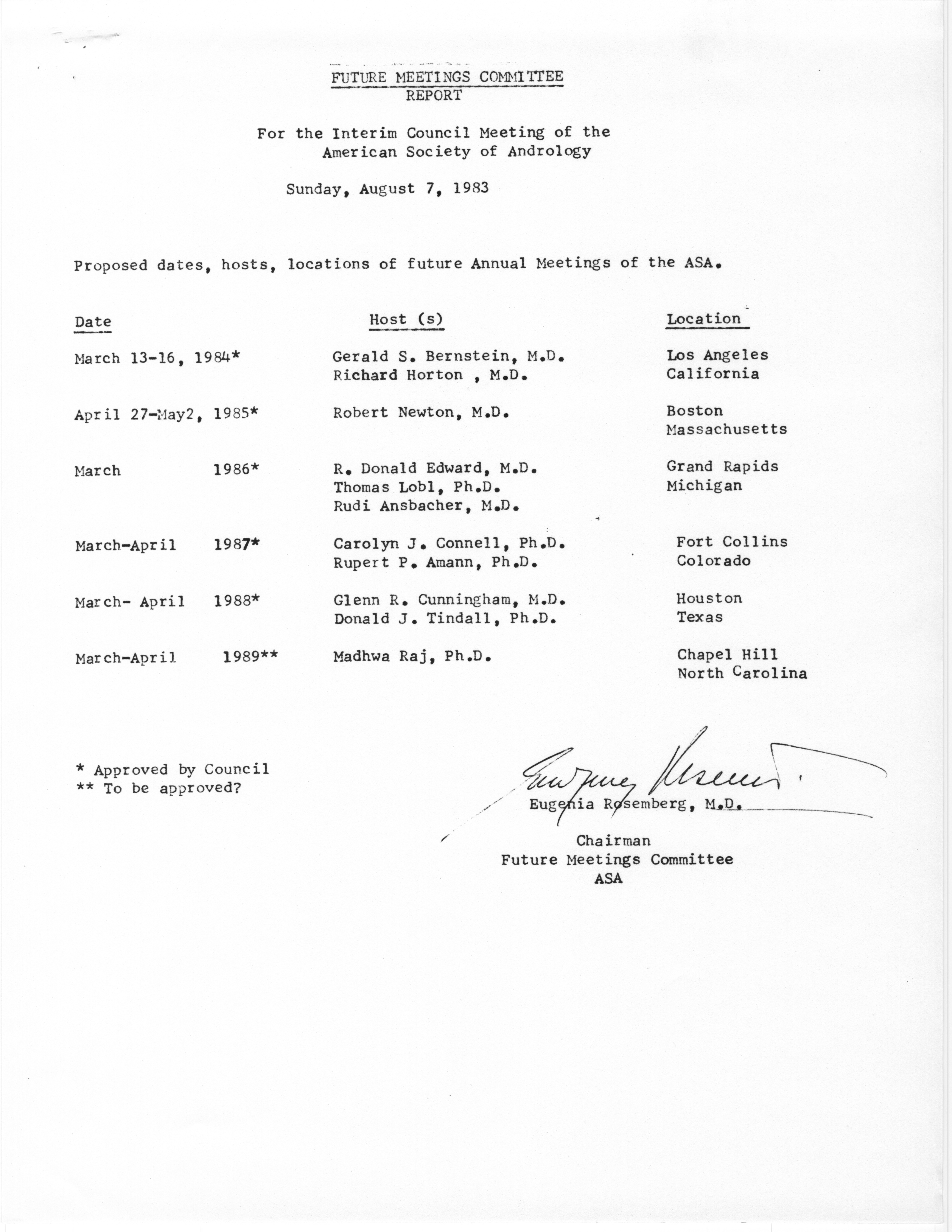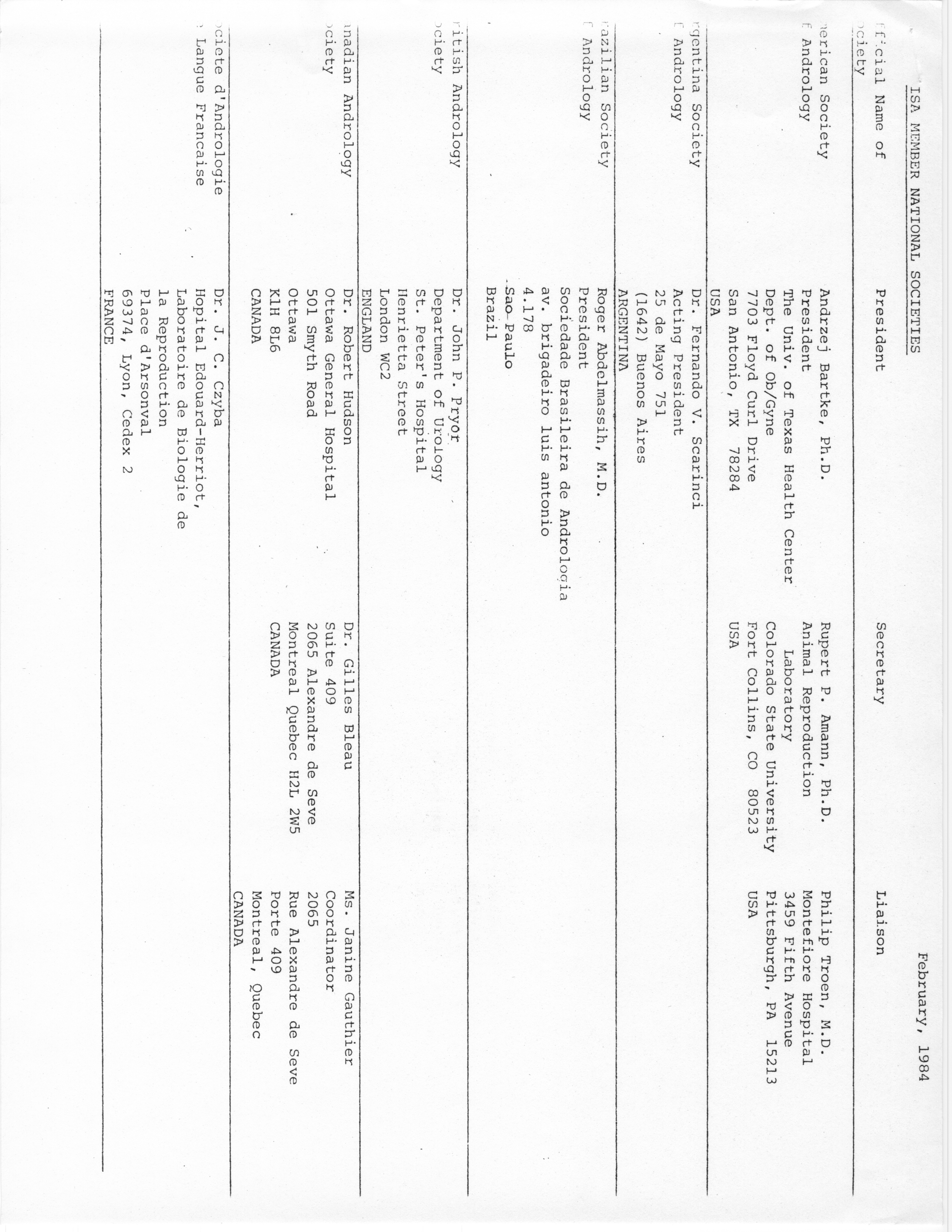 - Annual Meeting of the American Society of Andrology, 1984