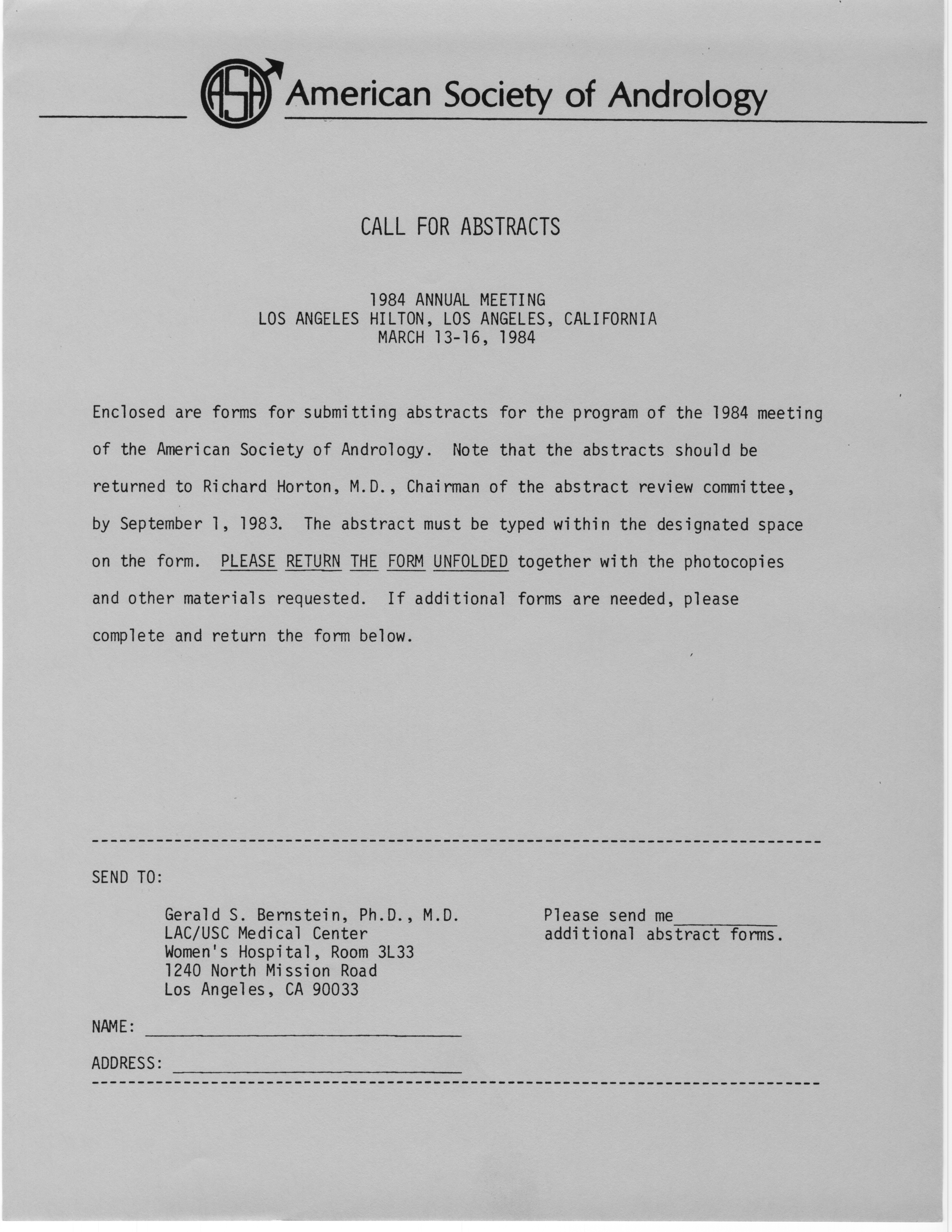 Annual Meeting of the American Society of Andrology, 1984 Item Info