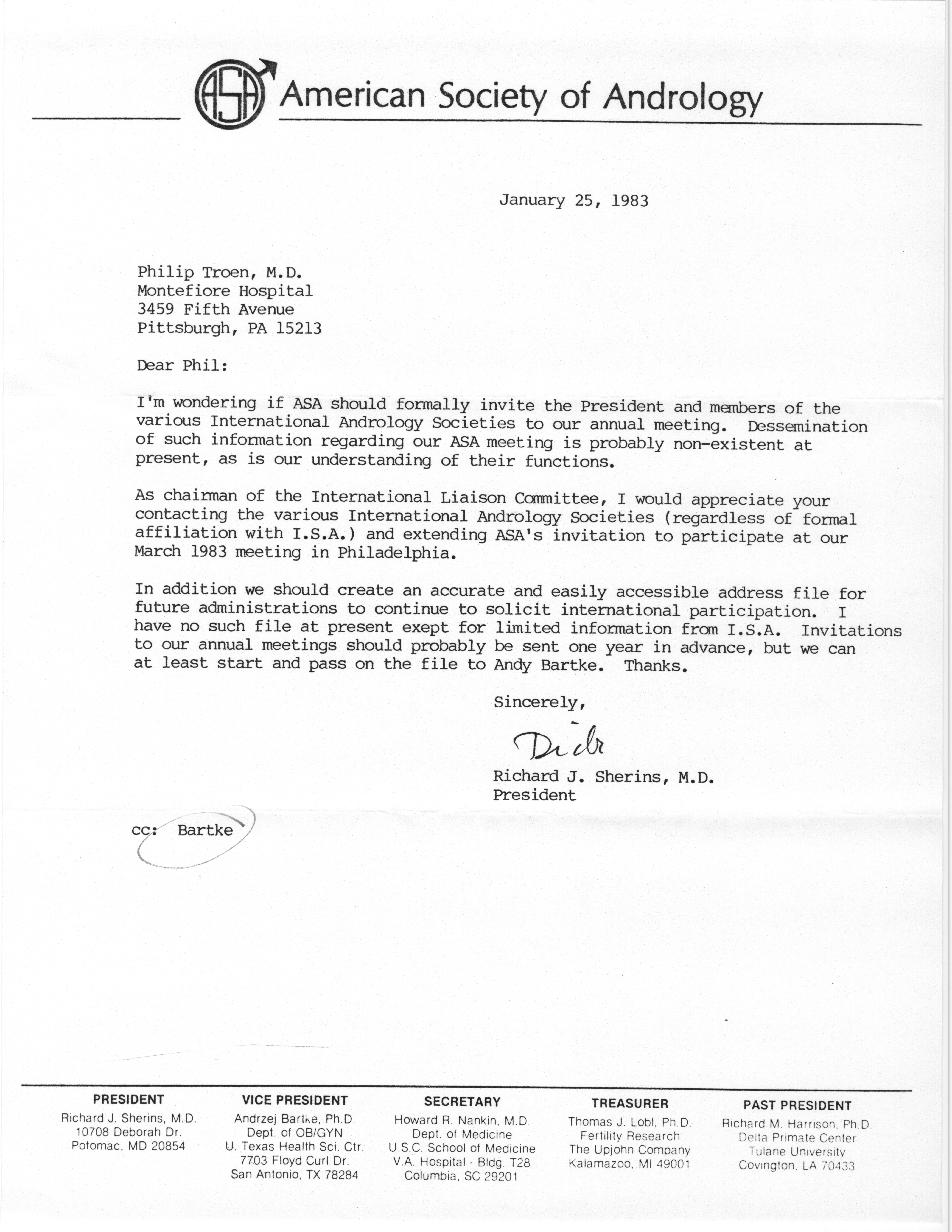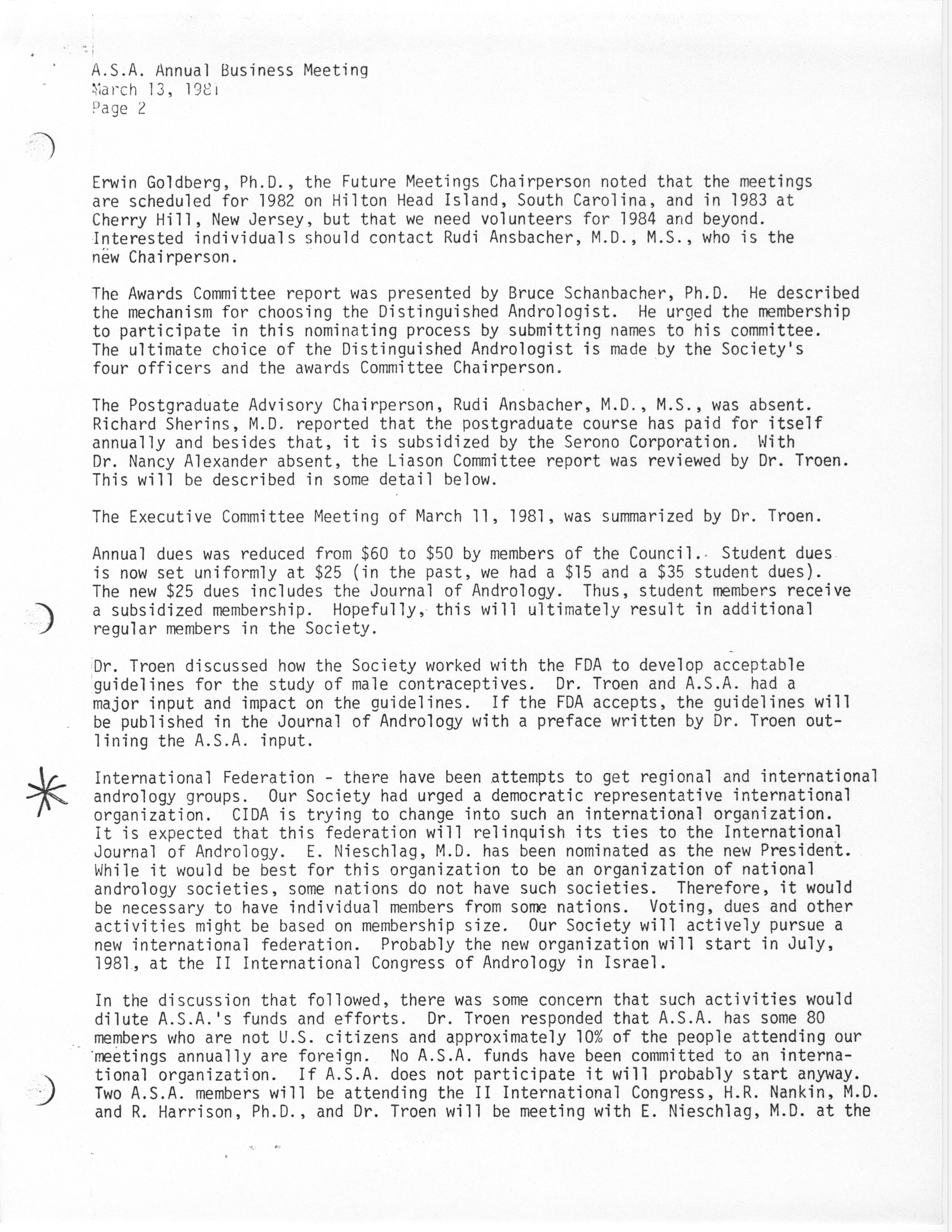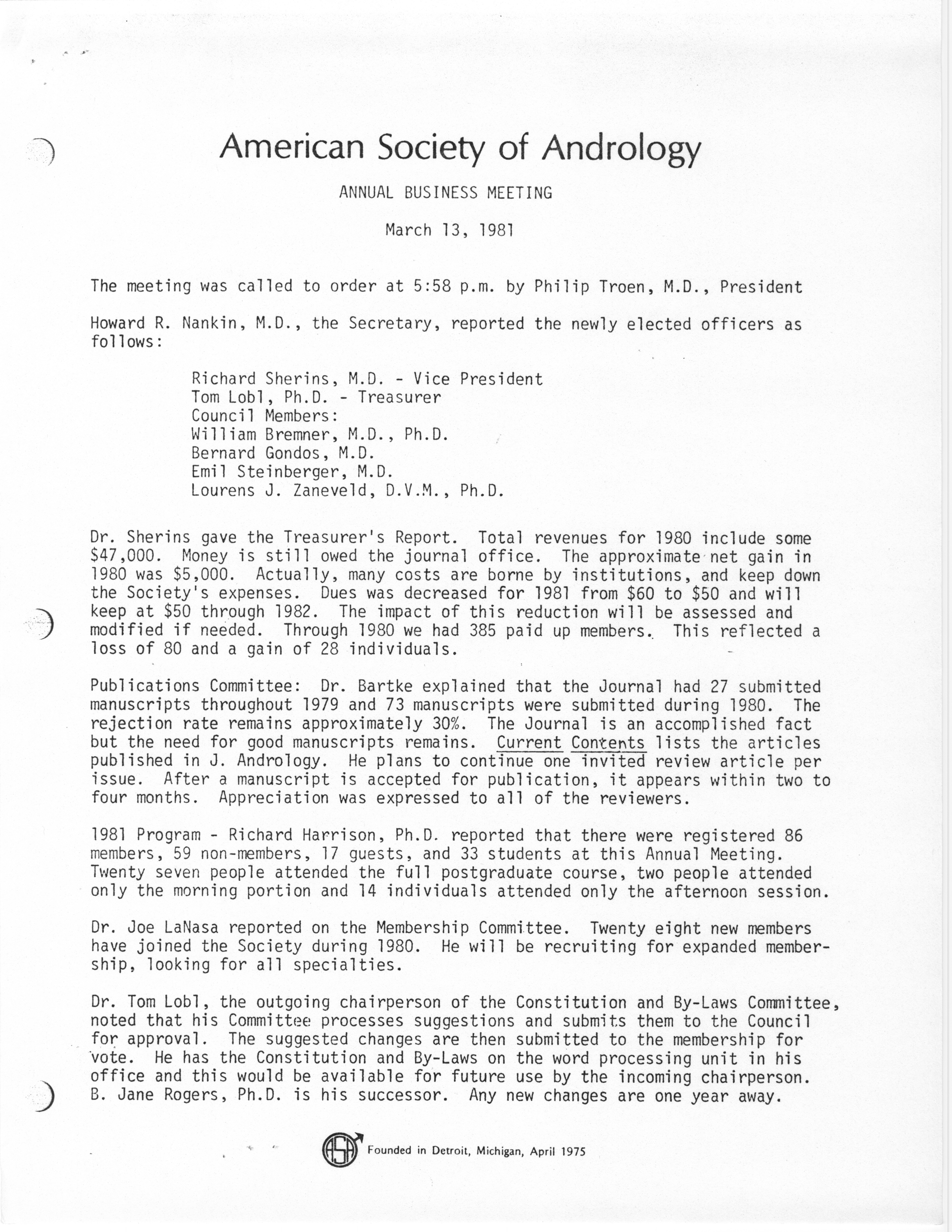 - "Annual Meeting of the American Society of Andrology, 1983", American Society of Andrology Collection, Iowa State University Library Digital Collections