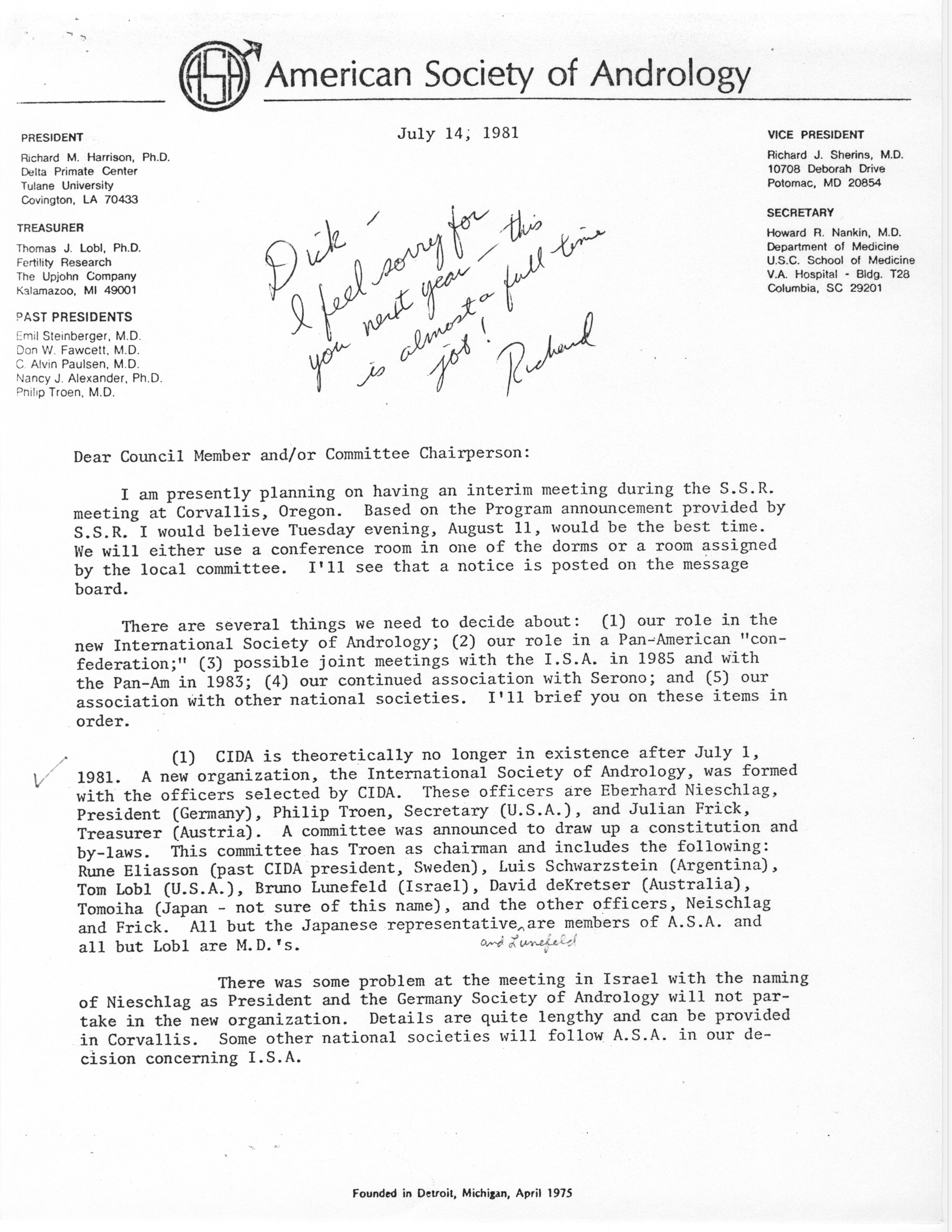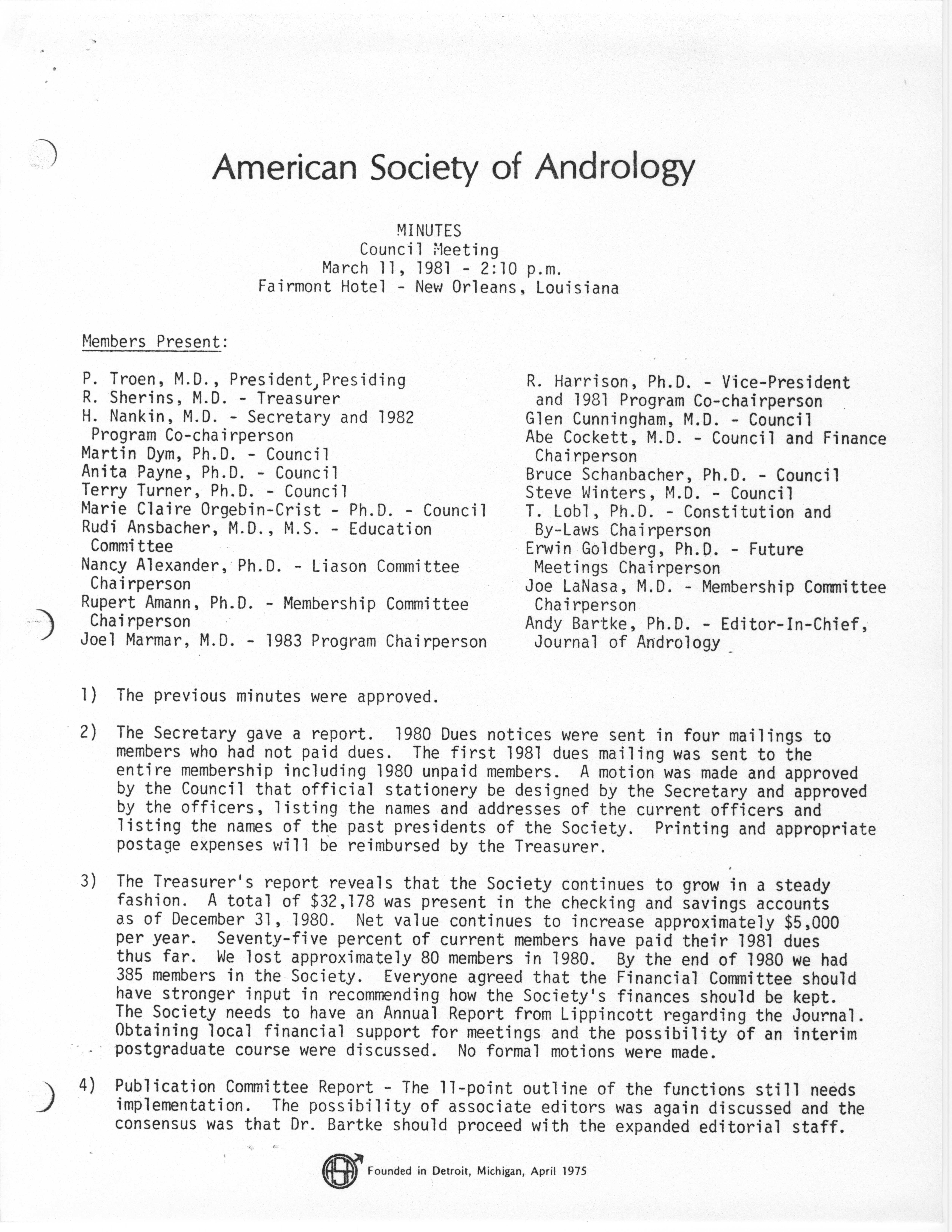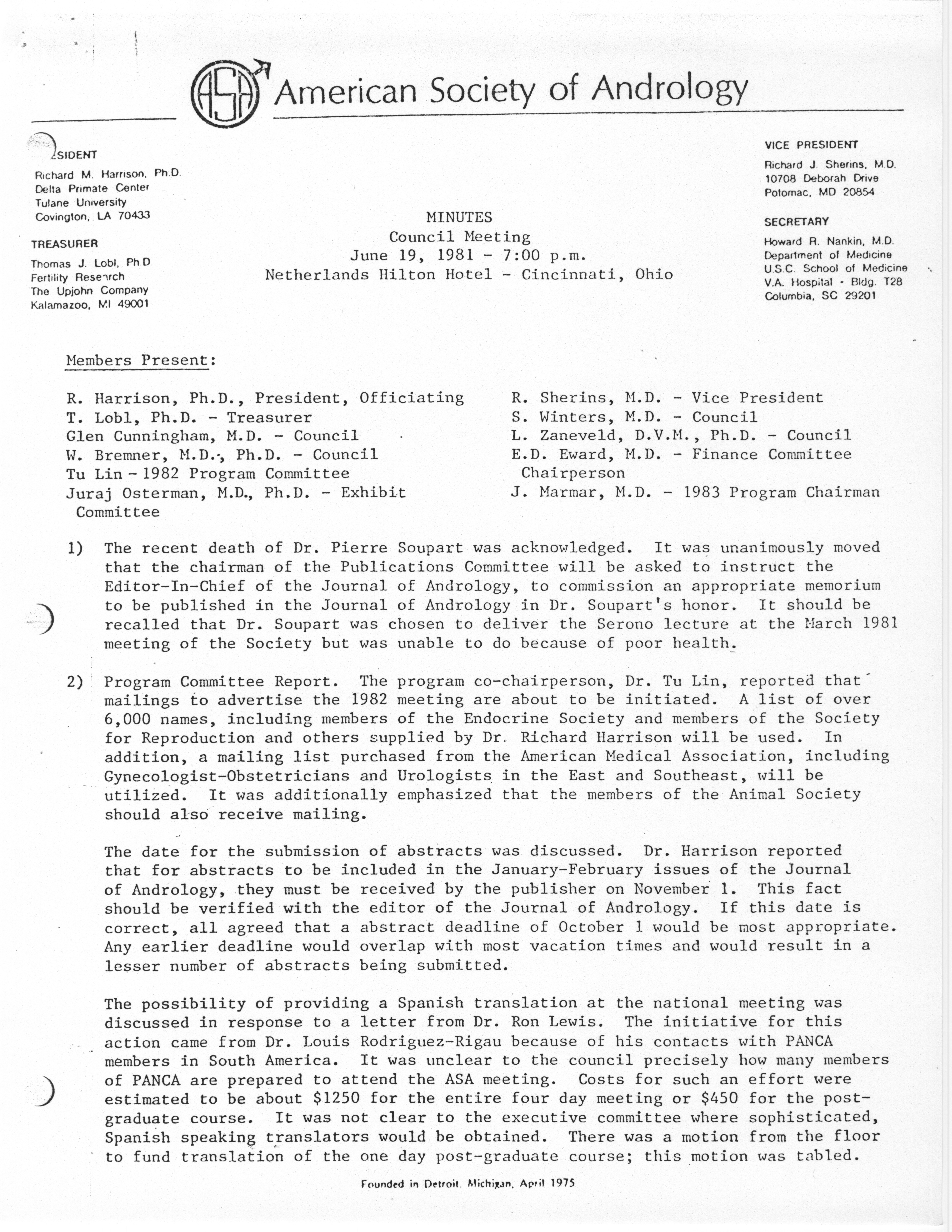 - "Annual Meeting of the American Society of Andrology, 1983", American Society of Andrology Collection, Iowa State University Library Digital Collections