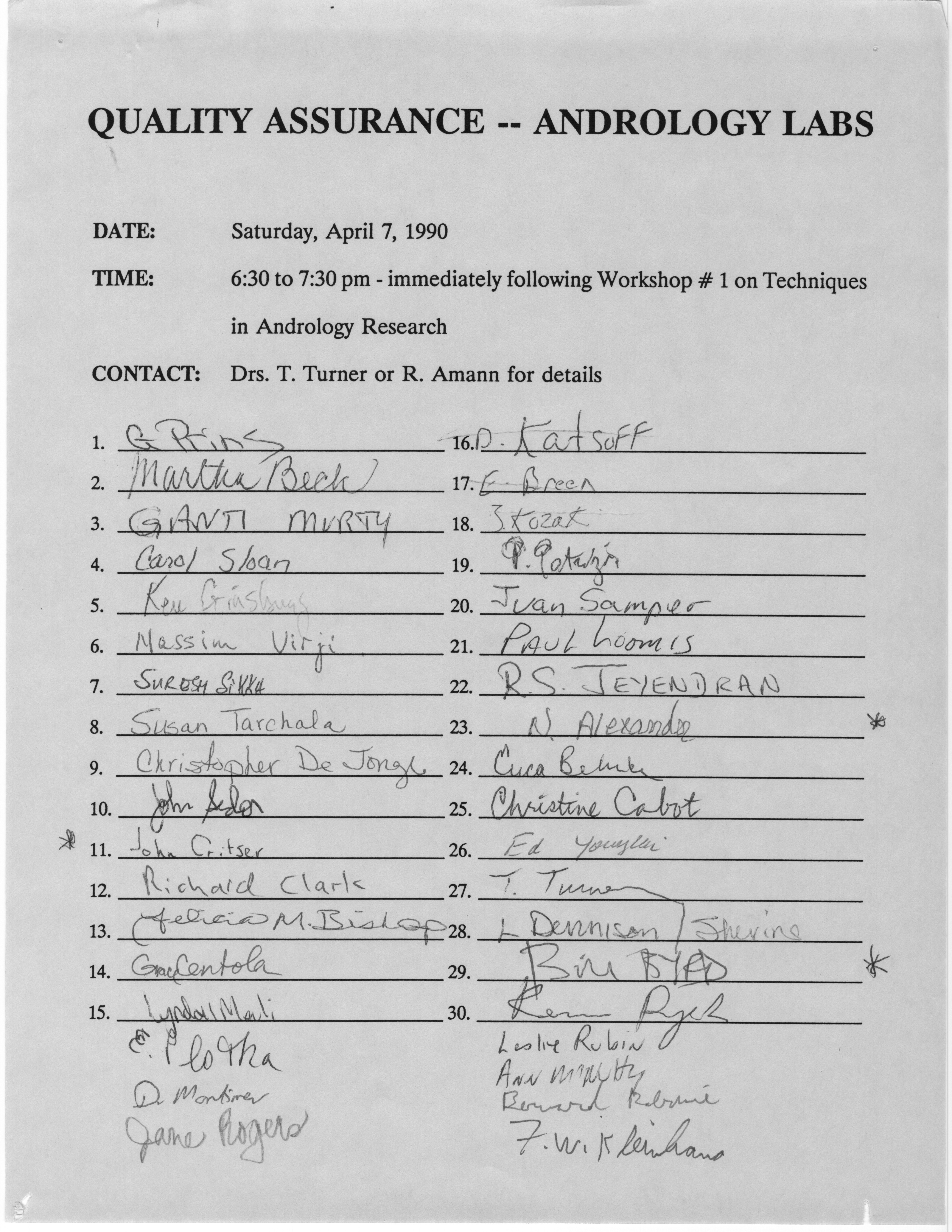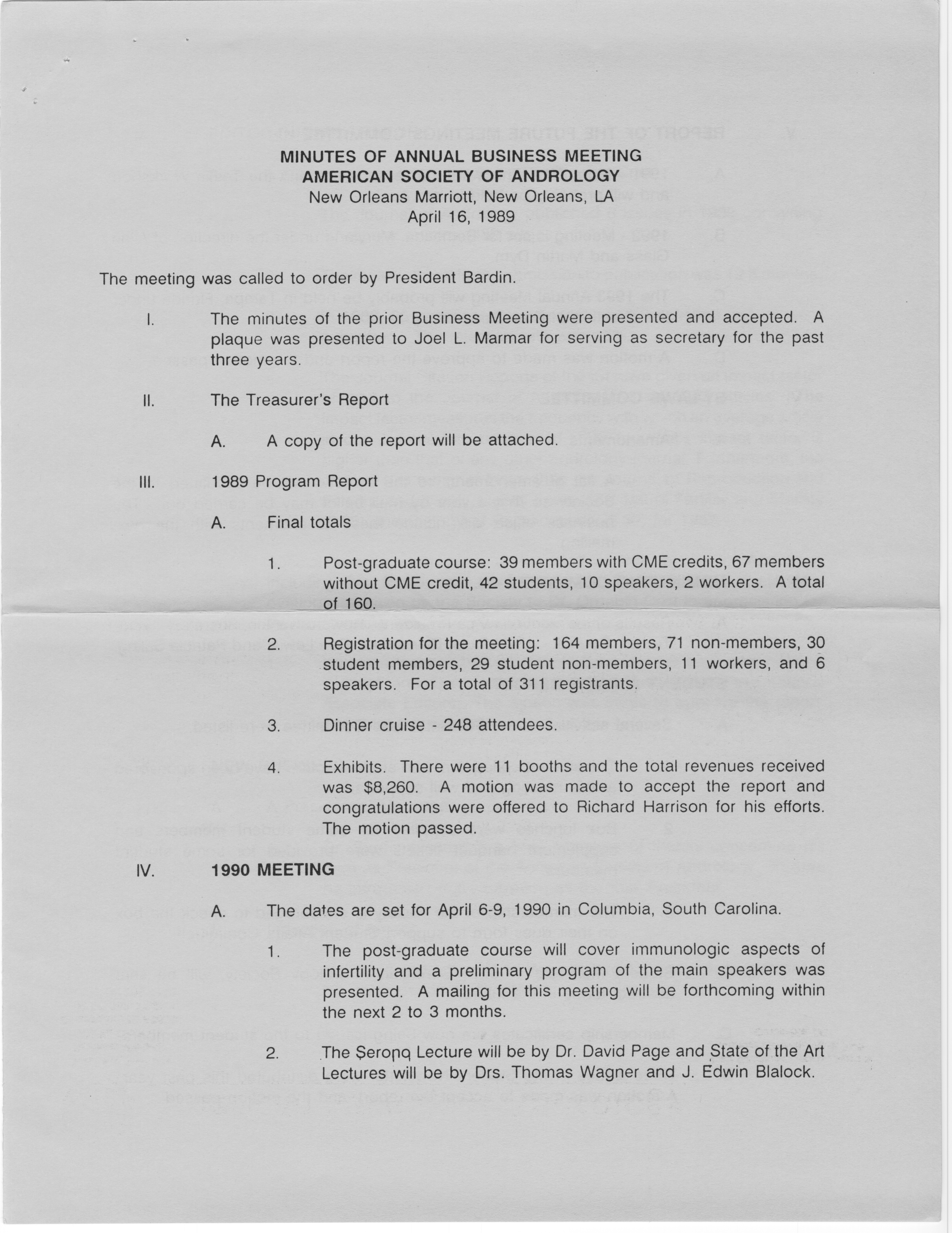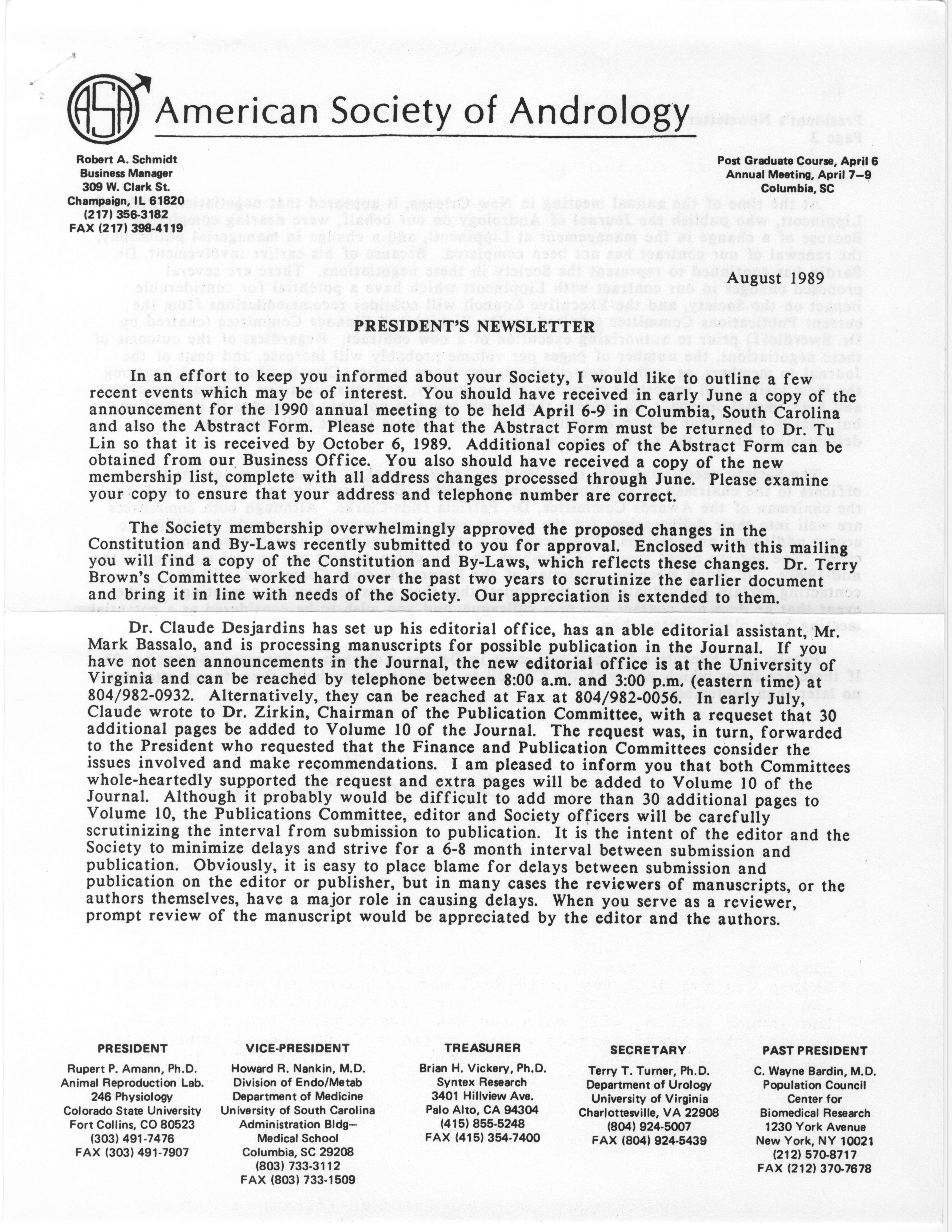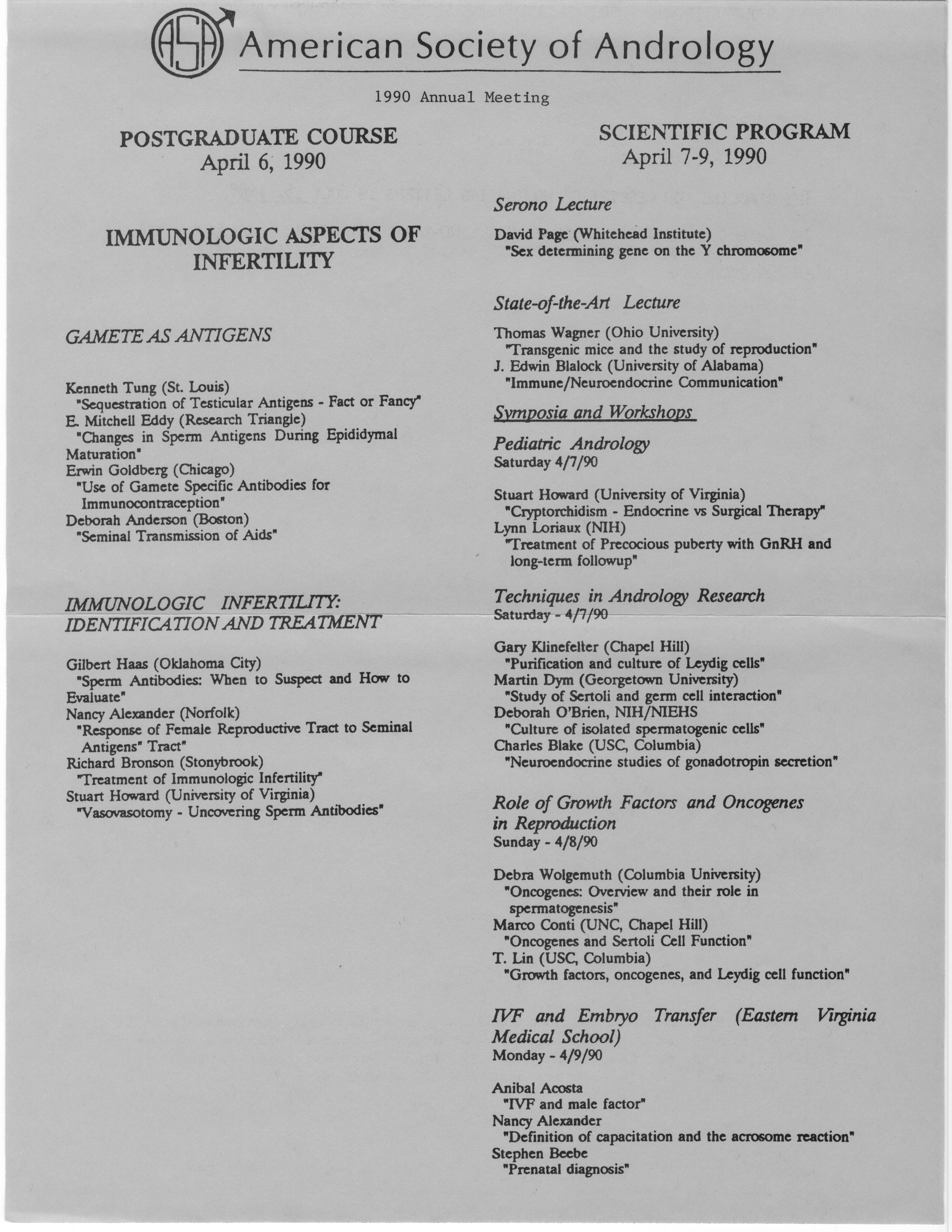 - "Annual Meeting of the American Society of Andrology, 1990", American Society of Andrology Collection, Iowa State University Library Digital Collections