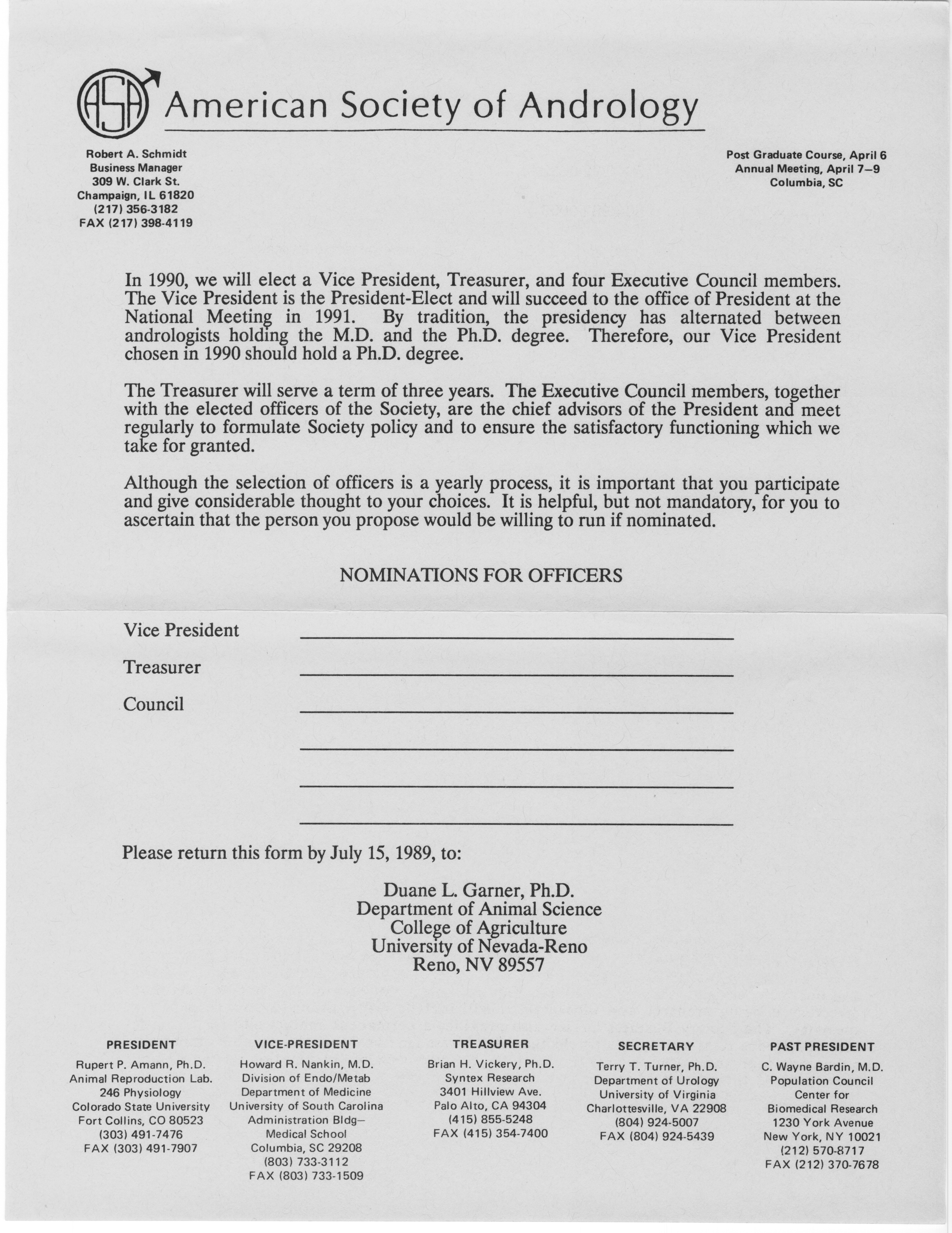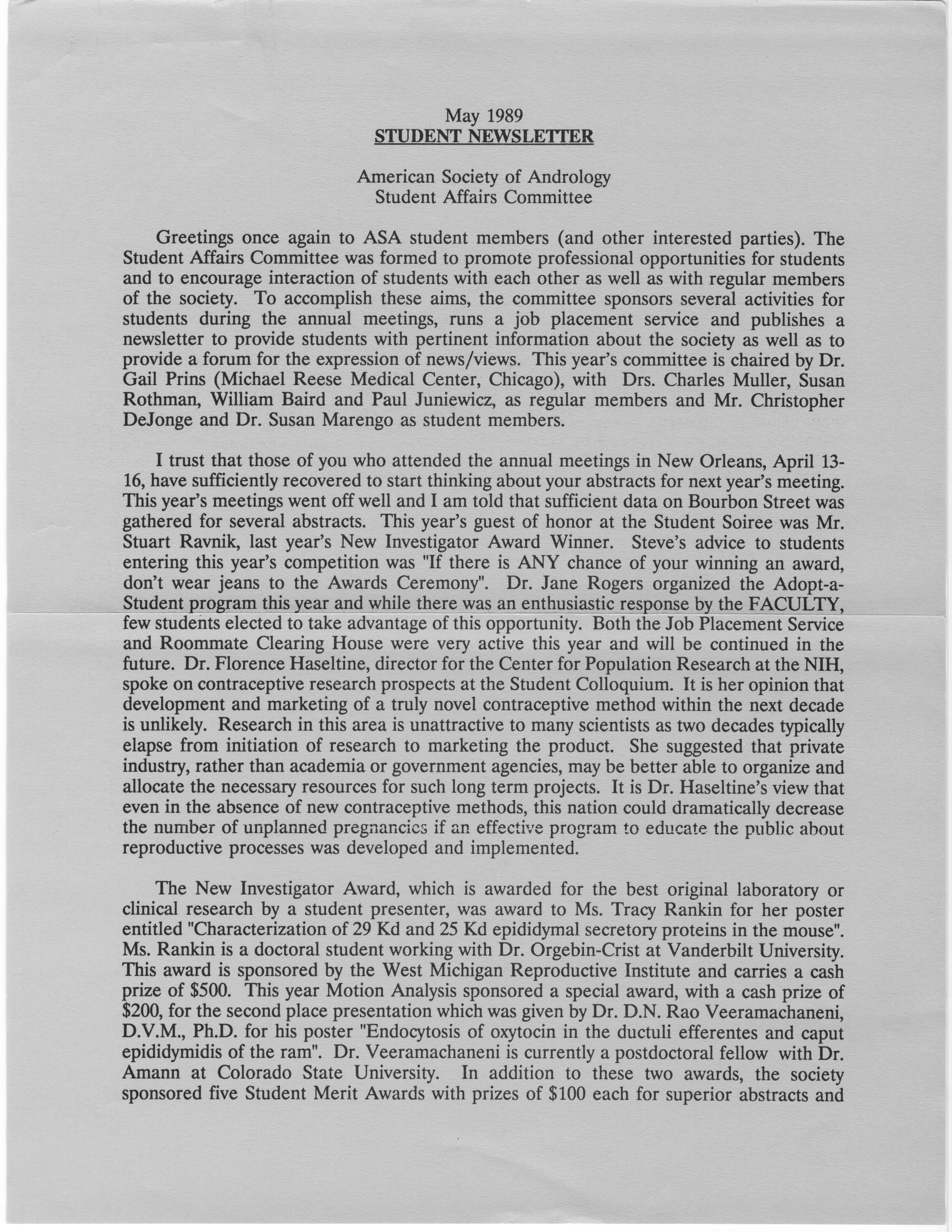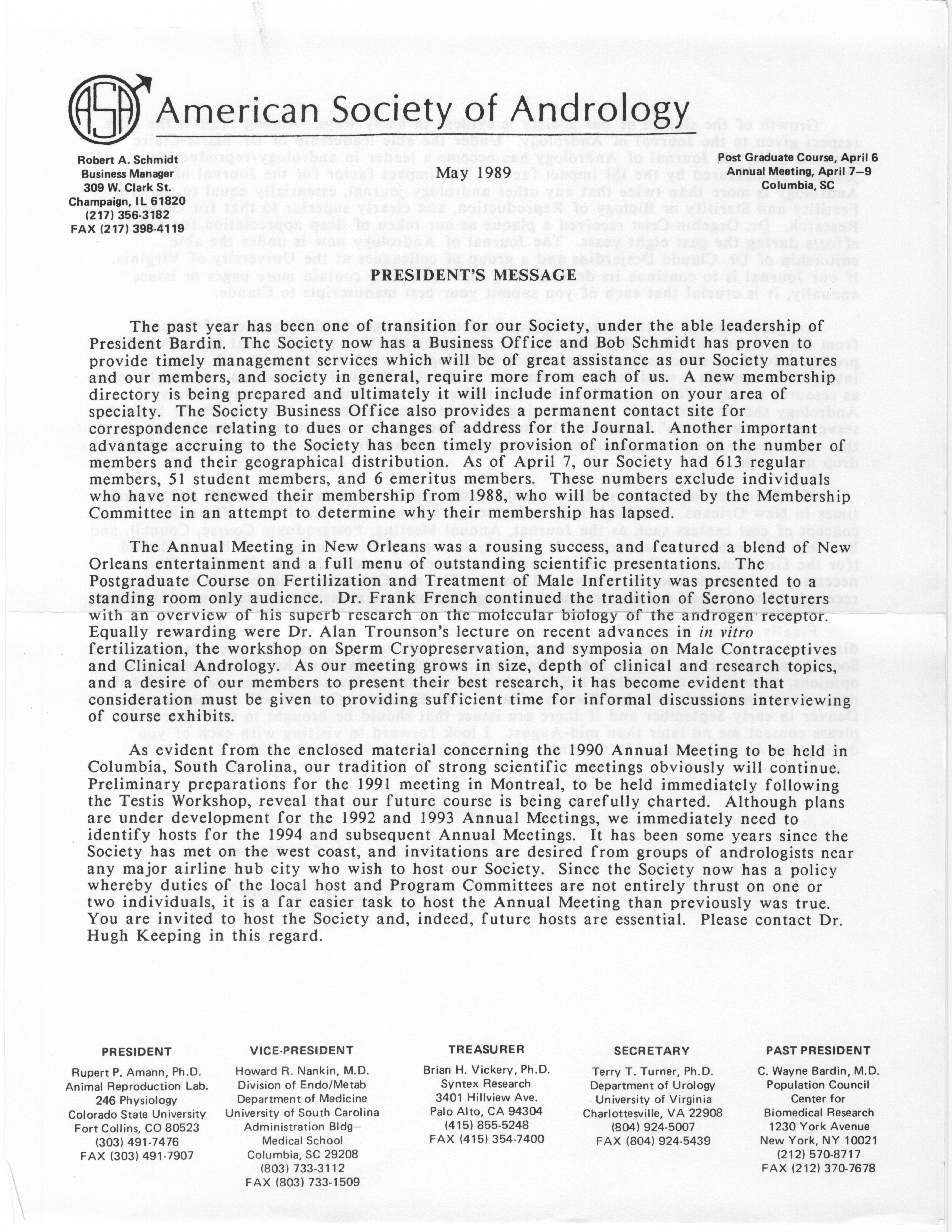 - "Annual Meeting of the American Society of Andrology, 1990", American Society of Andrology Collection, Iowa State University Library Digital Collections