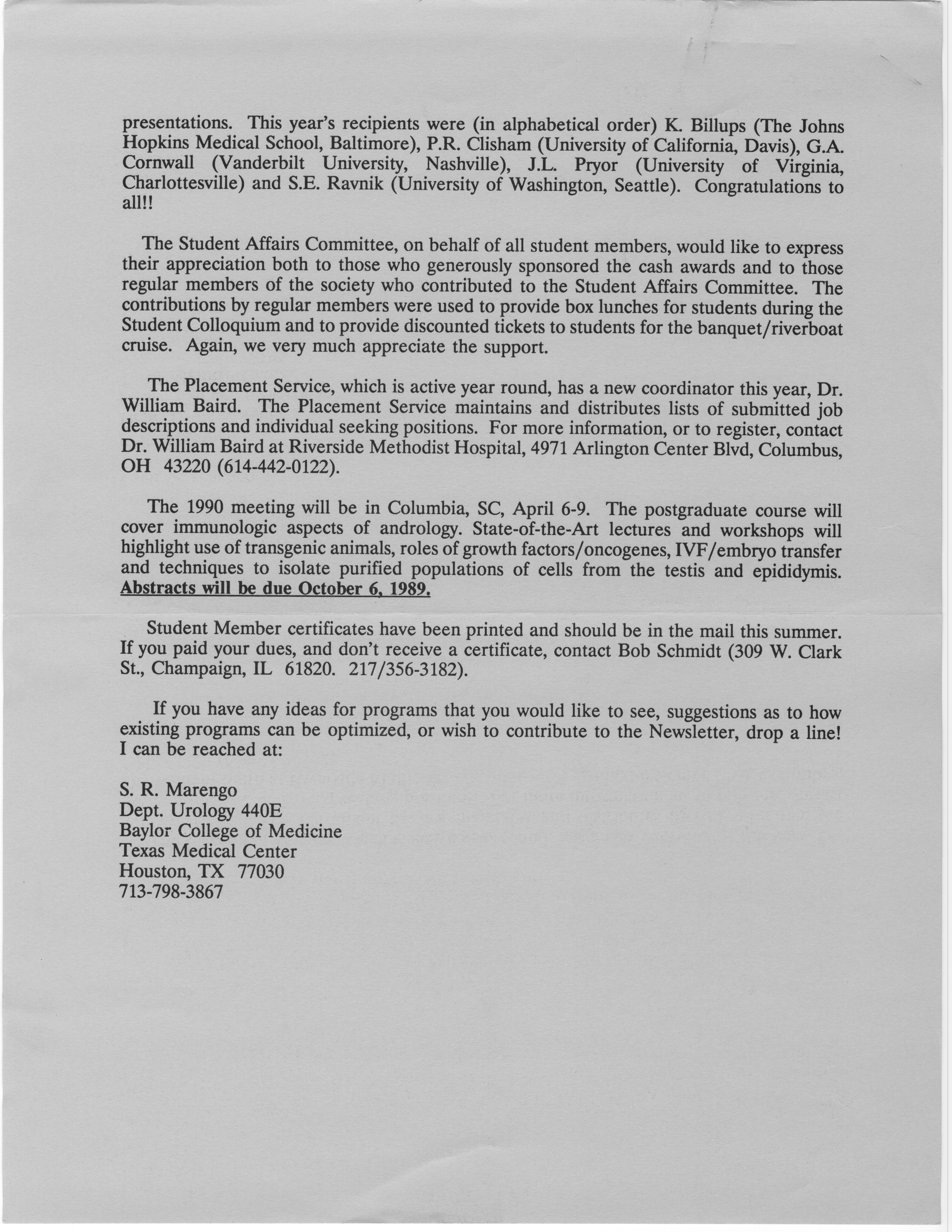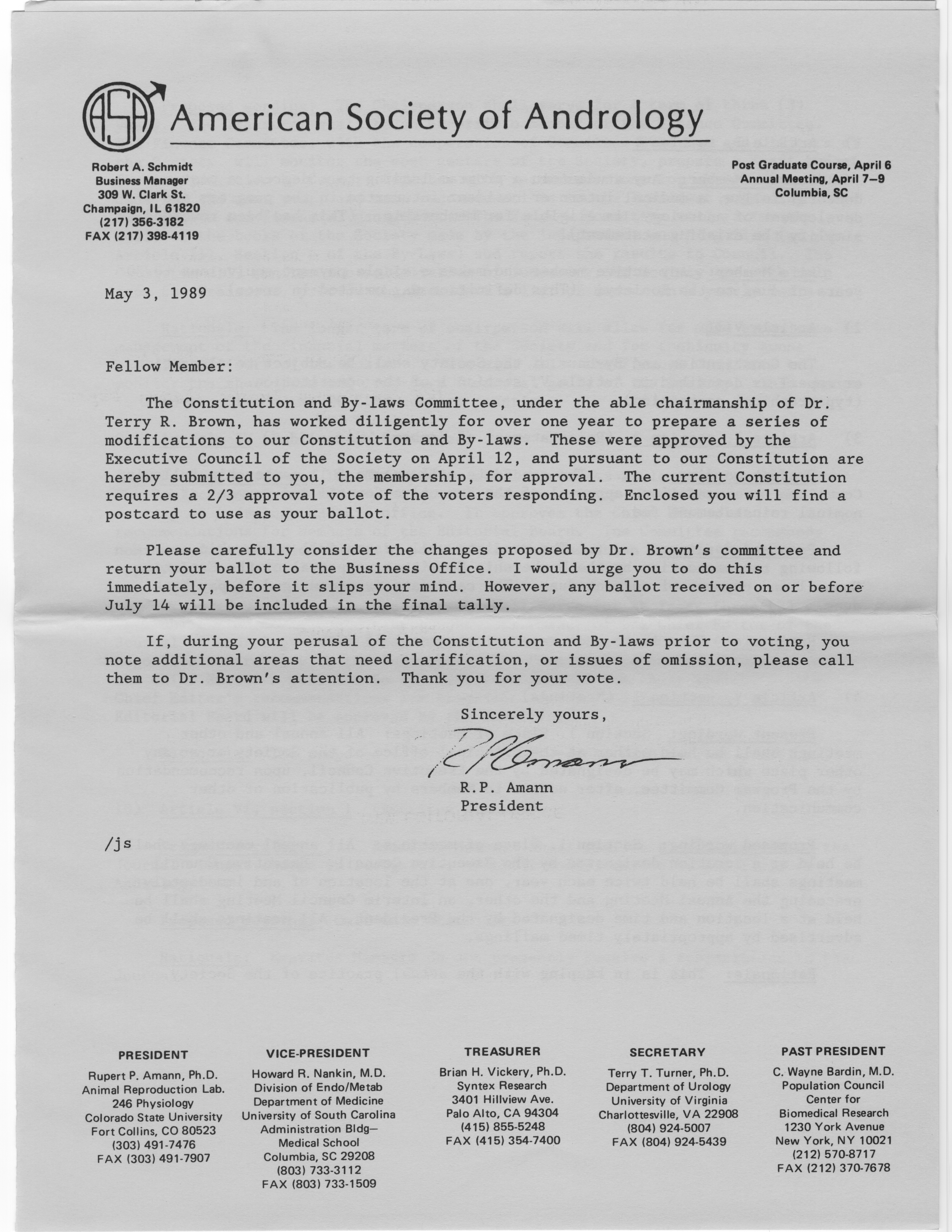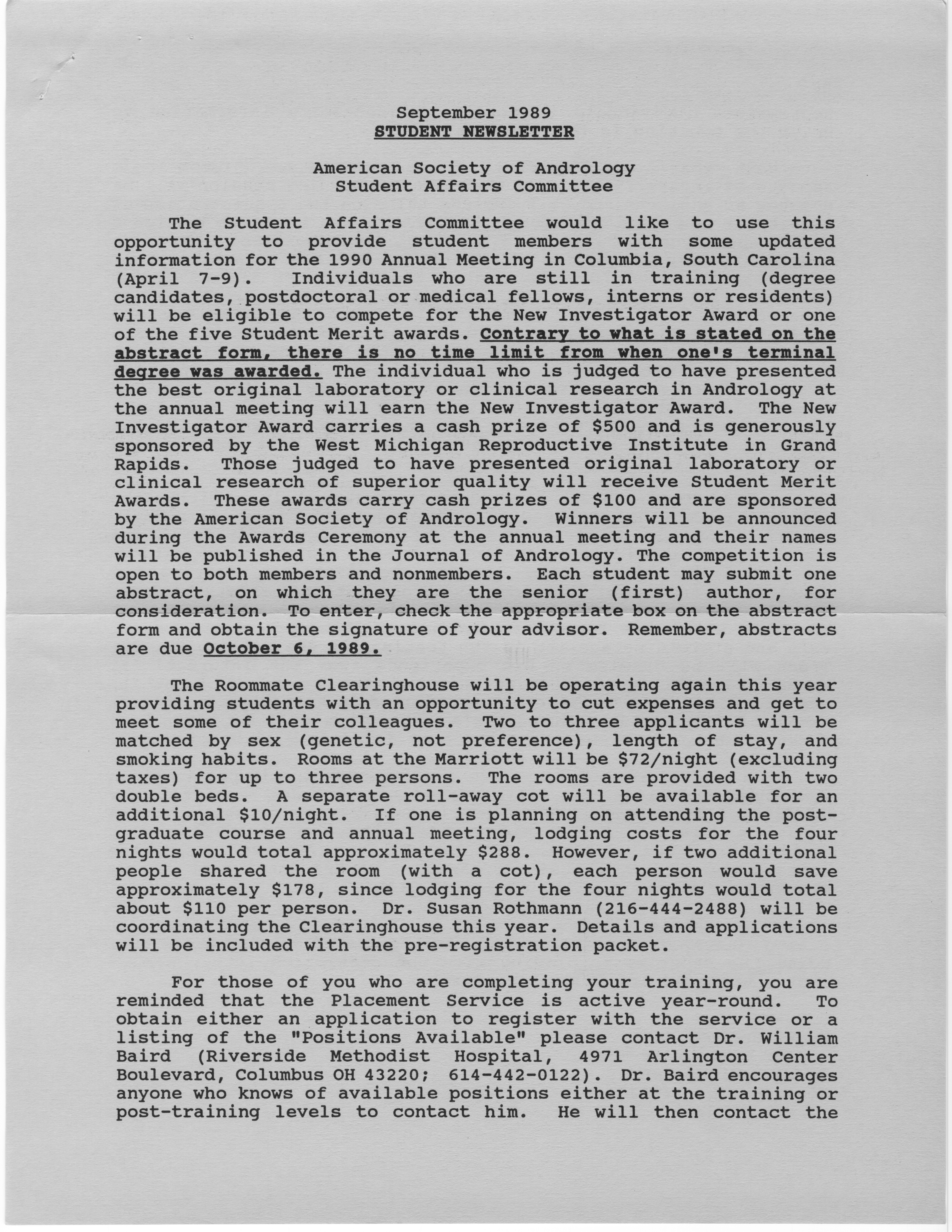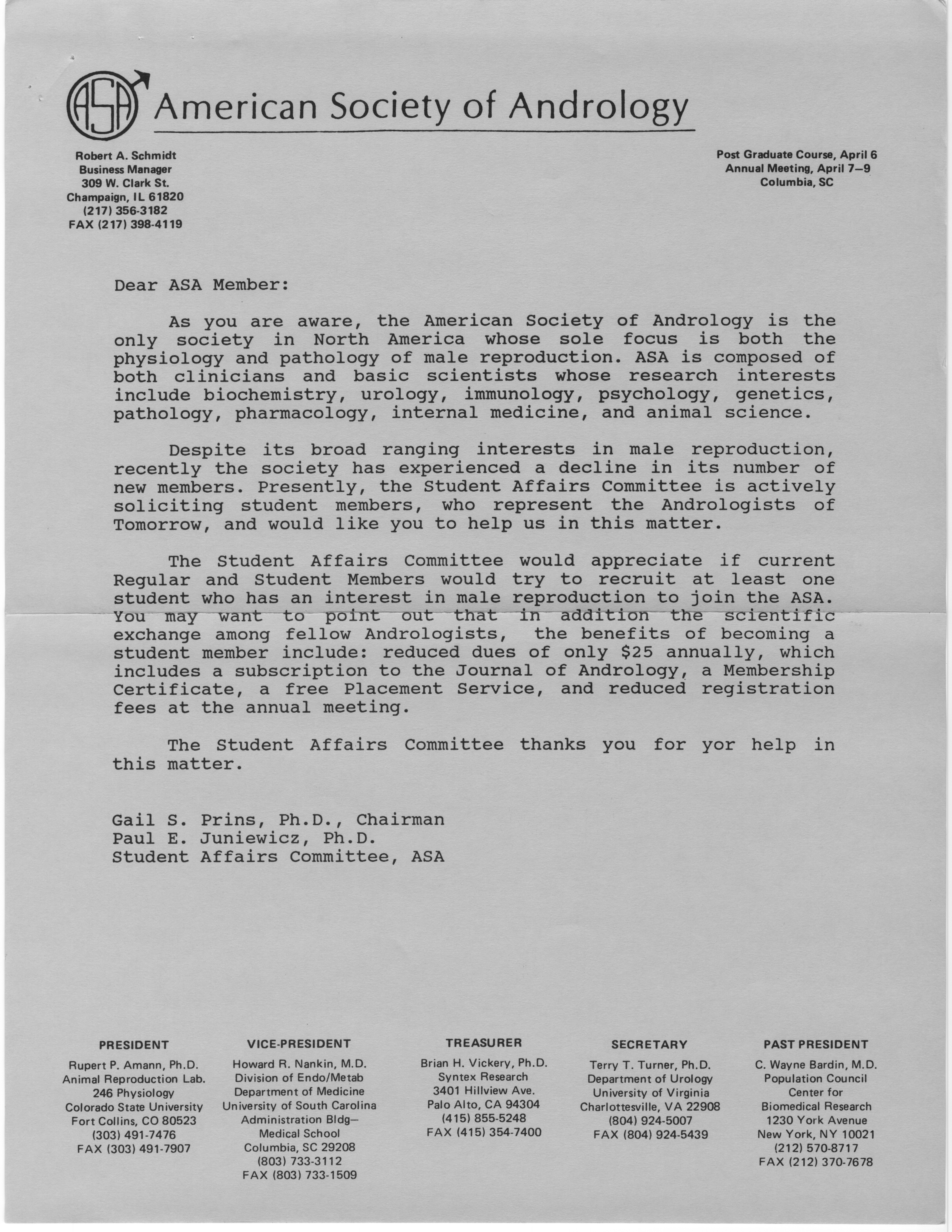 - "Annual Meeting of the American Society of Andrology, 1990", American Society of Andrology Collection, Iowa State University Library Digital Collections