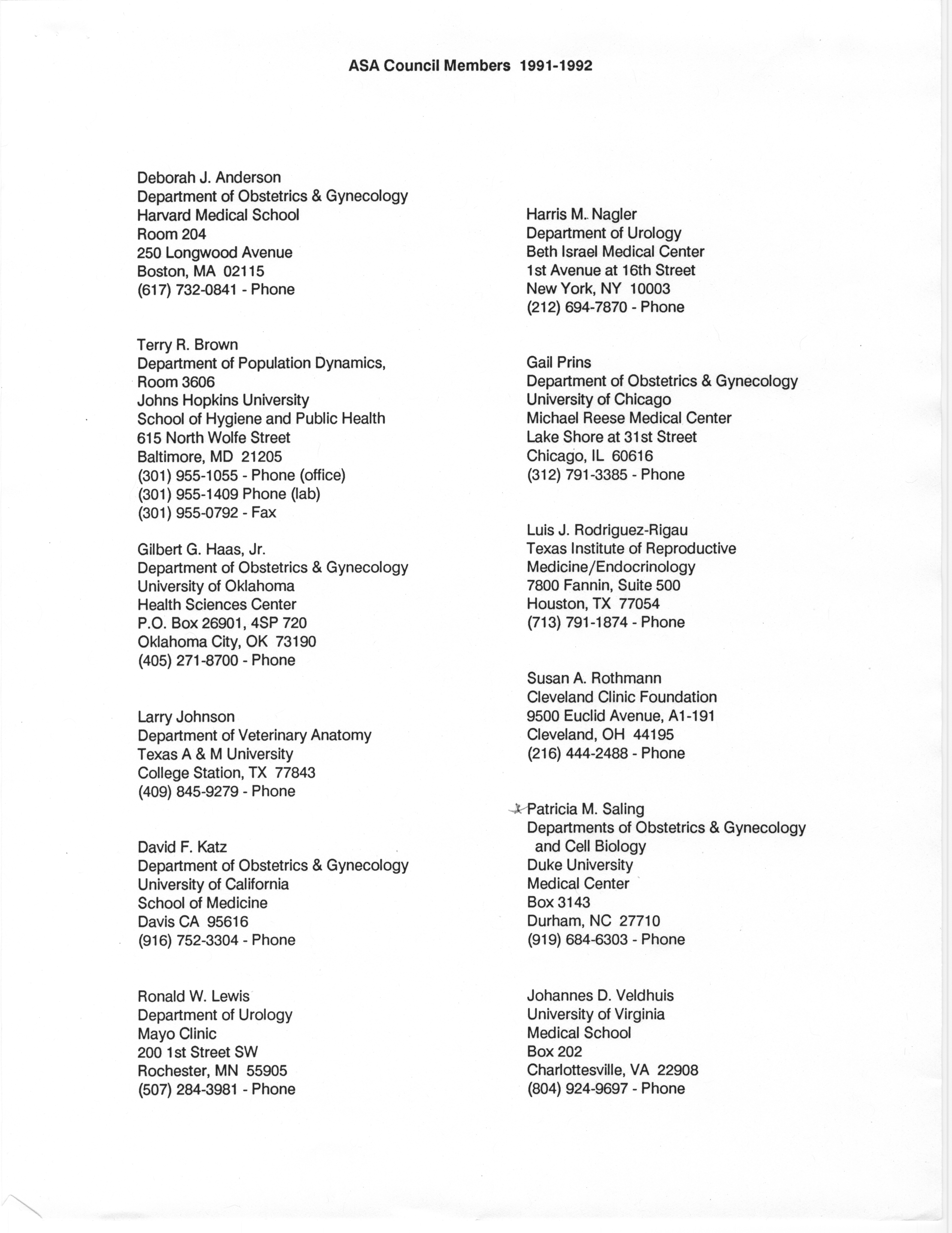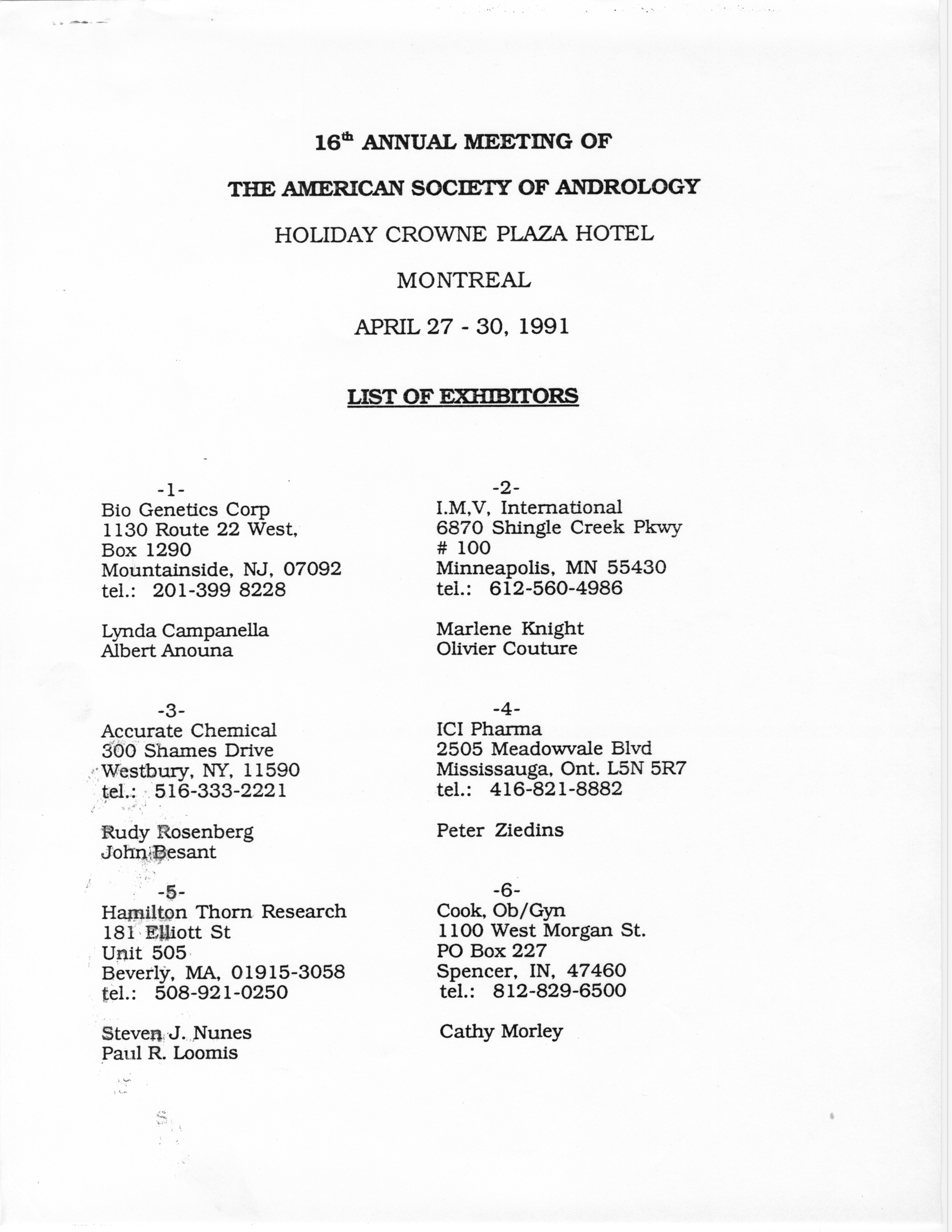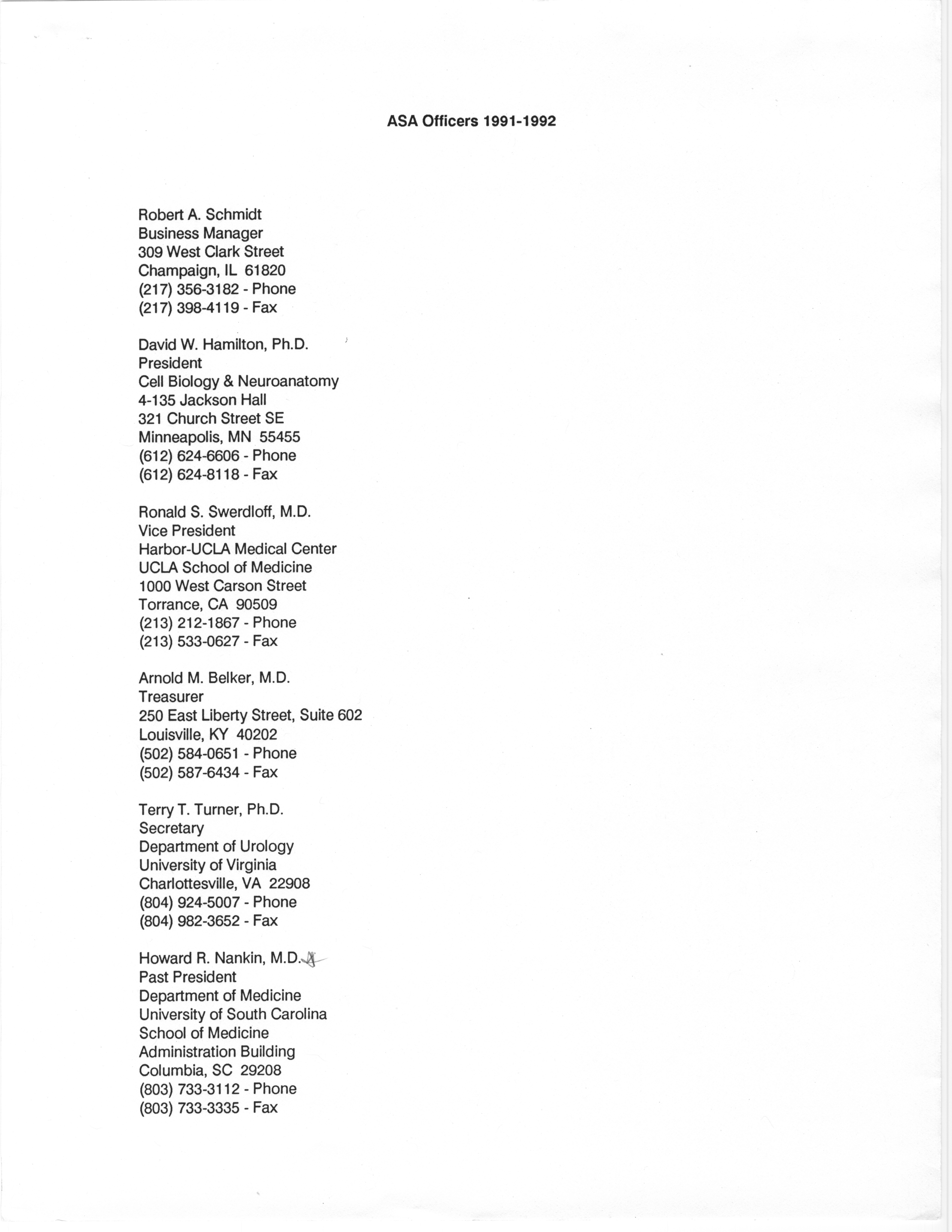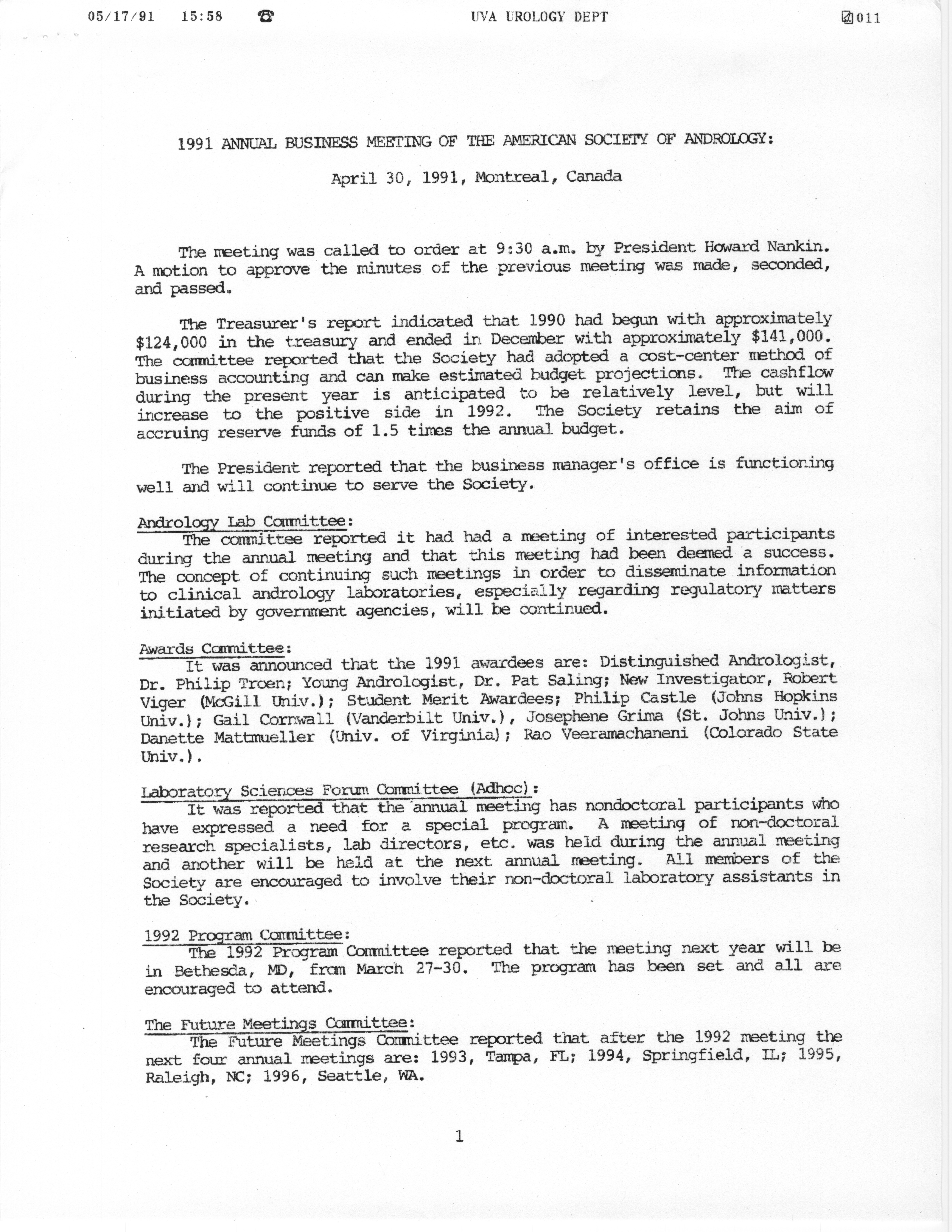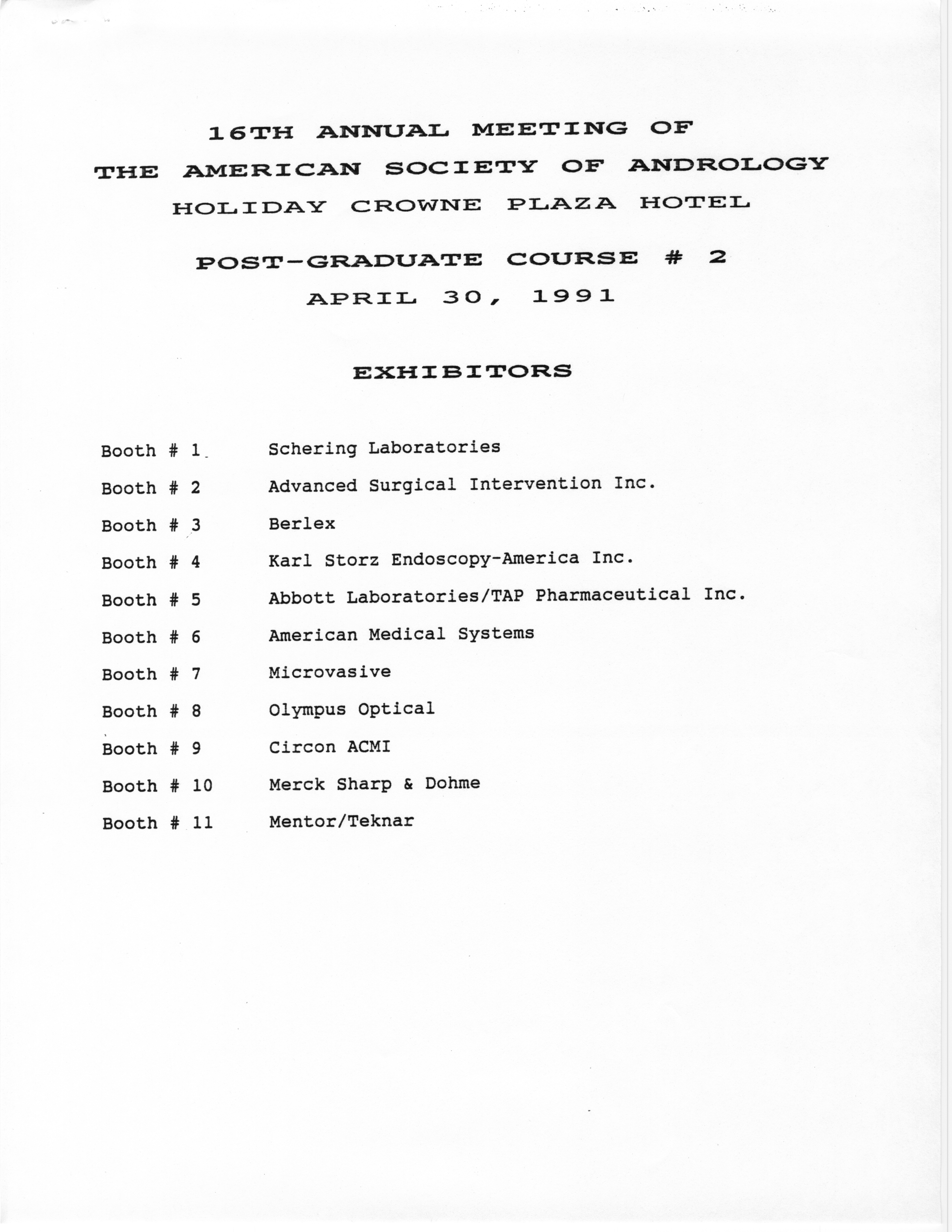 - "Annual Meeting of the American Society of Andrology, 1991", American Society of Andrology Collection, Iowa State University Library Digital Collections