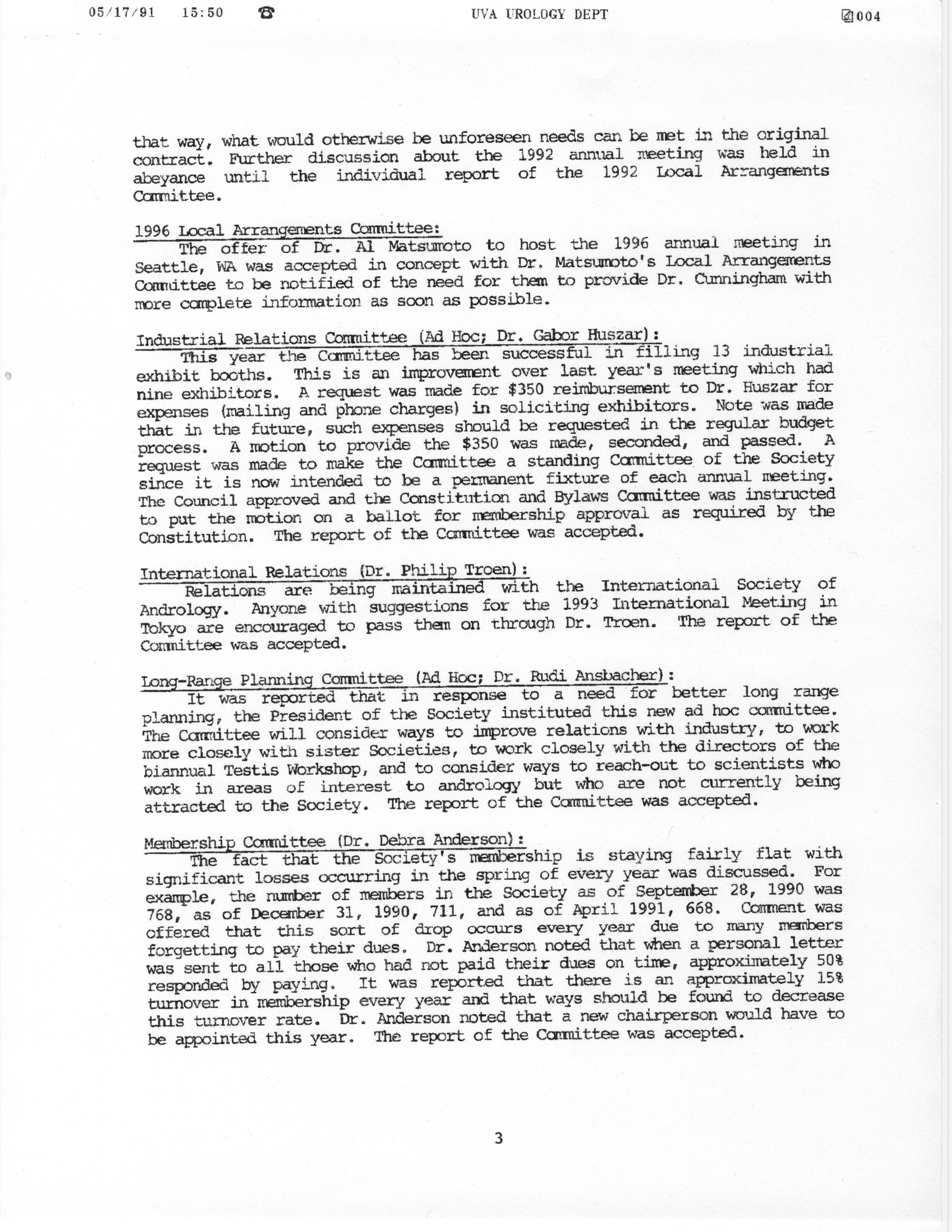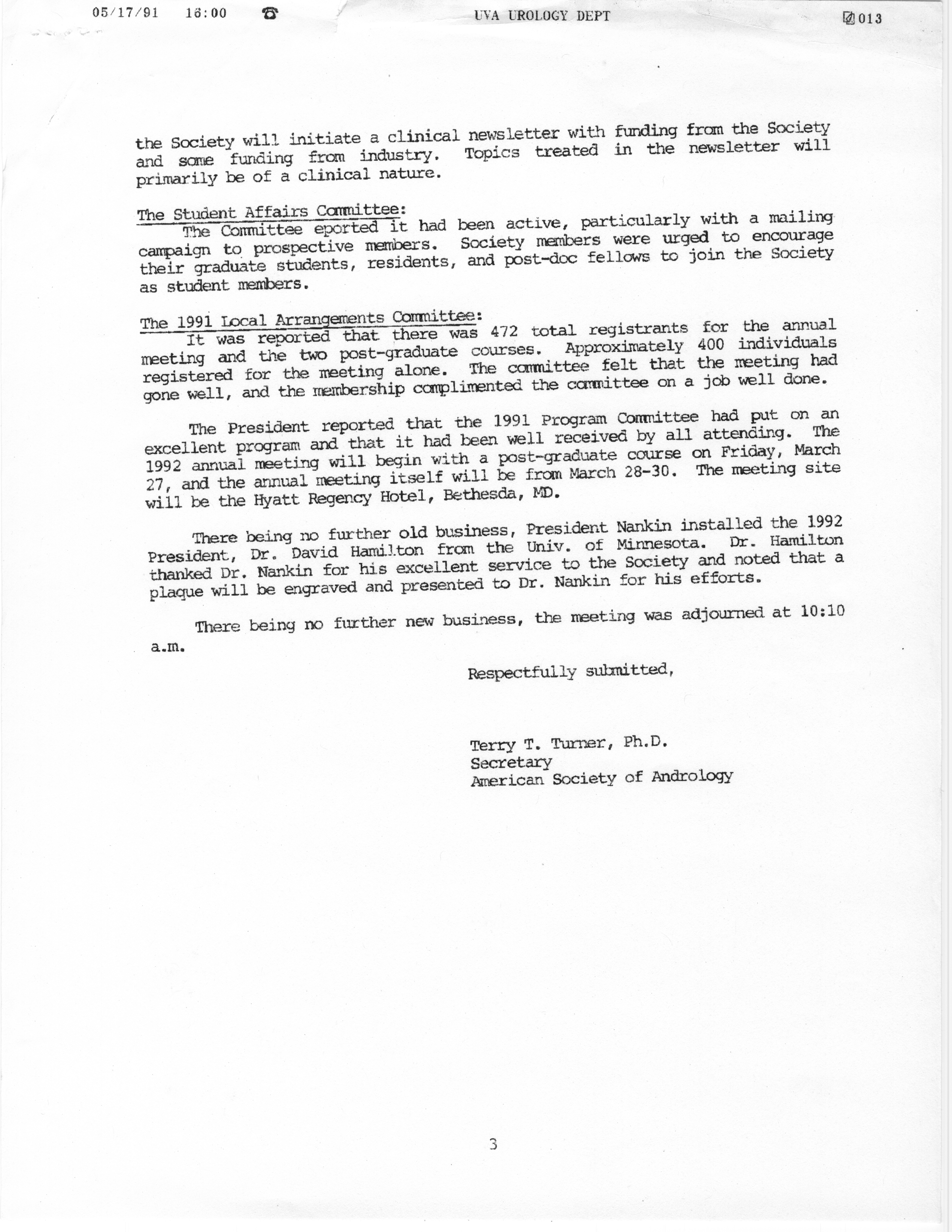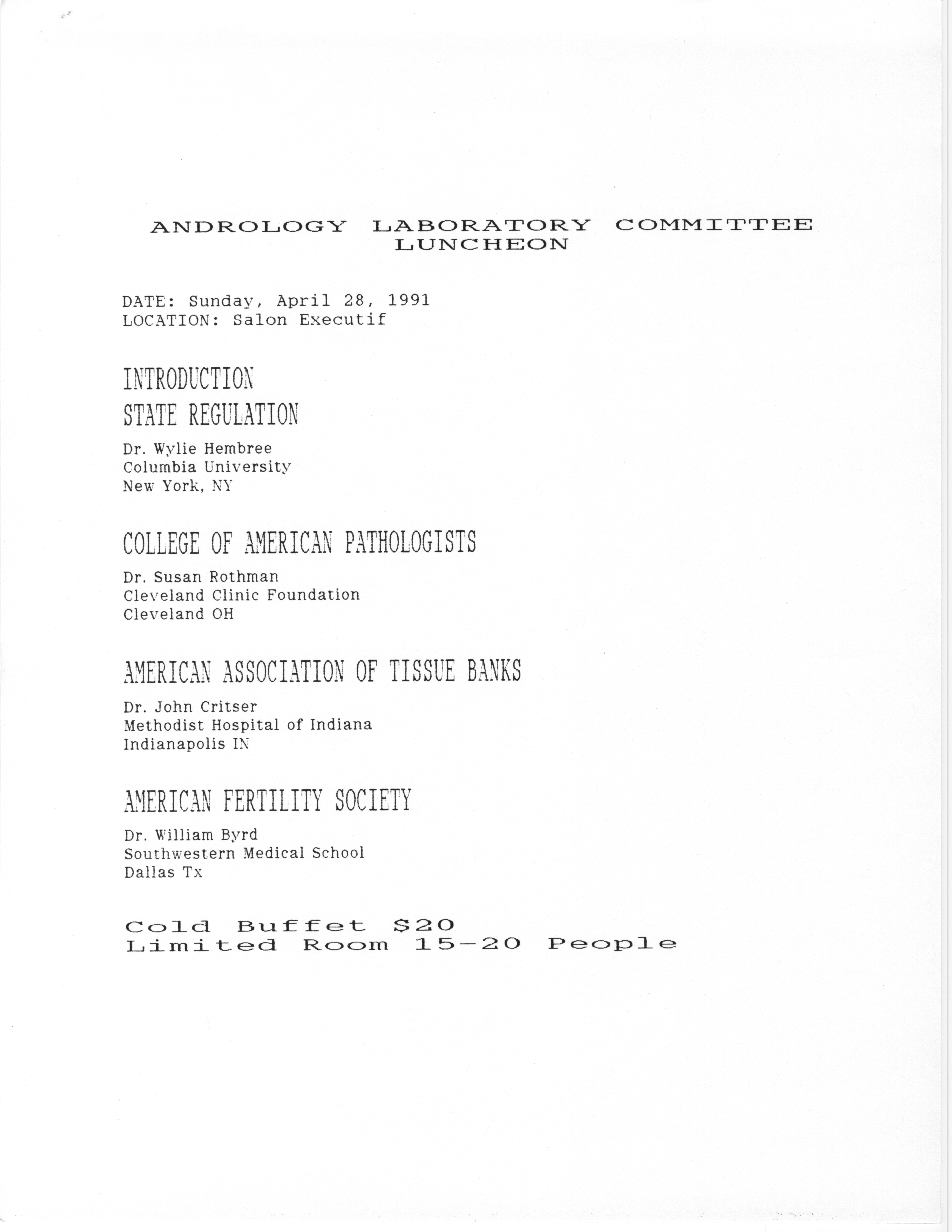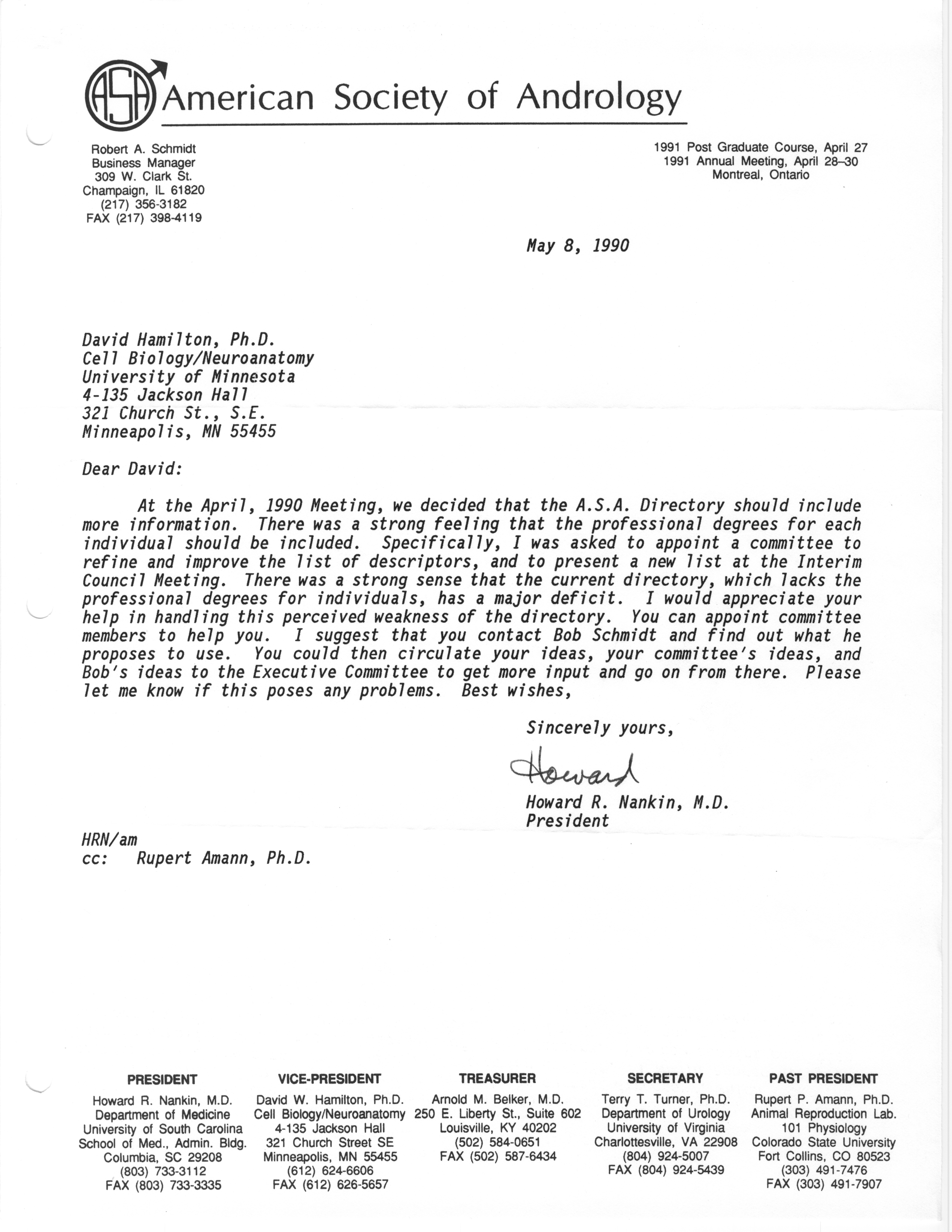 - "Annual Meeting of the American Society of Andrology, 1991", American Society of Andrology Collection, Iowa State University Library Digital Collections
