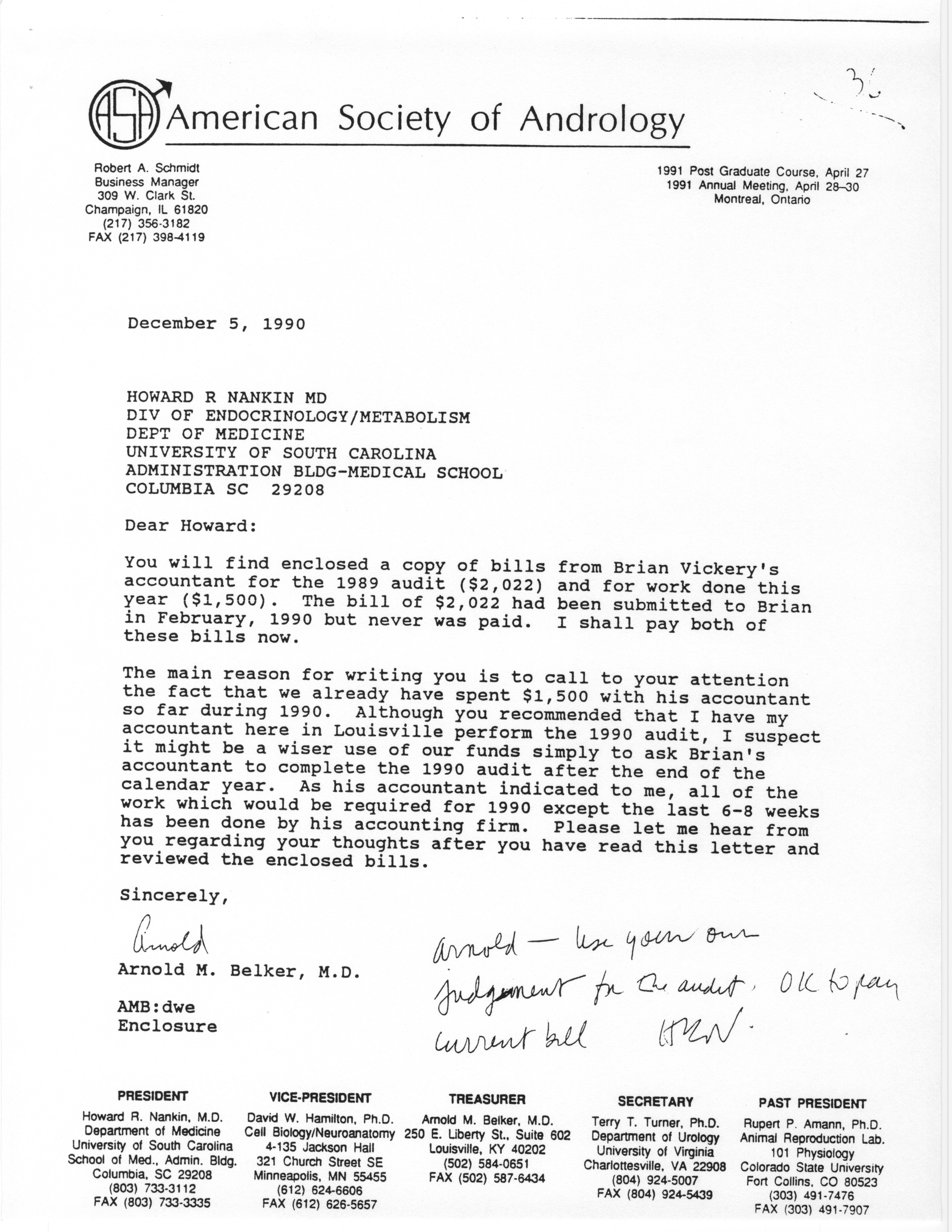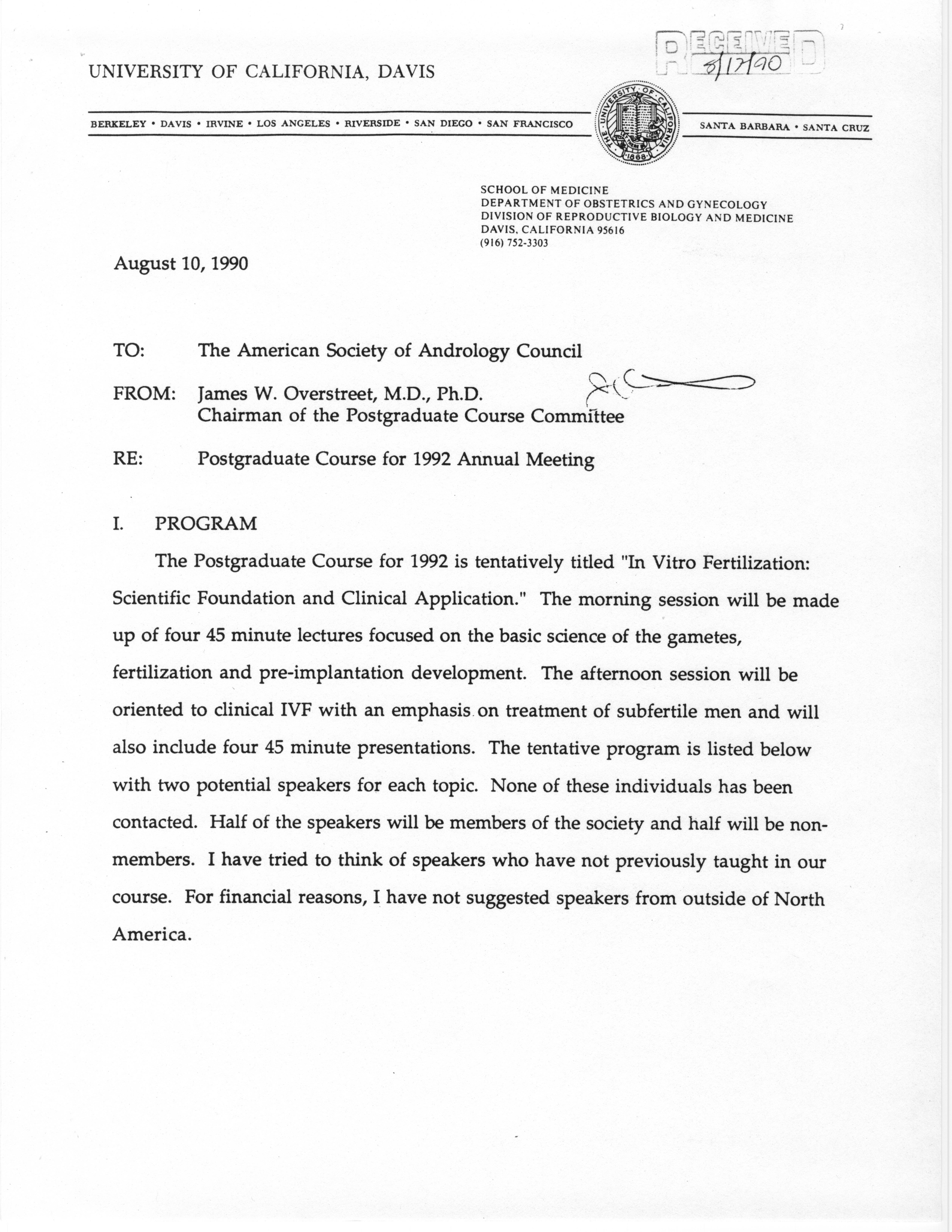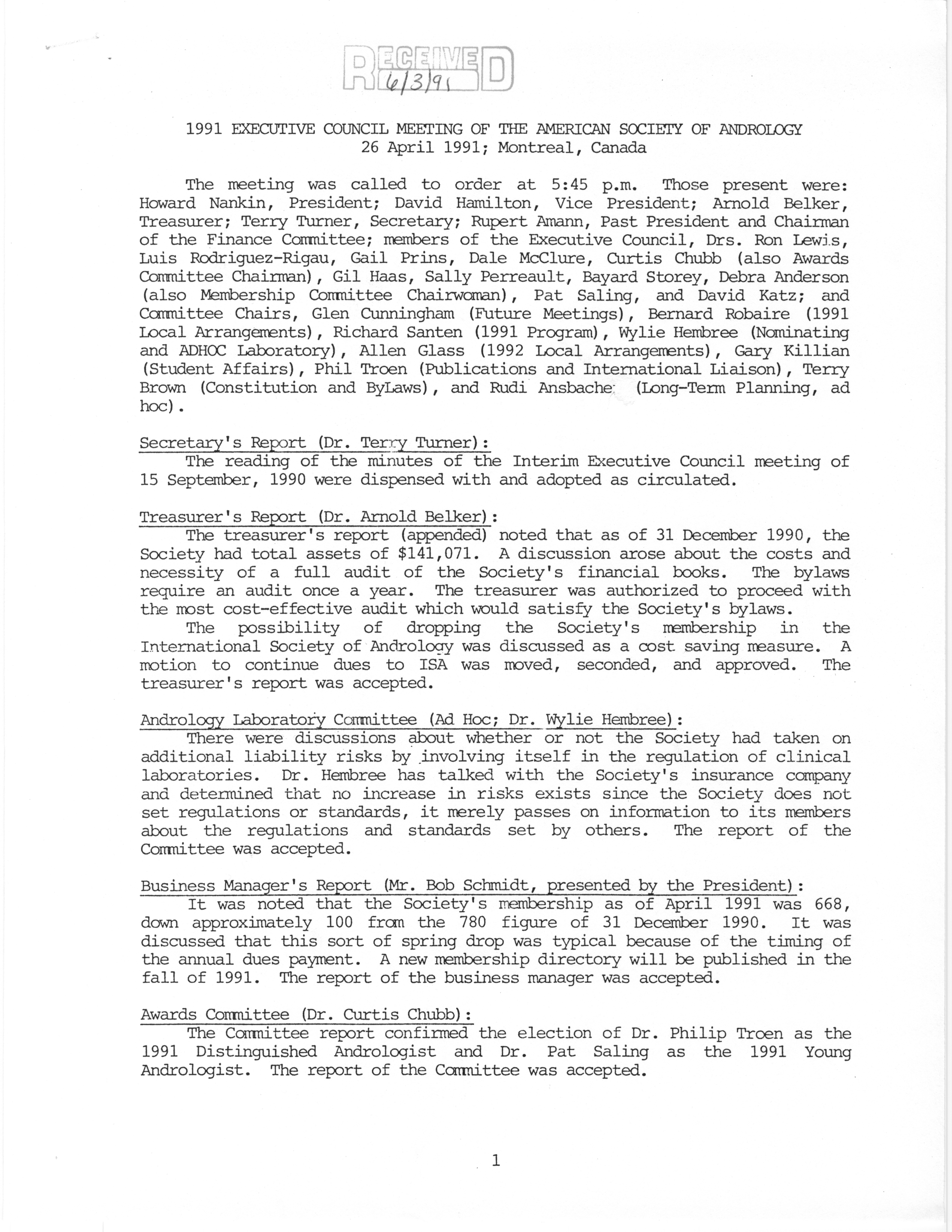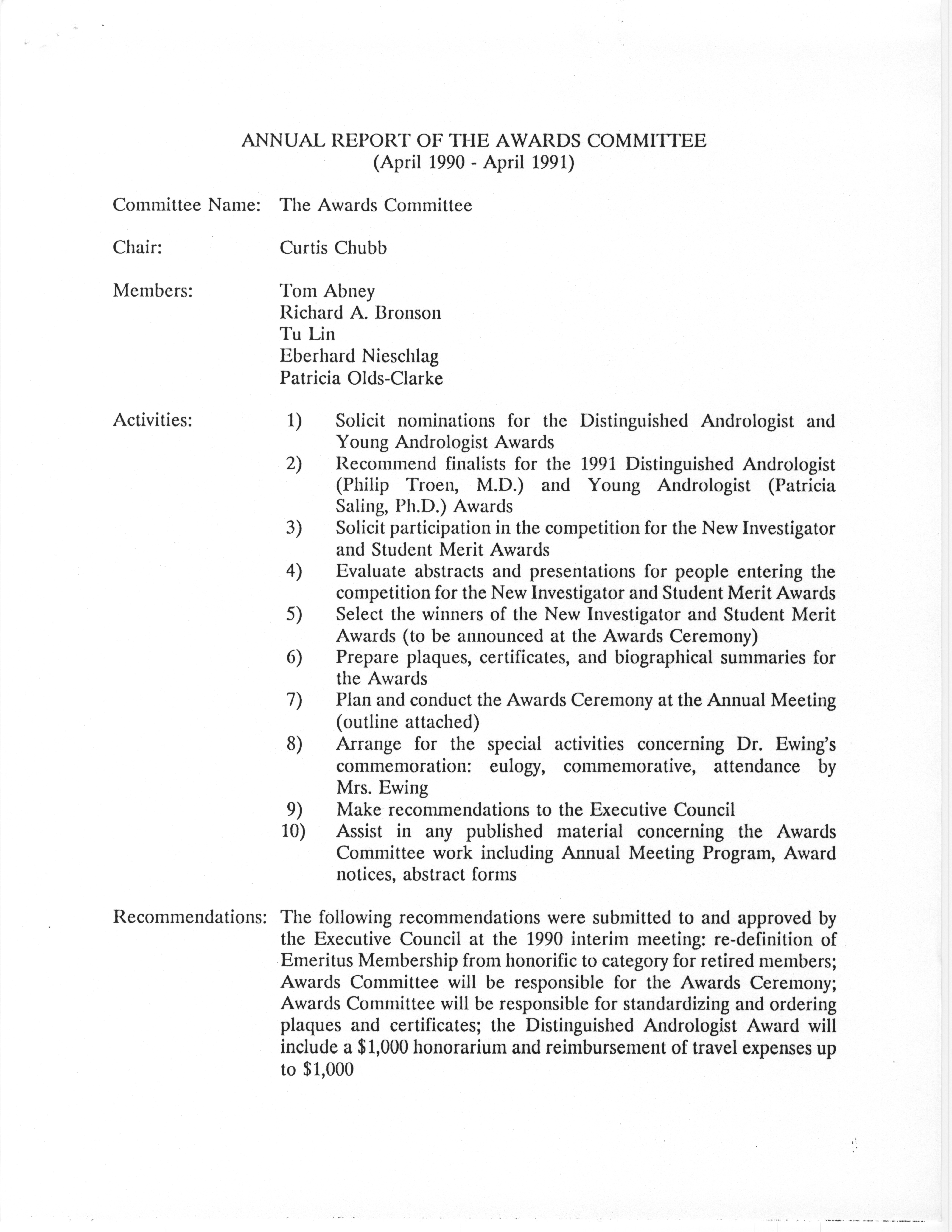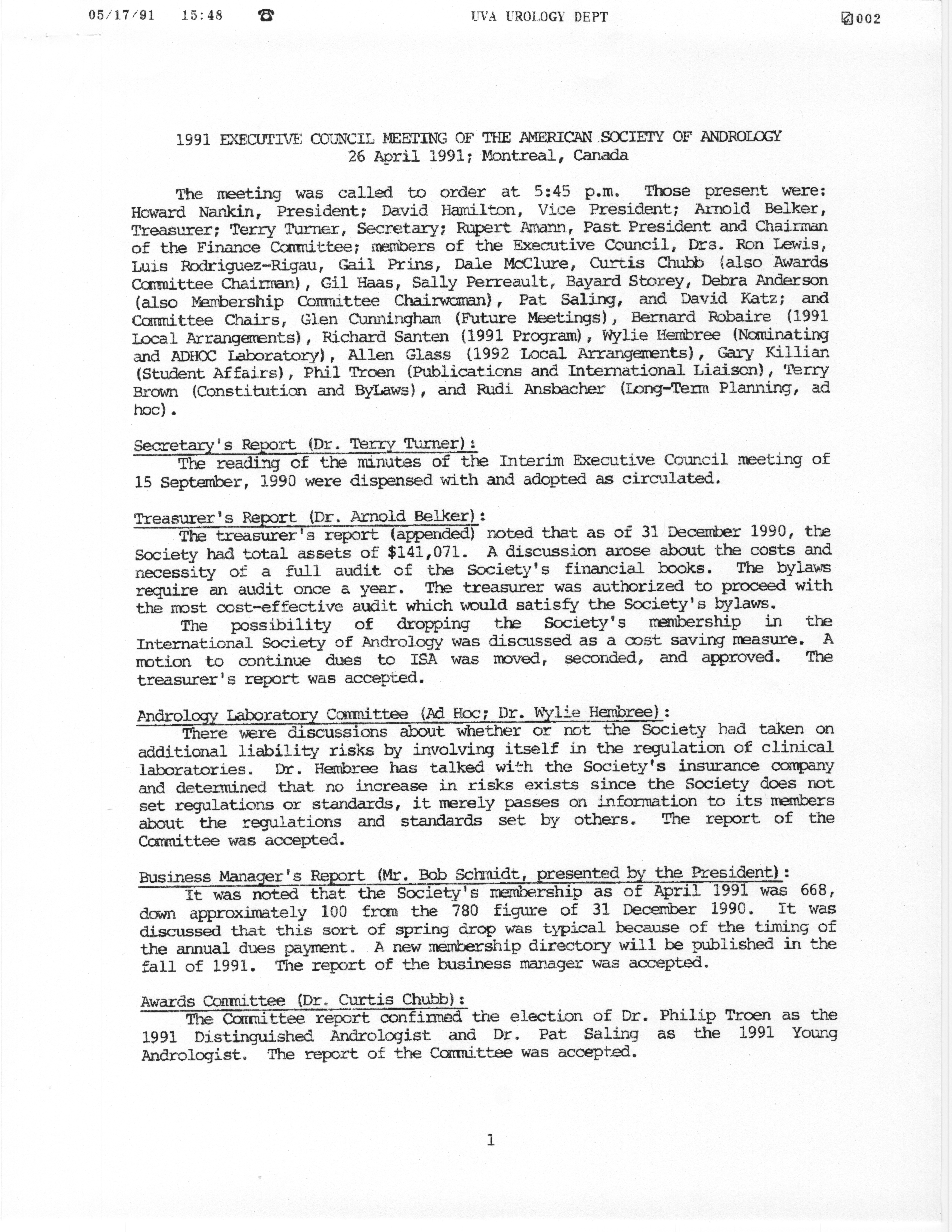 - "Annual Meeting of the American Society of Andrology, 1991", American Society of Andrology Collection, Iowa State University Library Digital Collections