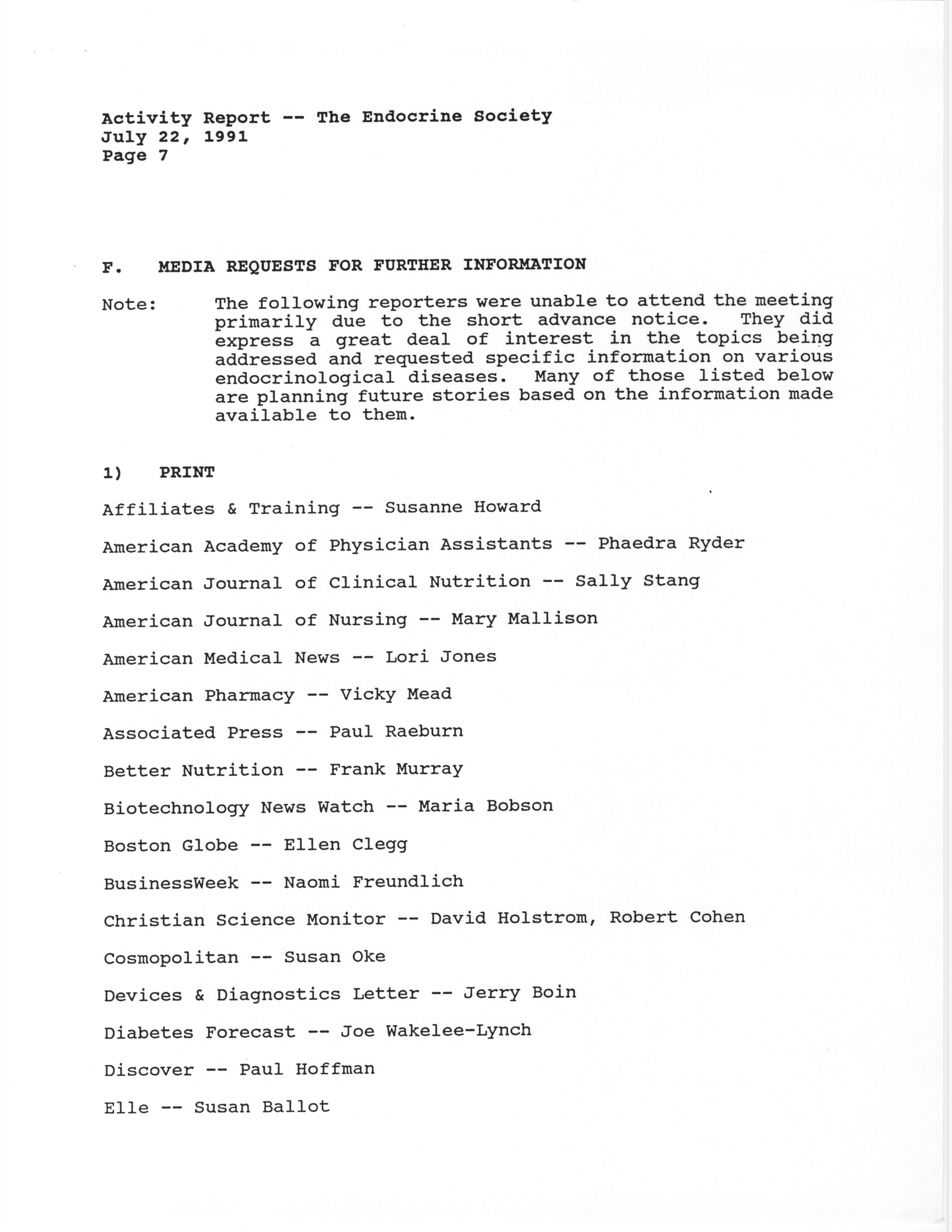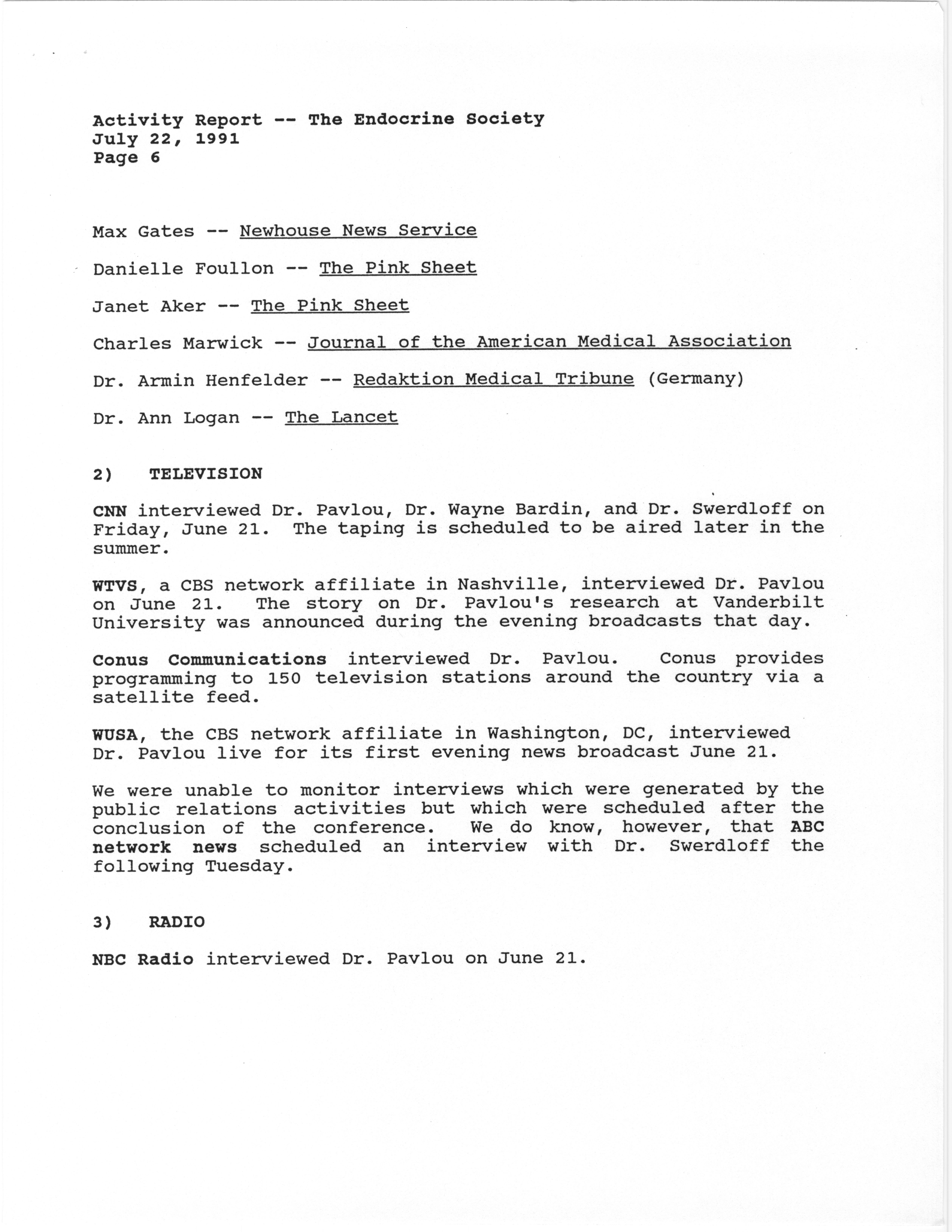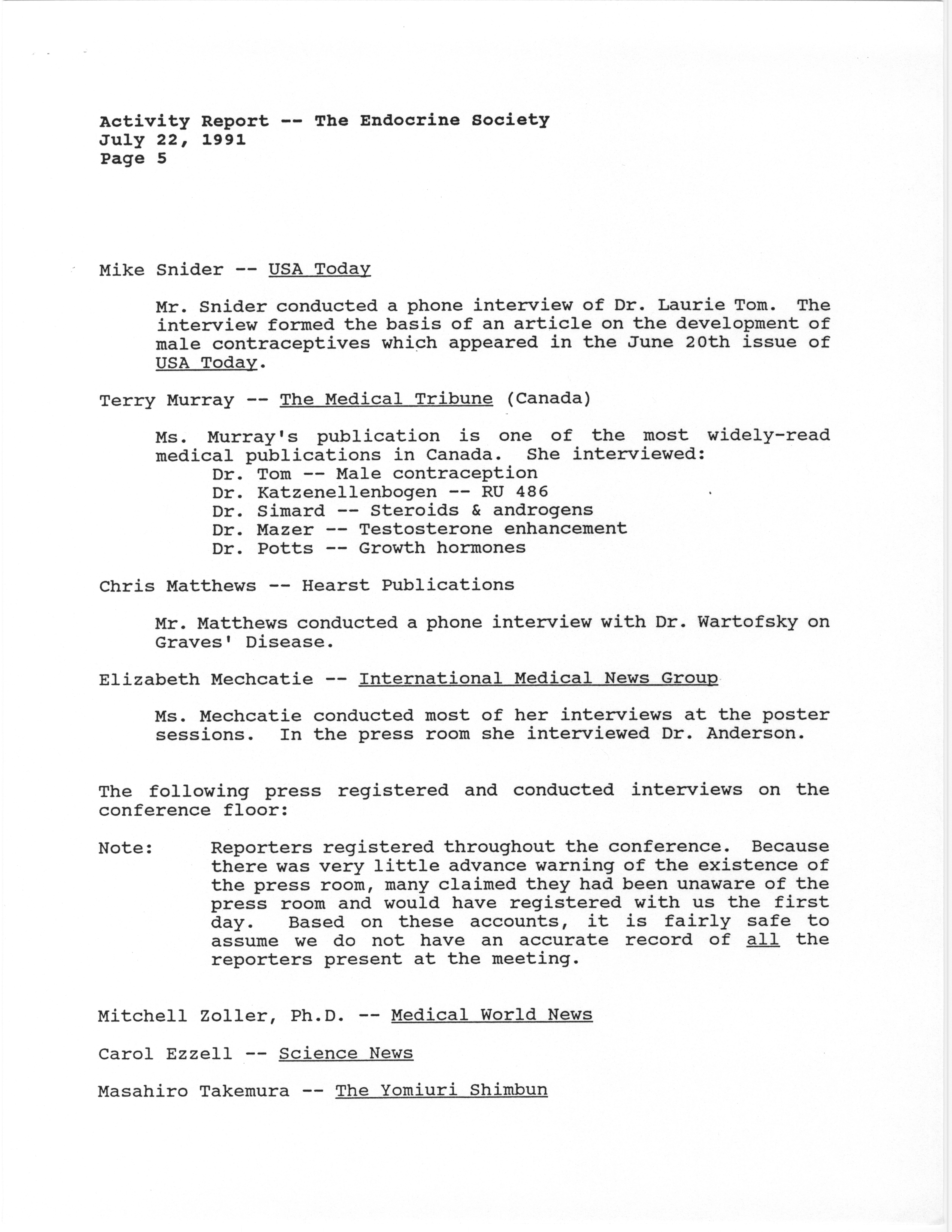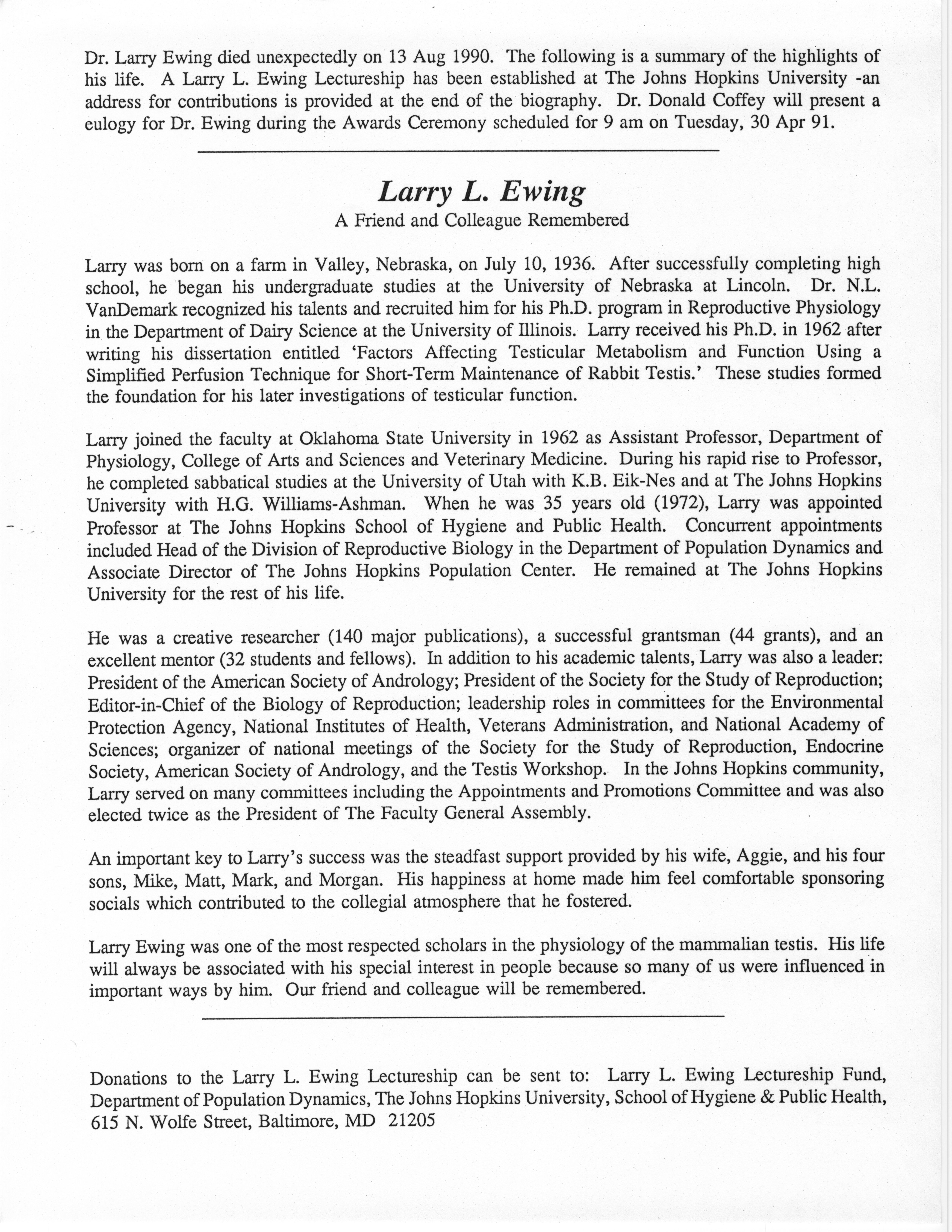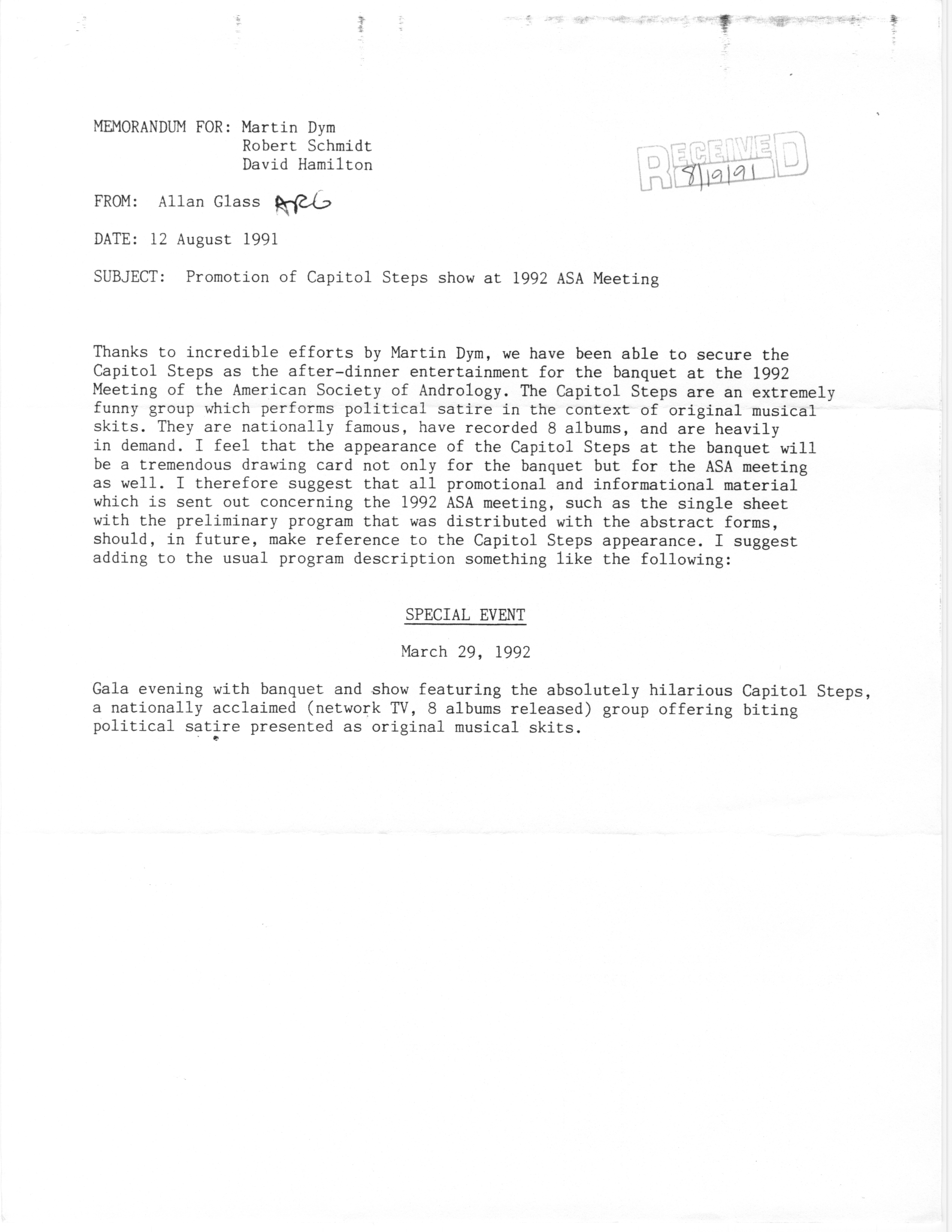 - "Annual Meeting of the American Society of Andrology, 1991", American Society of Andrology Collection, Iowa State University Library Digital Collections