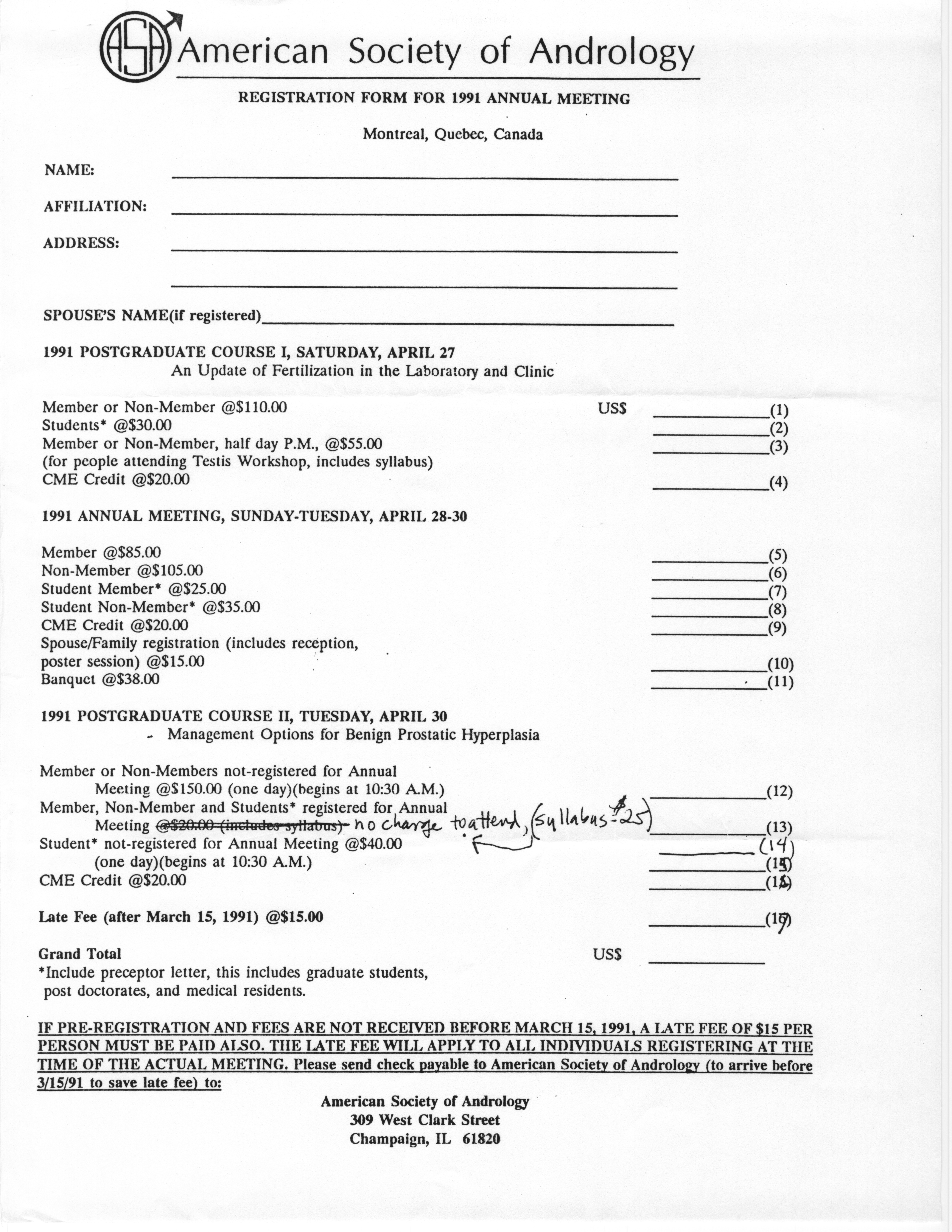 Annual Meeting of the American Society of Andrology, 1991 Item Info